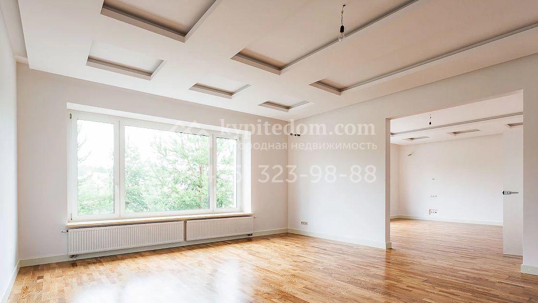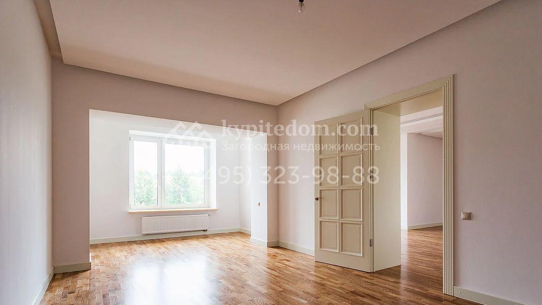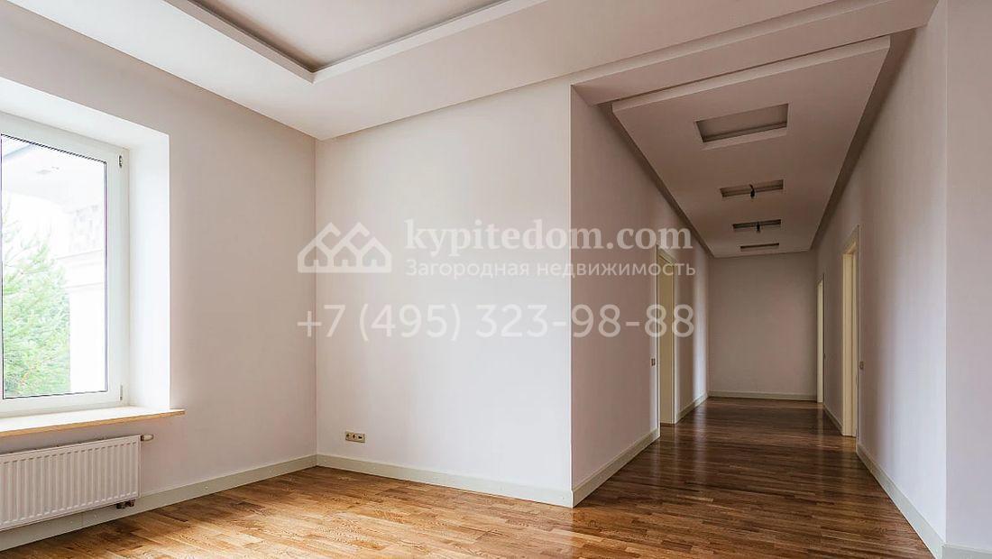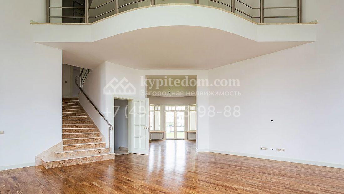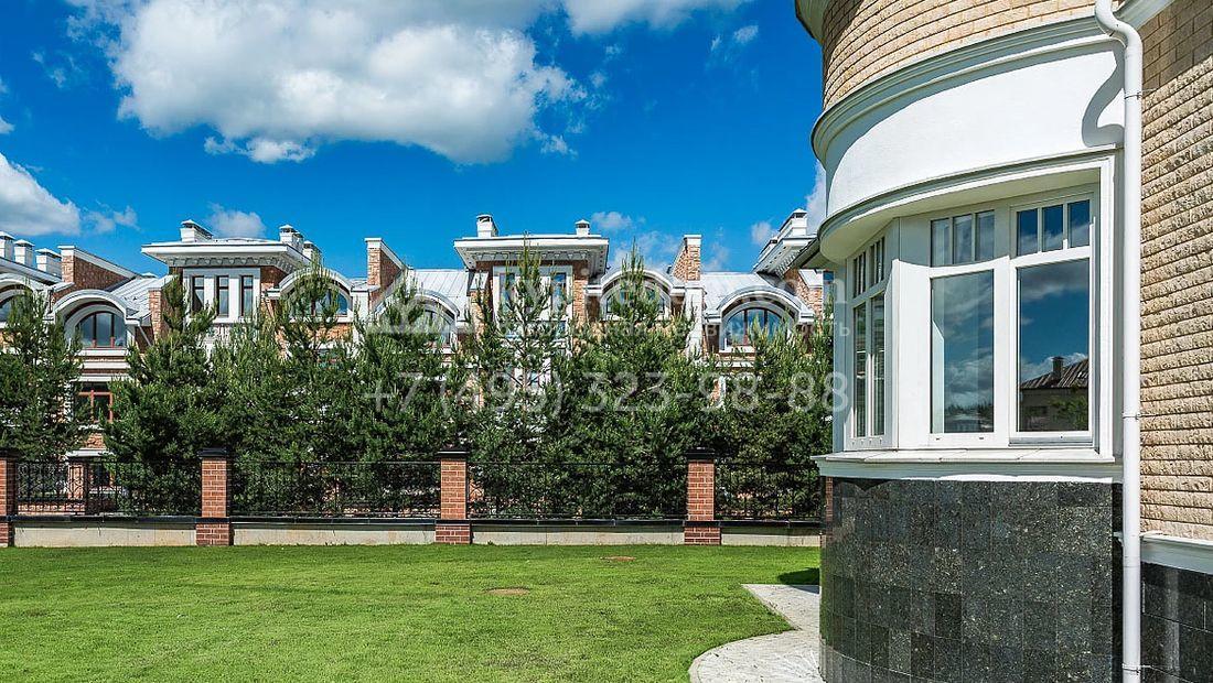 Большая загородная резиденция в неоклассическом стиле площадью 1008 м² с готовой отделкой. На первом этаже спланирован двухсветная гостиная с камином и отдельный блок для персонала. На втором этаже 5 спален с гардеробными и ванными комнатами. Мансарду можно оборудовать по своему вкусу. Участок 35 соток озеленен, постелен газон и проложены дорожки.