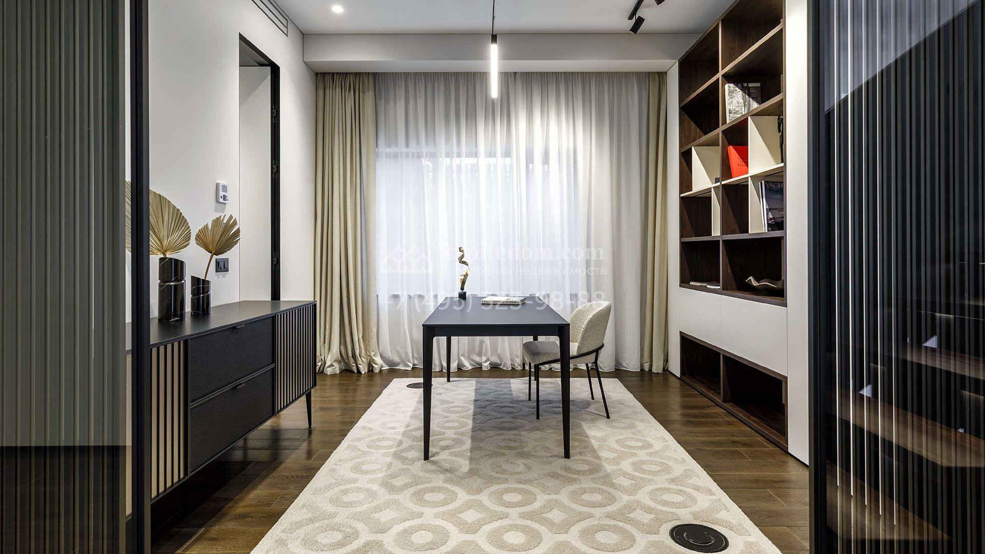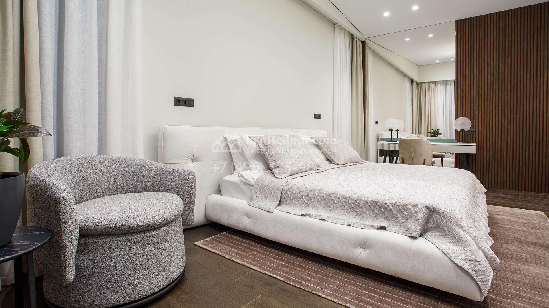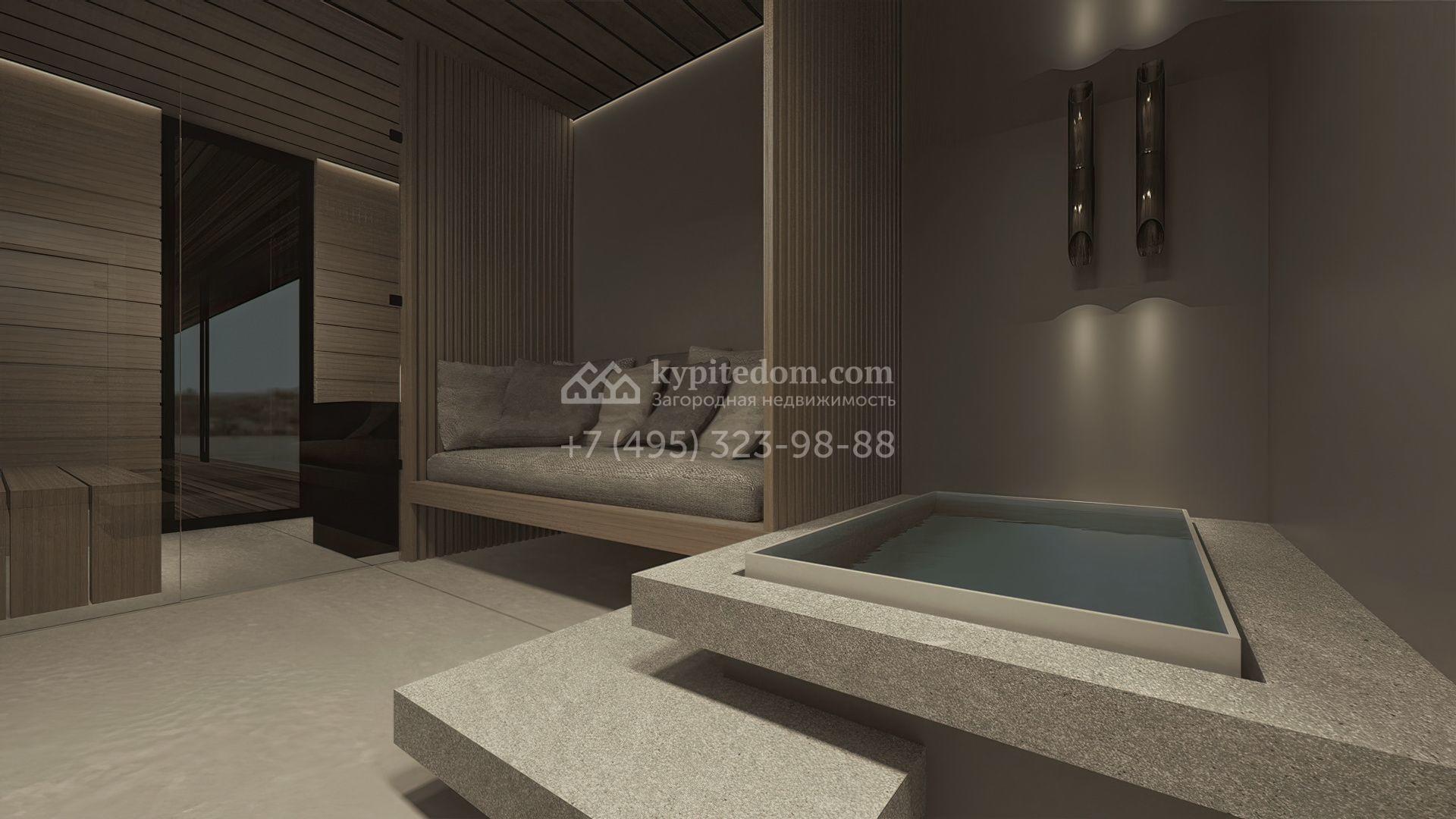 1-й уровень: спальня с санузлом, гардеробной и выходом на террасу, спальня с санузлом, кабинет с санузлом, сауна, гардеробная, постирочная, котельная.