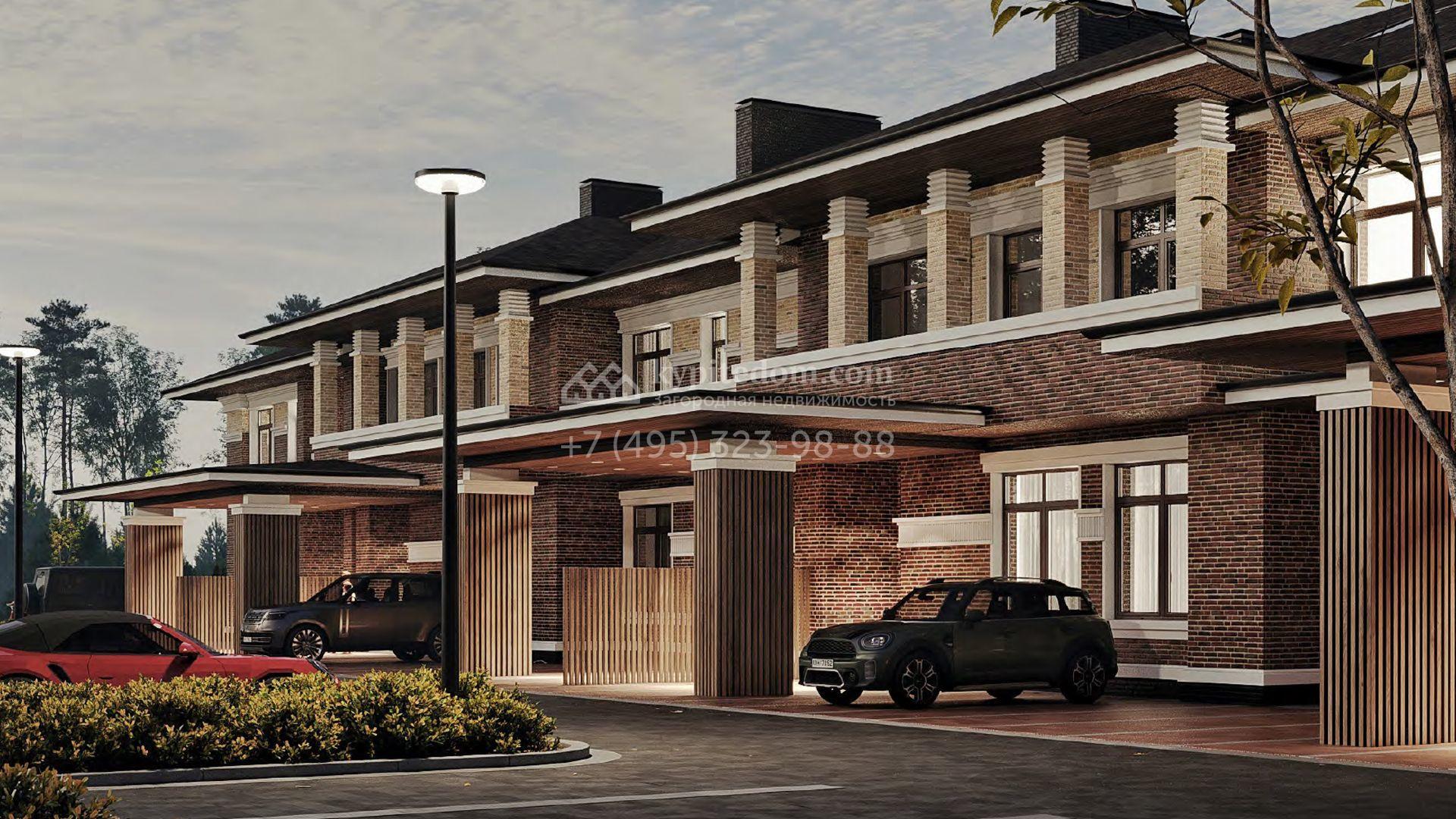 Уютный таунхаус без отделки площадью 467 м² расположен на участке 5,4 сотки. Фасад здания оформлен в современном стиле и облицован коричневой клинкерной плиткой с декоративными молдингами, подшив кровли и навесы выполнены из лиственницы, установлены теплые двухкамерные стеклопакеты Rehau. В доме спланировали 6 спален, гостиную-столовую, кухню, кабинет и игровую. На участке засеян газон, высажены туи, территория со стороны главного фасада выполнена из тротуарной брусчатки, предусмотрены 3 парковочных места, одно из которых под навесом.