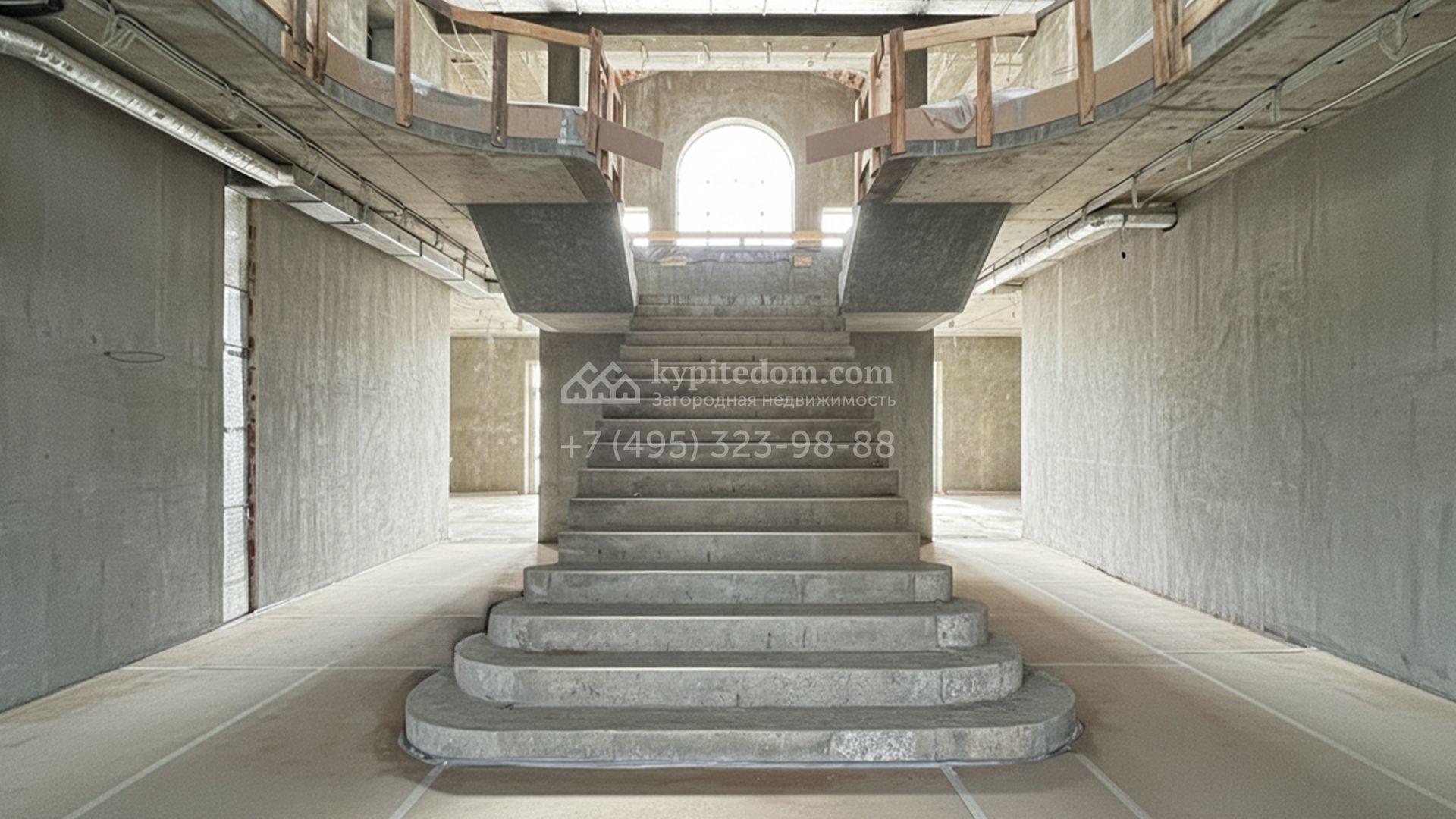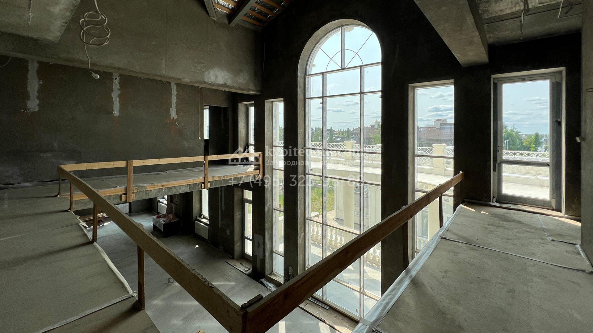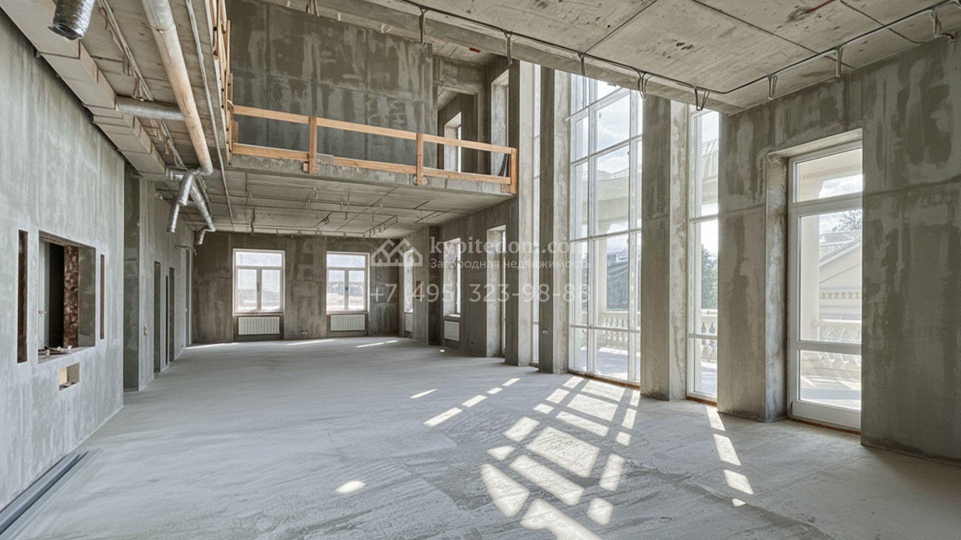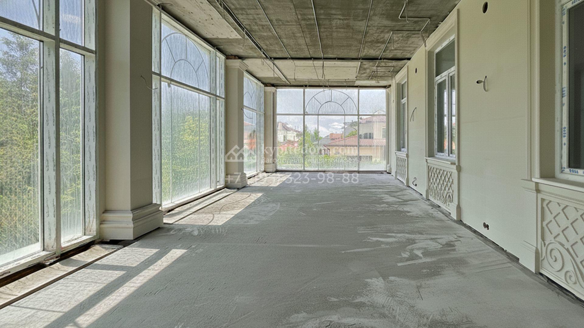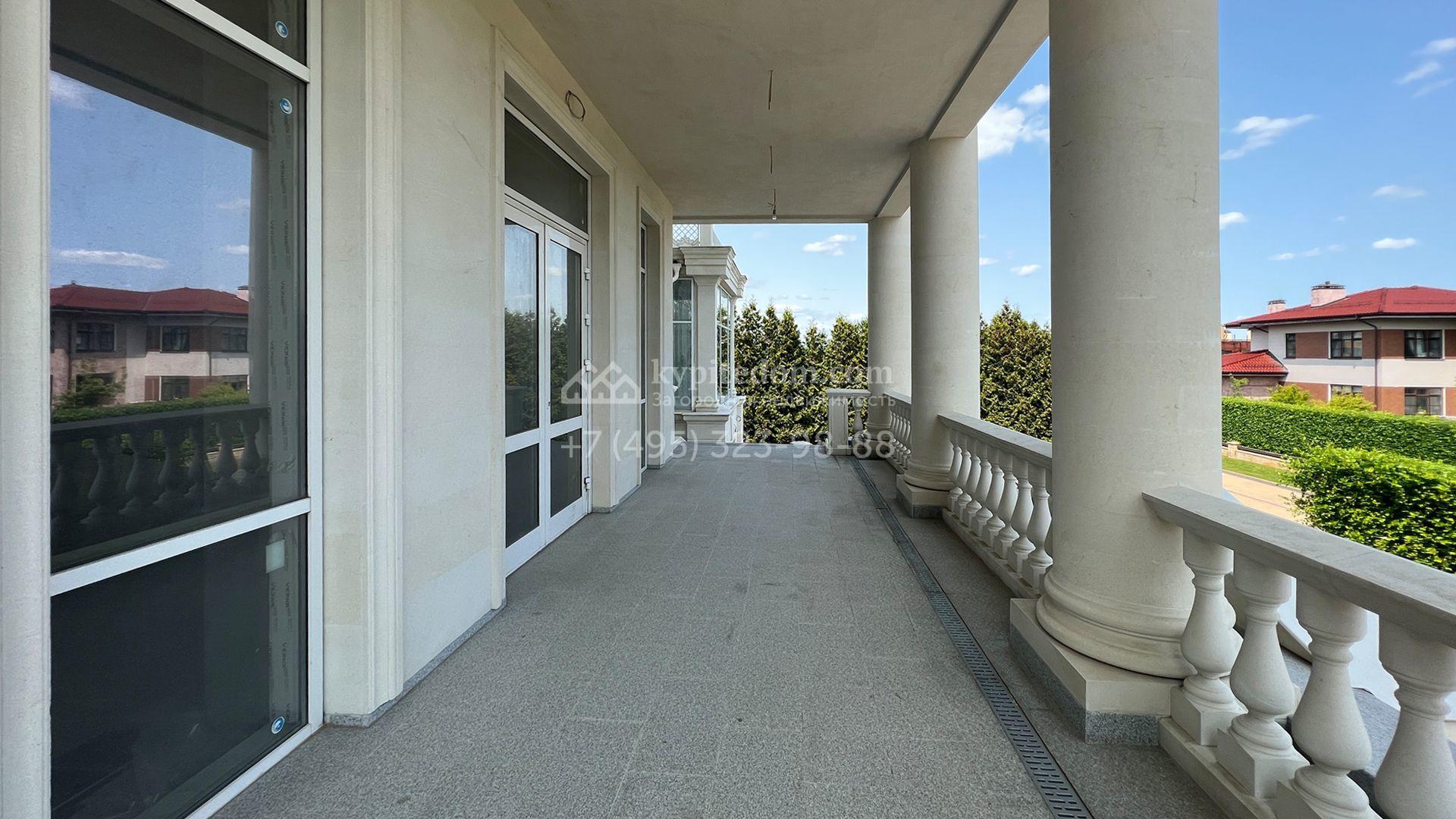 Загородный особняк площадью 1400 м² построен на полевом участке 23 сотки. Кремовый фасад здания выполнен в классическом стиле, декорирован колоннами, балясинами, рустовкой и резными элементами. Коттедж без отделки позволяет реализовать индивидуальный дизайн-проект. Планировкой дома предусмотрены семь спален, каминная, столовая-гостиная с большим аквариумом, кухня, кабинет с выходом в зимний сад, тренажёрный зал, зона отдыха, хаммамы и русская баня. В контуре дома расположены блок для персонала и два гаража. Резиденция оборудована системой «умный дом». Перед входной группой произведены работы для установки фонтана.