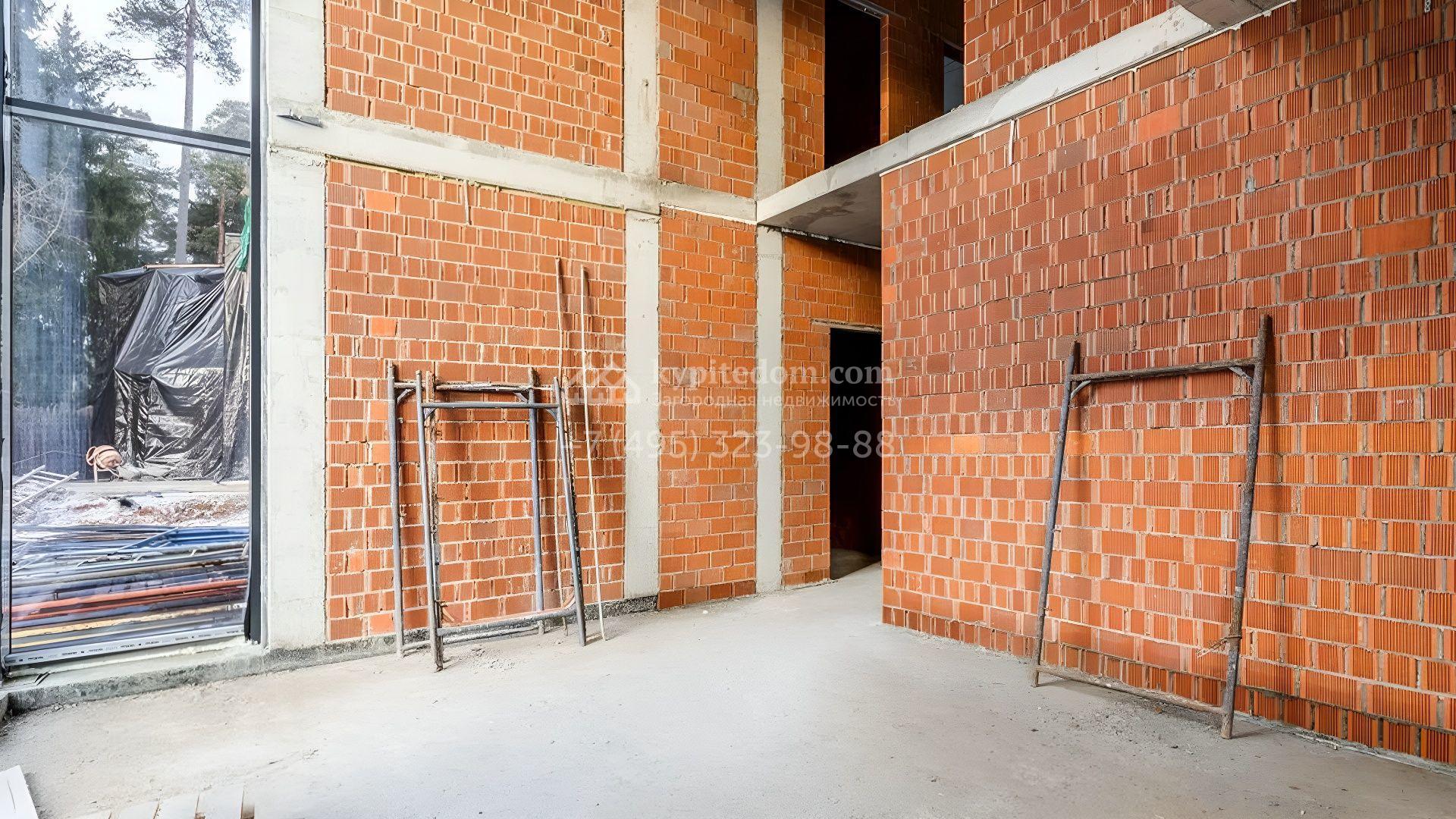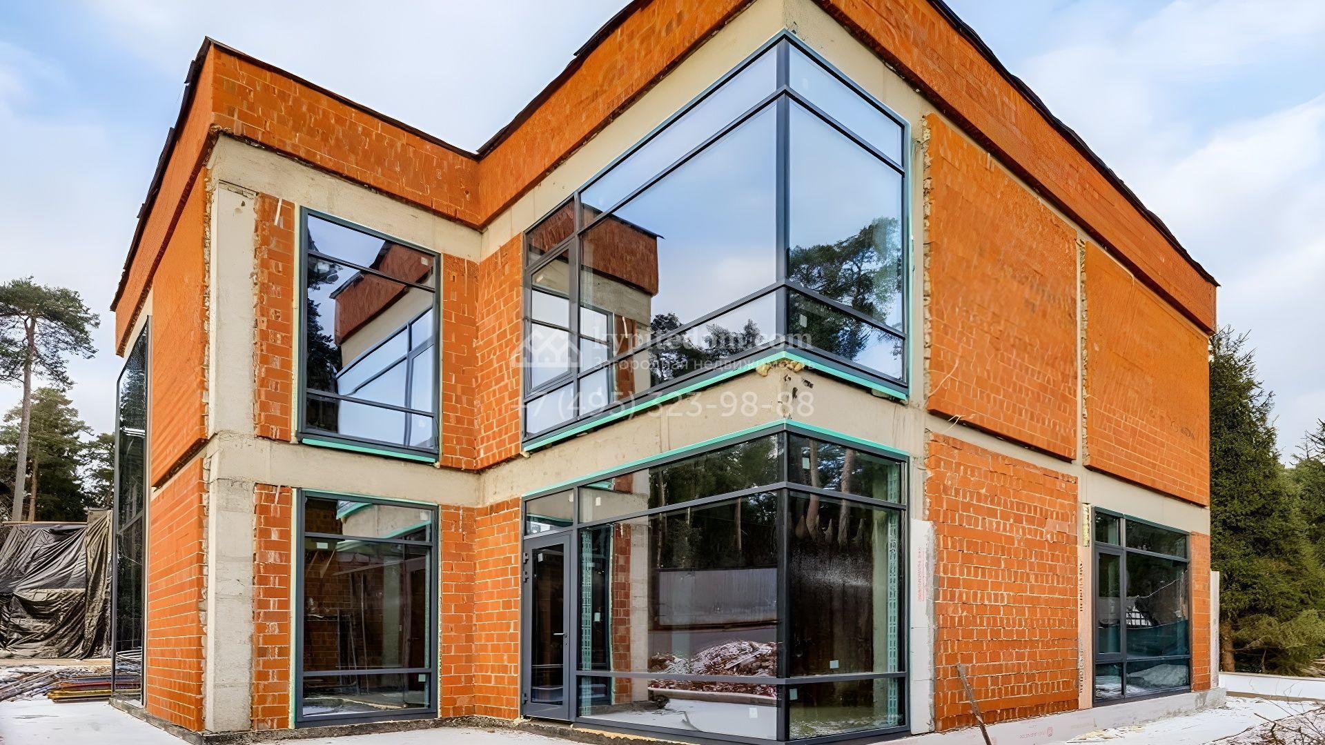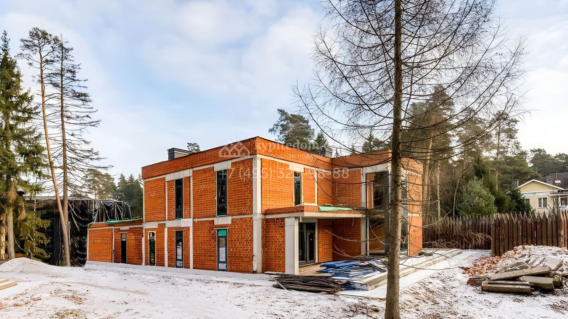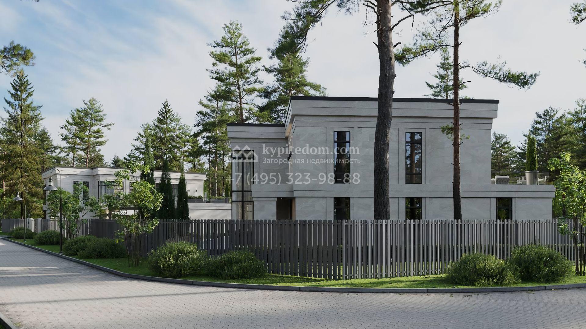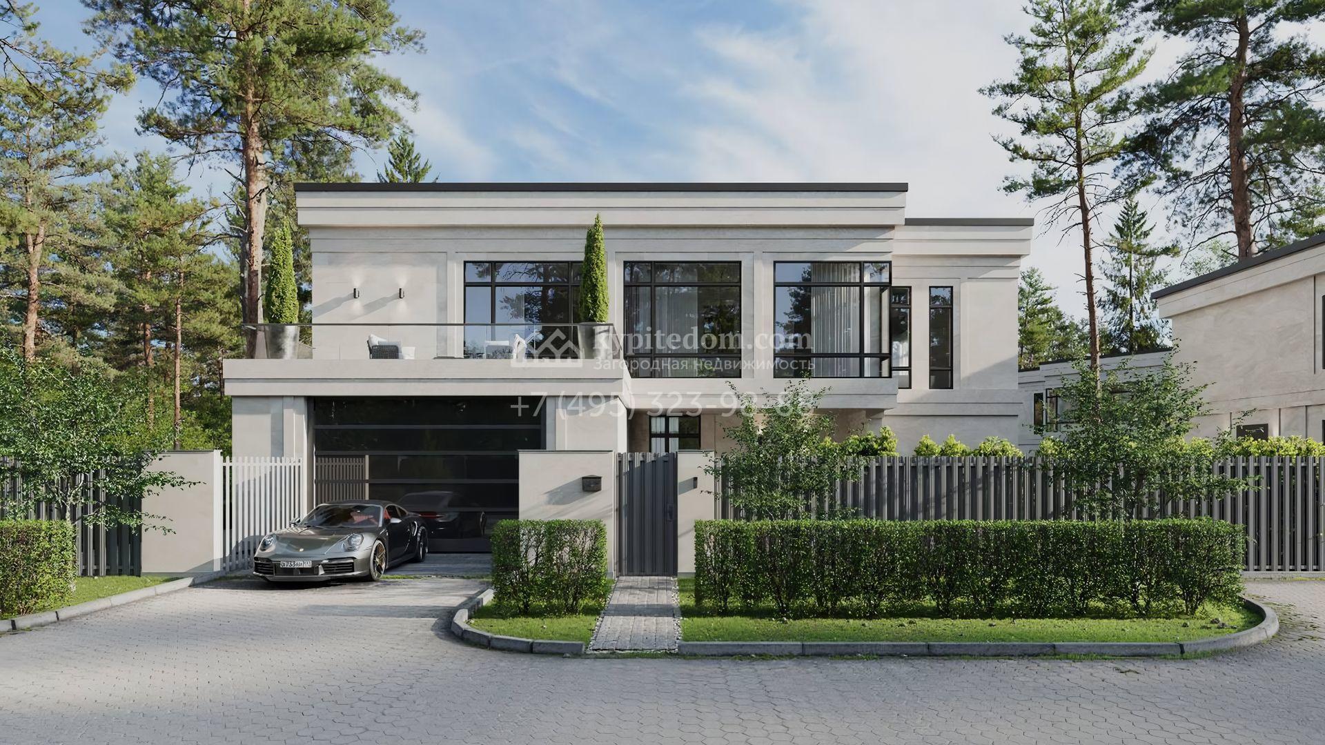 Загородный дом площадью 520 м² по проекту Dream построен на участке 13,1 сотки у леса. Фасад здания с панорамным остеклением выполнен в современном стиле, облицован молочным камнем и декорирован подсветкой. Коттедж без отделки подходит для реализации индивидуальный дизайн-проект, отвечающий каждой потребности. Внутри спланировали несколько спален, гостиную, кухню, гараж и террасу, где можно обустроить зону барбекю. Рядом расположен отдельностоящий гараж на 3 машины с квартирой для персонала на втором этаже общей площадью 118 м². На участке выполнен ландшафтный дизайн, засеян газон и вымощены дорожки.