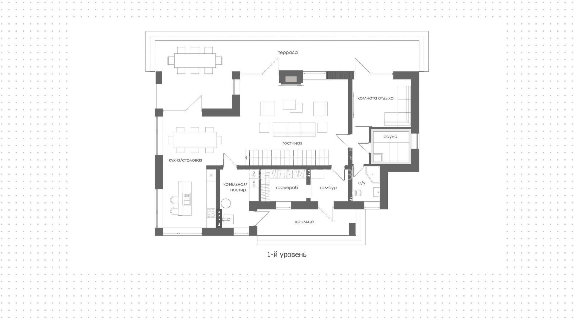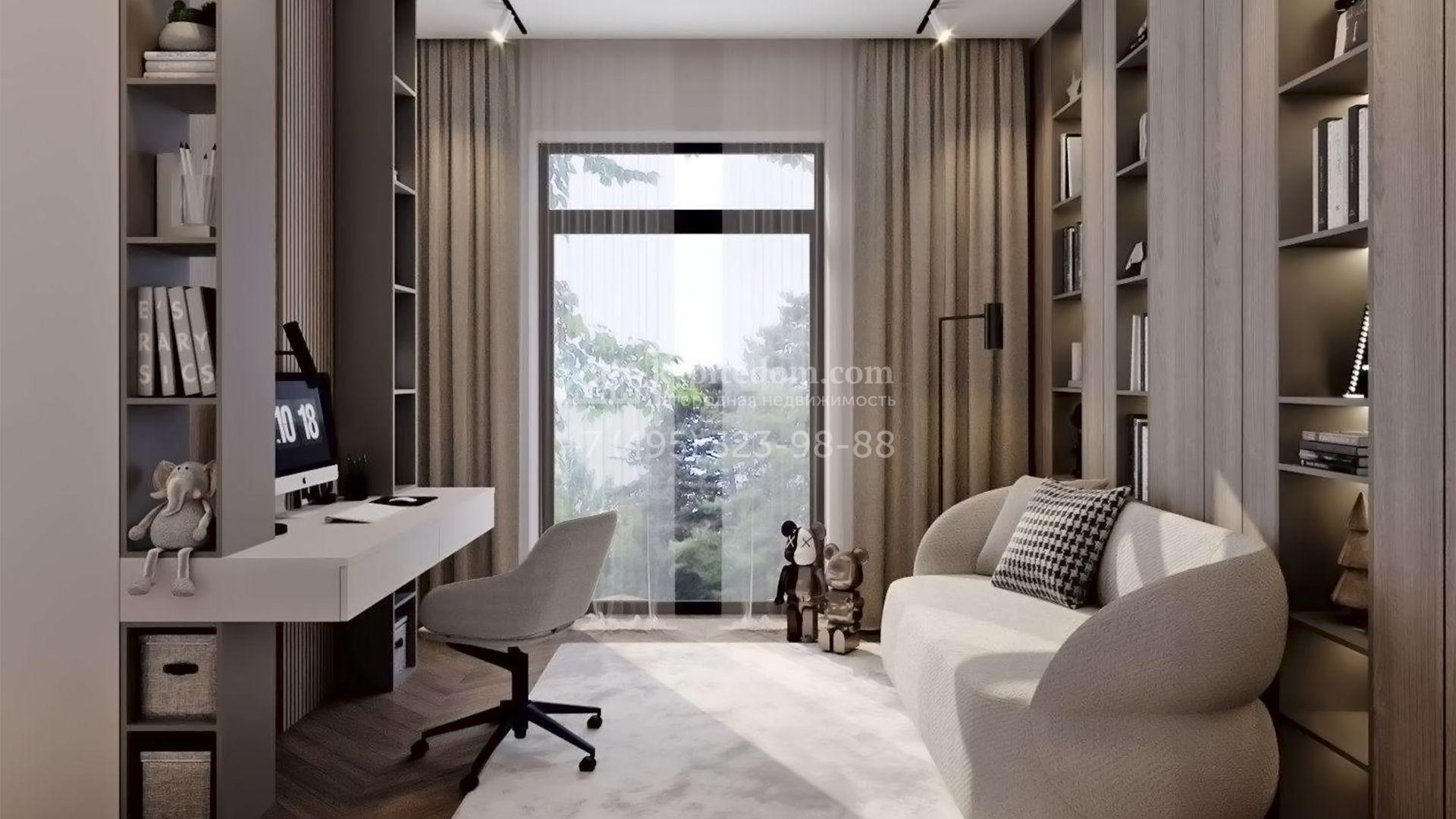 В двухэтажном доме спланировали просторную гостиную, объединенную единым пространством с кухней-столовой, террасу, кабинет, 3 спальни, 3 гардеробные и SPA-зону с сауной и комнатой отдыха. На участке с ландшафтным дизайном есть возможность для постройки гаража или навеса для машин, а на заднем дворе можно оборудовать открытый бассейн или же обустроить зону для барбекю для уютных вечеров в кругу семьи и друзей.
