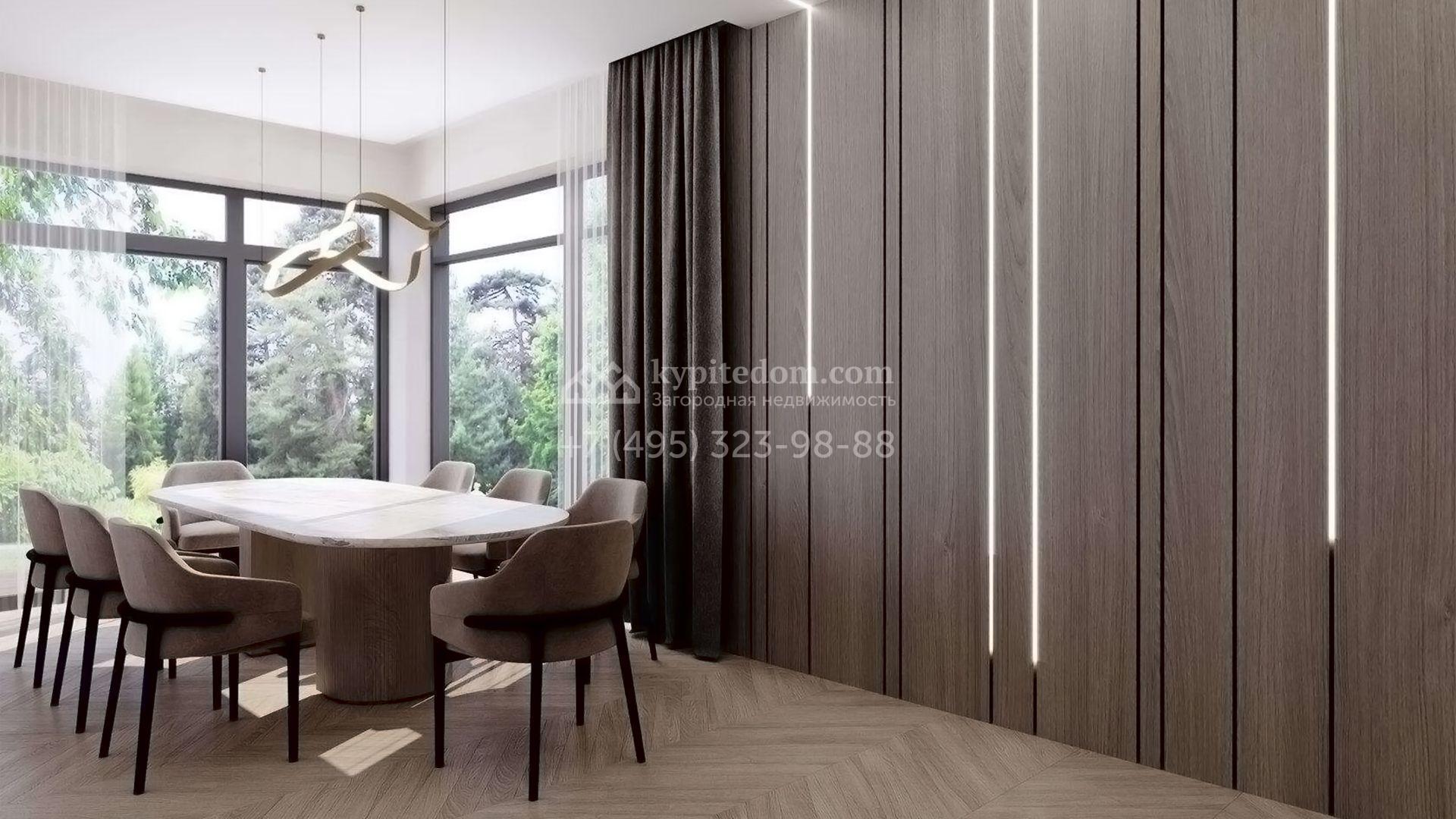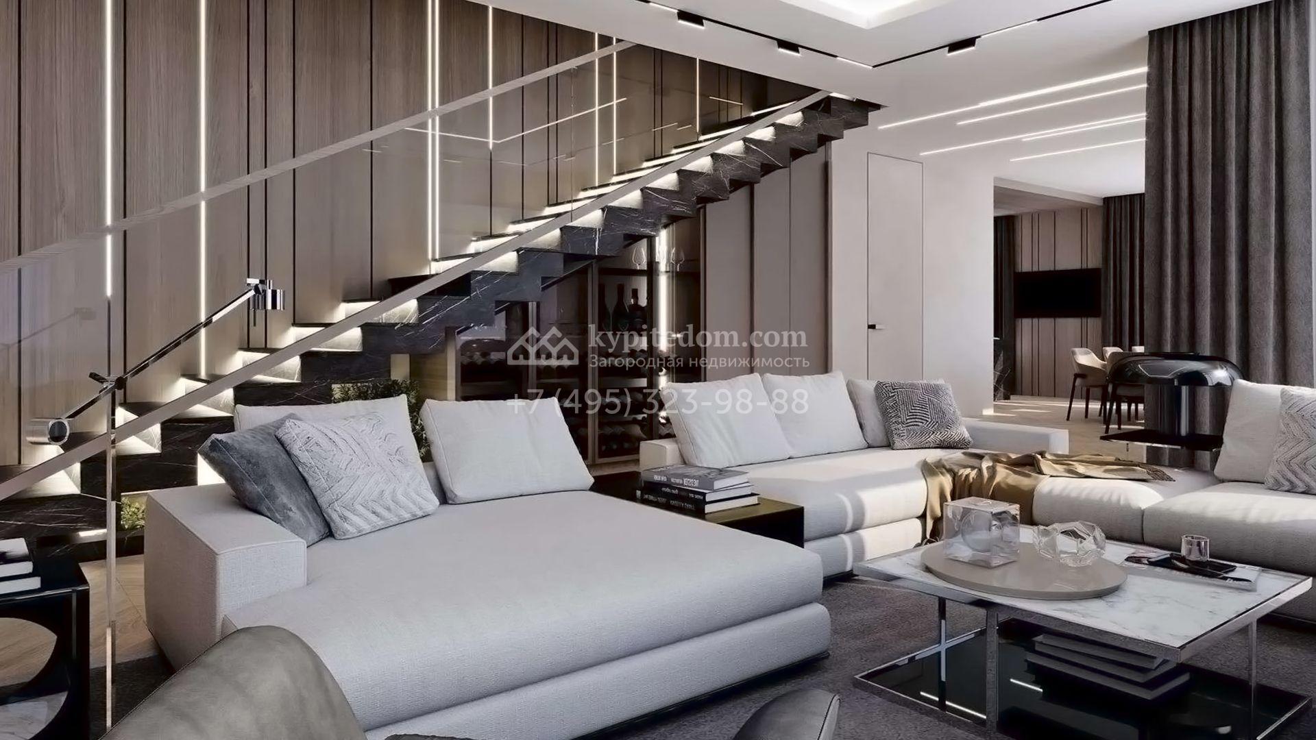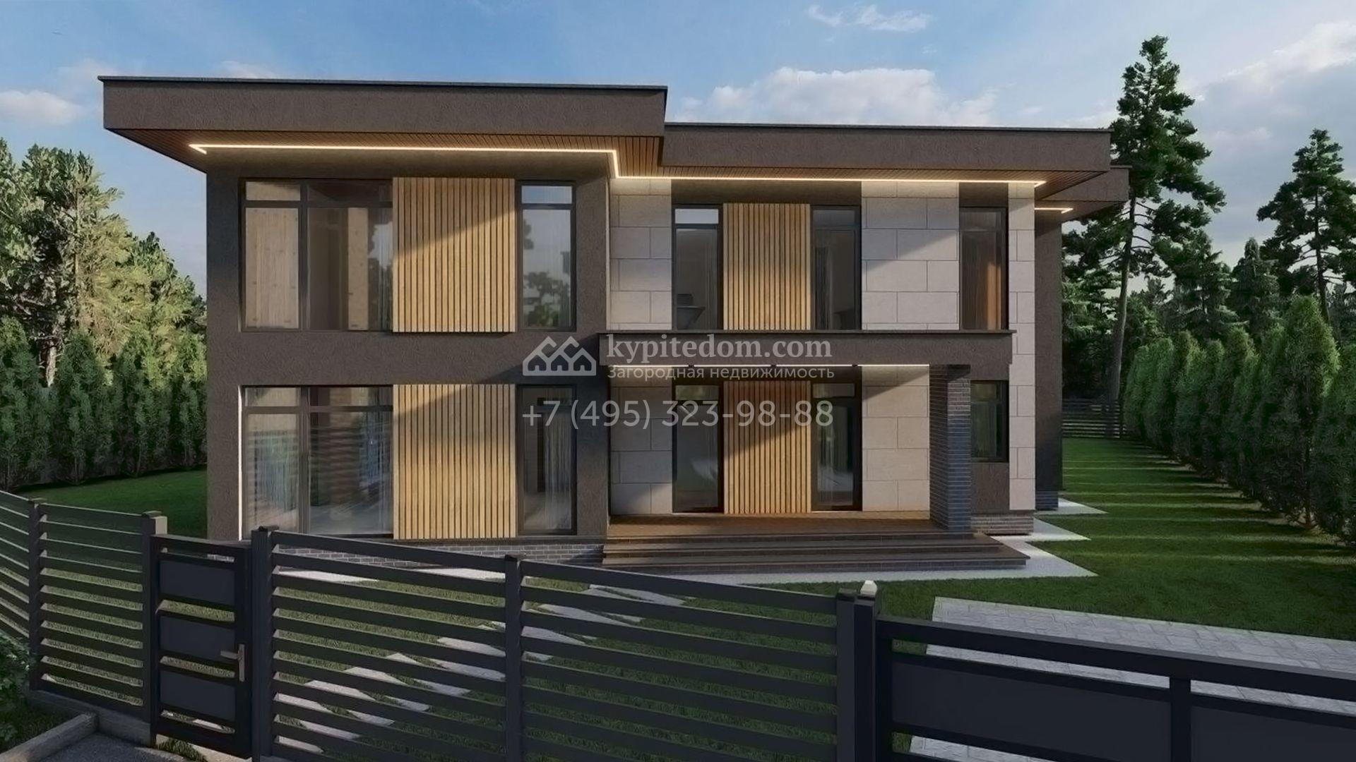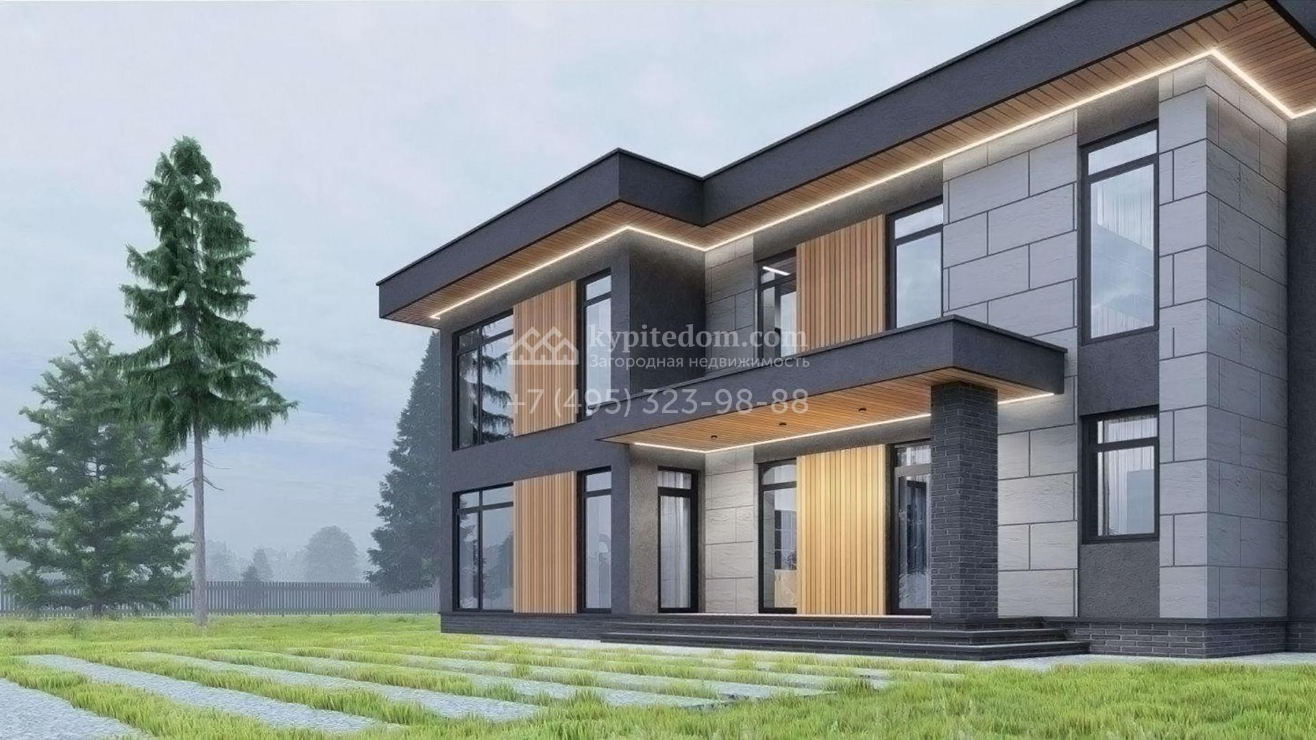 Новый загородный дом площадью 289 м² расположен на прилесном участке 12 соток. Современный фасад с панорамными окнами и подсветкой, выдержанный в спокойных тонах, облицован высококачественными материалами и сочетает в себе фактуры камня и дерева. Коттедж без отделки позволяет будущим владельцам выбрать стиль интерьера, финишные покрытия, мебель и технику на свой вкус или же воспользоваться готовым дизайн-проектом.