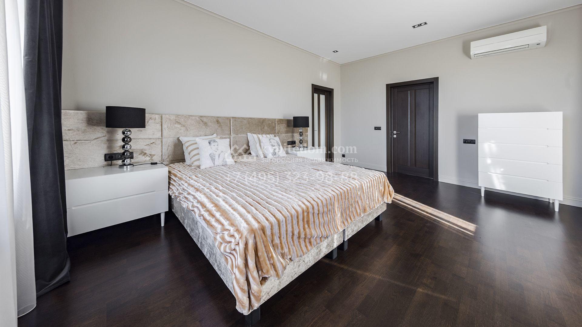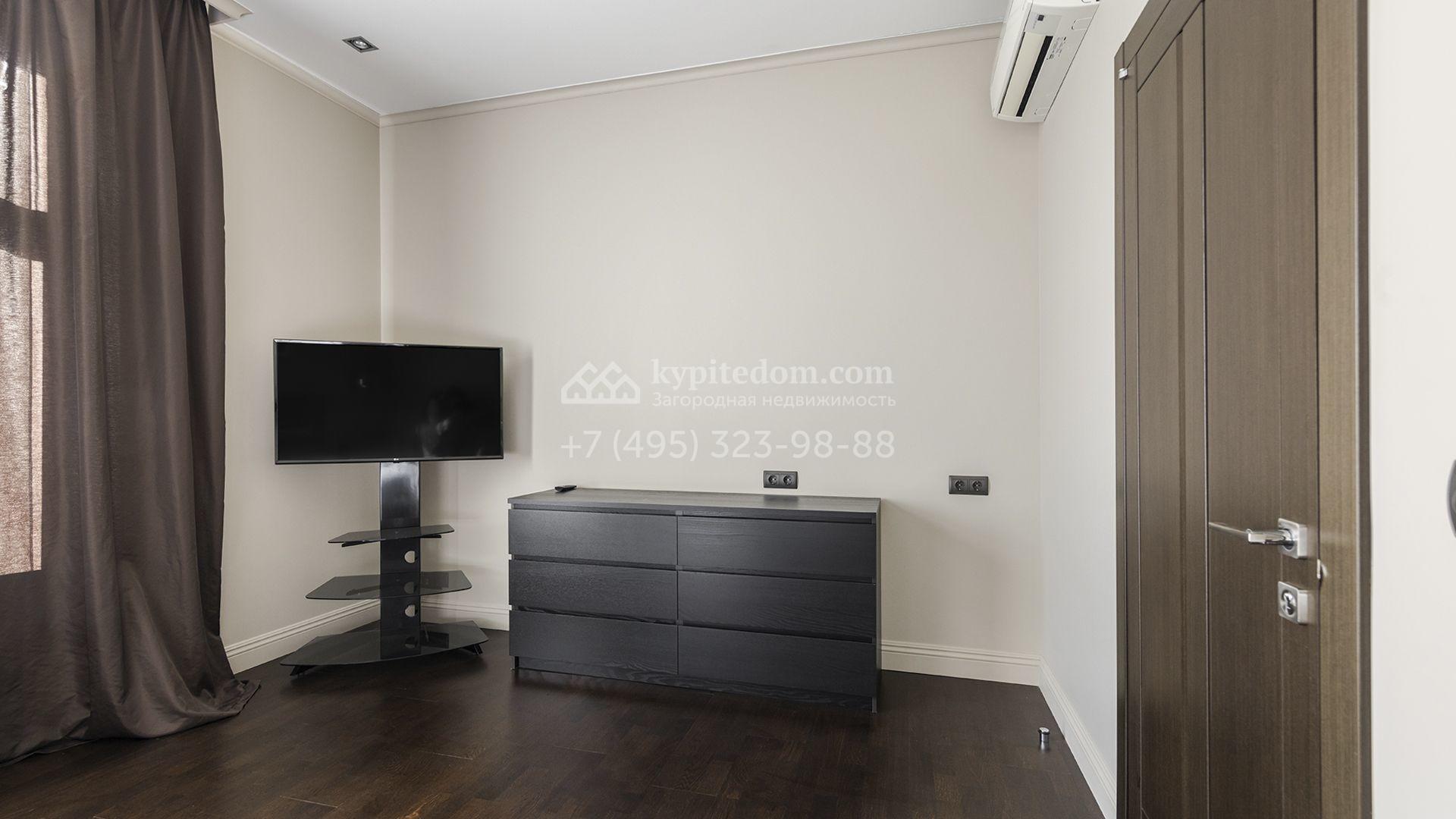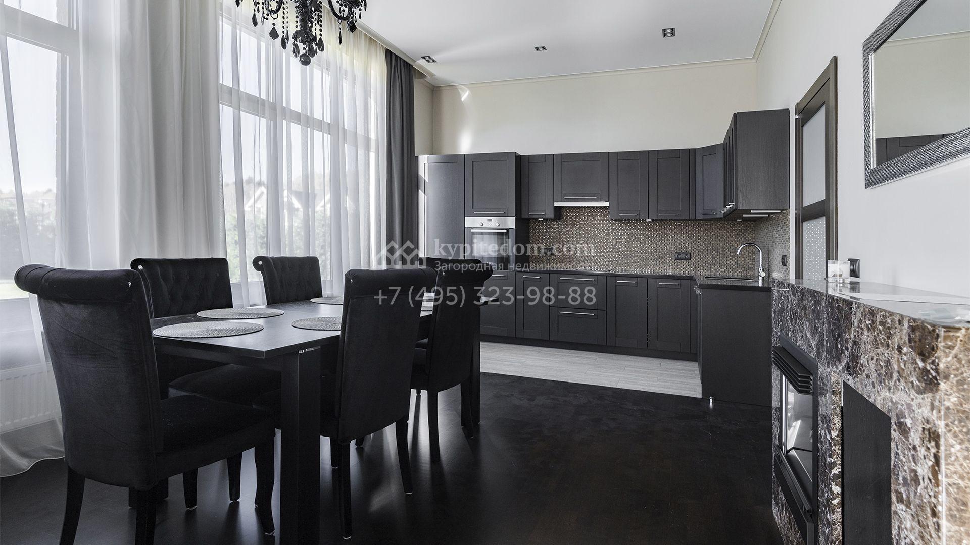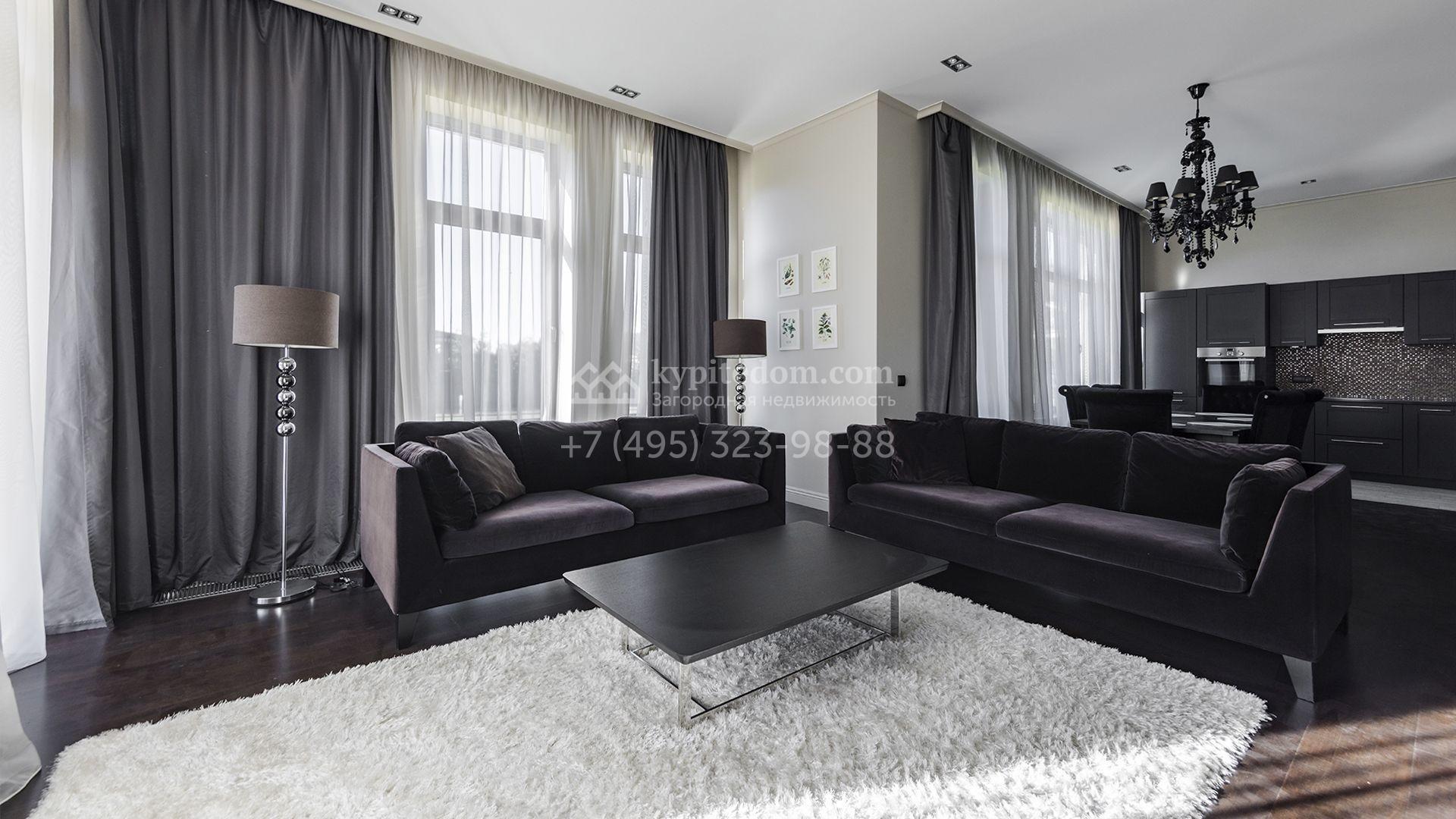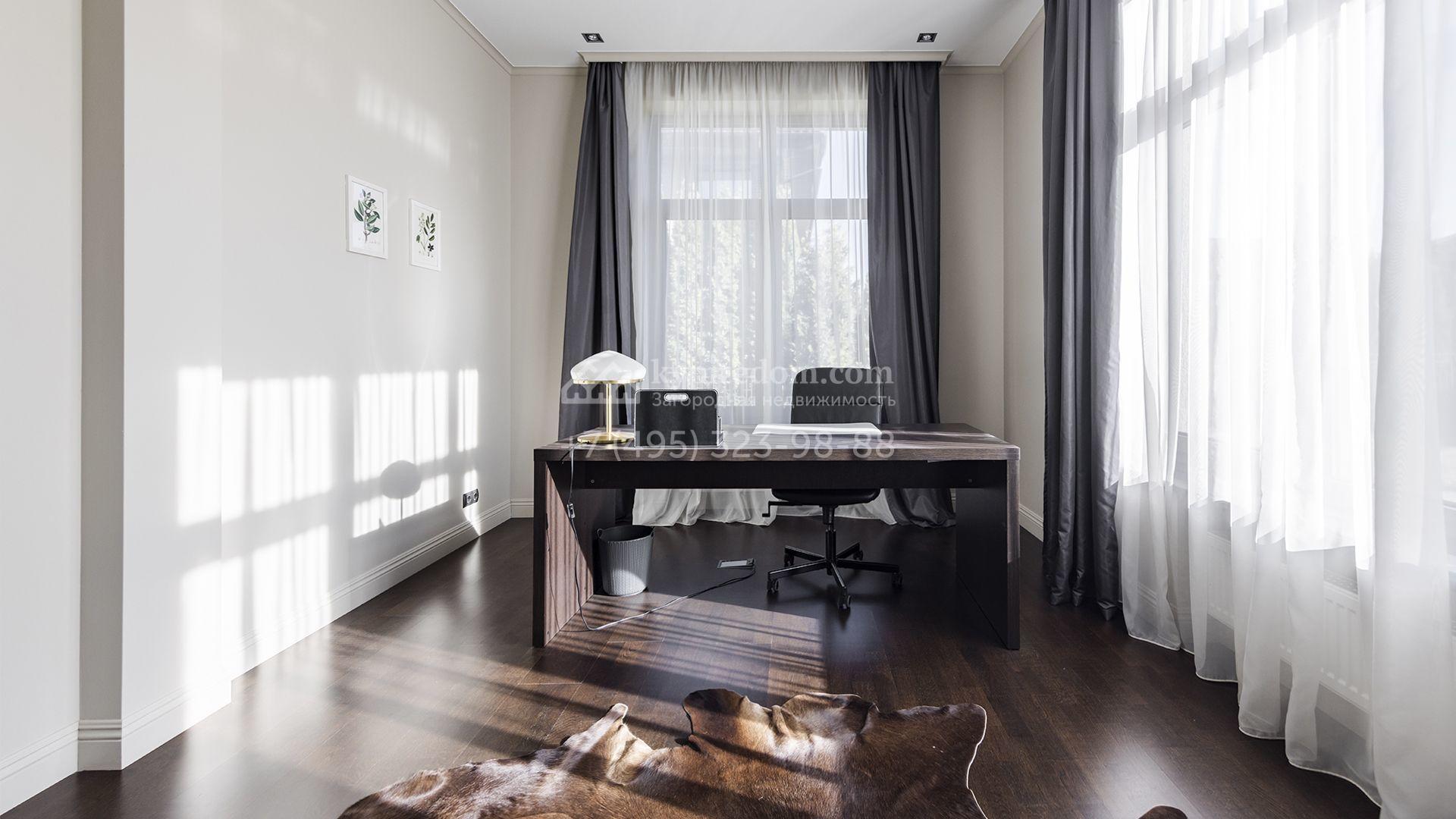 Загородный дом площадью 214 м² расположен на полевом участке 17 соток. Современный фасад облицован штукатуркой, клинкерным кирпичом, а также декорирован белоснежными колоннами и плиткой с фактурой камня по цоколю. Интерьер выдержан в спокойных тонах и дополнен комфортной мебелью, бытовой техникой и сантехникой.