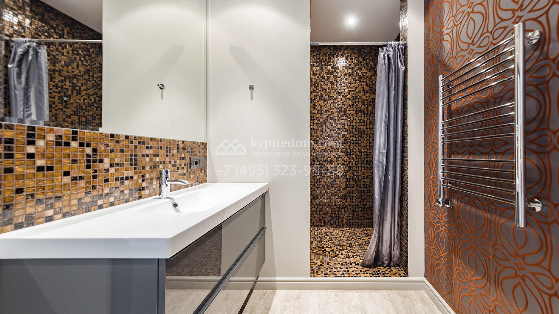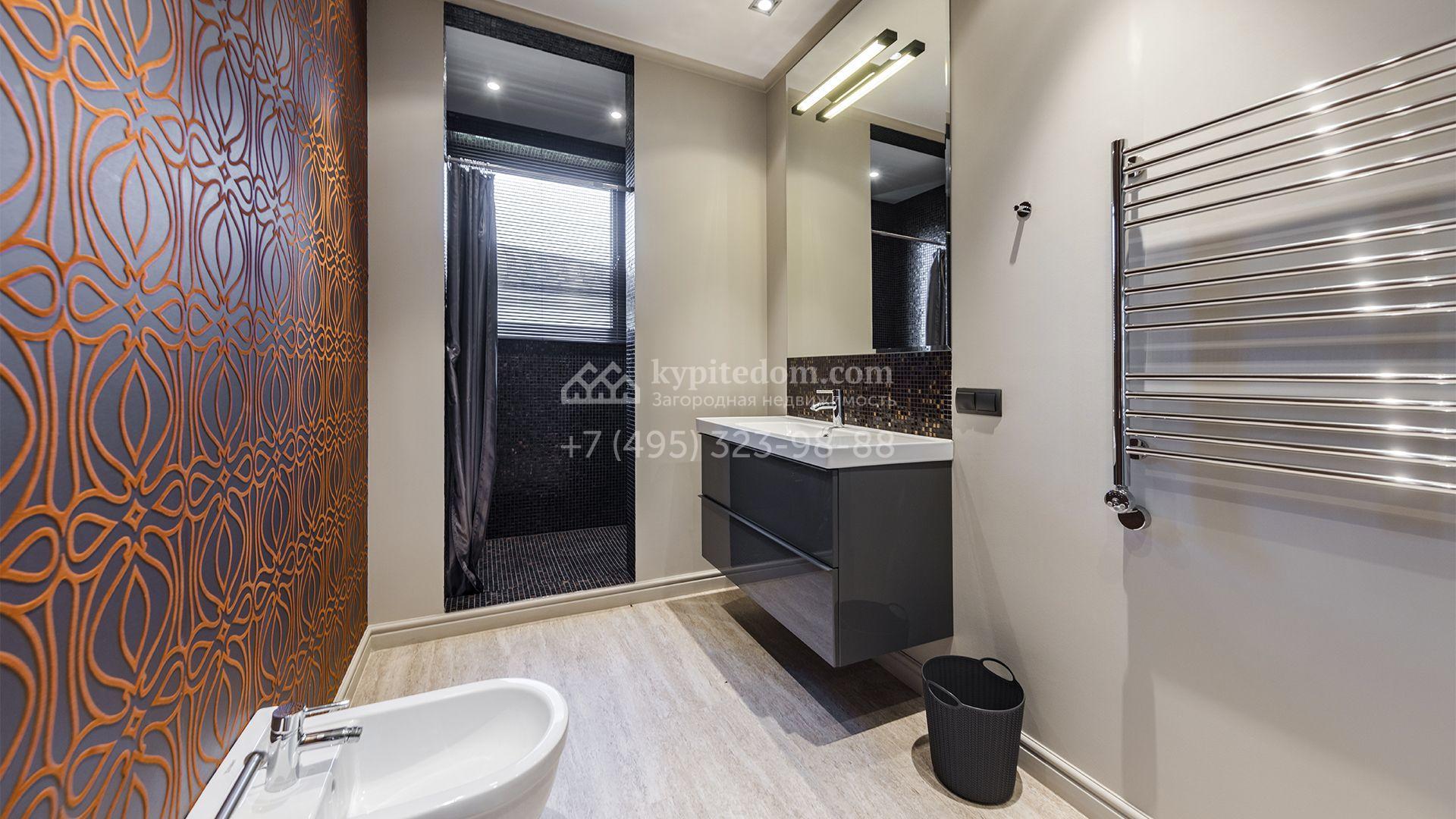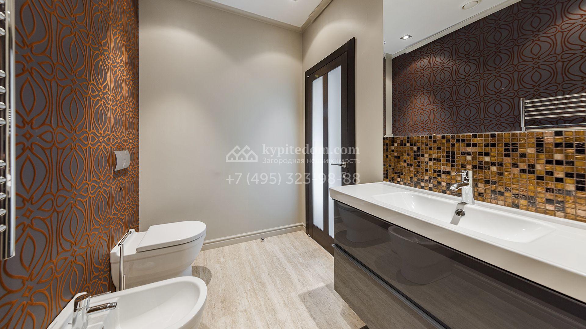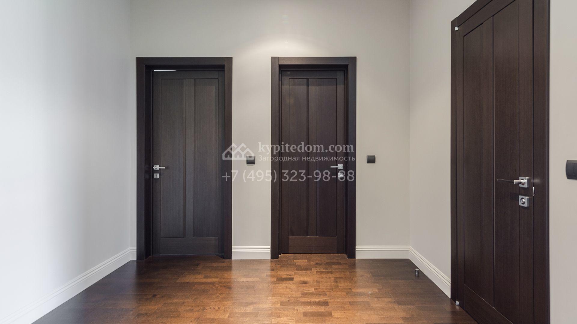 Загородный дом площадью 214 м² расположен на полевом участке 17 соток. Современный фасад облицован штукатуркой, клинкерным кирпичом, а также декорирован белоснежными колоннами и плиткой с фактурой камня по цоколю. Интерьер выдержан в спокойных тонах и дополнен комфортной мебелью, бытовой техникой и сантехникой.