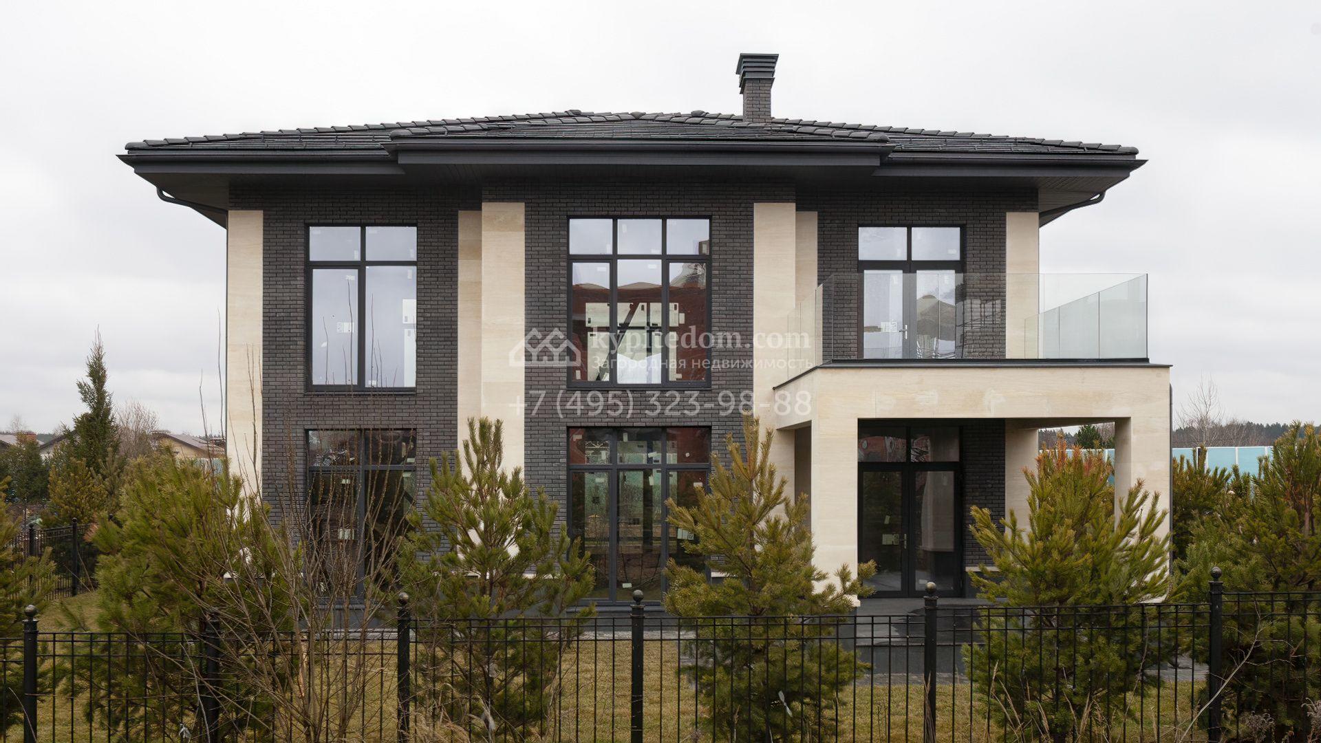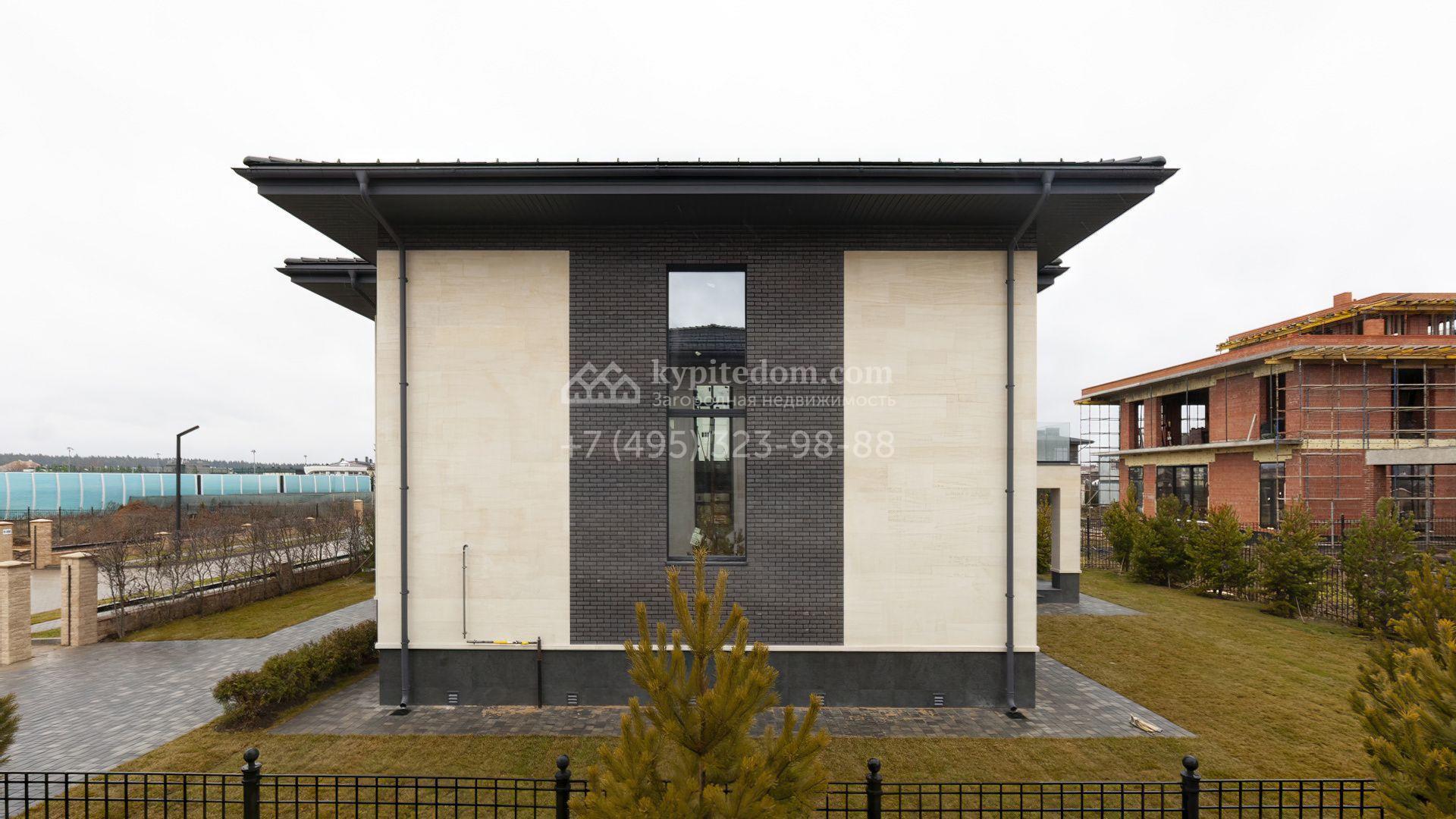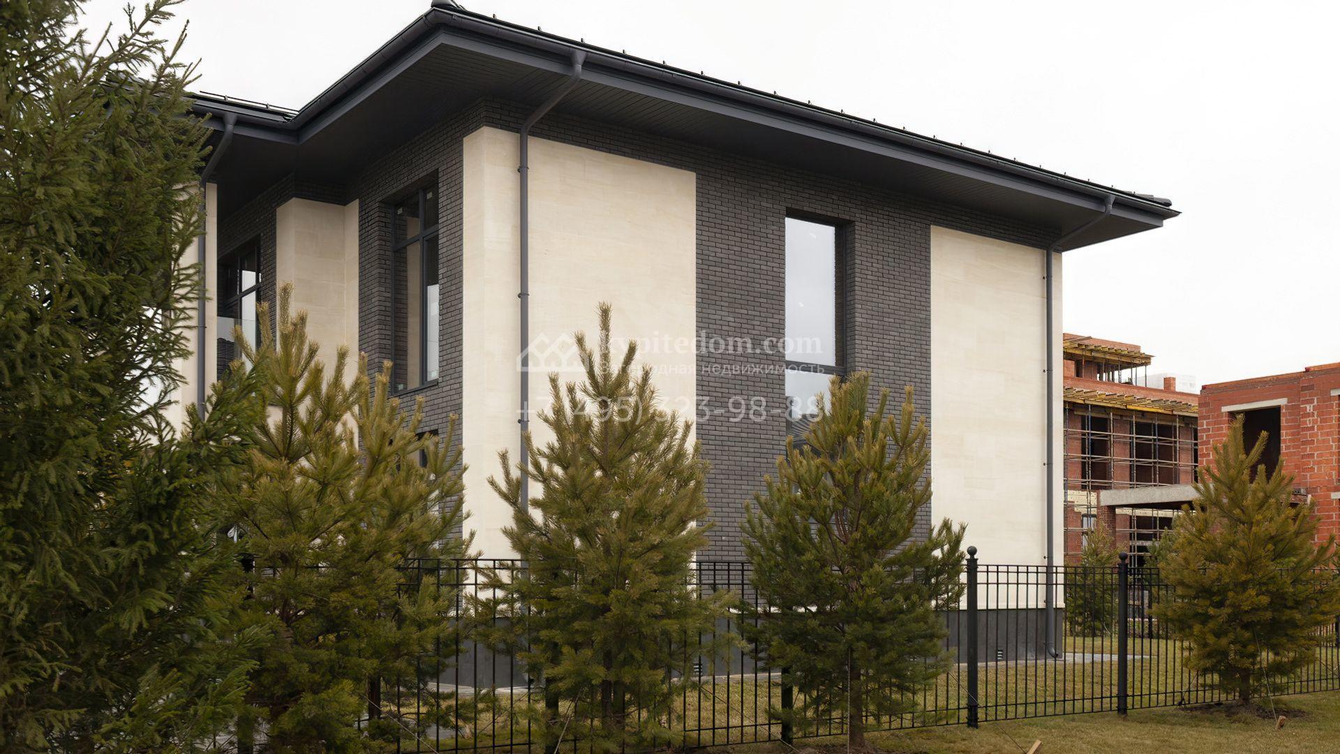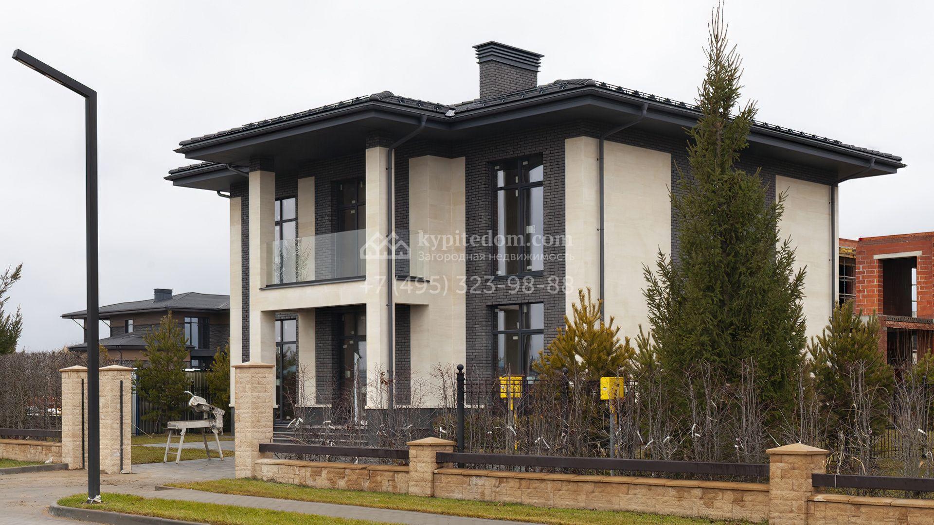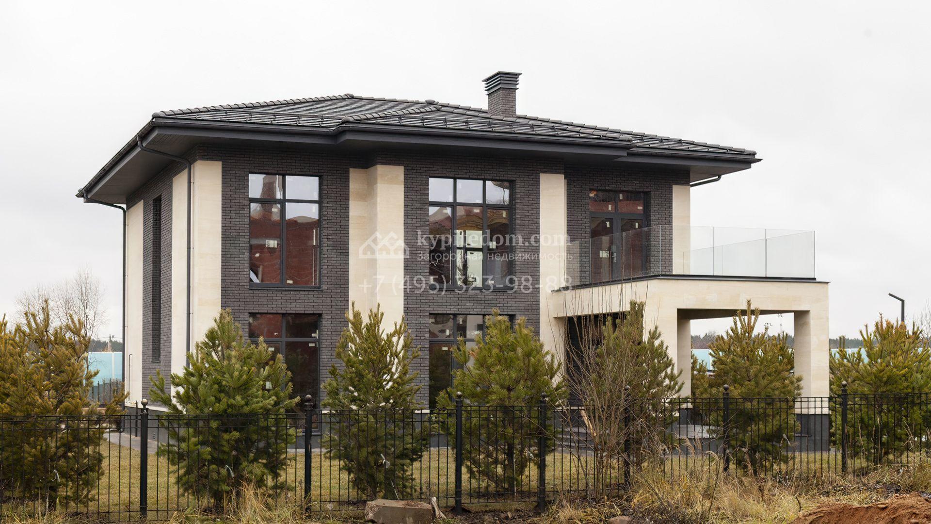 Новый загородный коттедж площадью 307 м² расположен на полевом участке правильной формы 8,2 сотки. Фасад здания с выступающей крышей выполнен в неоклассическом стиле, отделан натуральными песчаником и планкеном в серо-молочной гамме, входная группа декорирована колоннами. Отсутствие отделки позволяет будущим владельцам выбрать финишные покрытия, мебель и технику на свой вкус. Потолки высотой 3,3 метра и панорамное остекление наполняют дом воздухом и солнечными лучами.