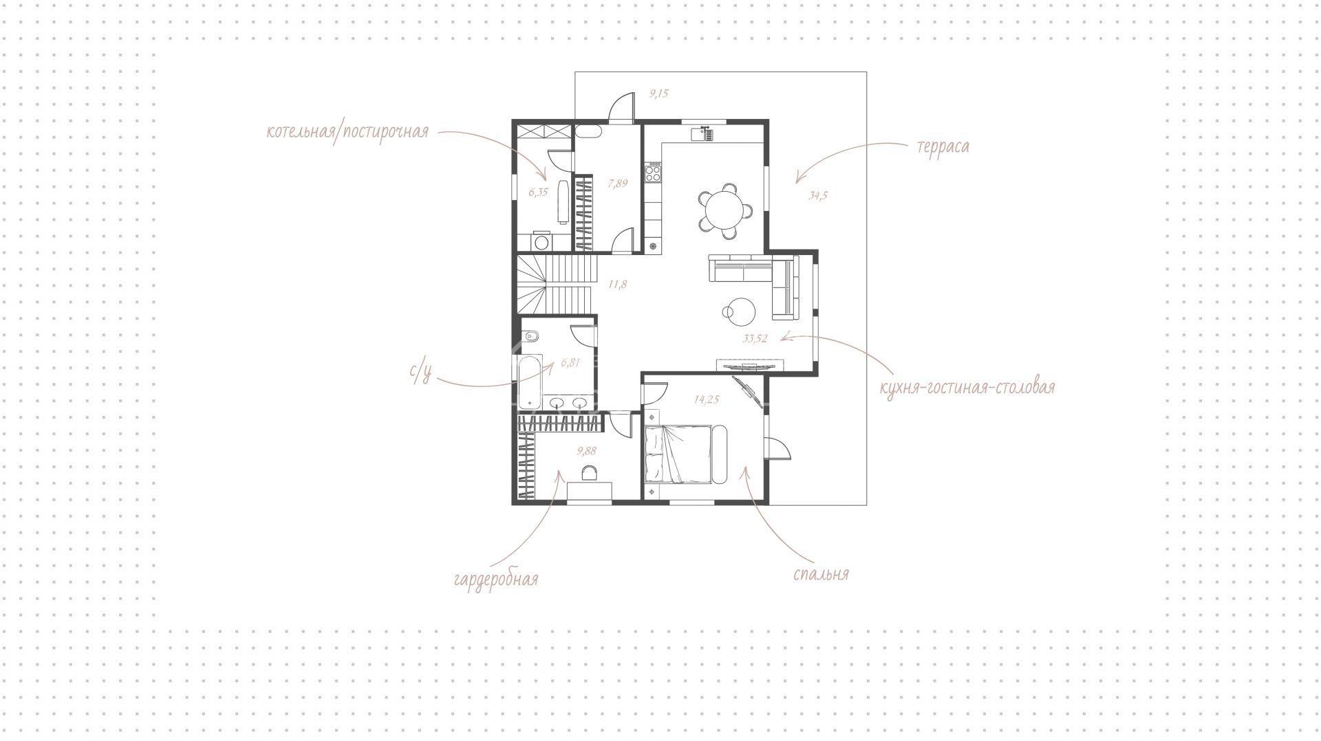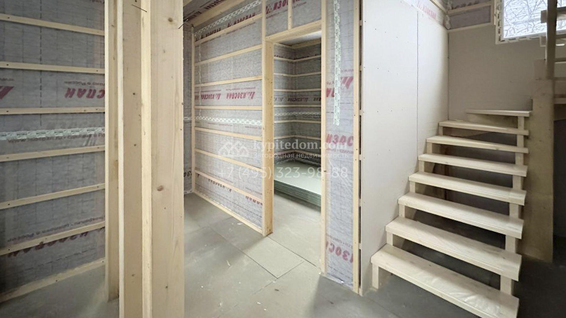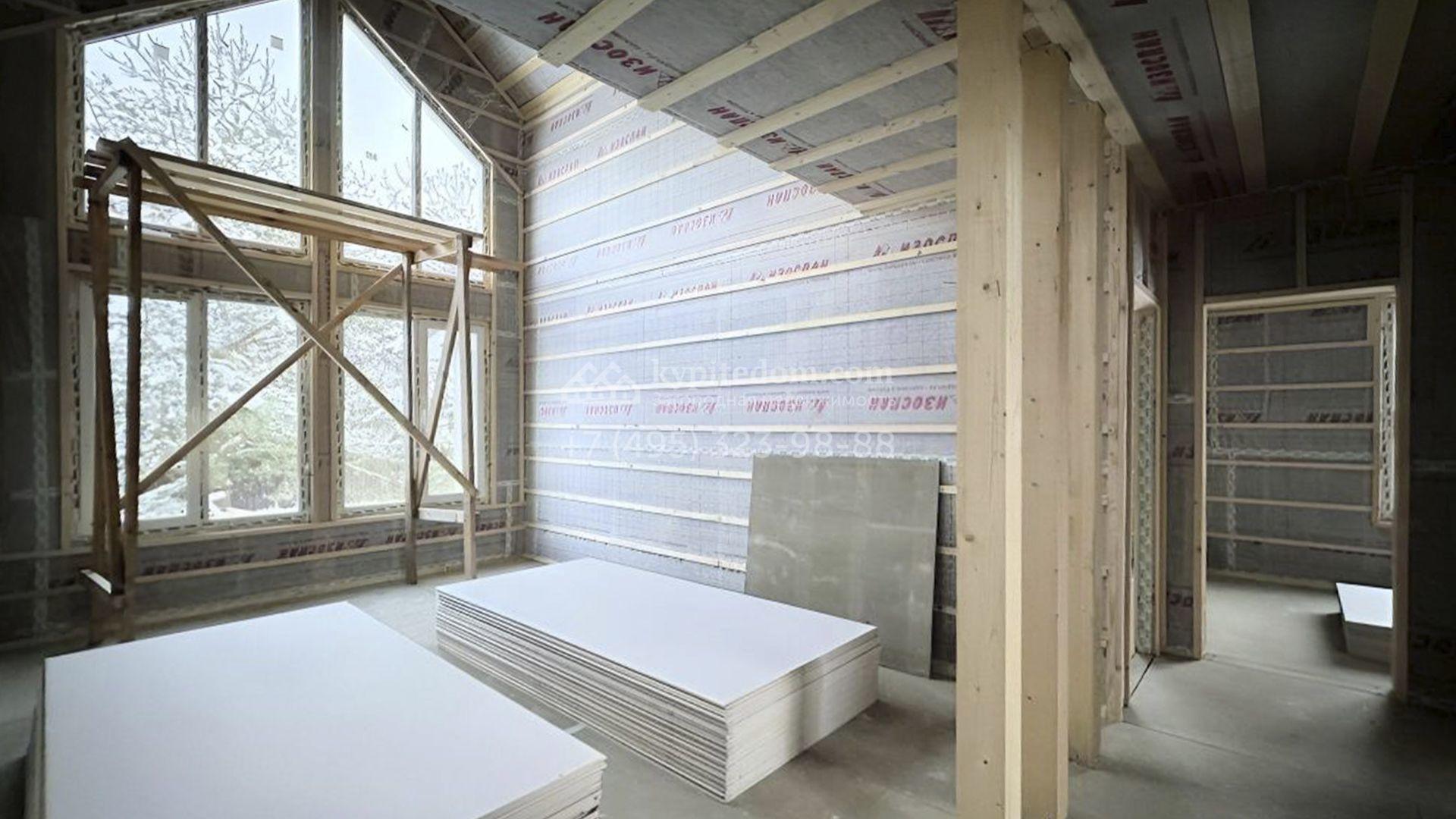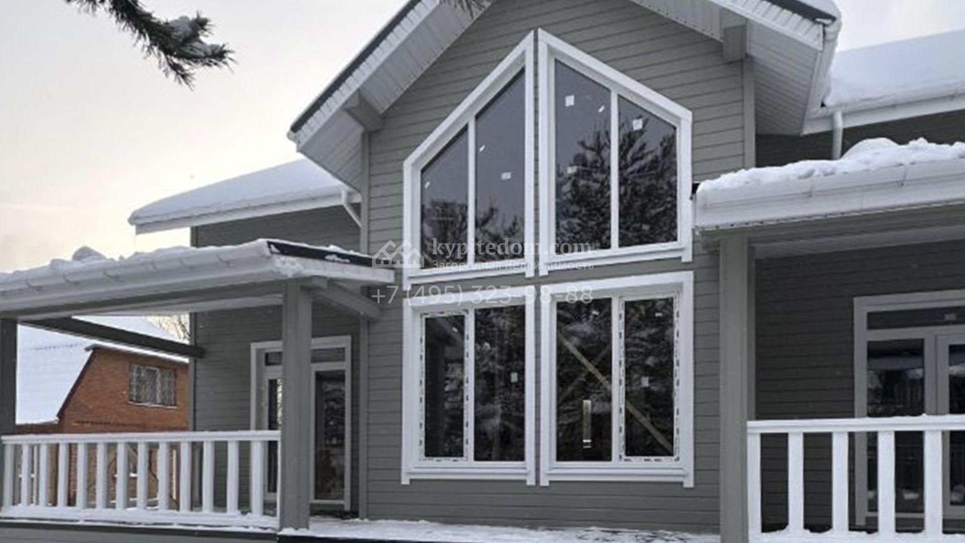 Новый загородный коттедж площадью 219 м² расположен на полевом участке 15 соток. Современный фасад облицован панелями с фактурой дерева благородного серого оттенка и дополнены белоснежными наличниками. Большие окна и второй свет наполняют дом светом и воздухом. Интерьеры выполнены в формате white box — чистовая отделка без финишных покрытий позволяет будущим владельцам реализовать любые дизайнерские решения и выбрать мебель и технику согласно своим предпочтениям. Планировка включает просторную гостиную-кухню-столовую с выходом на террасу и 3 спальни, включая мастер-спальню с гардеробной. Участок правильной формы благоустроен — здесь засеян газон и растут декоративные деревья.