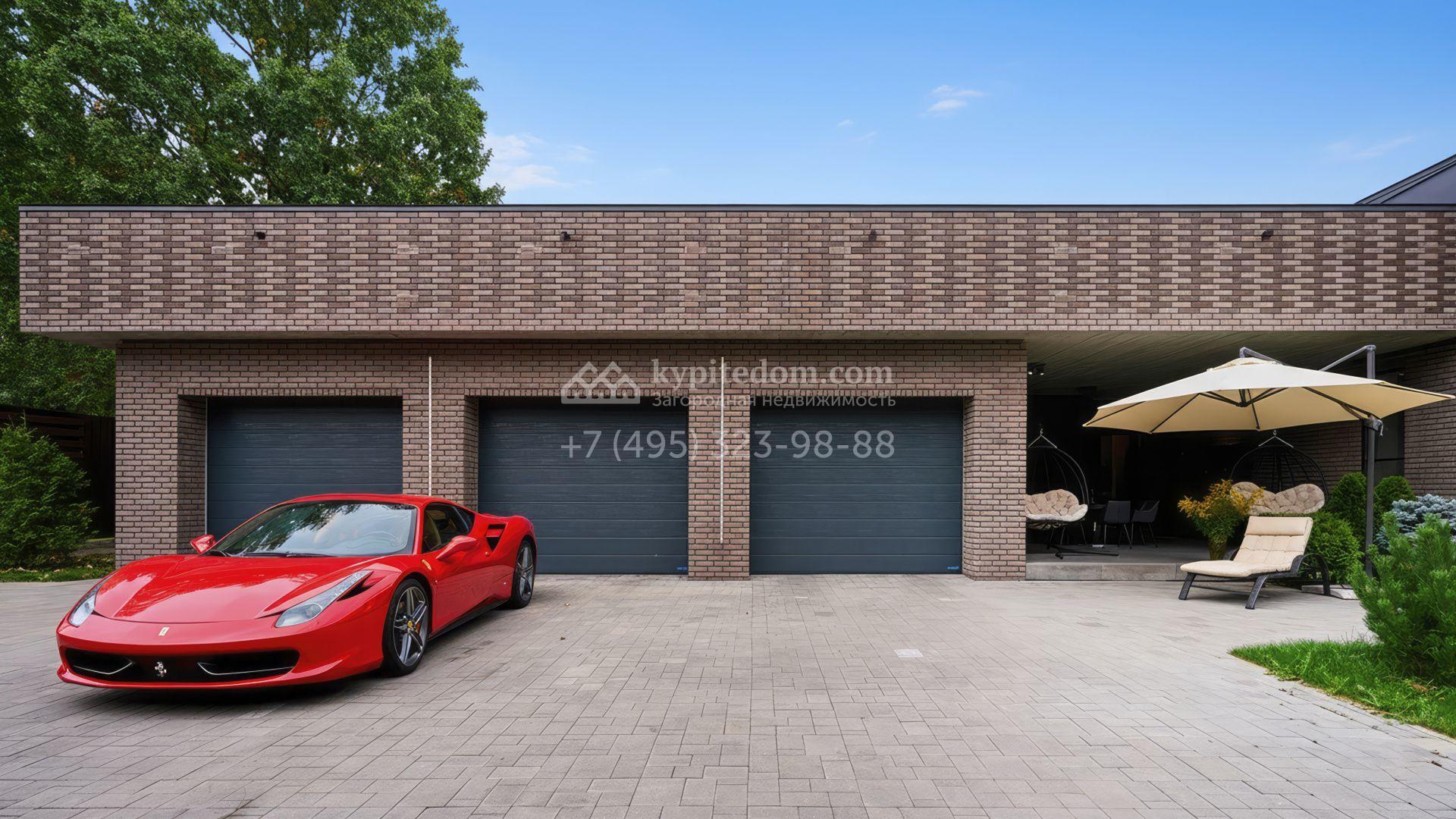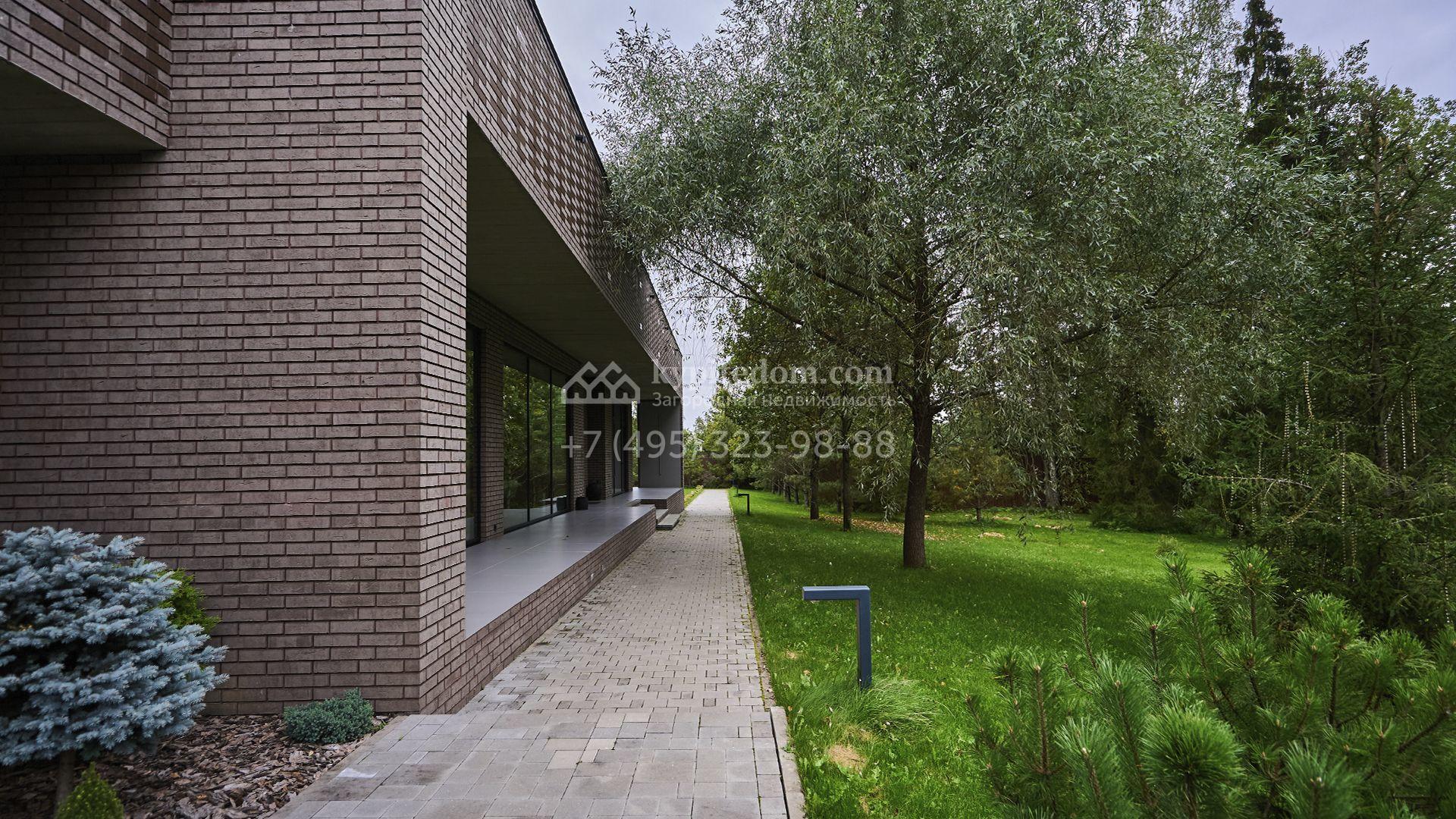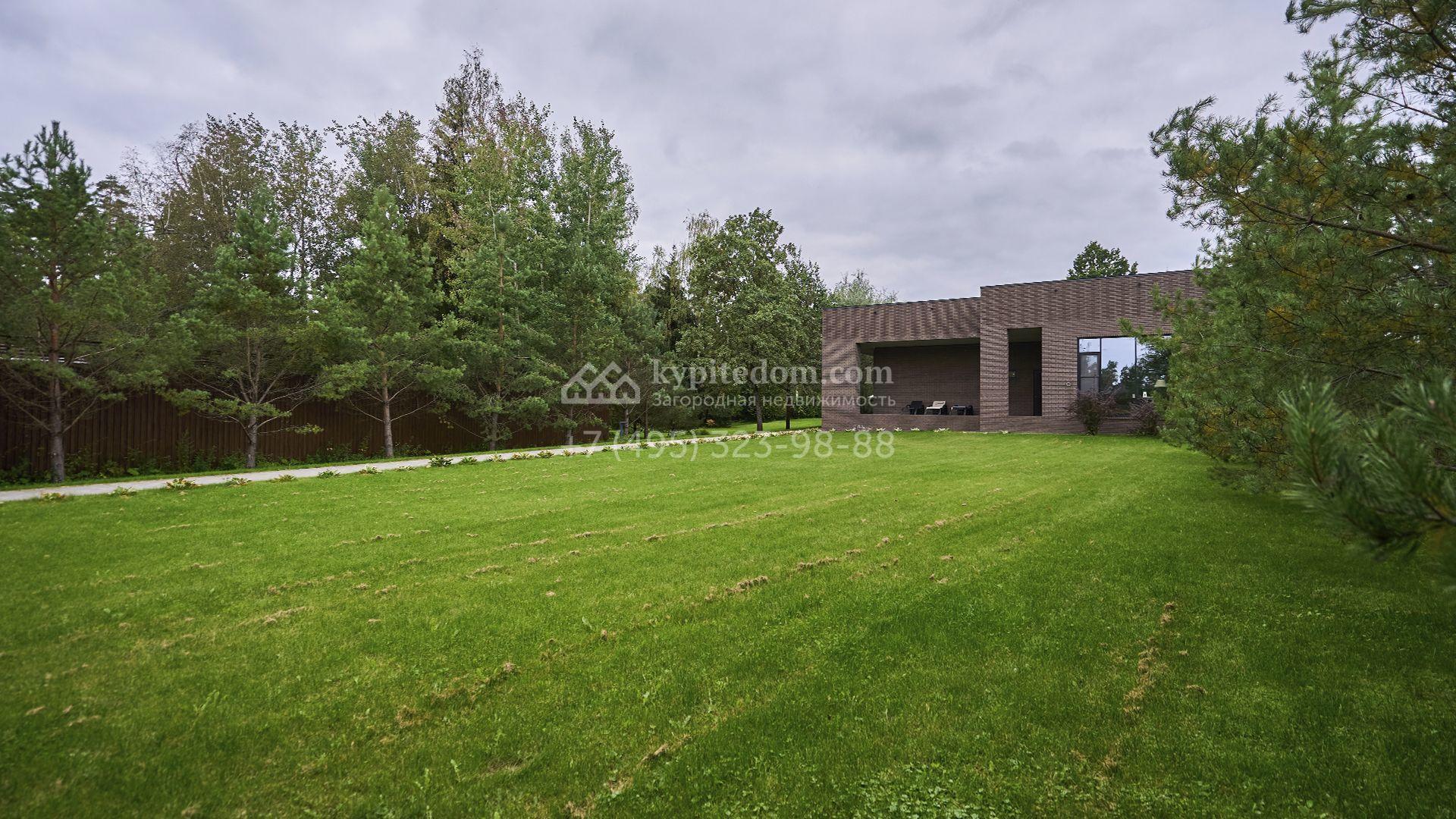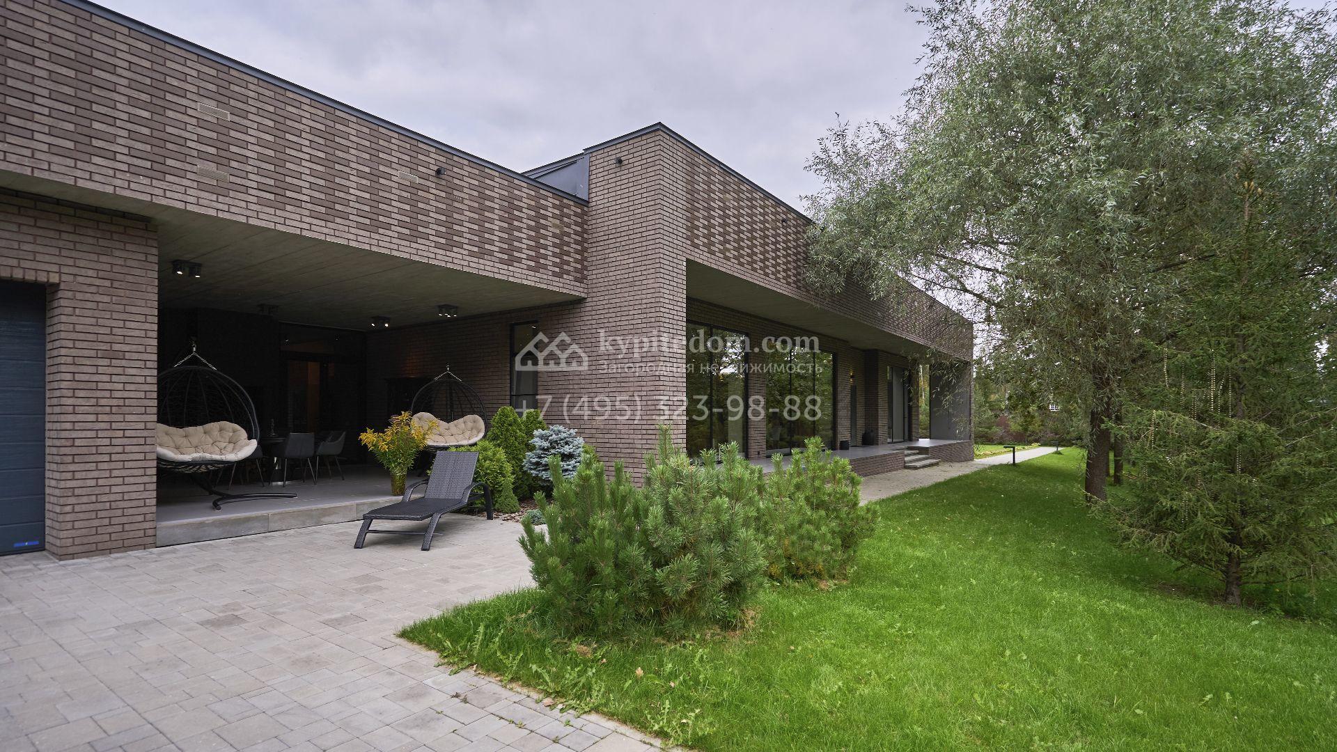 Новый загородный коттедж площадью 500 м² расположен на просторном полевом участке 42,5 сотки в тихой части посёлка. Современный фасад гармонично вписан в ландшафт, облицован клинкерным кирпичом и дополнен подсветкой, эффектно подчеркивающей строгие линии здания в вечернее время.