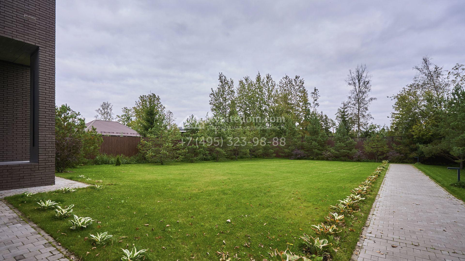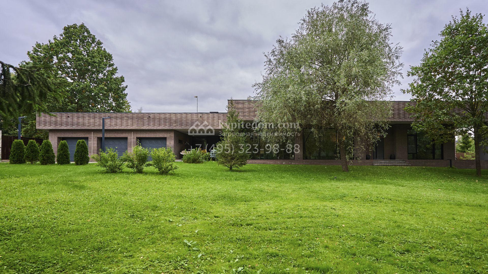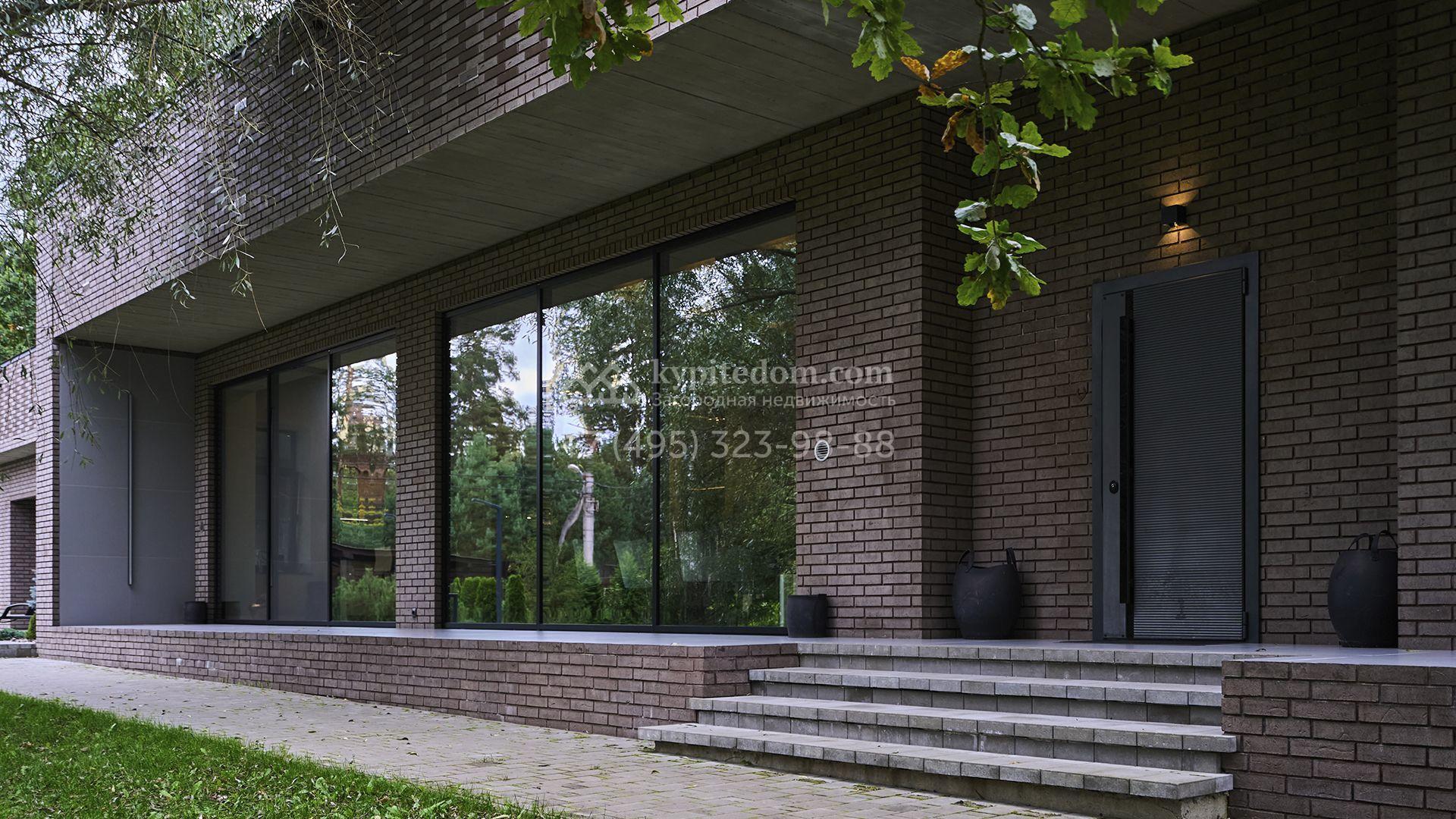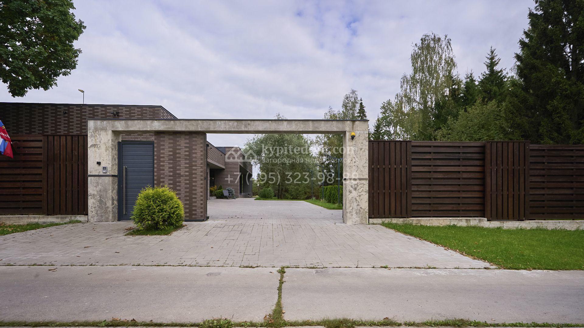 Новый загородный коттедж площадью 500 м² расположен на просторном полевом участке 42,5 сотки в тихой части посёлка. Современный фасад гармонично вписан в ландшафт, облицован клинкерным кирпичом и дополнен подсветкой, эффектно подчеркивающей строгие линии здания в вечернее время.