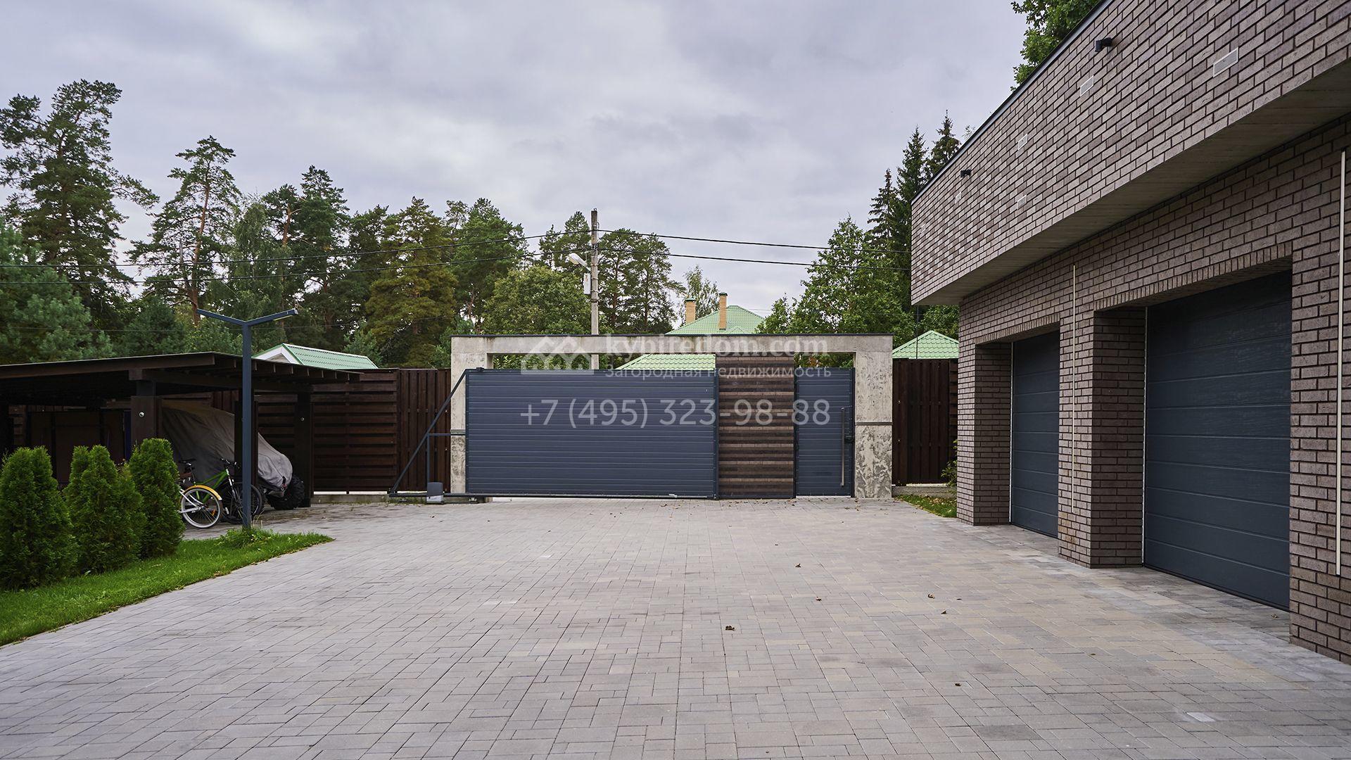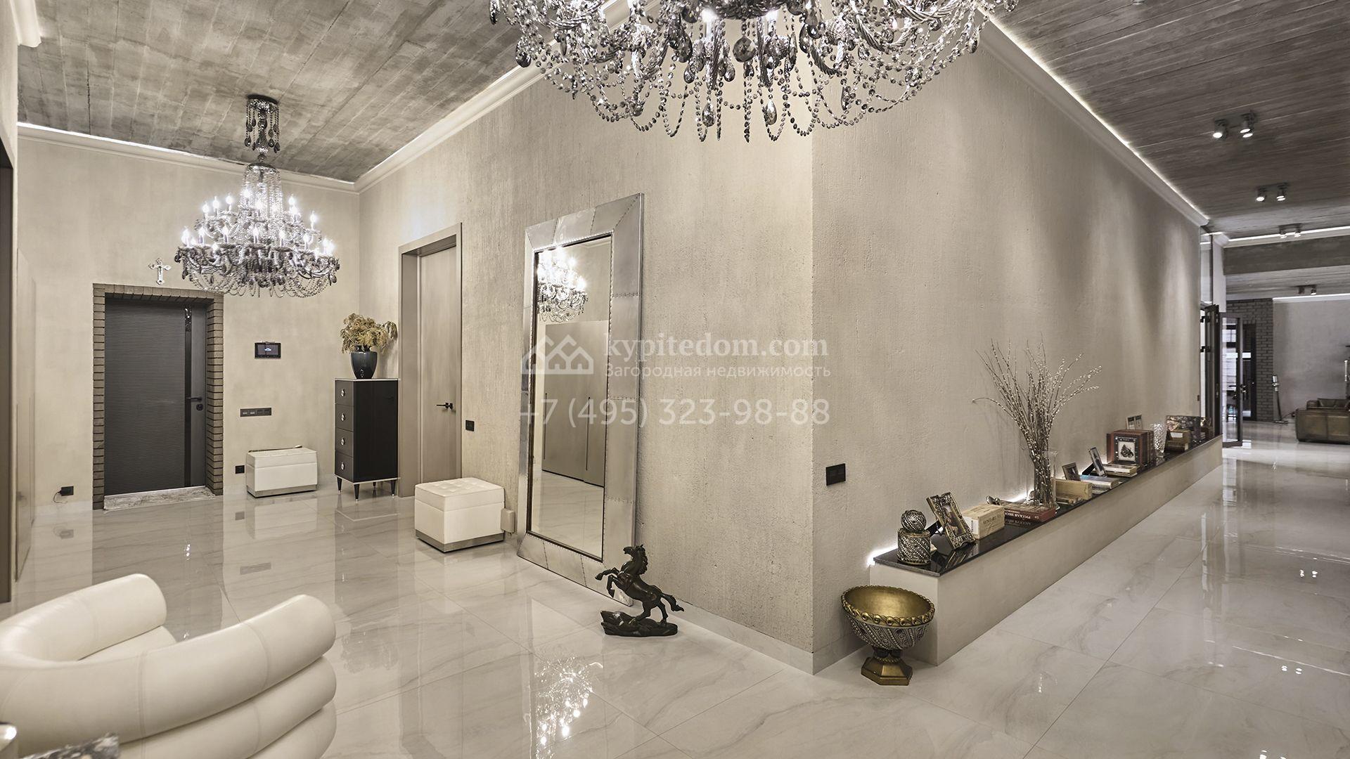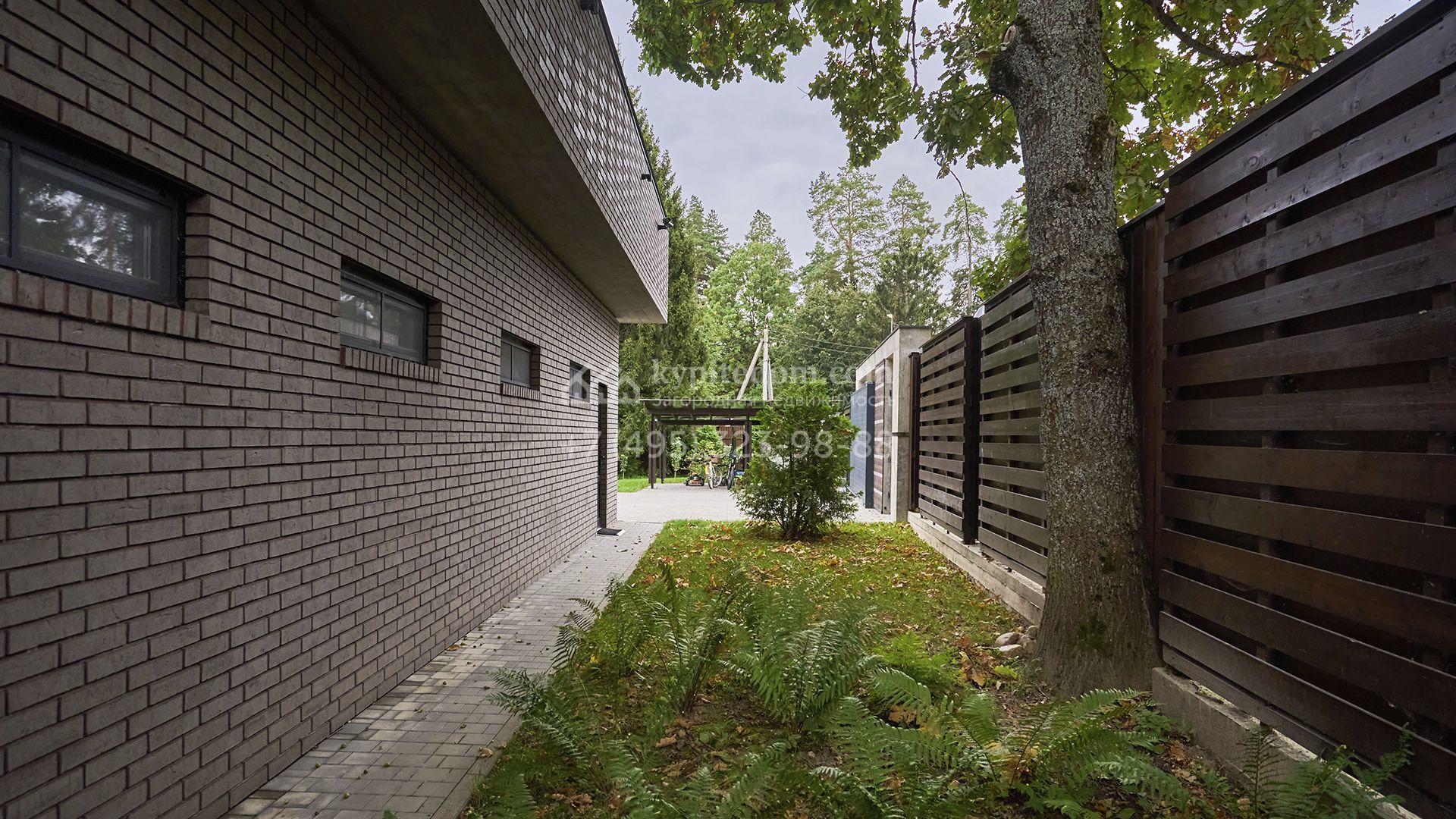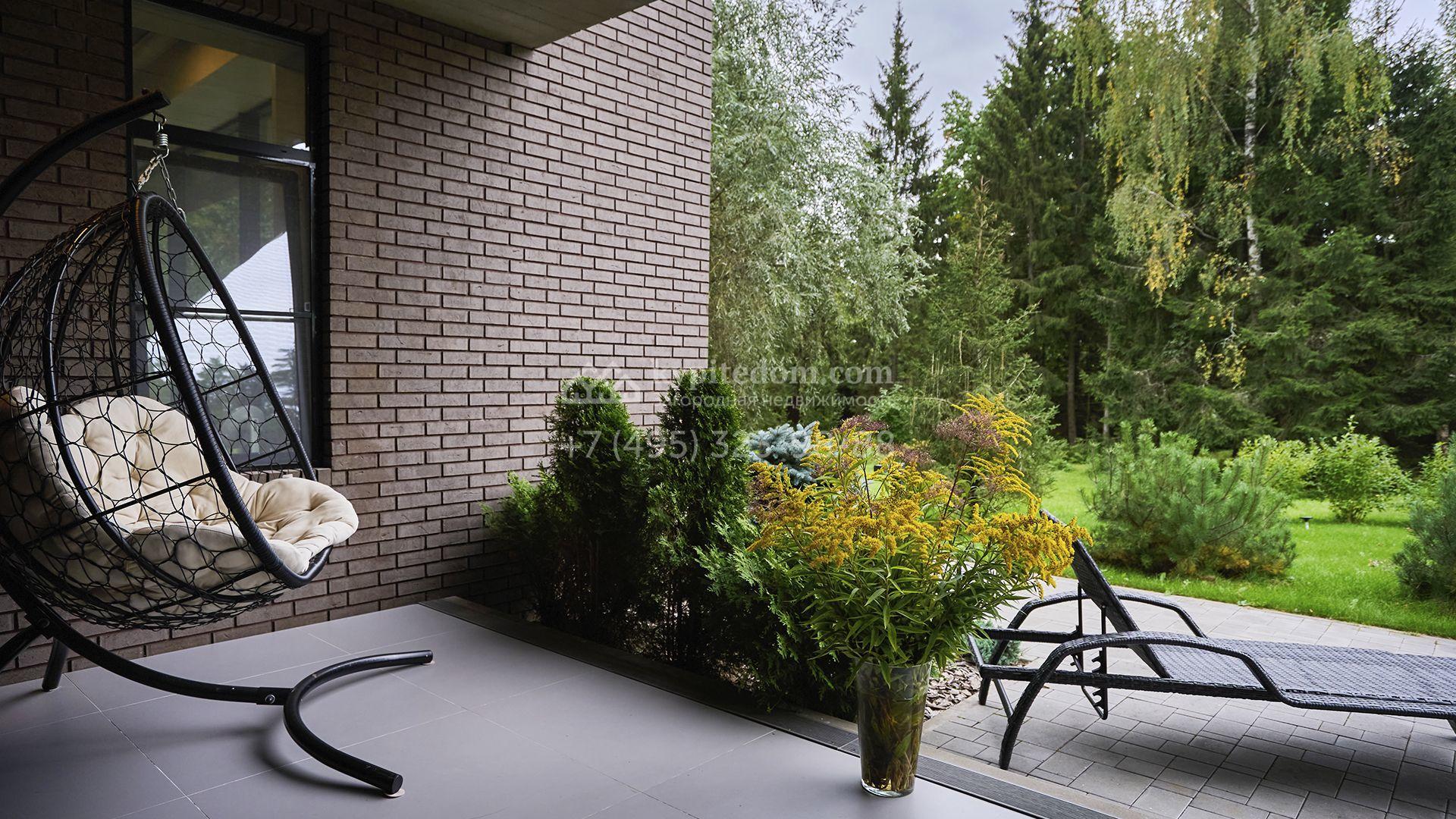 Новый загородный коттедж площадью 500 м² расположен на просторном полевом участке 42,5 сотки в тихой части посёлка. Современный фасад гармонично вписан в ландшафт, облицован клинкерным кирпичом и дополнен подсветкой, эффектно подчеркивающей строгие линии здания в вечернее время.