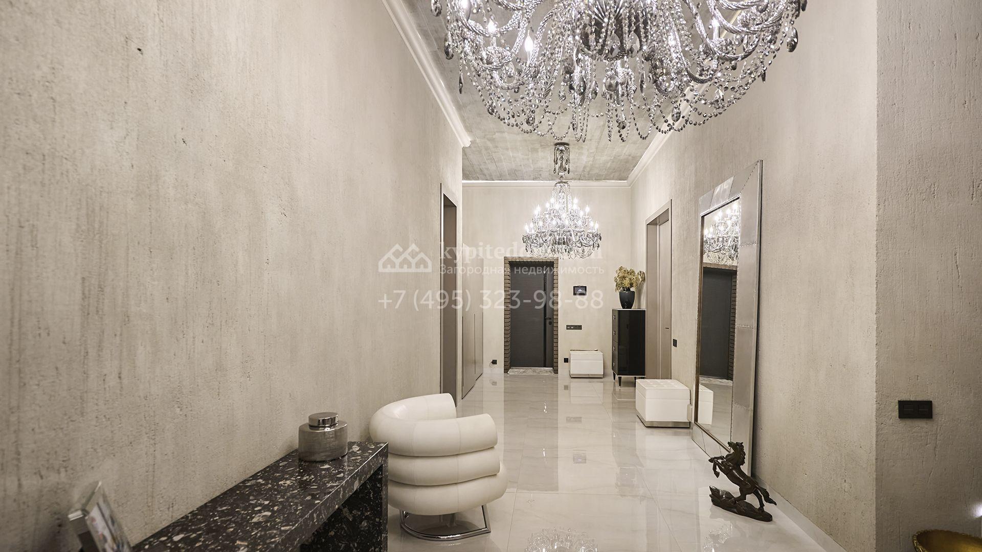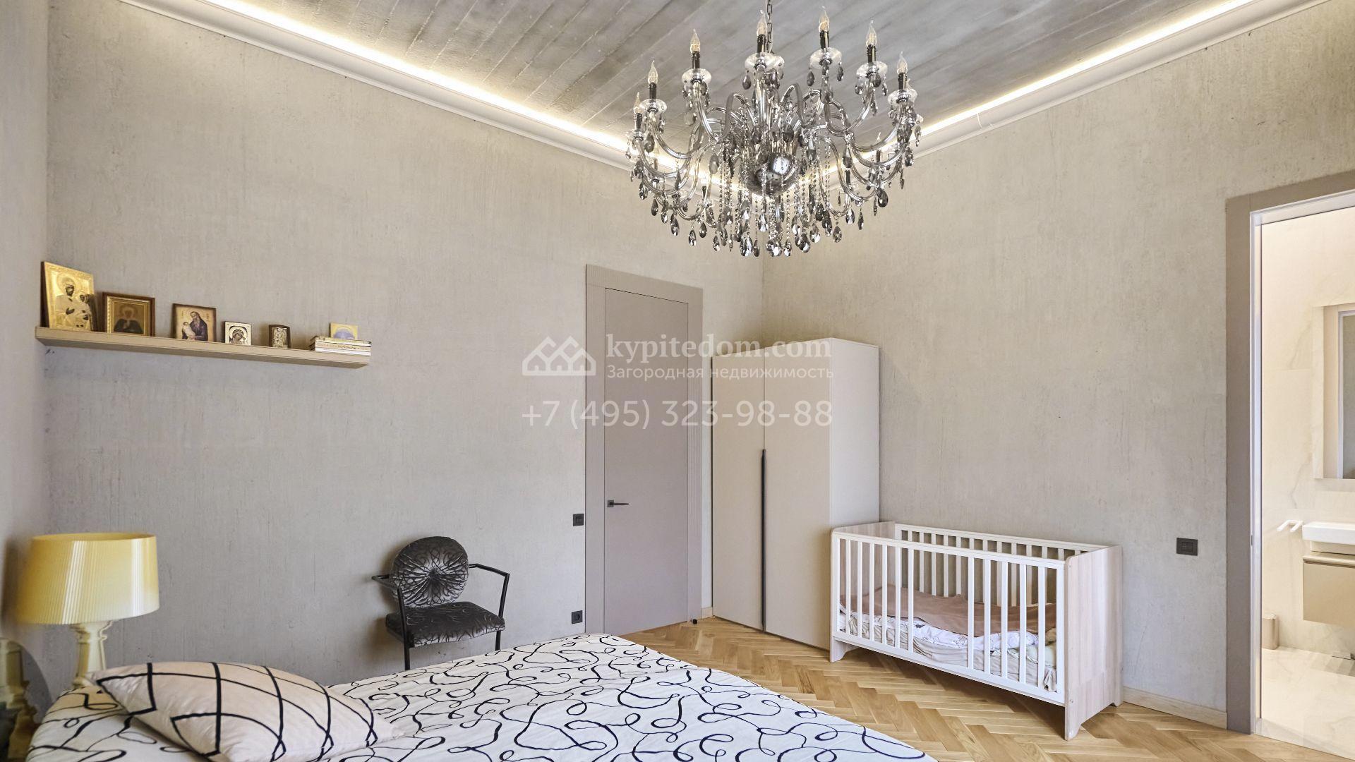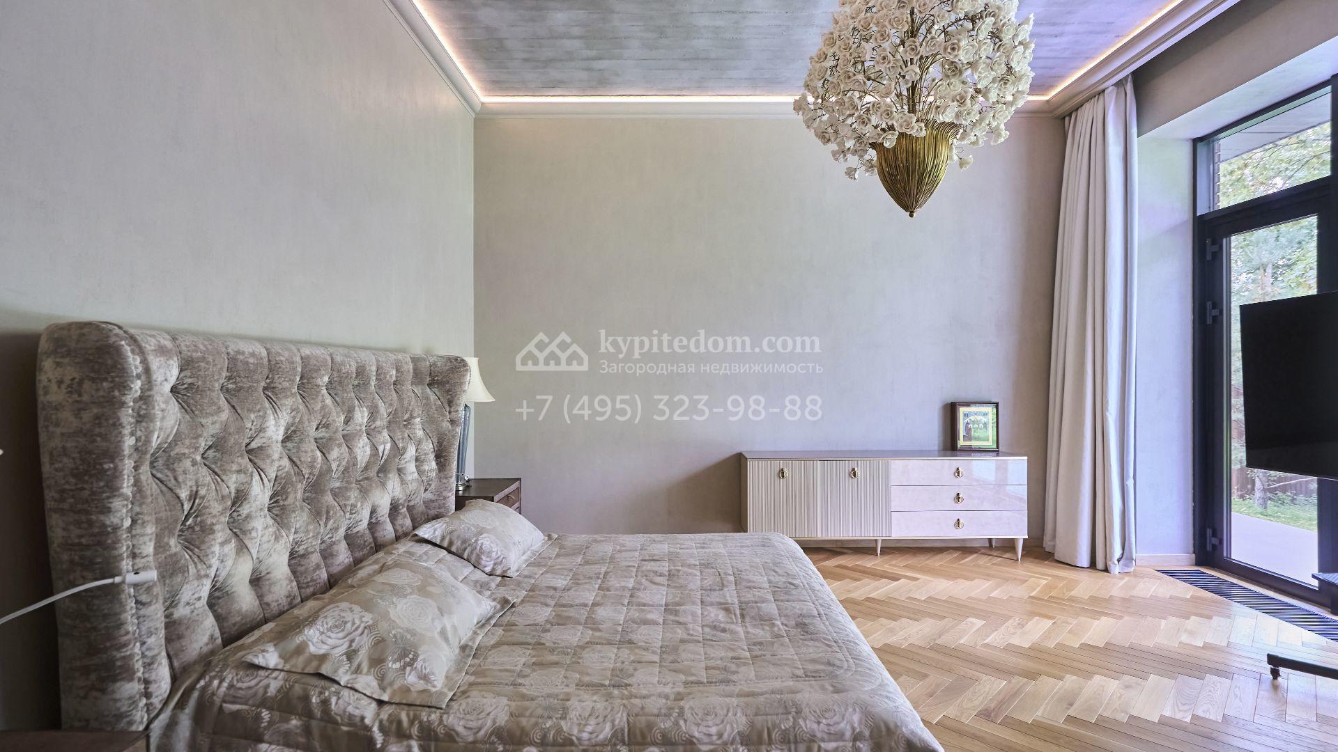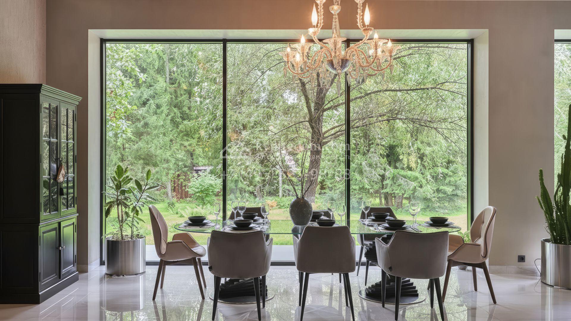 Планировка включает уютную гостиную-кухню-столовую, зону отдыха с камином и выходом на террасу, 4 спальни, вместительные гардеробные и квартиру для персонала. Оставить машины можно во встроенном трёхместном гараже. На участке вдохните запах свежескошенной травы, прогуливаясь по освещённым дорожкам в тени высоких деревьев, и любуйтесь декоративными кустарниками.