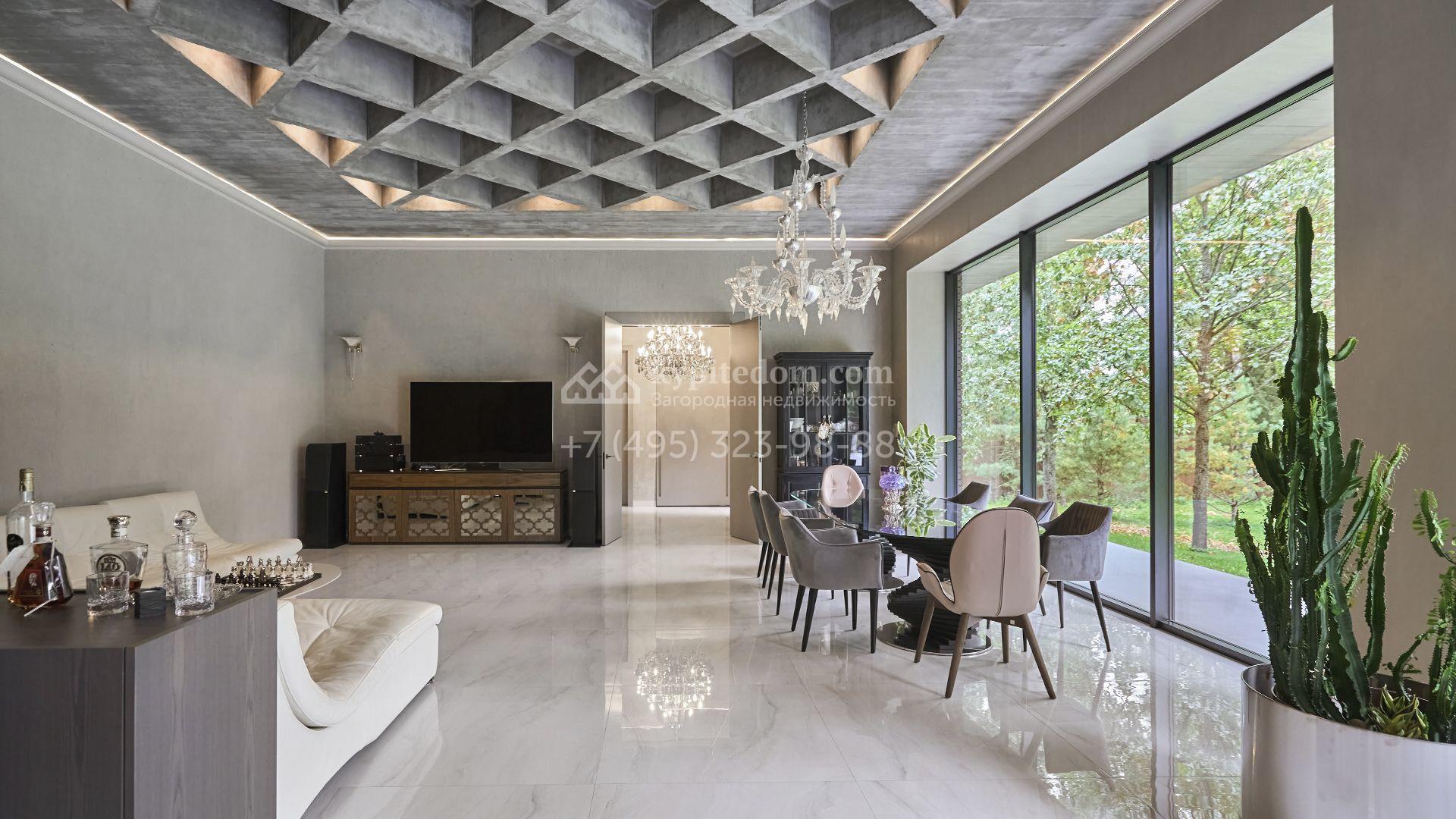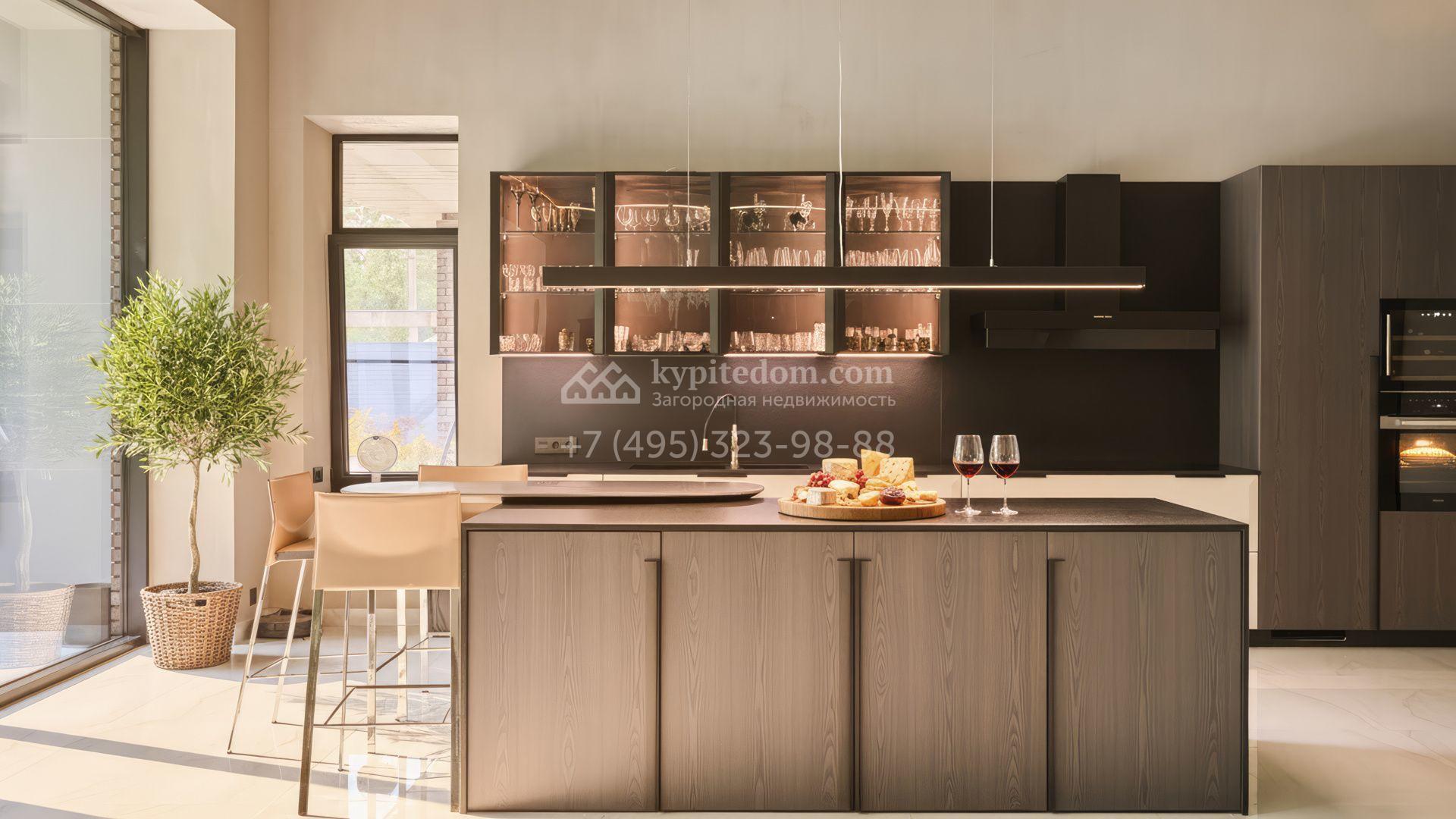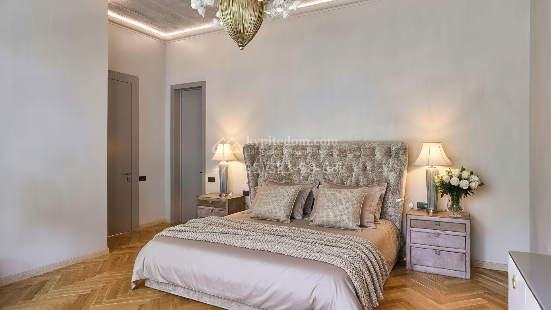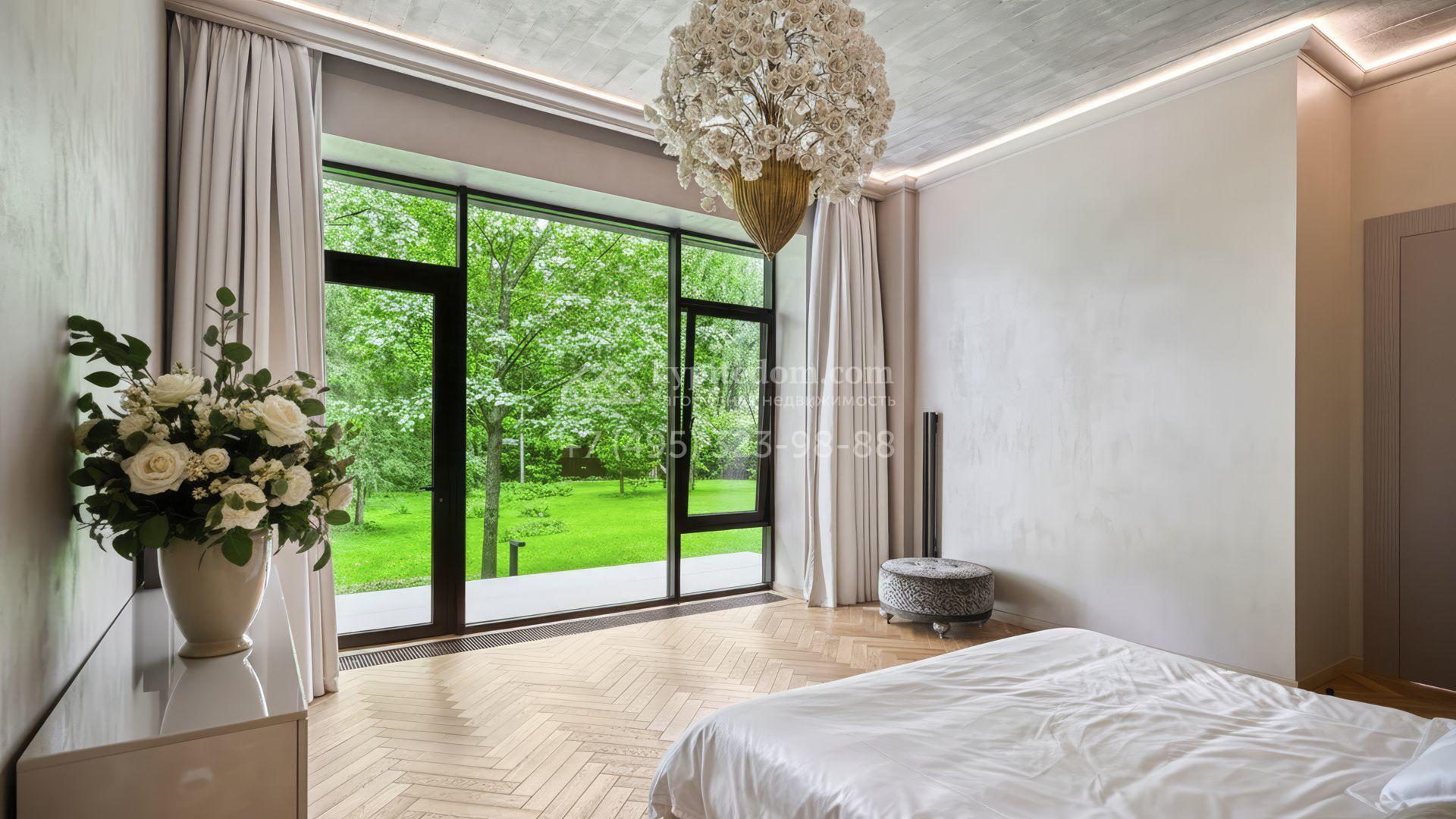 Планировка включает уютную гостиную-кухню-столовую, зону отдыха с камином и выходом на террасу, 4 спальни, вместительные гардеробные и квартиру для персонала. Оставить машины можно во встроенном трёхместном гараже. На участке вдохните запах свежескошенной травы, прогуливаясь по освещённым дорожкам в тени высоких деревьев, и любуйтесь декоративными кустарниками.