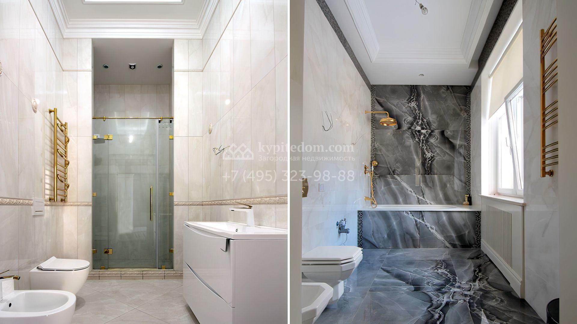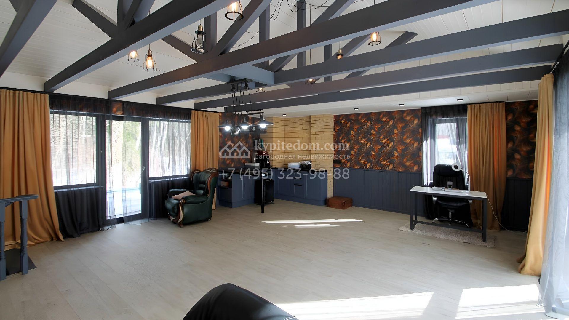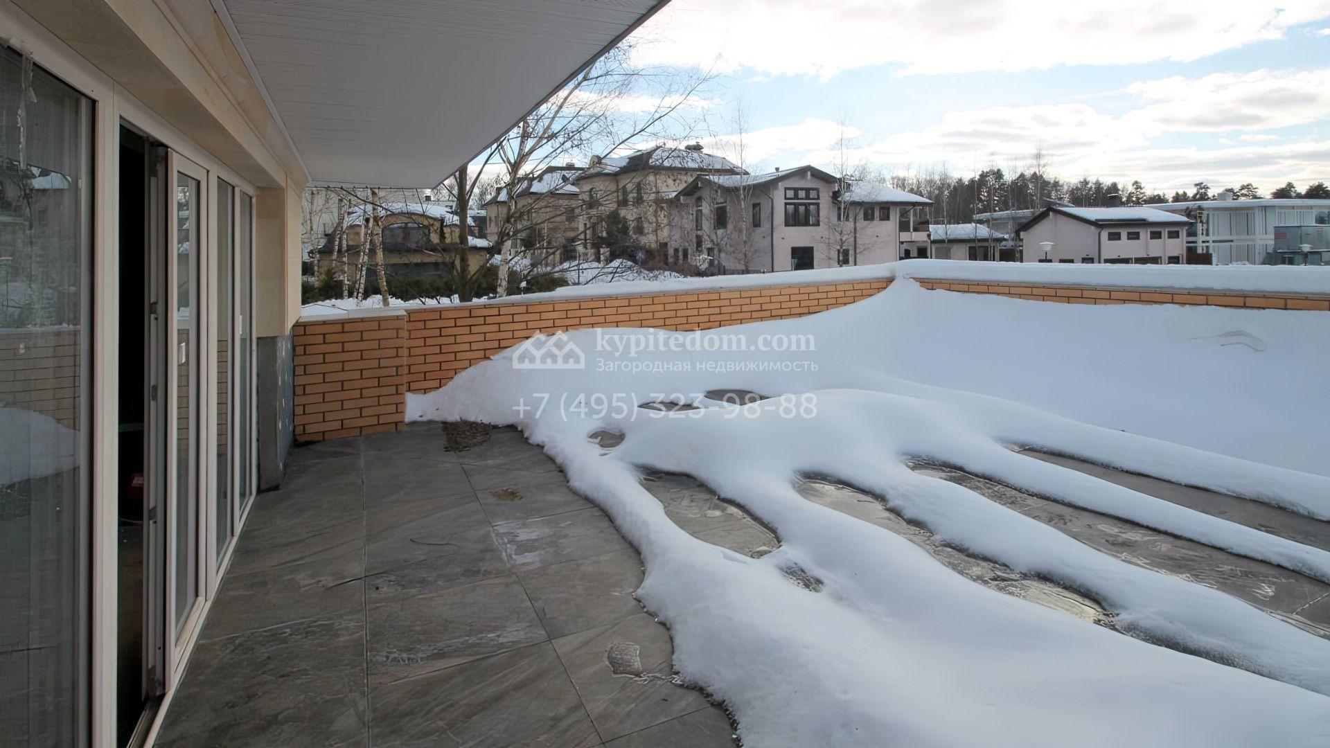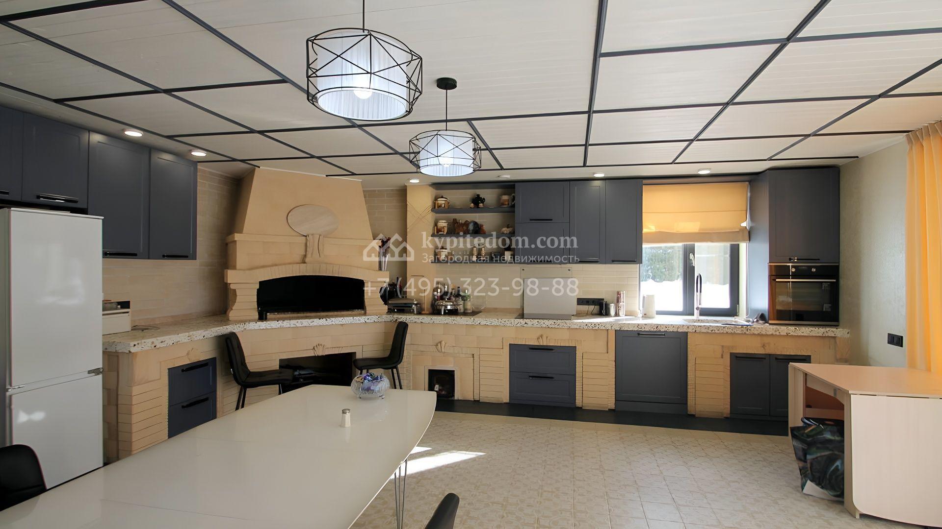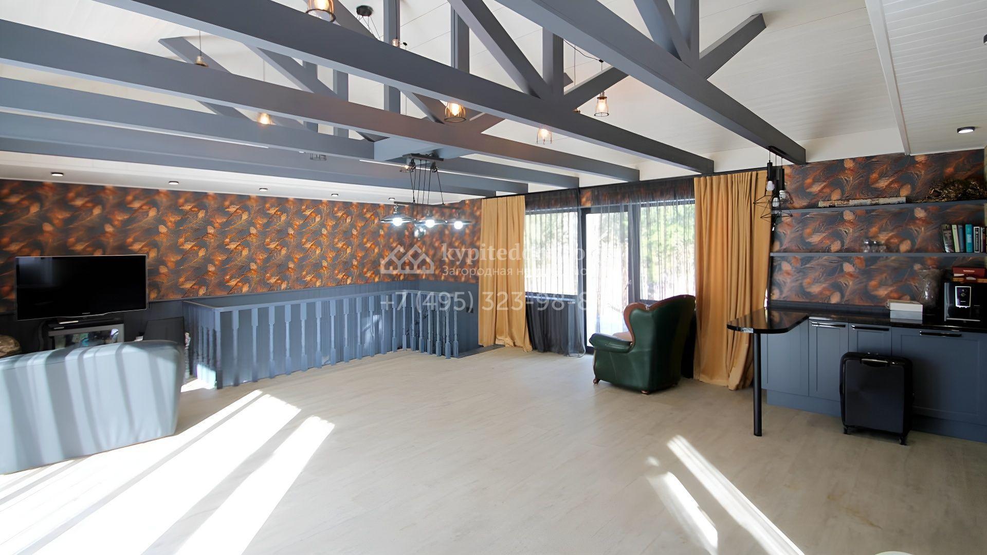 Загородная резиденция площадью 525 м² расположена на полевом участке 14 соток. Здание спроектировано в неоклассическом стиле и облицовано камнем песочного оттенка. Фасад украшен колоннами, пилястрами, открытыми балконами с балюстрадами и эркером. Высокие потолки, большая площадь остекления и спланированный второй свет наполняют пространство естественным светом и теплом.
