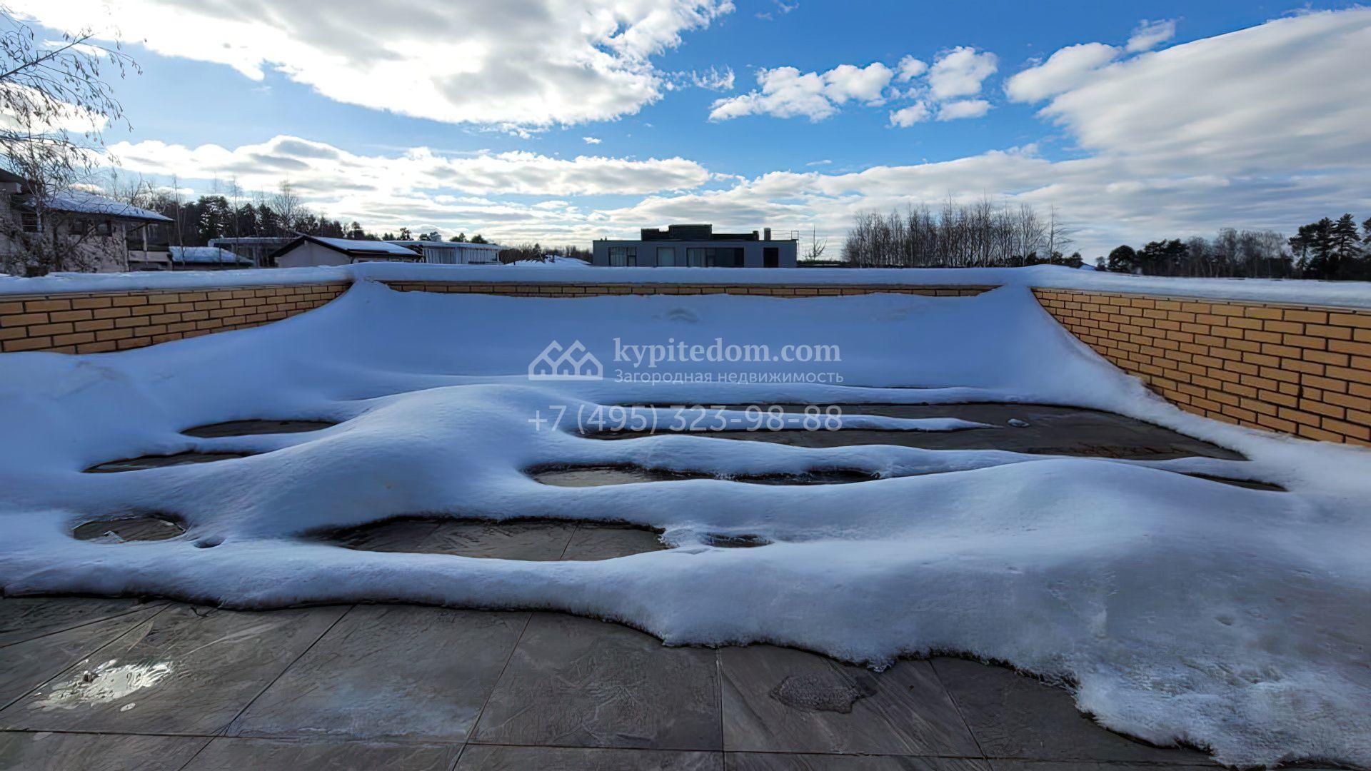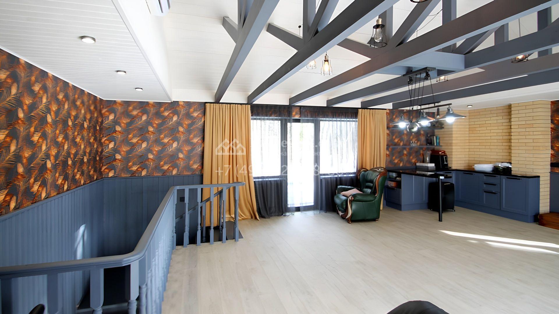 Планировка включает гостиную, кухню, столовую, кинозал, 5 спален, 6 санузлов и гардеробные. Для отдыха предусмотрен двухэтажный гостевой дом 100 м² с гостиной, кухней, бильярдной и зоной для мангала. На территории также возведены гараж и SPA-комплекс с бассейном. Участок обрамлен ландшафтными работами, дорожками и туями вдоль забора, создавая атмосферу уединения и гармонии.