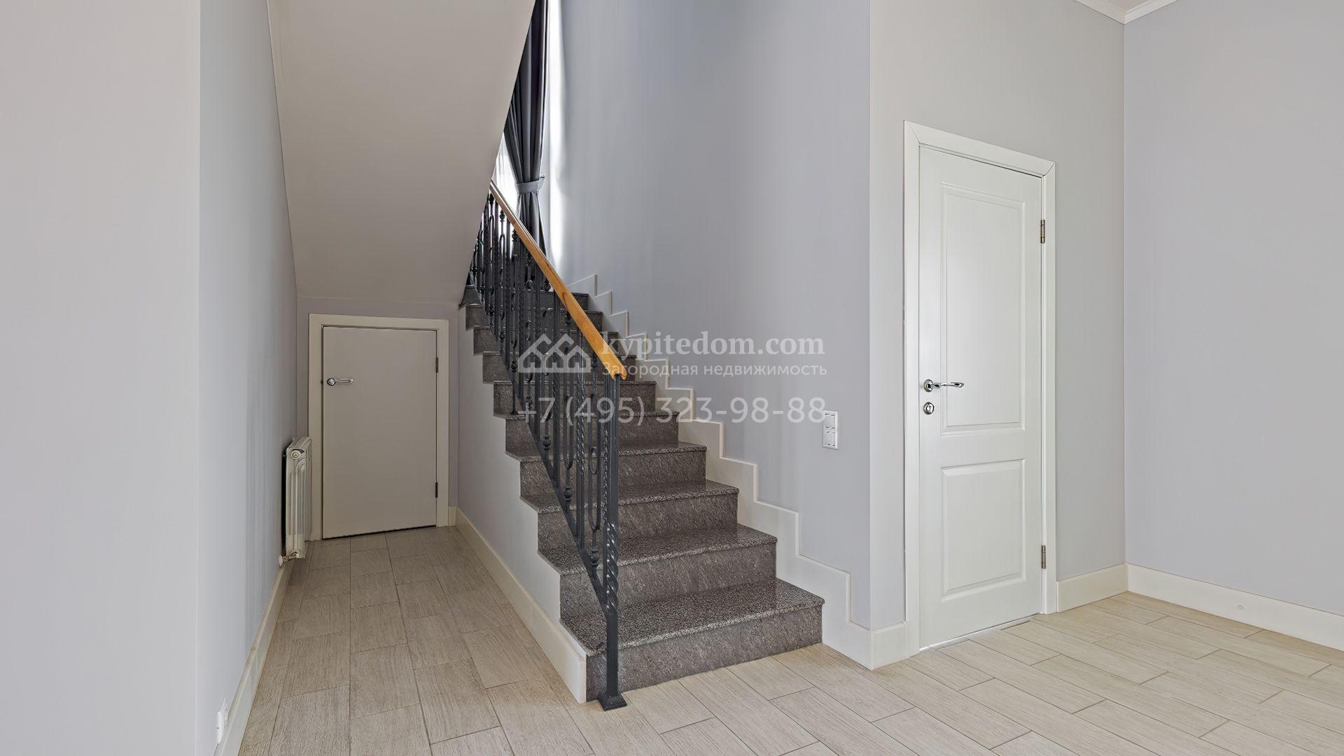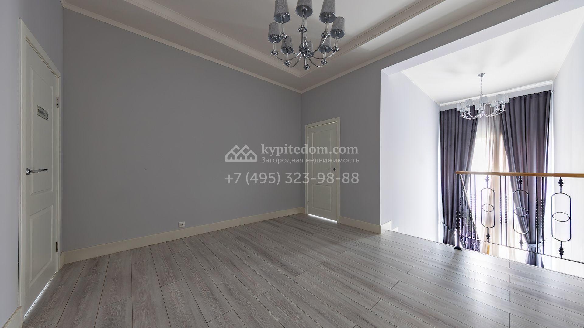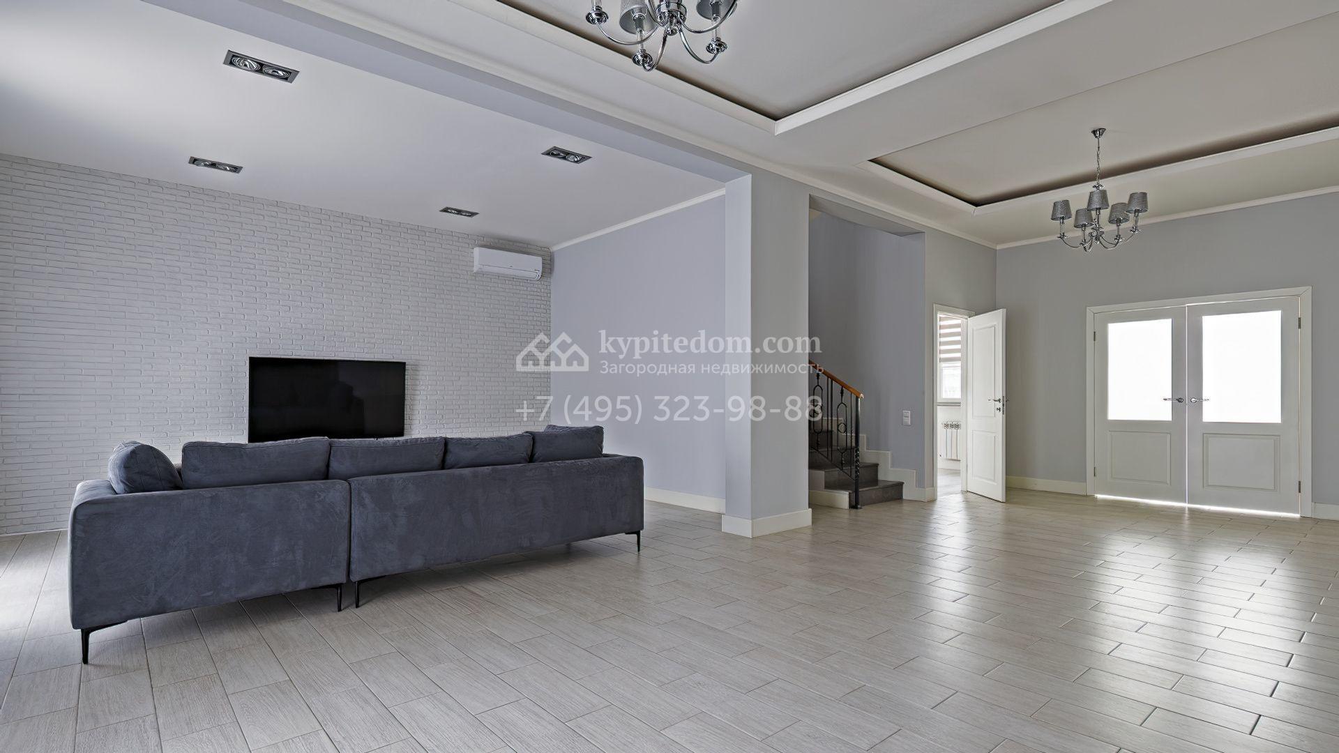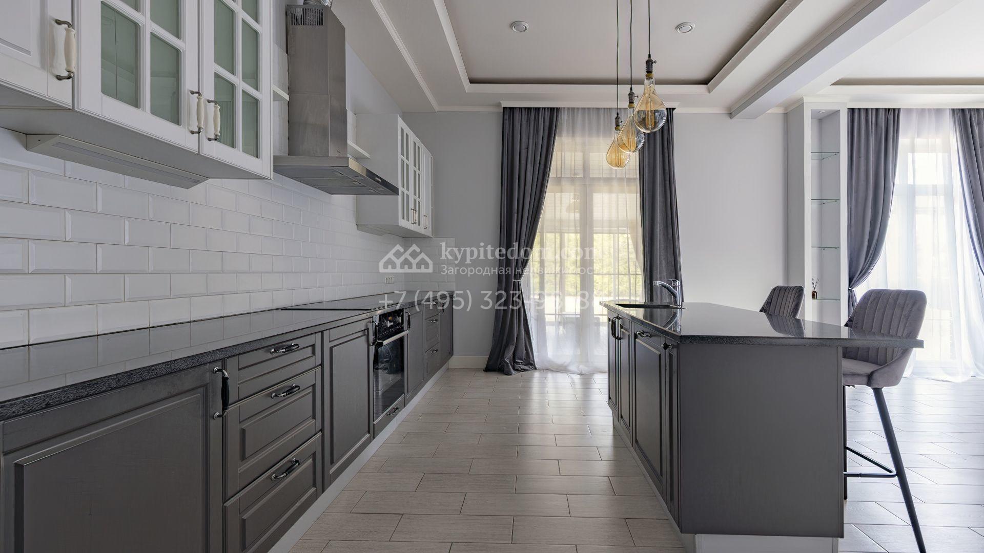 Новый загородный коттедж площадью 304 м² расположен на полевом участке 12 соток. Кирпичный фасад с многоскатной крышей выполнен в европейском стиле и декорирован строгими колоннами и элегантной подсветкой, мягко подчеркивающей архитектуру в вечернее время. Высокие потолки, панорамные окна и большая площадь остекления визуально увеличивают внутреннее пространство, делая дом уютным и наполненным воздухом.