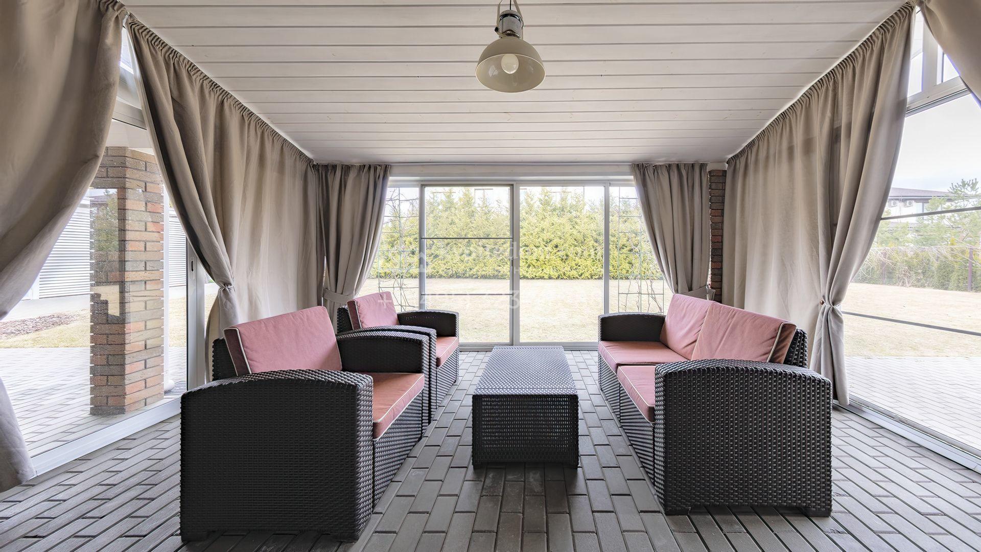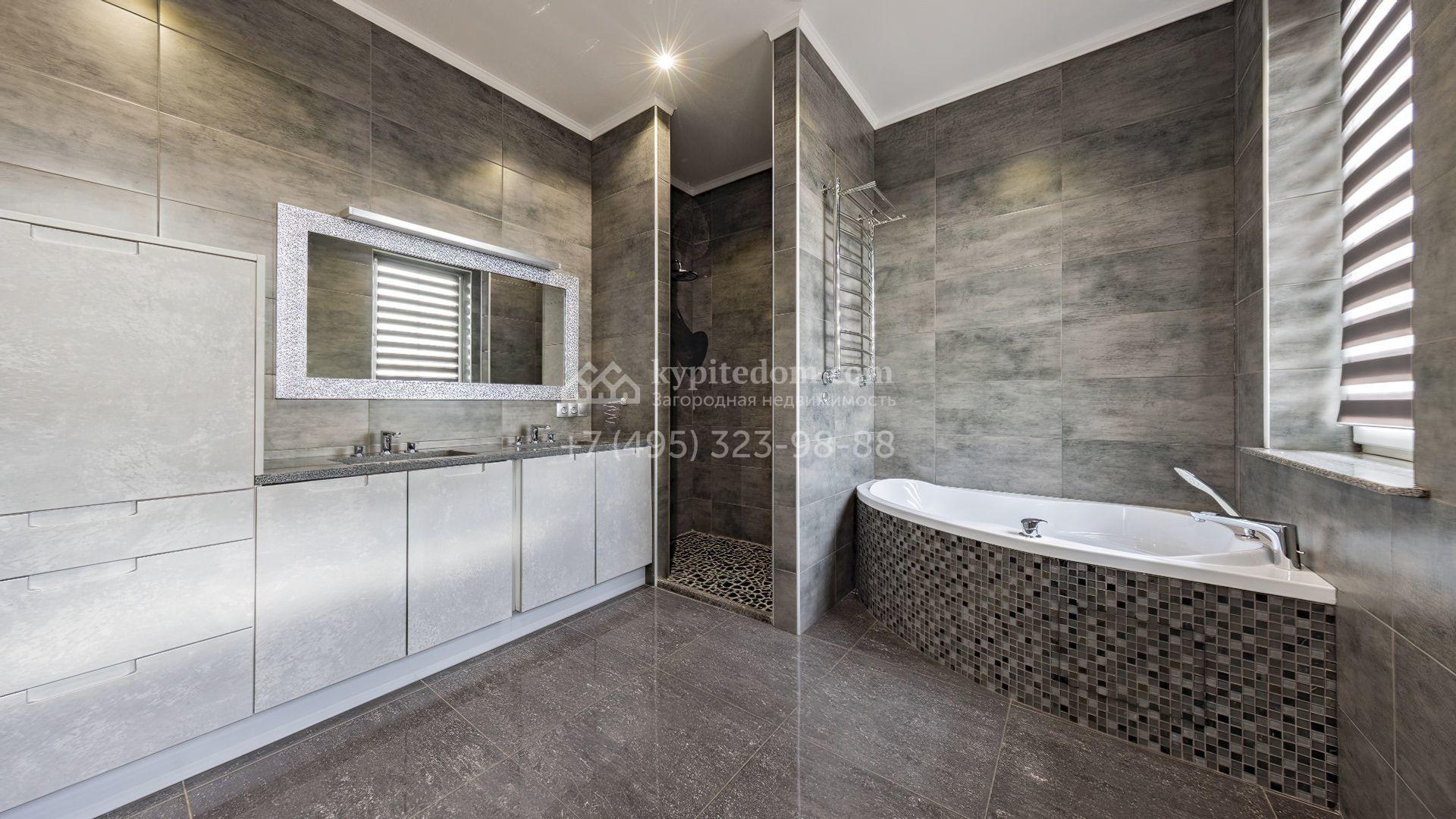 Современные интерьеры выдержаны в пастельных светло-серых тонах, частично укомплектованы мебелью, бытовой техникой и сантехникой от ведущих производителей. Для дополнительного комфорта установлены кондиционирование, скоростной интернет и кабельное TV. Планировка включает просторную гостиную-кухню-столовую, 5 уютных спален, 3 из которых имеют собственные гардеробные, летнюю застекленную веранду, террасу, патио, где можно поставить шезлонги, а также гараж на 2 машины с мастерской.