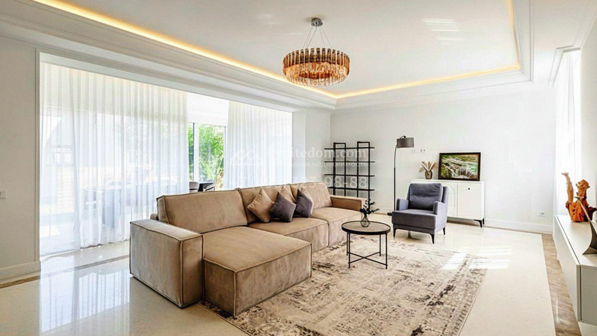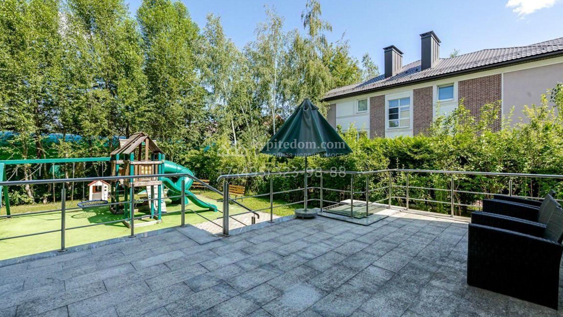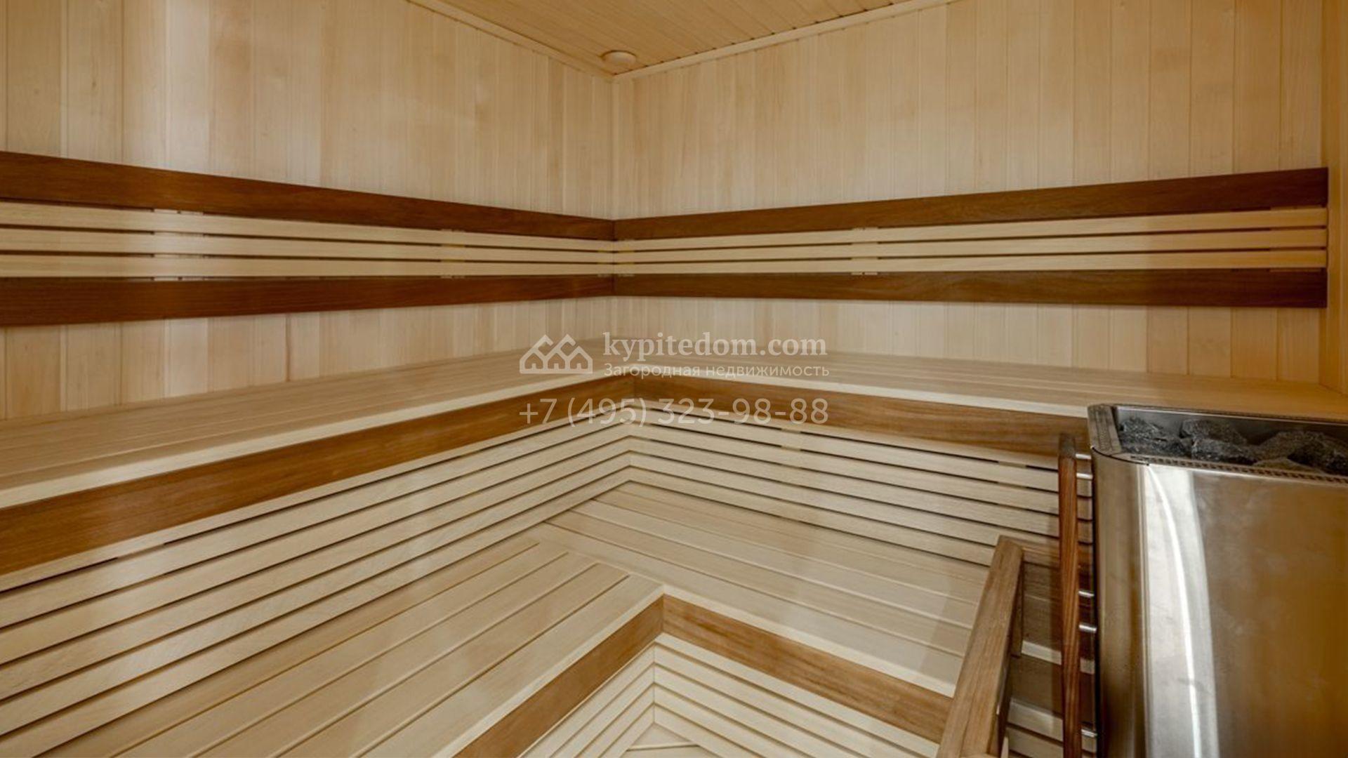 Планировка включает уютную гостиную-столовую с выходом на террасу и панорамным остеклением, наполняющим пространство солнцем, кухню с удобным островом, 5 спален с вместительными гардеробными и SPA-зона с сауной и купелью, где можно расслабиться после долгого дня. Кроме того, на цокольном уровне находится свободная комната с большими окнами и высокими потолками, в которой можно обустроить бильярдную, кинотеатр, спортзал или игровую. На участке засеян аккуратный газон, растут деревья и кустарники, вымощены дорожки, организованы зона для барбекю и детская площадка. Оставить машины можно под одноместным навесом или же на открытой парковке.
