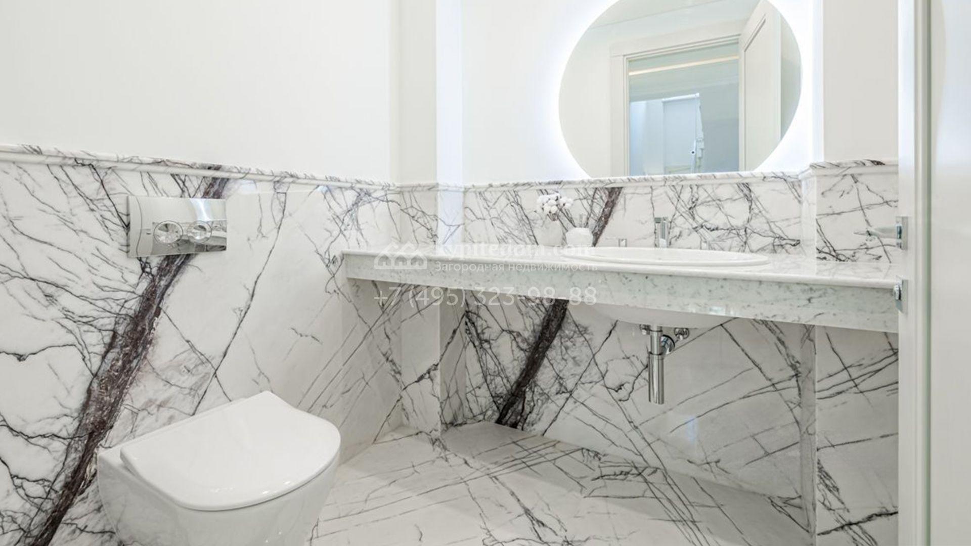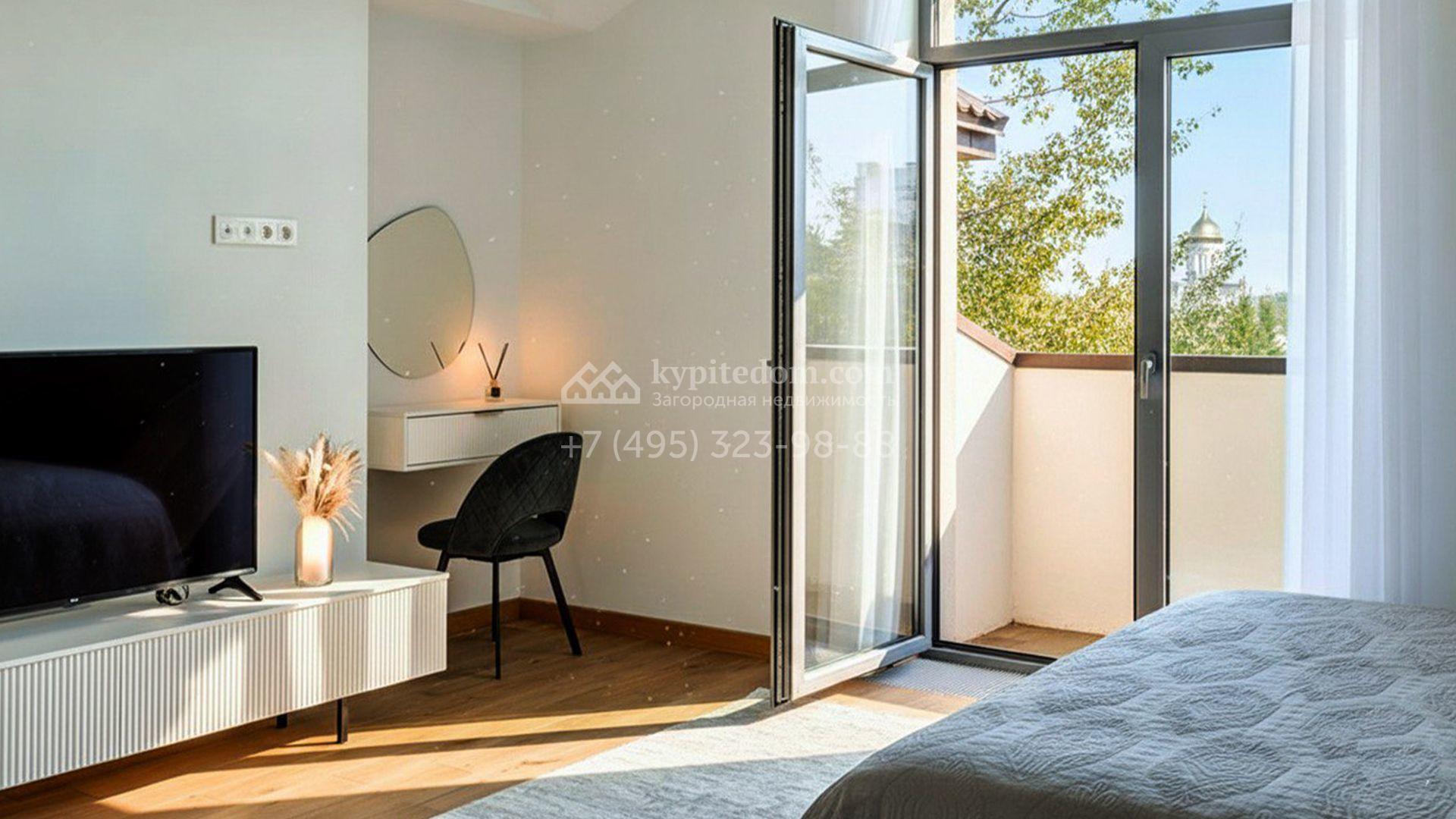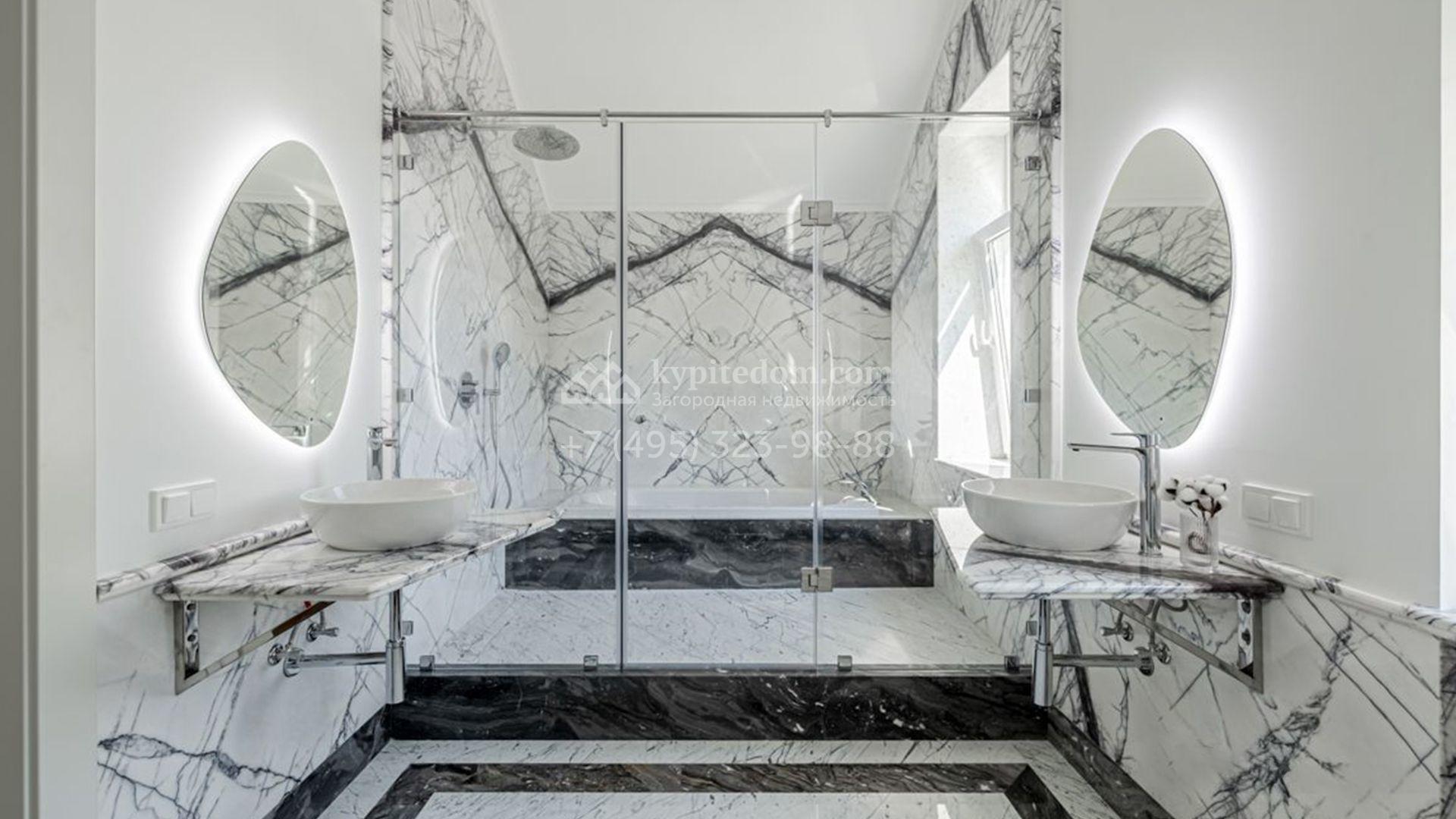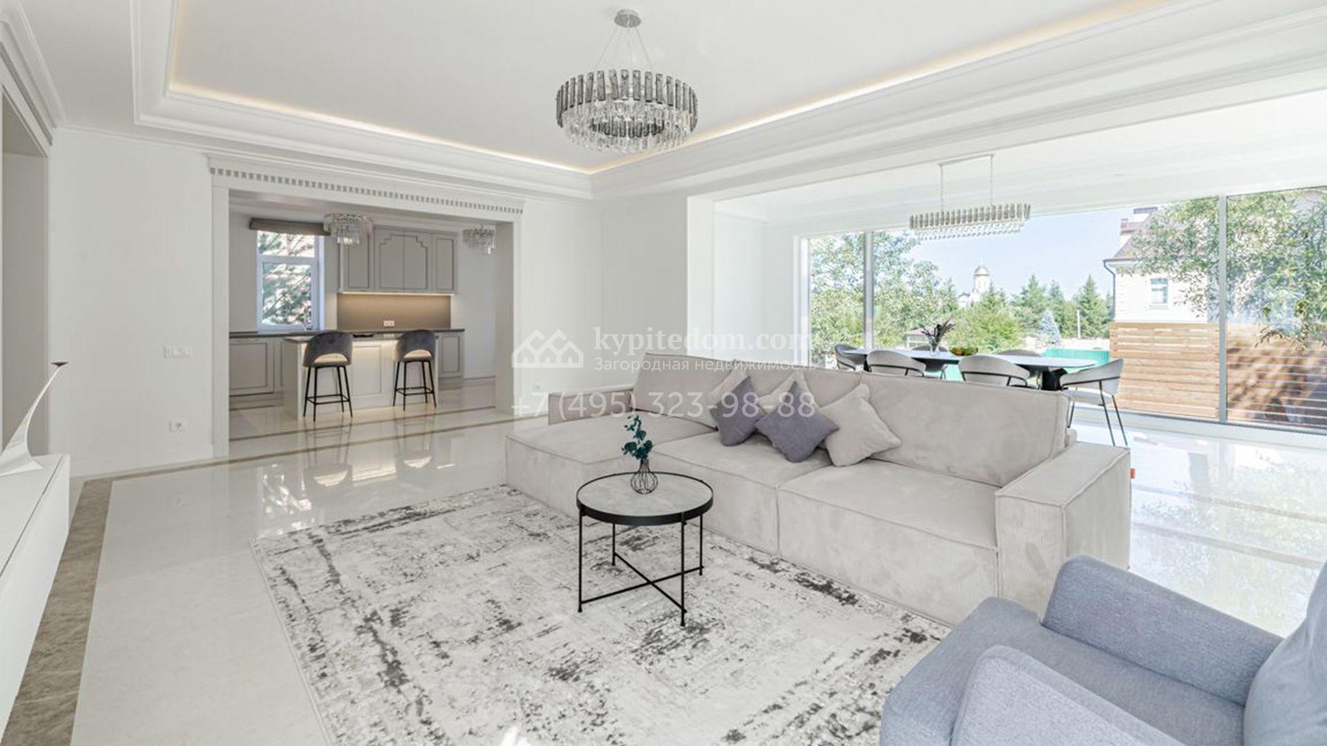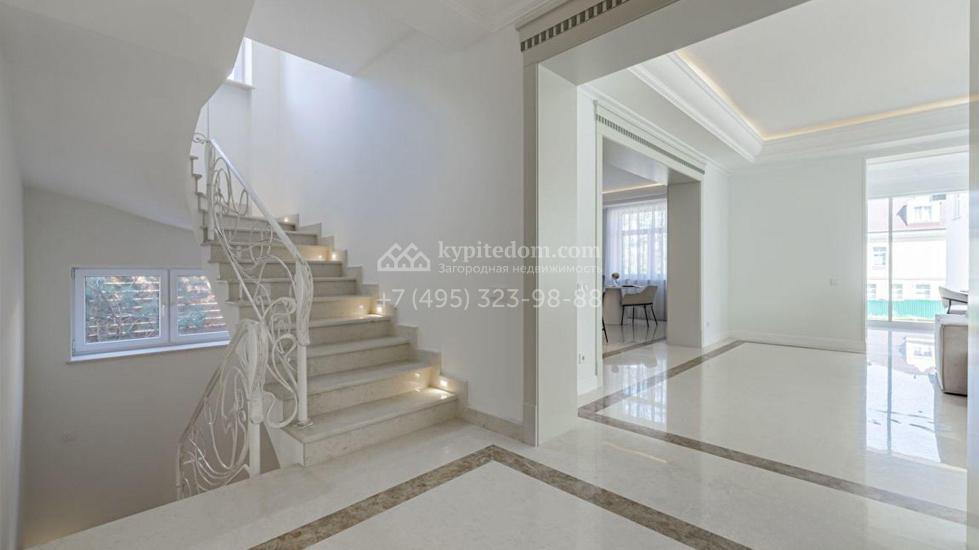 Новый загородный коттедж площадью 400 м² расположен на участке 8 соток с собственным выходом в живописный лес. Фасад с многоскатной крышей, выполненный в европейском стиле, облицован благородным клинкерным кирпичом и белоснежной штукатуркой, а также дополнен элегантными молдингами. Современные интерьеры выдержаны в светлых тонах и отделаны с использованием высококачественных материалов. Дом укомплектован комфортной мебелью, встроенной бытовой техникой и сантехникой. Для идеального микроклимата установлена система приточной вентиляции.