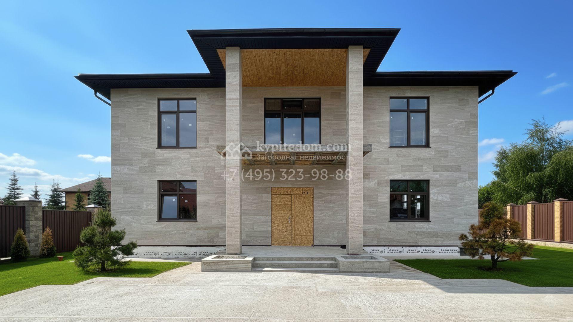 Новый загородный коттедж площадью 336 м² расположен на полевом участке 10,5 соток. Симметричный фасад, выполненный в неоклассическом стиле, облицован благородным травертином и украшен стройными колоннами, а стеклянные ограждения балконов добавляют современные акценты. Большие окна Rehau наполняют внутреннее пространство светом и солнечным теплом.