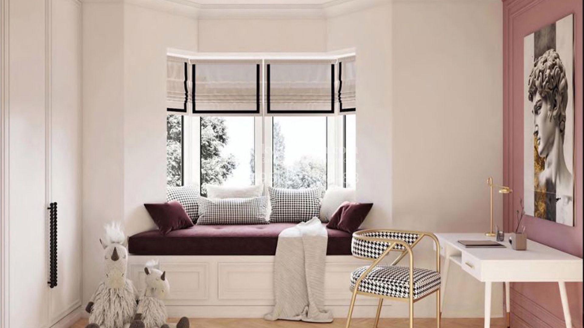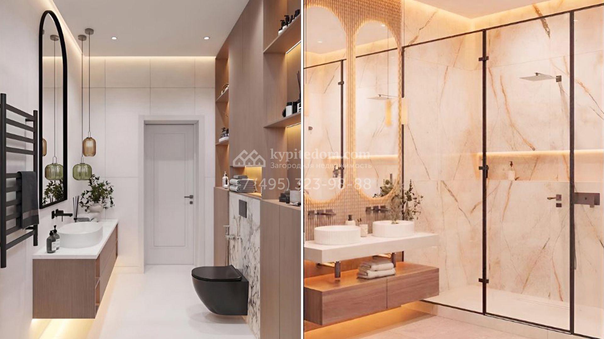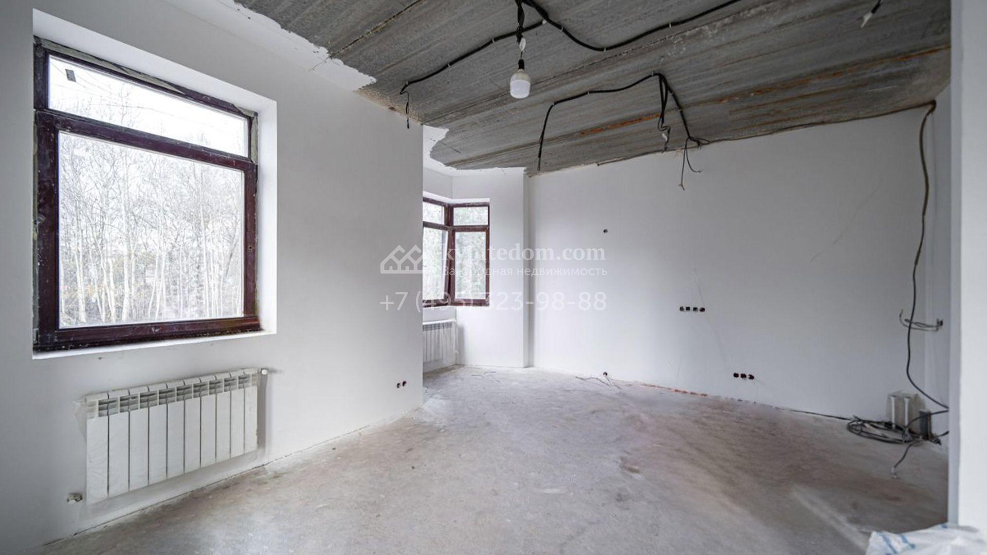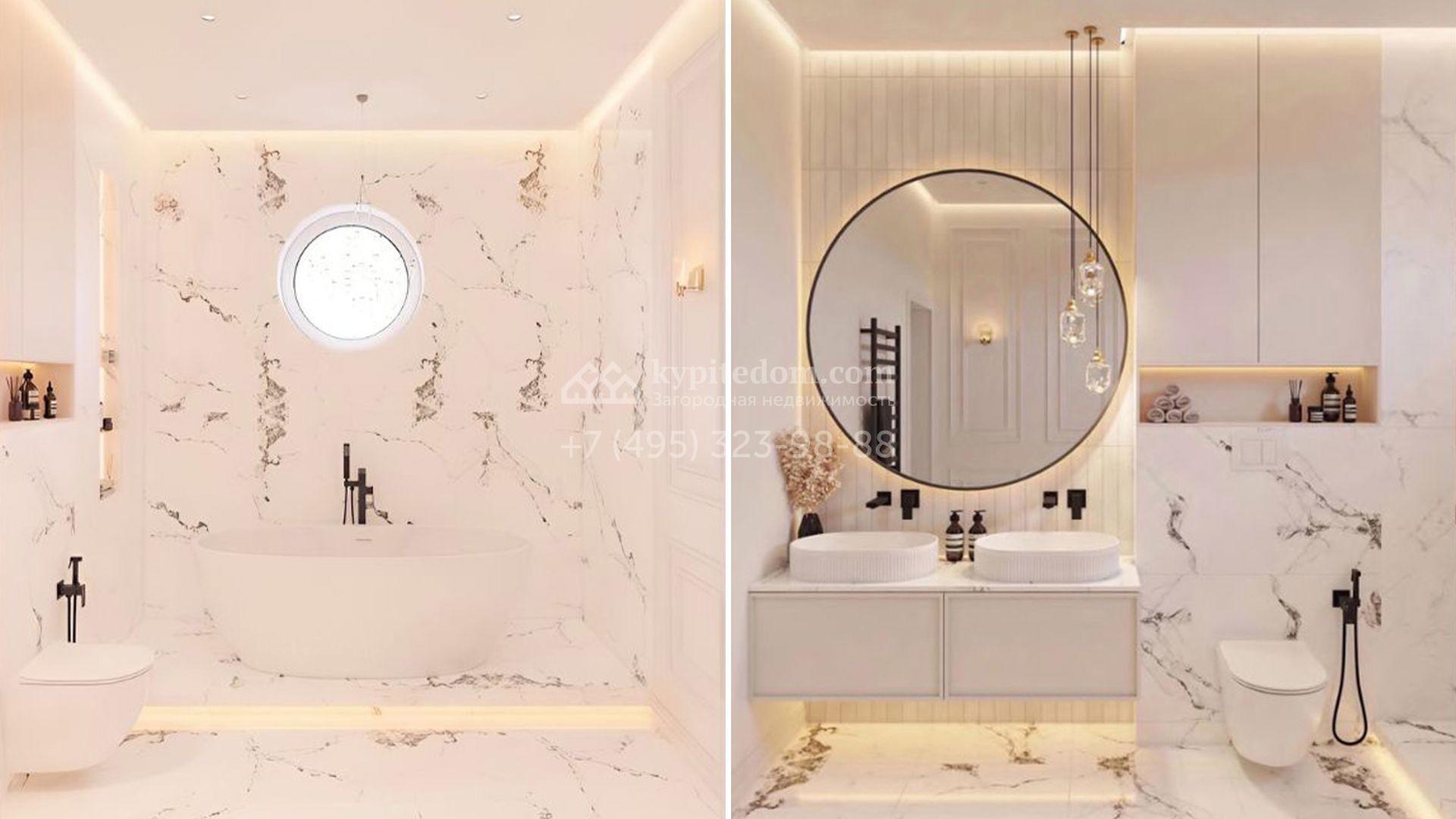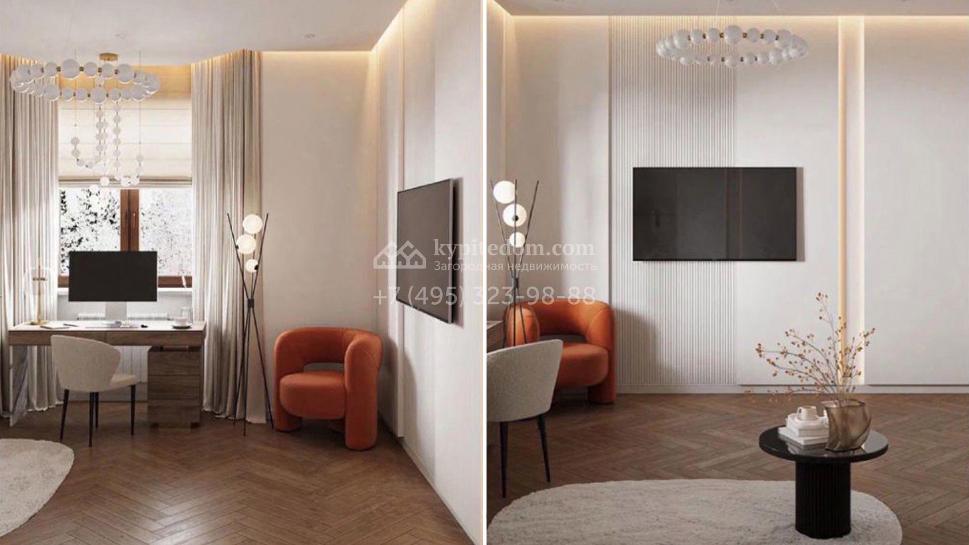 Загородный коттедж площадью 588 м² расположен на полевом участке 10,7 соток. Фасад выполнен в европейском стиле, облицован белой и бежевой штукатуркой в сочетании с плиткой, а также украшен изящными колоннами. Панорамные и эркерные окна наполняют интерьер естественным светом и создают ощущение простора. Отделка white box позволяет будущим владельцам выбрать финишные покрытия, мебель и технику на свой вкус, воплотив любые дизайнерские решения.