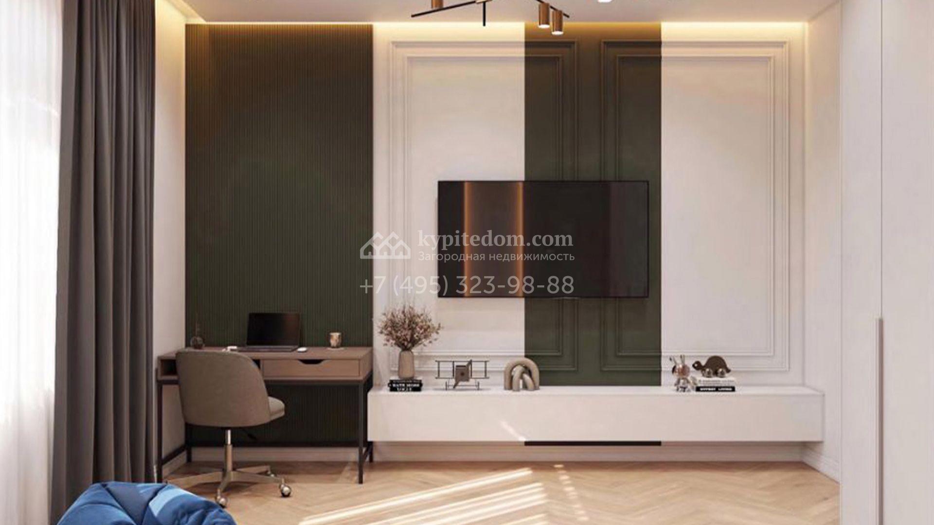 Внутри спланировали гостиную, кухню, столовую, 6 спален, включая мастер-спальню с гардеробной, кабинет и теплый гараж на 2 машины. На цокольном этаже предусмотрены кинотеатр, спортзал, сауна, душевая и дополнительная кухня с обеденной зоной. Ровный участок открывает широкие возможности для ландшафтного оформления — здесь можно засеять аккуратный газон, высадить декоративные кустарники и проложить изящные дорожки. На территории достаточно места для возведения уютной беседки-барбекю и детской площадки.