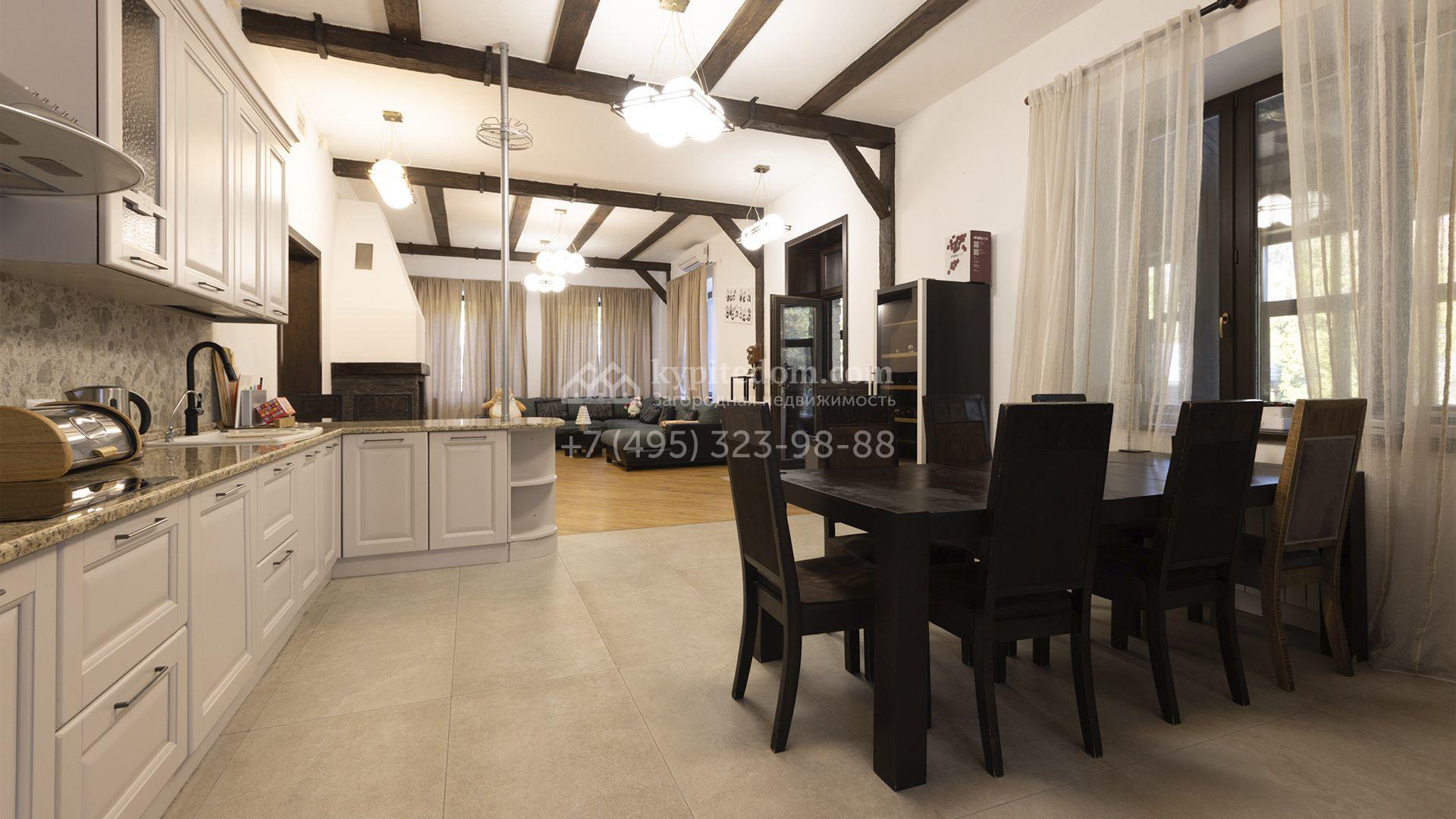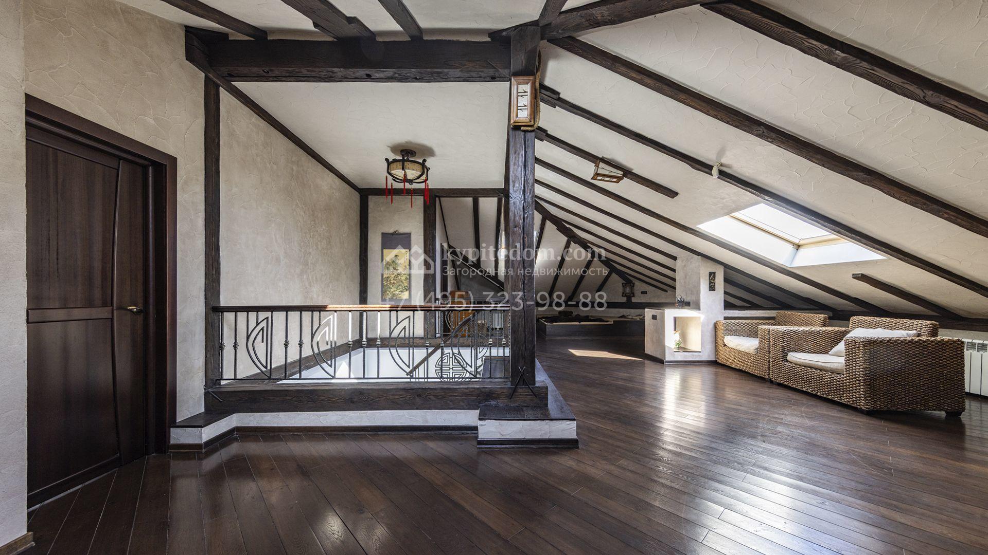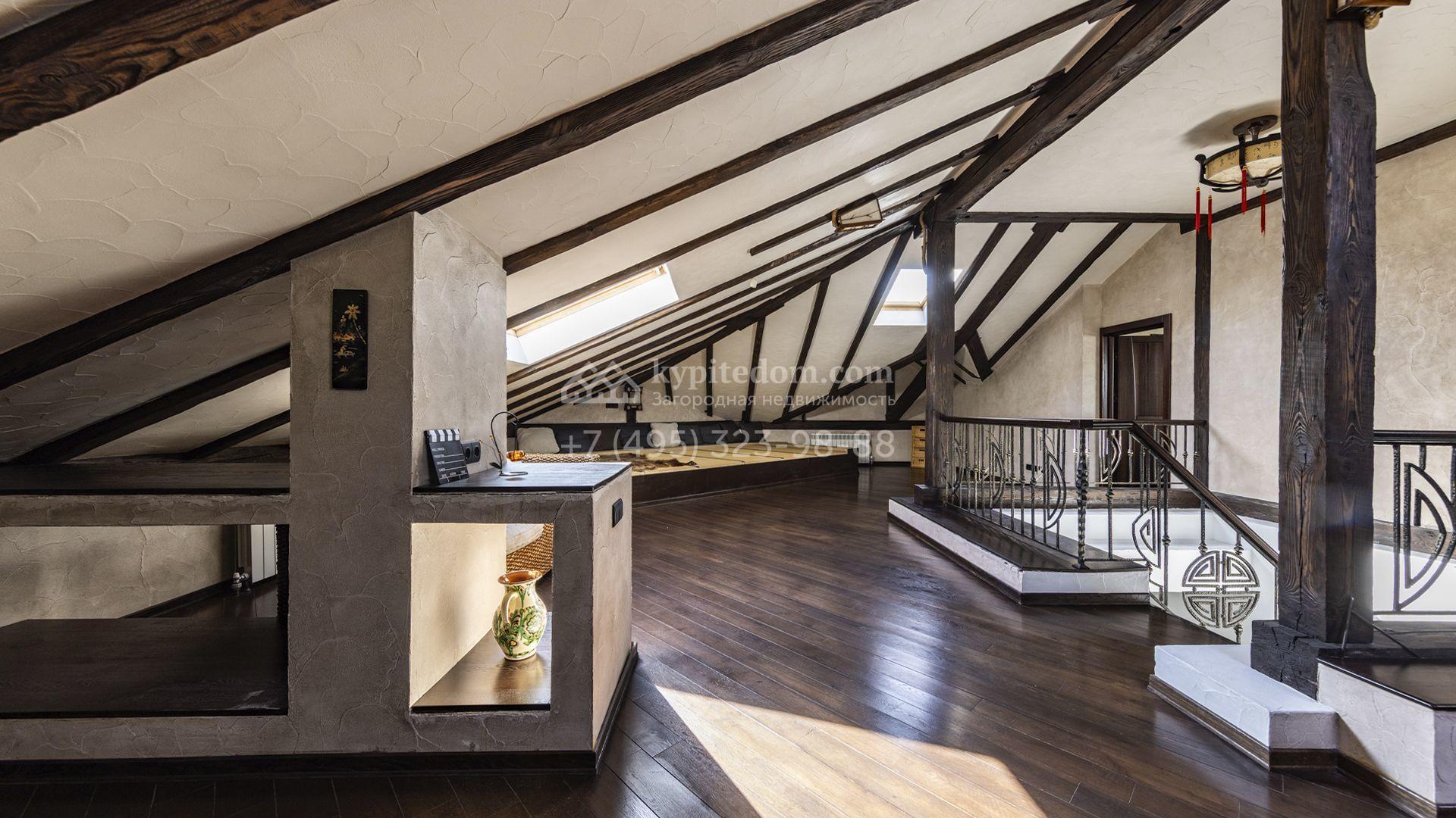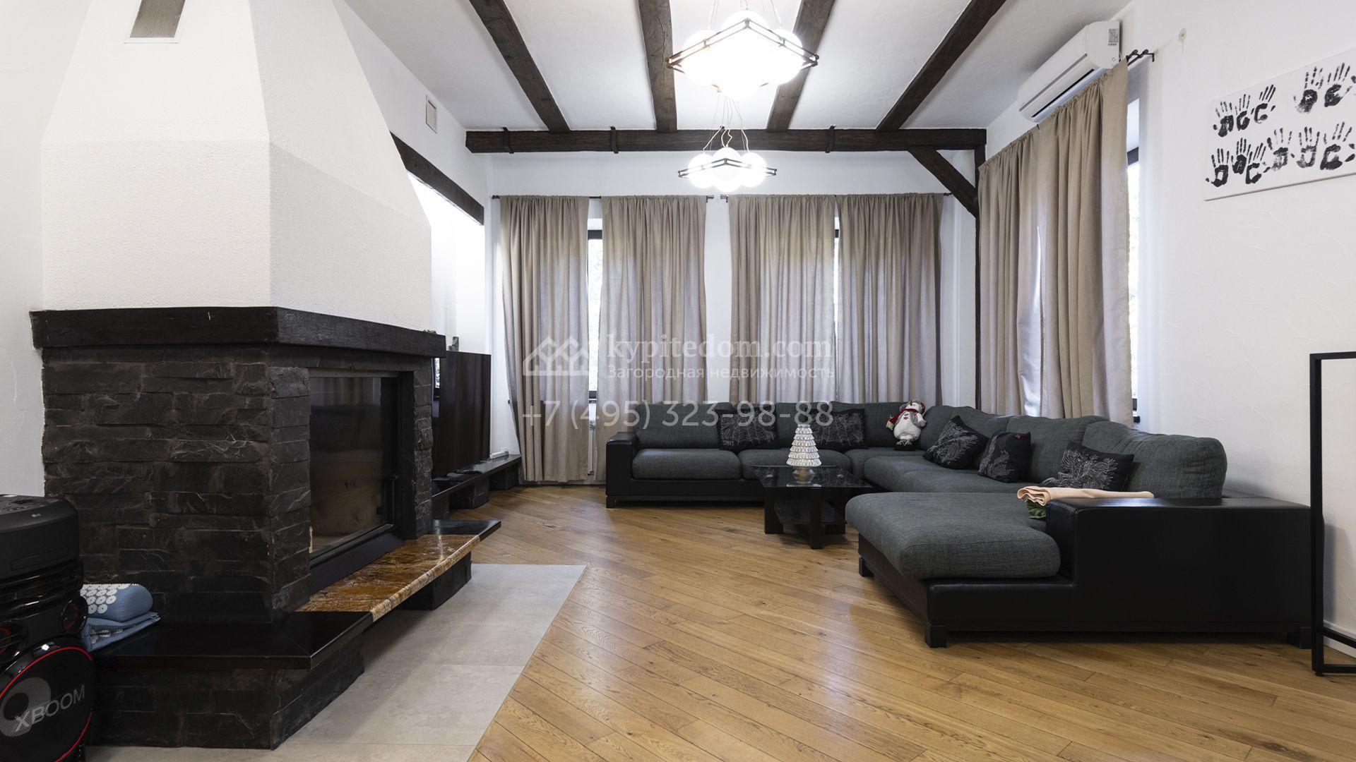 Просторная гостиная с каменным камином плавно переходит в современную кухню-столовую, оснащенную техникой от ведущих производителей. Шесть уютных спален, рабочий кабинет, игровые зоны и гардеробные обеспечивают комфорт для всей семьи. Крытая терраса становится любимым местом отдыха в любую погоду. Также инфраструктура дома включает квартиру для персонала и гараж на два автомобиля. Кроме того, на территории размещены открытый бассейн с зоной отдыха с шезлонгами, детская площадка и хозяйственная постройка площадью 30 м². На участке выполнен ландшафтный дизайн — засеян газон, растут взрослые деревья, высажены декоративные кустарники и вымощены дорожки.
