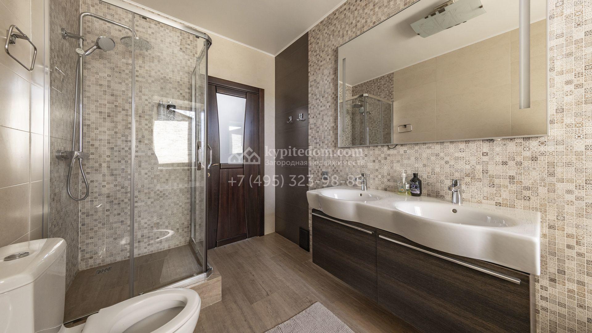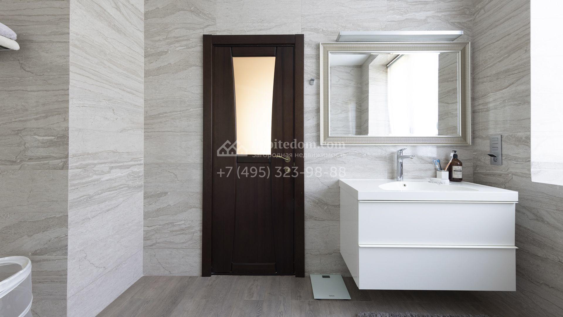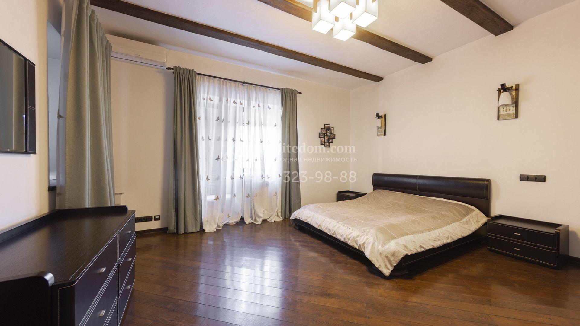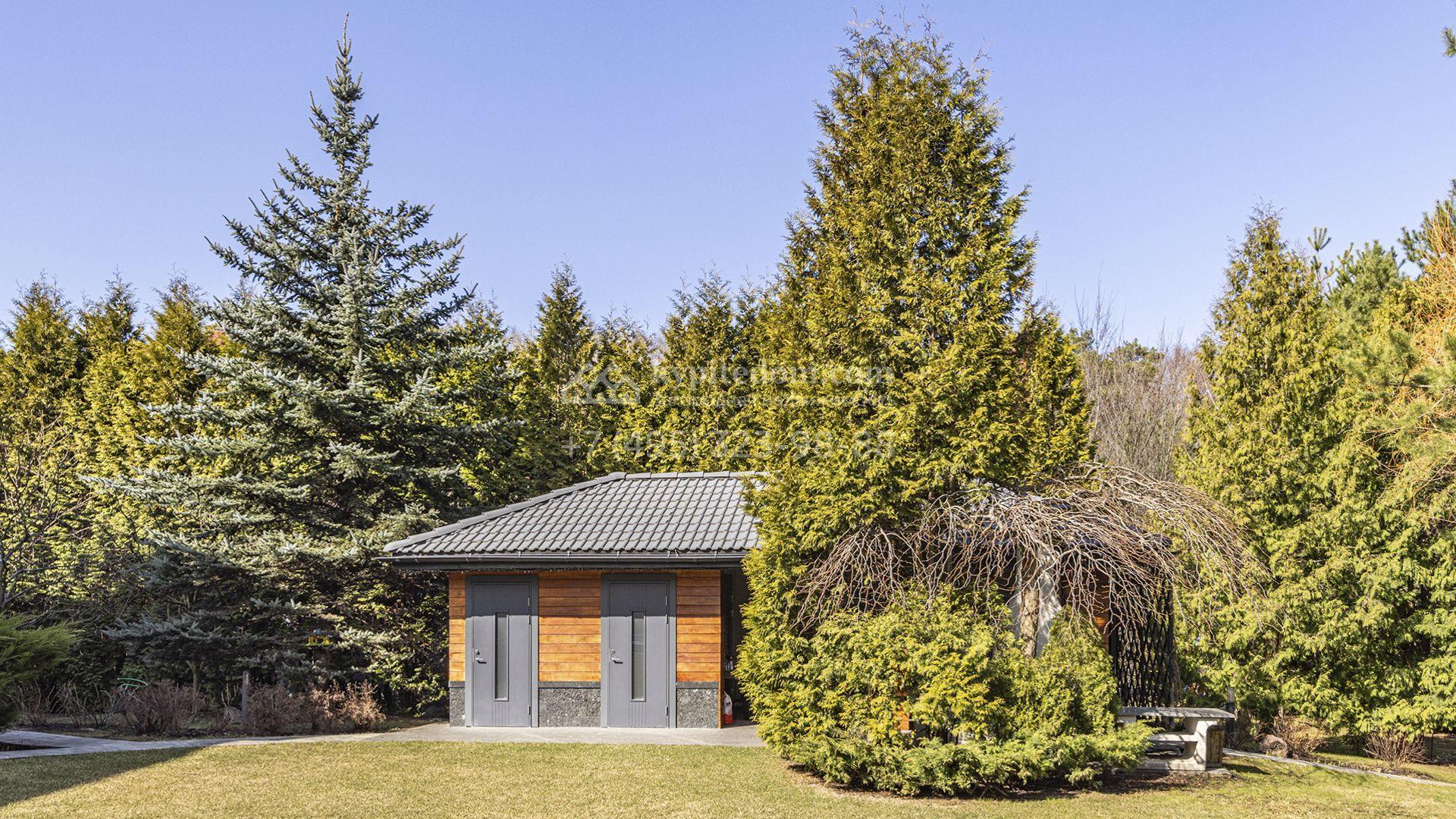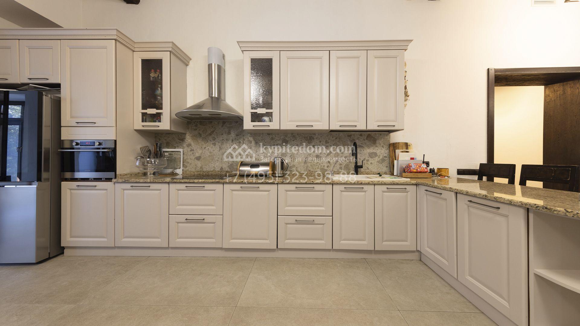Просторная гостиная с каменным камином плавно переходит в современную кухню-столовую, оснащенную техникой от ведущих производителей. Шесть уютных спален, рабочий кабинет, игровые зоны и гардеробные обеспечивают комфорт для всей семьи. Крытая терраса становится любимым местом отдыха в любую погоду. Также инфраструктура дома включает квартиру для персонала и гараж на два автомобиля. Кроме того, на территории размещены открытый бассейн с зоной отдыха с шезлонгами, детская площадка и хозяйственная постройка площадью 30 м². На участке выполнен ландшафтный дизайн — засеян газон, растут взрослые деревья, высажены декоративные кустарники и вымощены дорожки.