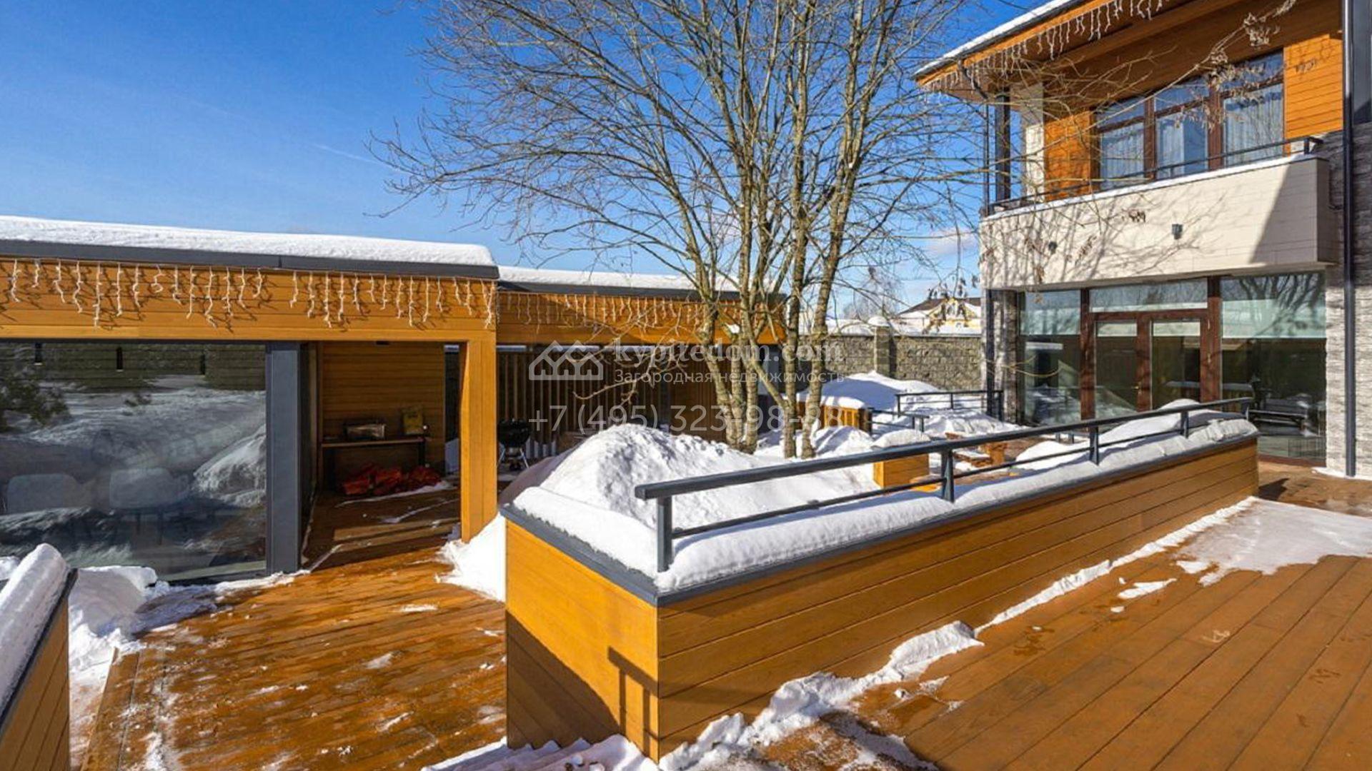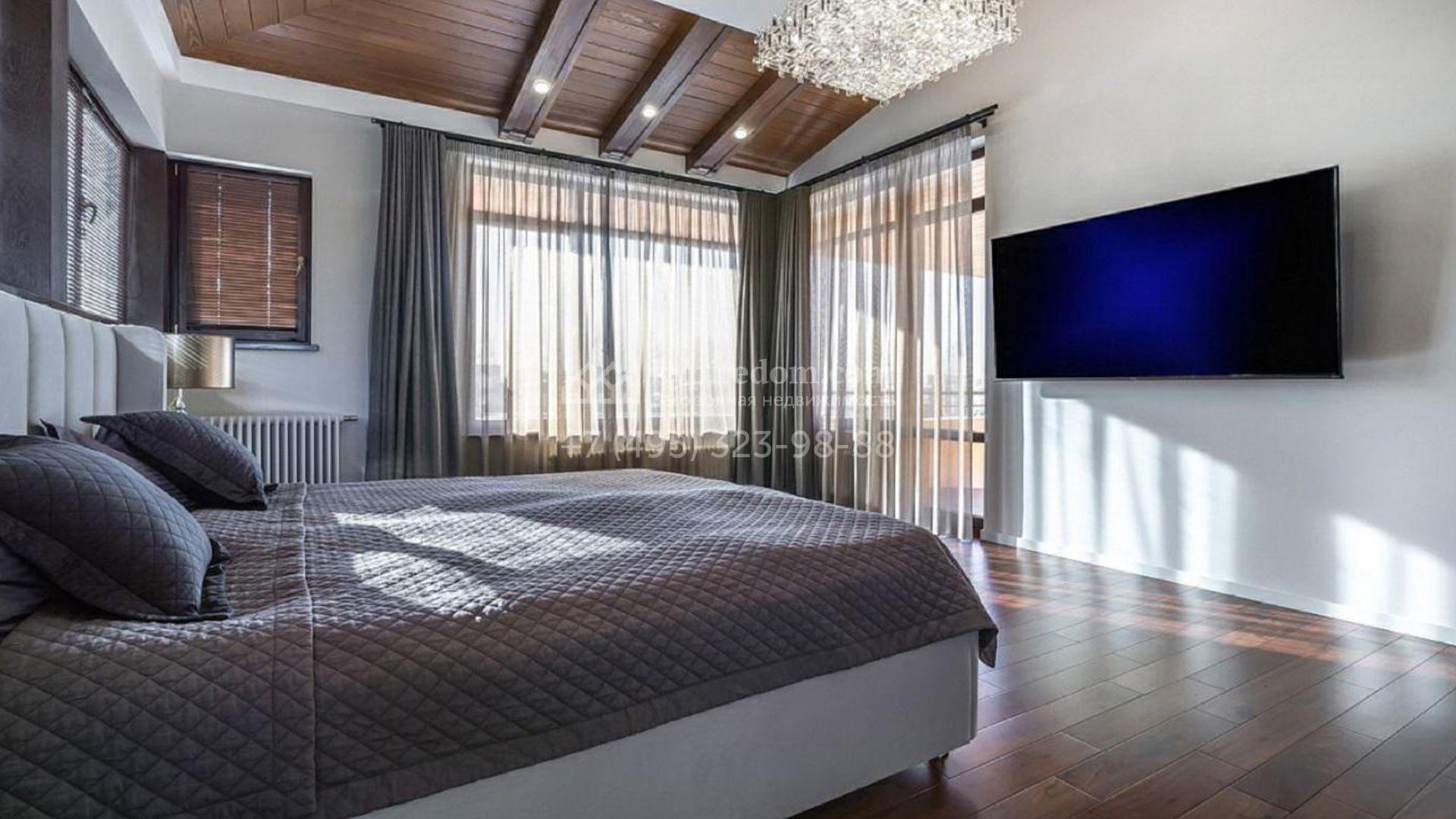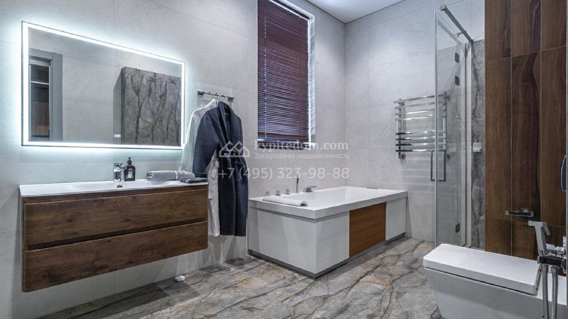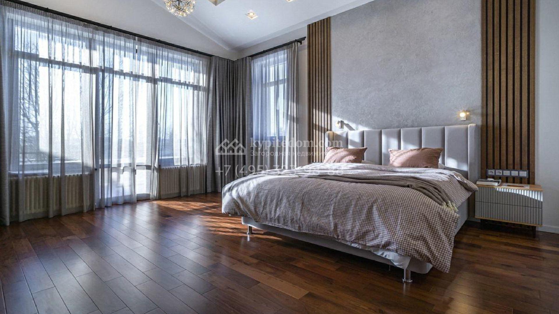 Особняк полностью укомплектован комфортной мебелью, изящным декором, бытовой техникой Kuppersbusch и сантехникой Villeroy&Boch, Jacob Delafon и Jacuzzi. Для идеального микроклимата предусмотрели систему приточно-вытяжной вентиляции с кондиционированием. Планировка включает просторную гостиную с французским камином SUPRA, облицованным натуральным камнем, столовую, кухню с двумя винными шкафами и столешницей из кварцита, уютную террасу, 4 спальни с гардеробными, сауну, бассейн с водопадом и гараж.
