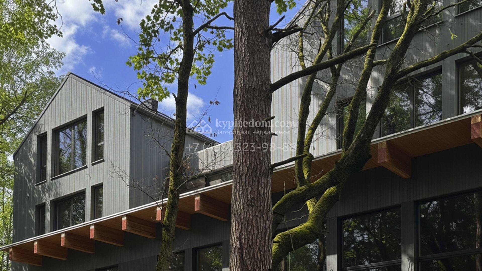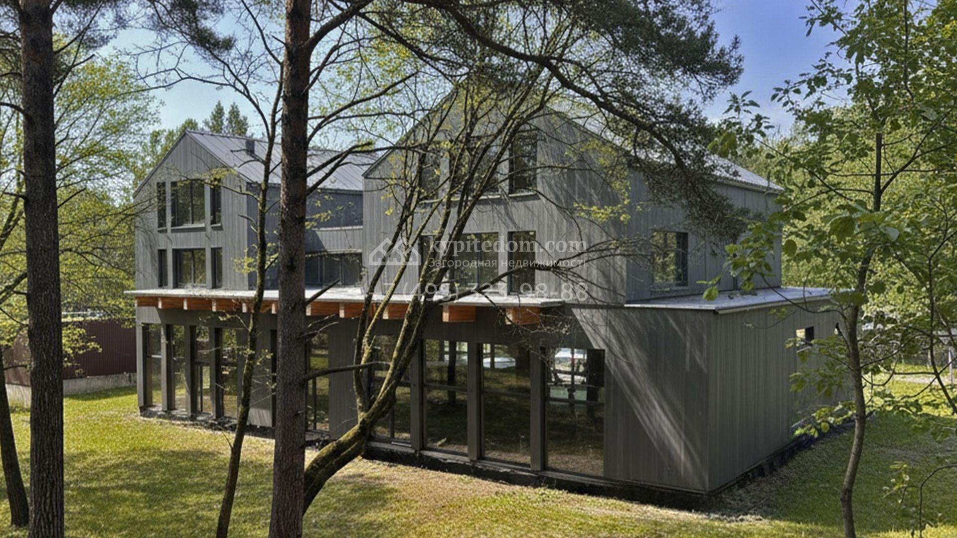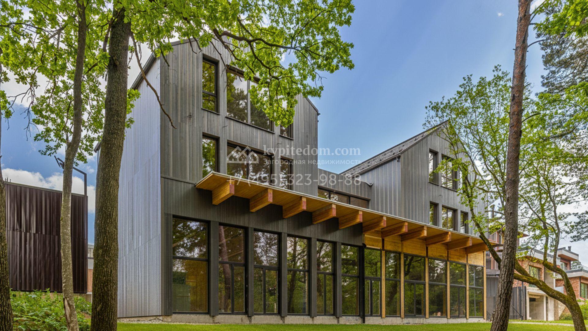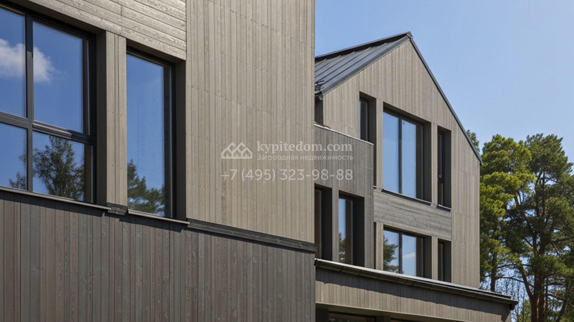 Современный коттедж площадью 1130 м² расположен на живописном лесном участке 50 соток. Фасад с чёткими геометрическими формами облицован панелями с фактурой дерева в благородном серо-коричневом оттенке. Большие панорамные окна не только открывают захватывающие виды на природу, но и наполняют внутренние помещения светом и солнцем. Отделка white box представляет собой идеальный холст для воплощения самых смелых дизайн-проектов — будущие владельцы смогут самостоятельно выбрать финишные покрытия, мебель и технику, создав дом, который будет полностью отражать их вкус и образ жизни.