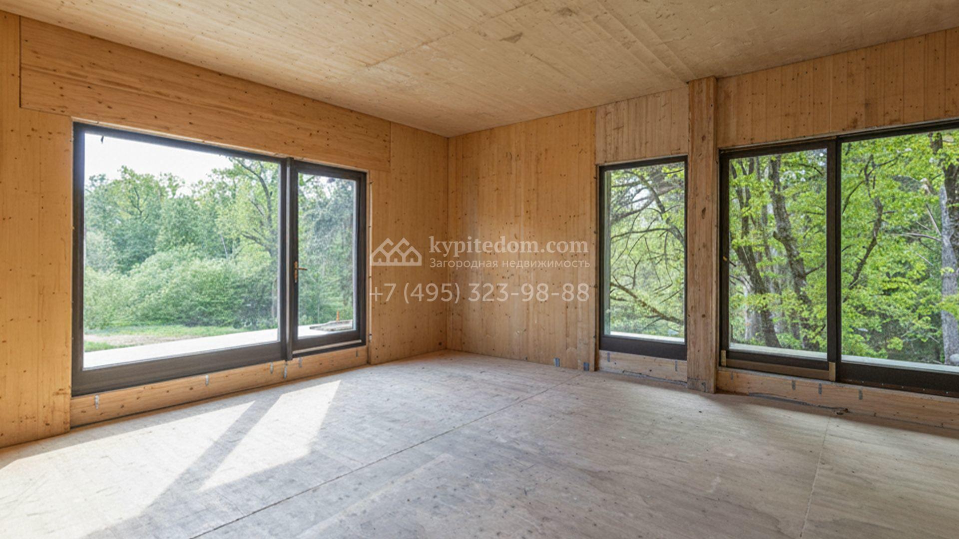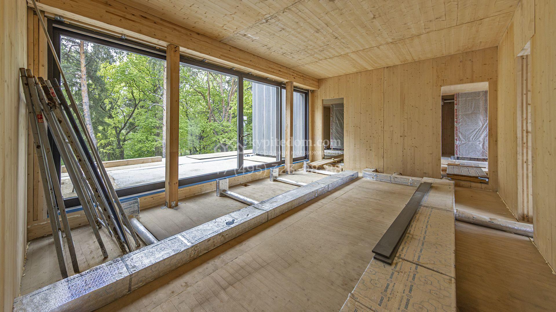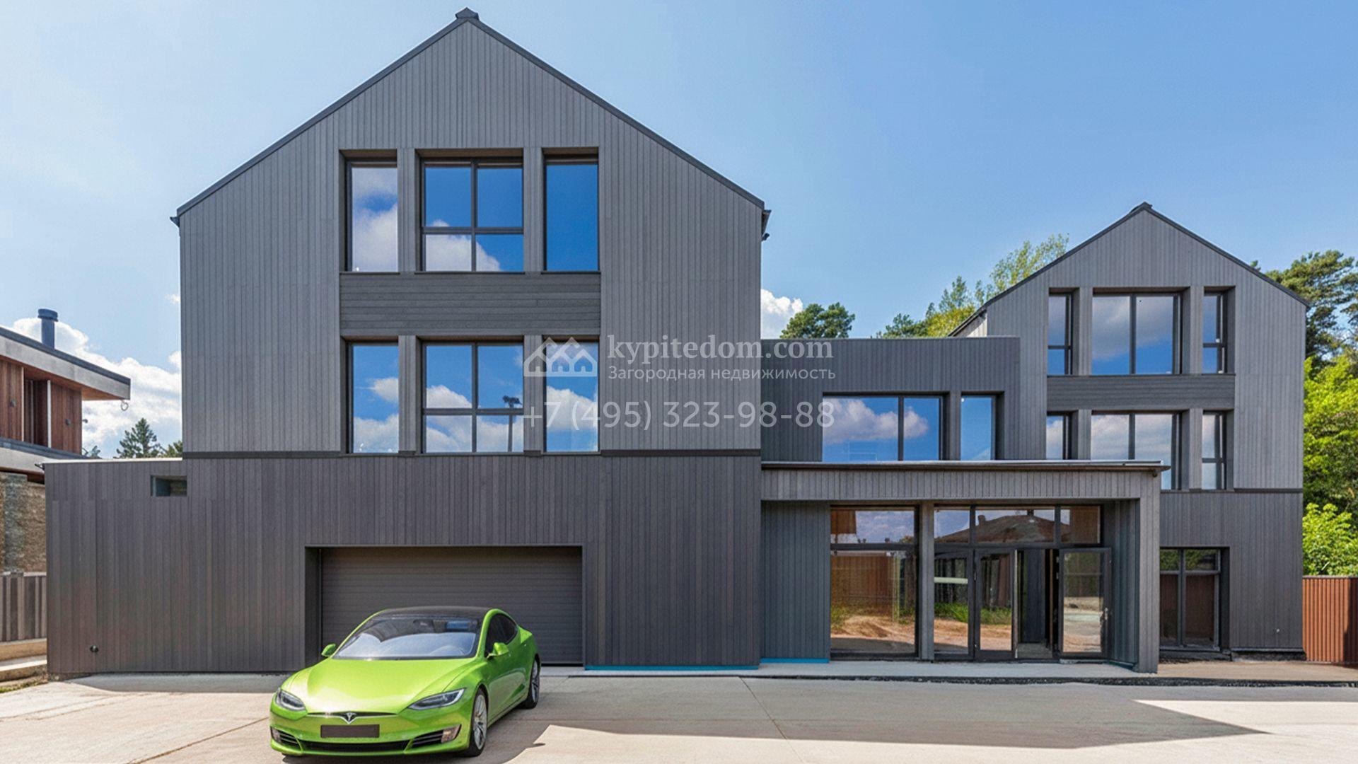 Современный коттедж площадью 1130 м² расположен на живописном лесном участке 50 соток. Фасад с чёткими геометрическими формами облицован панелями с фактурой дерева в благородном серо-коричневом оттенке. Большие панорамные окна не только открывают захватывающие виды на природу, но и наполняют внутренние помещения светом и солнцем. Отделка white box представляет собой идеальный холст для воплощения самых смелых дизайн-проектов — будущие владельцы смогут самостоятельно выбрать финишные покрытия, мебель и технику, создав дом, который будет полностью отражать их вкус и образ жизни.