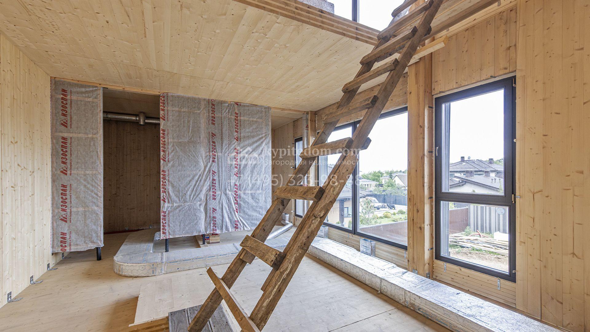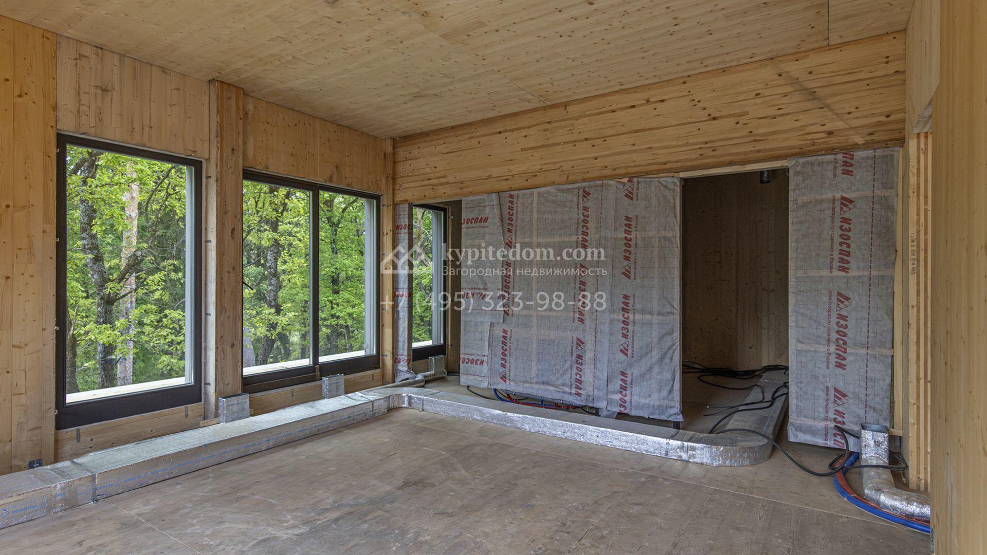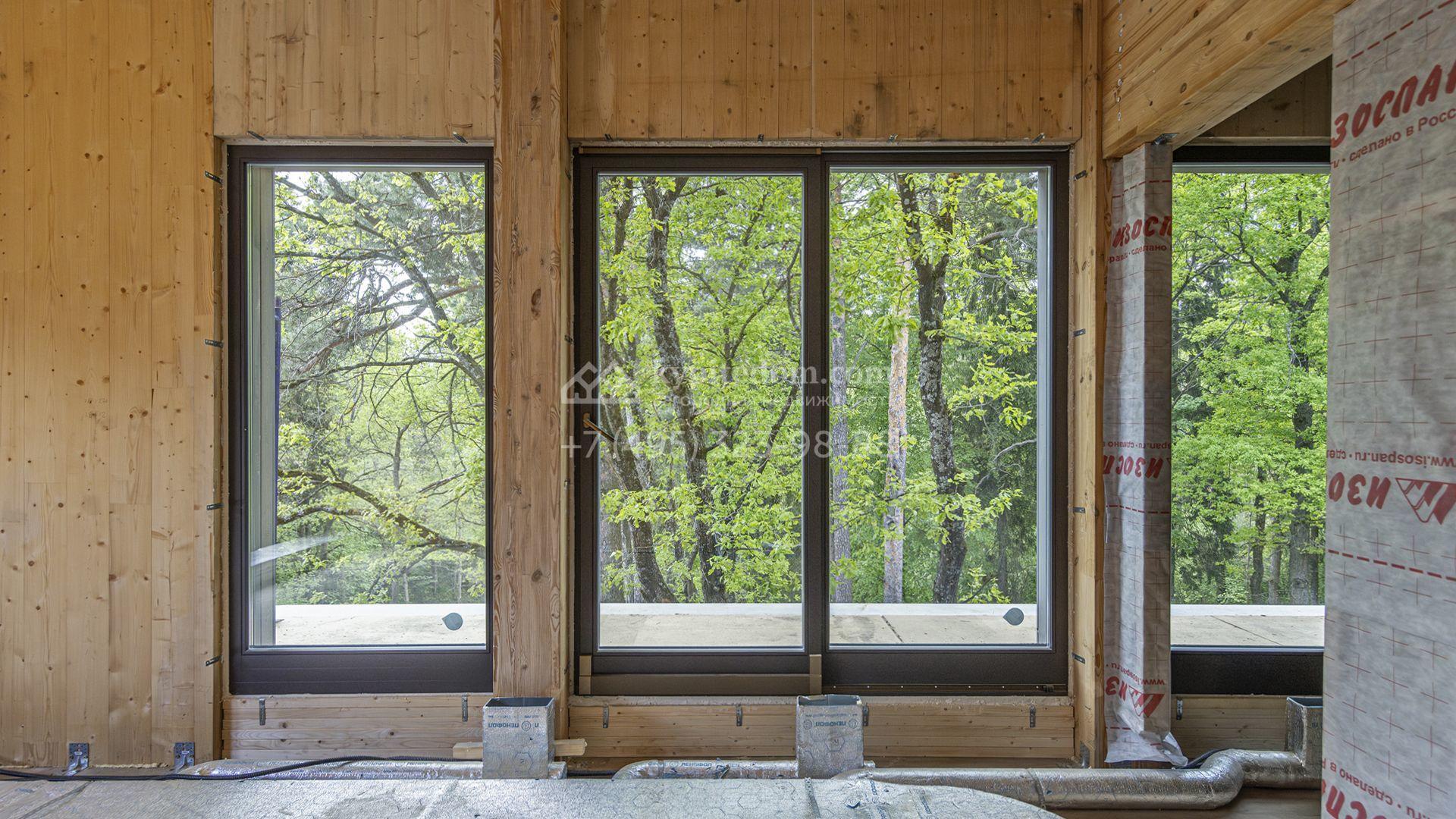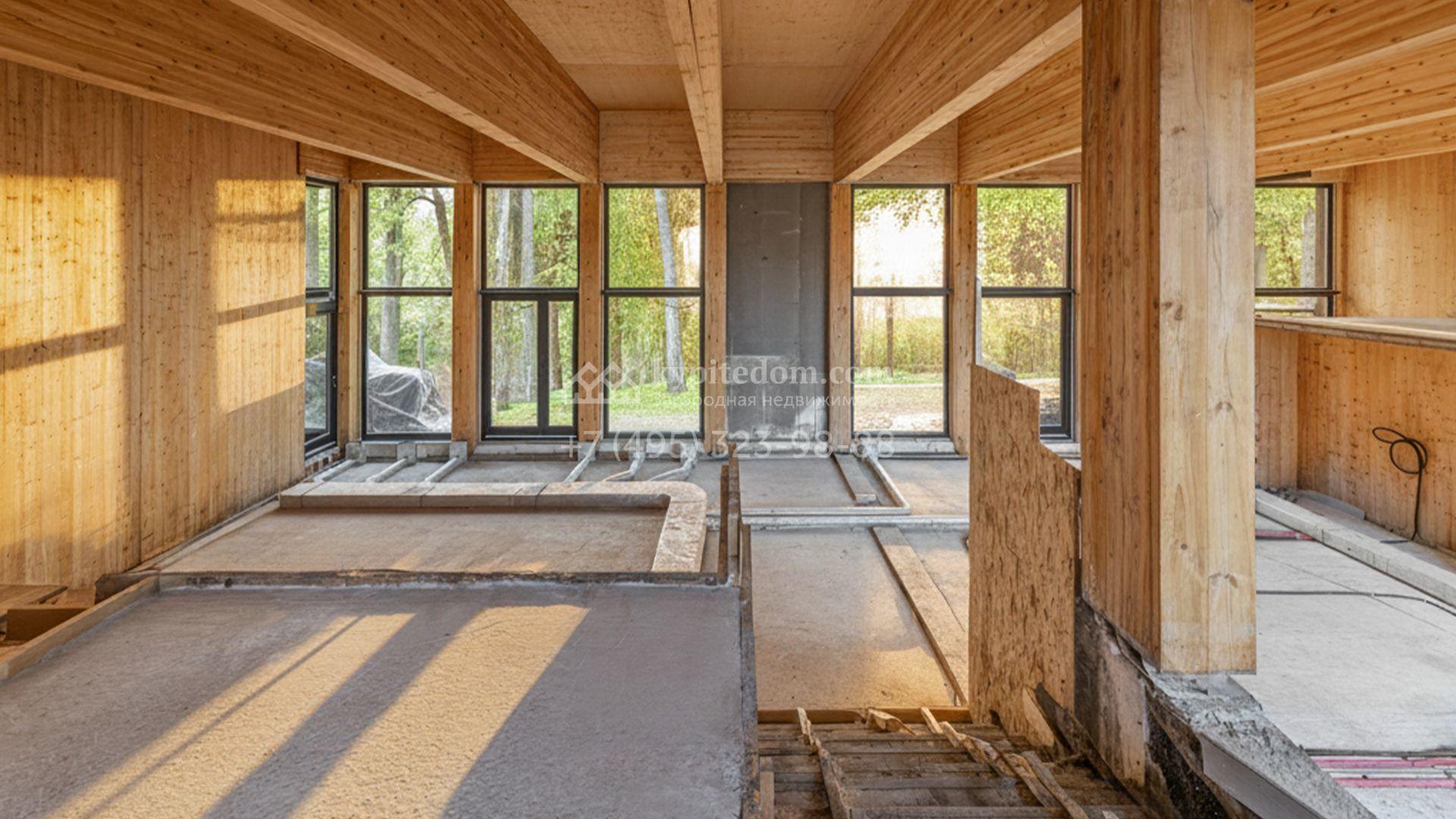 Современный коттедж площадью 1130 м² расположен на живописном лесном участке 50 соток. Фасад с чёткими геометрическими формами облицован панелями с фактурой дерева в благородном серо-коричневом оттенке. Большие панорамные окна не только открывают захватывающие виды на природу, но и наполняют внутренние помещения светом и солнцем. Отделка white box представляет собой идеальный холст для воплощения самых смелых дизайн-проектов — будущие владельцы смогут самостоятельно выбрать финишные покрытия, мебель и технику, создав дом, который будет полностью отражать их вкус и образ жизни.