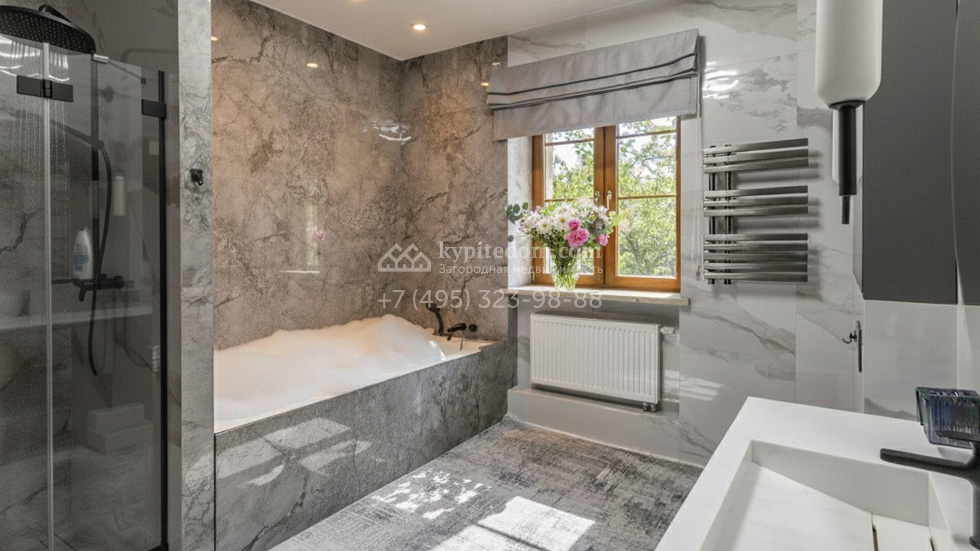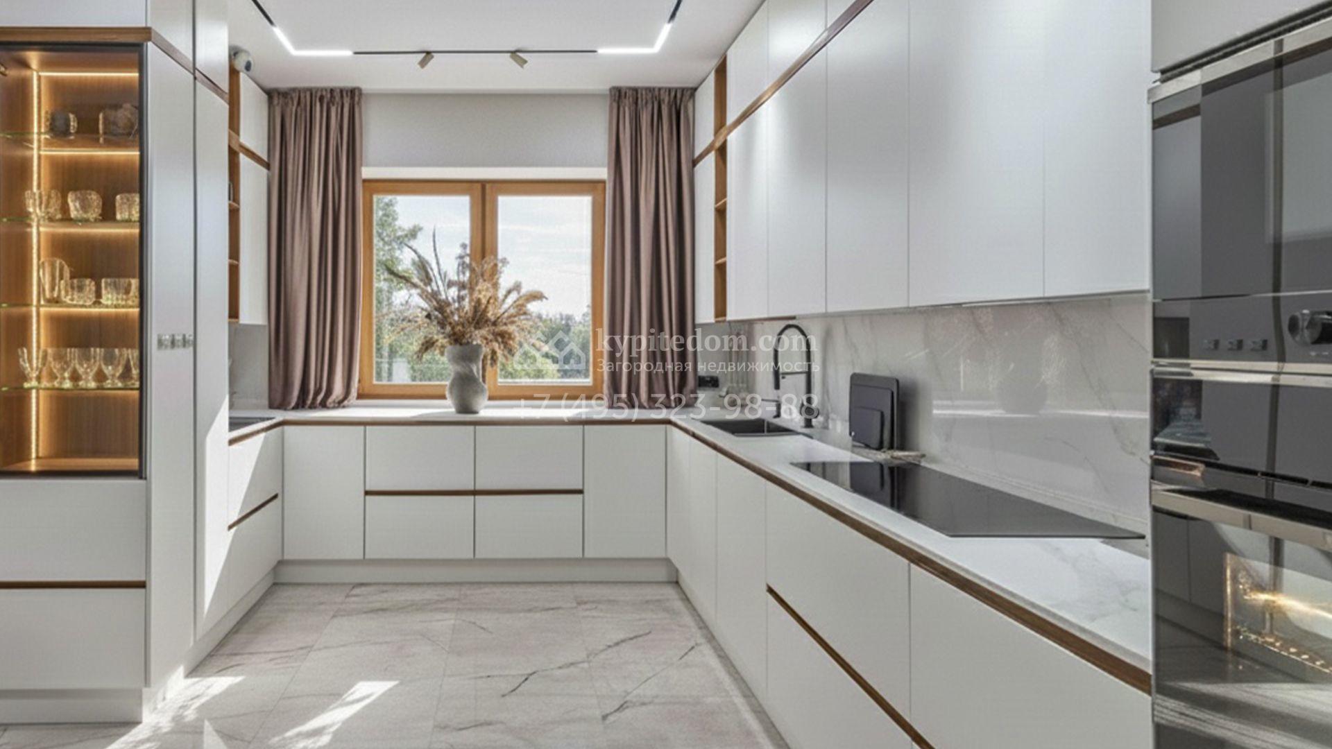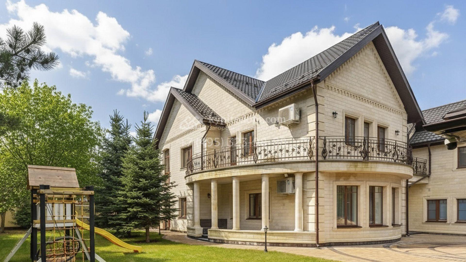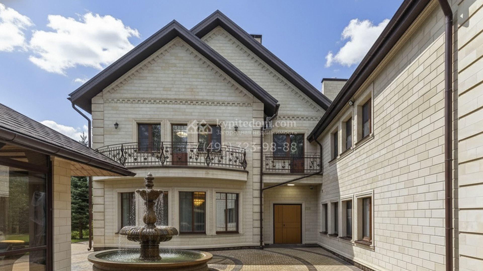 Загородный коттедж площадью 583 м² расположен на участке 16 соток рядом с живописным лесом. Проект дома создан известным архитектурным бюро, и его элегантный неоклассический фасад, облицованный светлым камнем и мрамором, украшают рустовка, монолитные колонны и изящные кованые элементы.