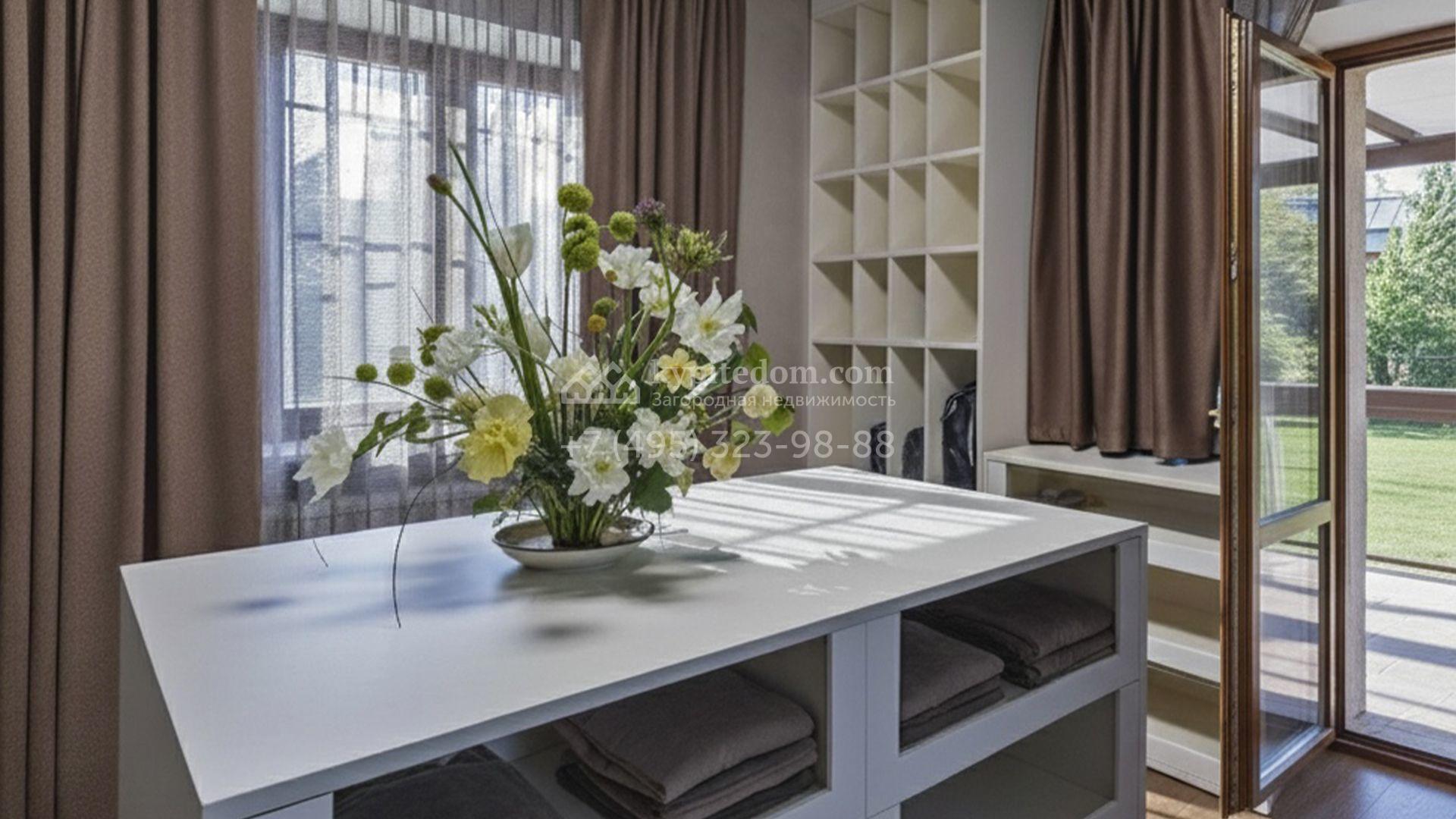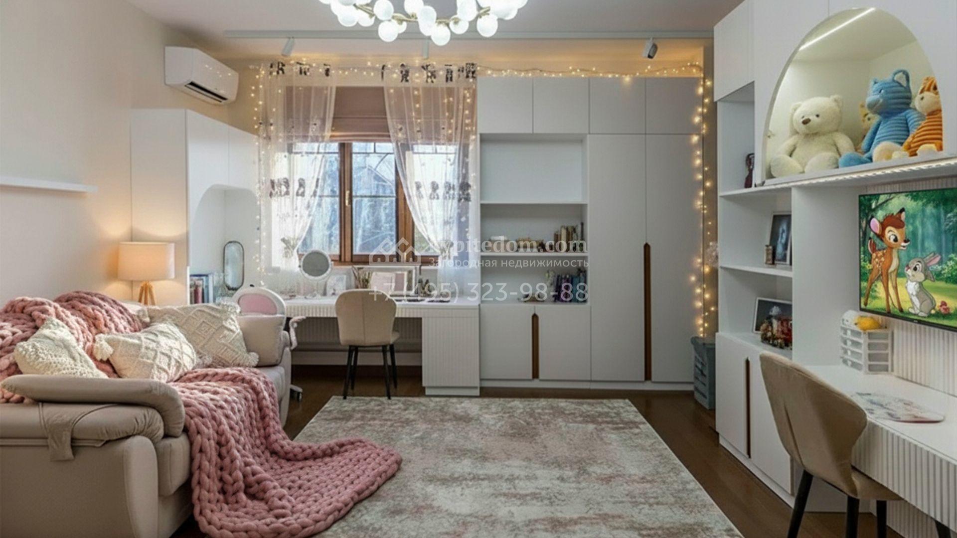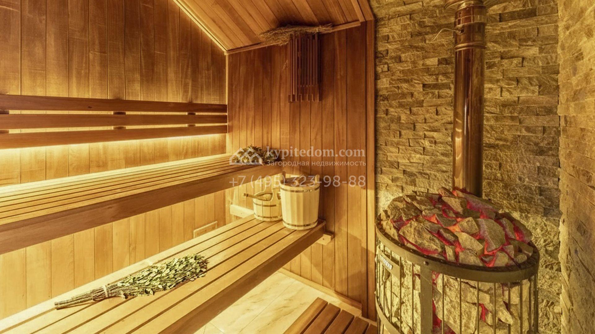 Кроме того, на территории построены баня, застеклённая летняя кухня, уютная беседка для тёплых вечеров в кругу близких и детская площадка. Участок с ухоженным газоном, освещёнными дорожками, пушистыми елями и декоративными кустарниками — это собственный уголок природы, где каждое утро начинается со свежего воздуха и пения птиц.
