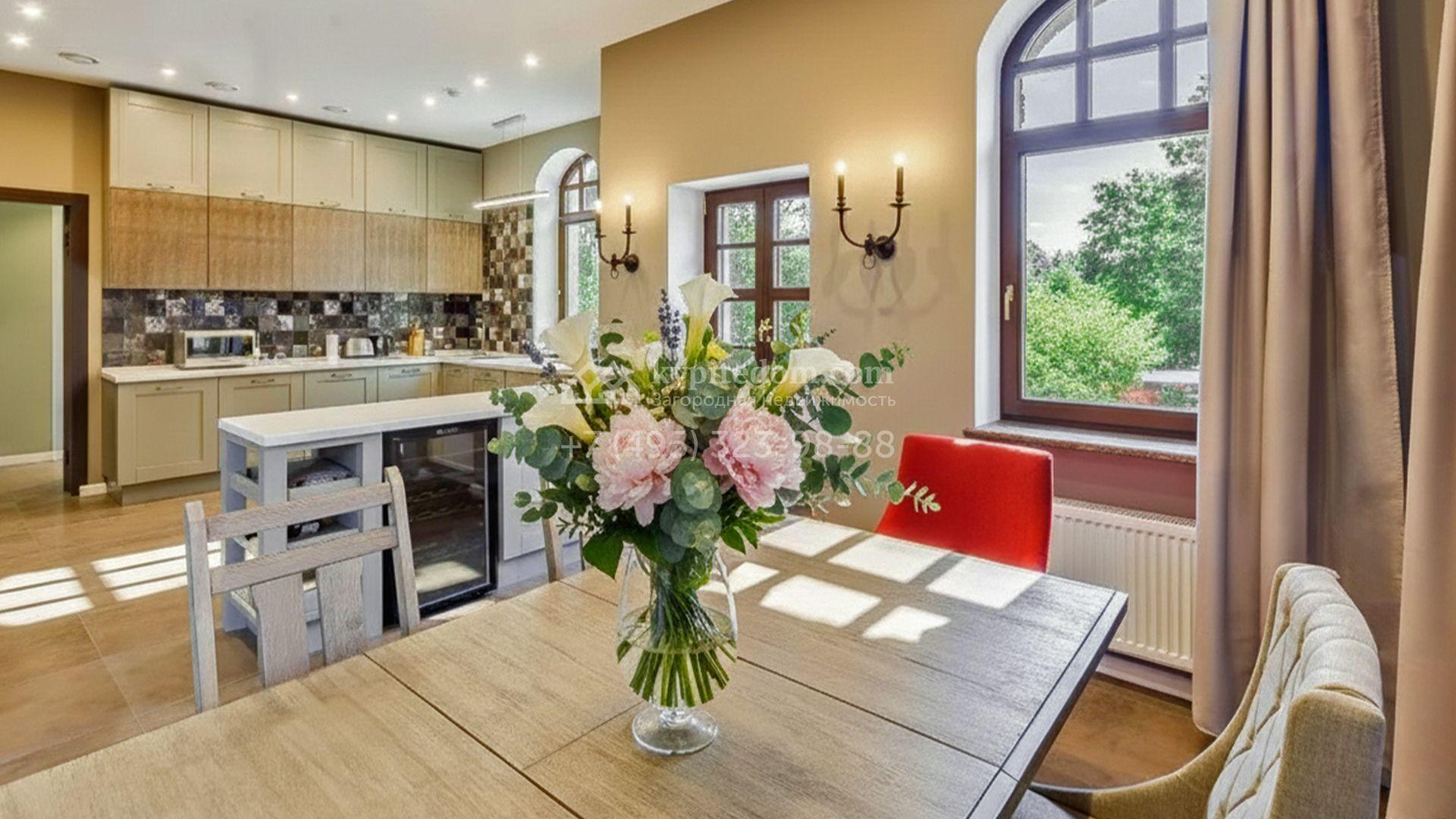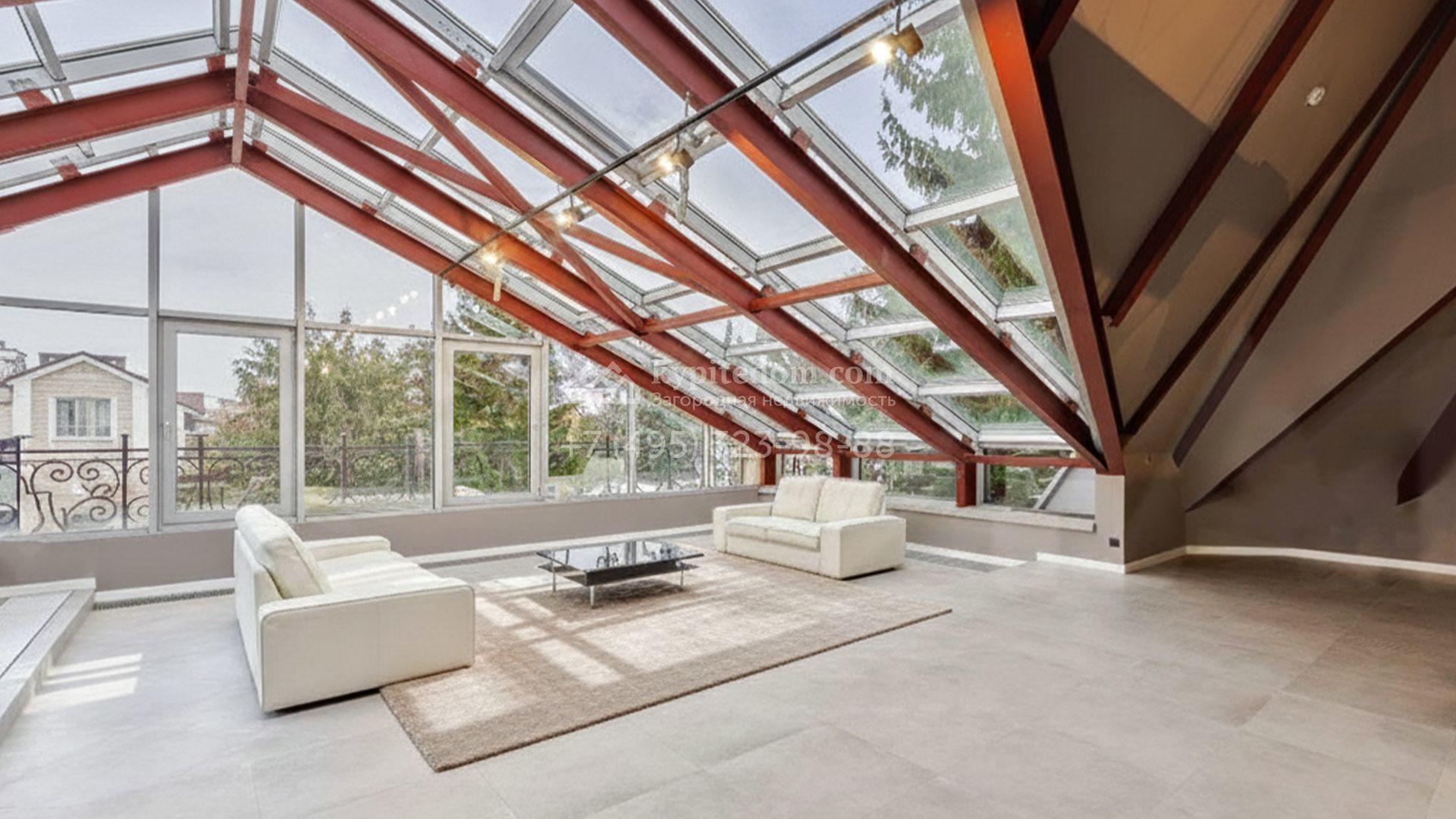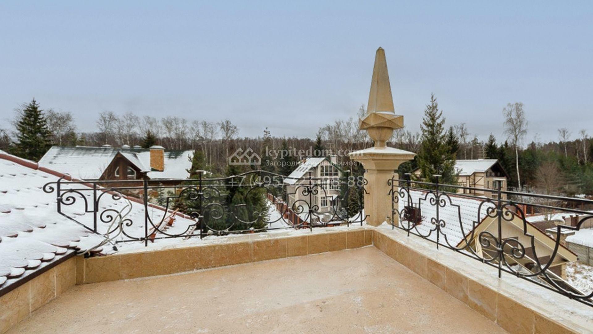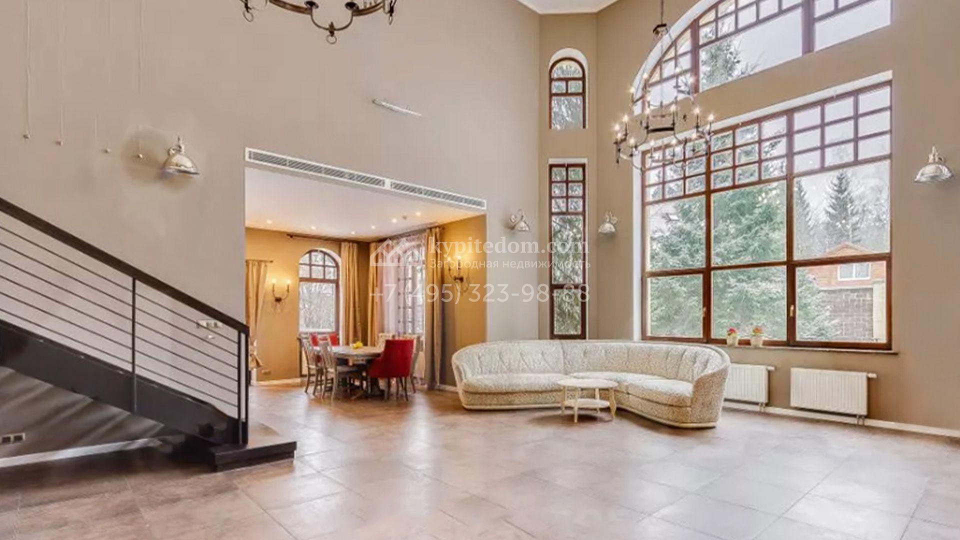 В отделке интерьера использовали натуральный массив дуба, сосну, оникс, сланец и мозаику. Дом обставили дизайнерской мебелью, оборудовали санузлы и светлую просторную кухню. В резиденции подключена система «умный дом» для контроля отопления, освещения и других параметров. Из окон спален открывается вид на ровную гладь декоративного пруда. Дополнительно на территории построили дом персонала с гаражом для двух машин и русскую дровяную баню.