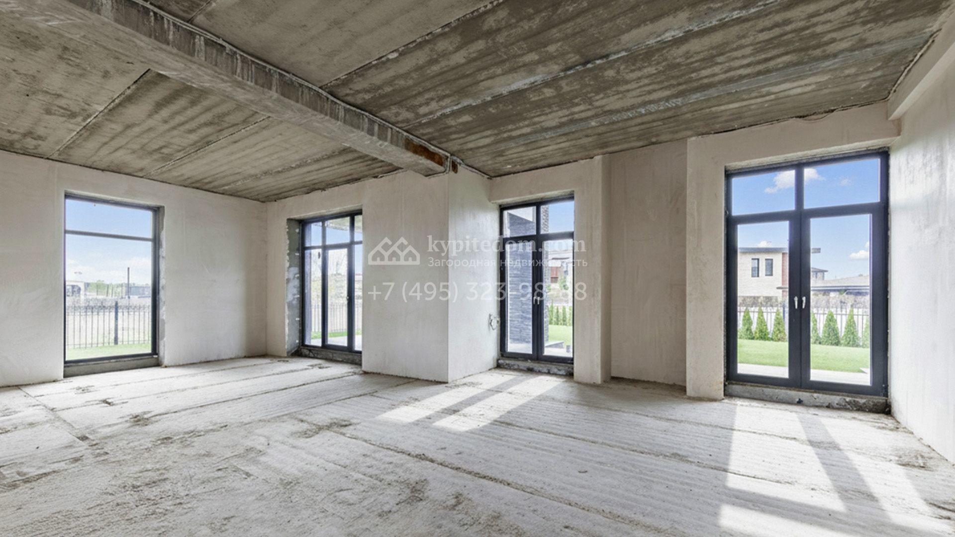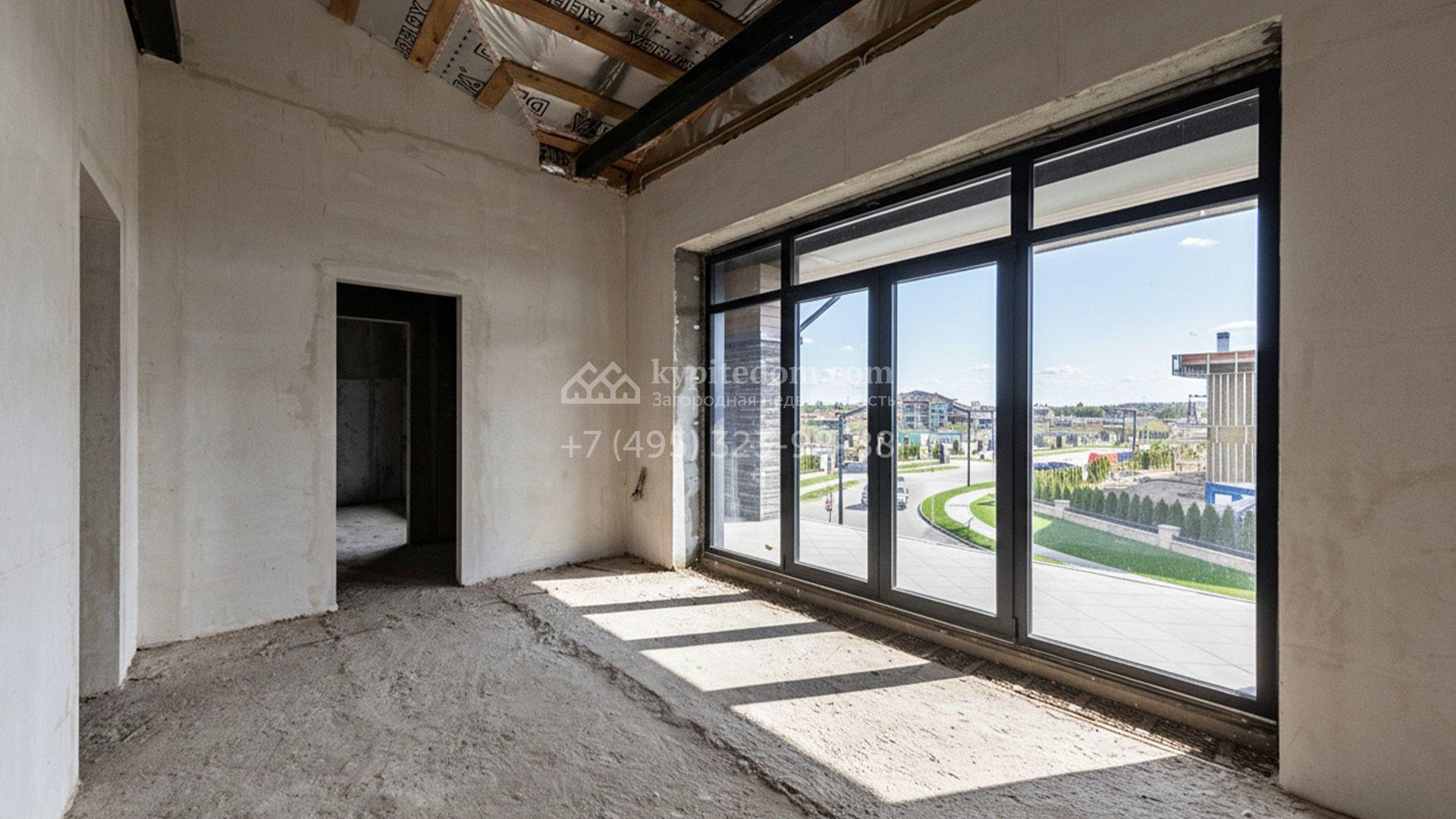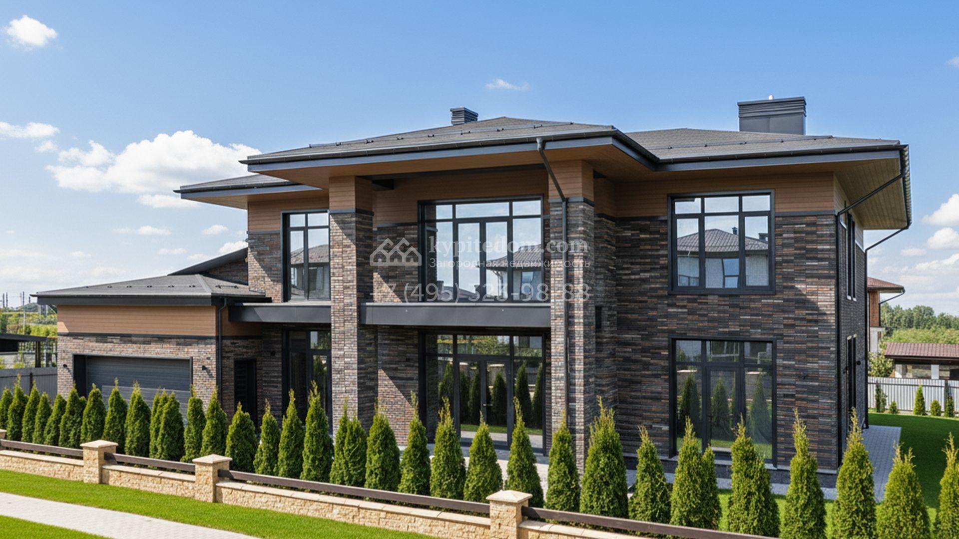 Загородный коттедж площадью 460 м² расположен на живописном полевом участке 13,6 соток. Современный фасад облицован благородной клинкерной плиткой и термообработанным деревом. Архитектурная подсветка мягко подчёркивает чёткие линии здания в вечернее время, создавая эффектный облик. Панорамные окна наполняют внутренние пространства естественным светом, а отсутствие отделки даёт возможность будущим владельцам реализовать любые дизайнерские решения.