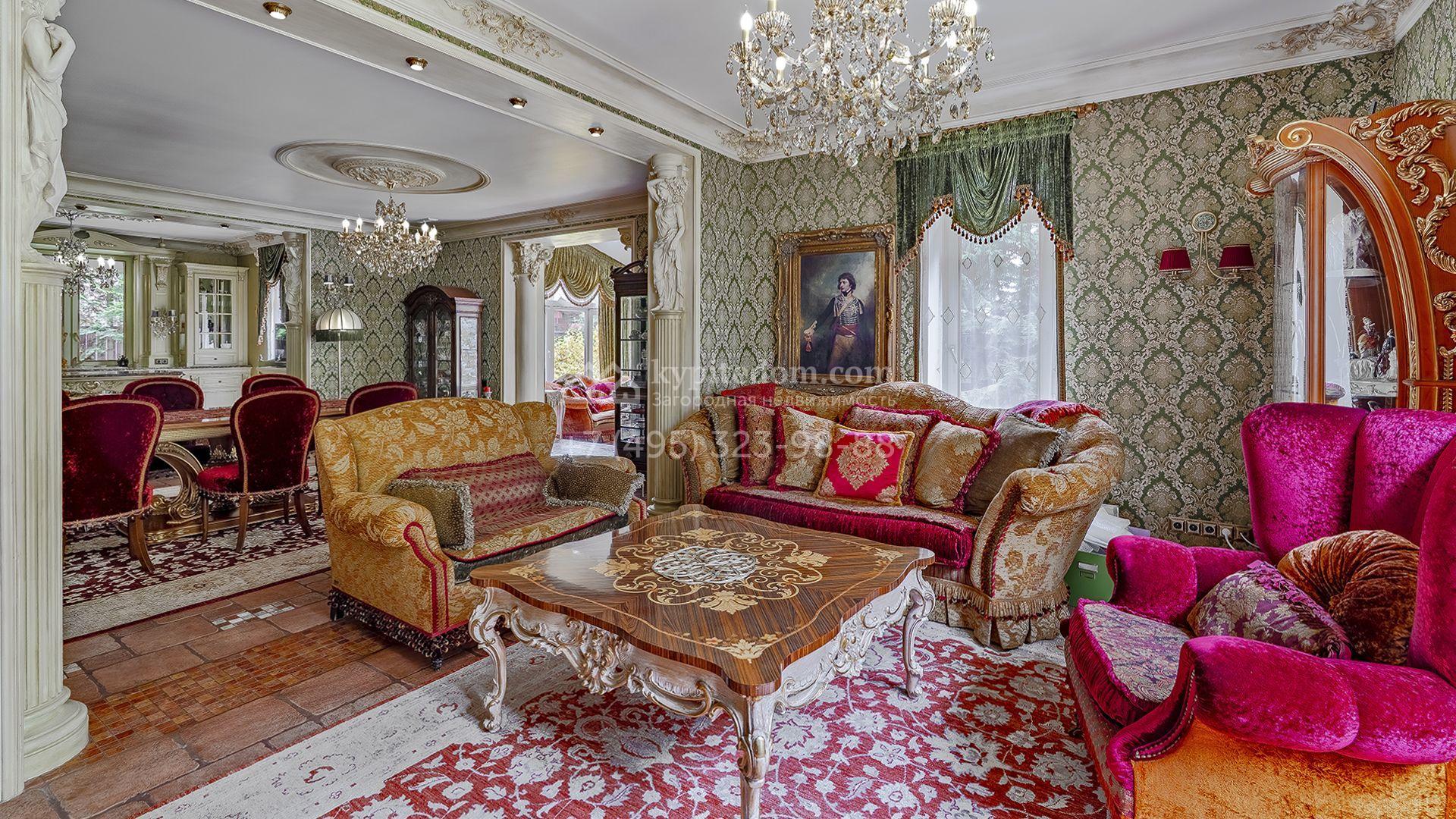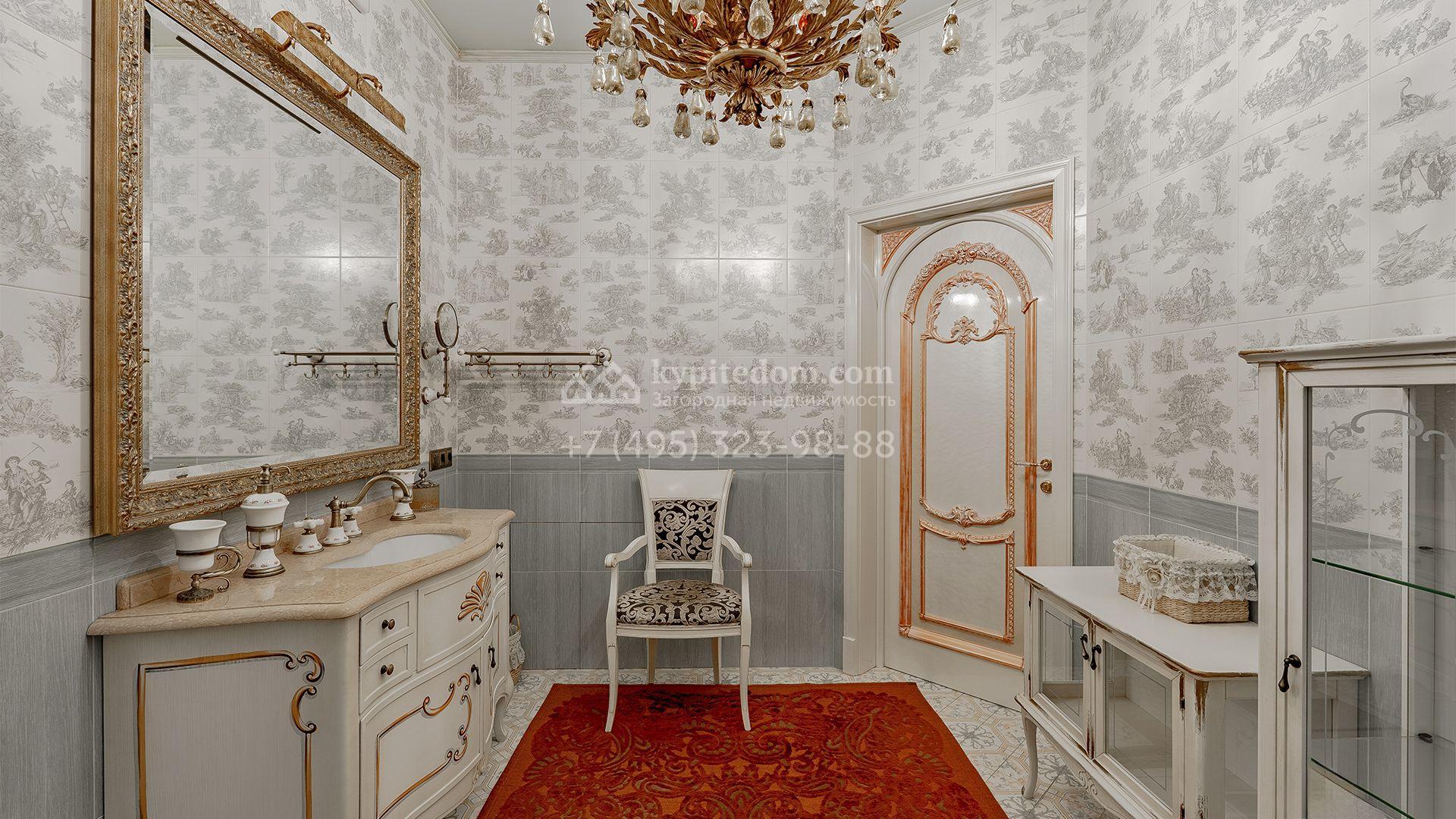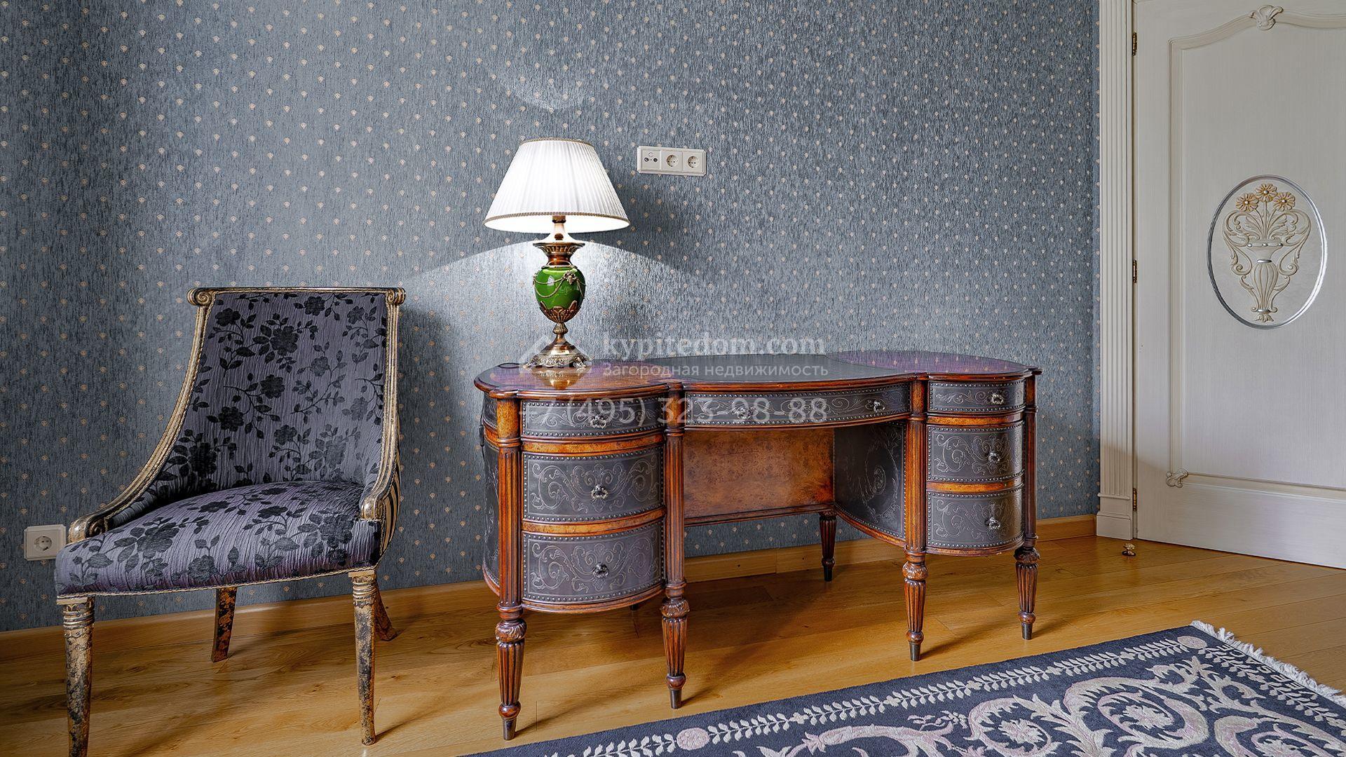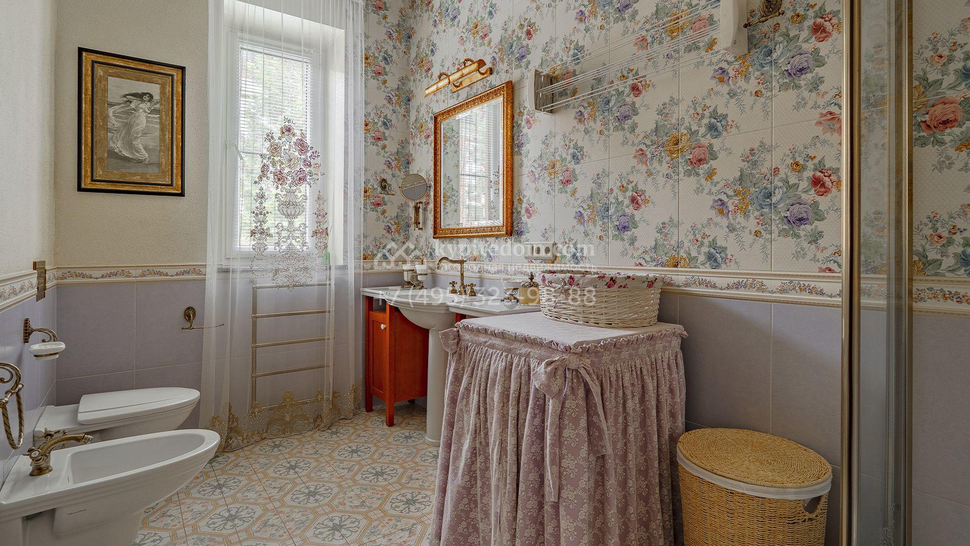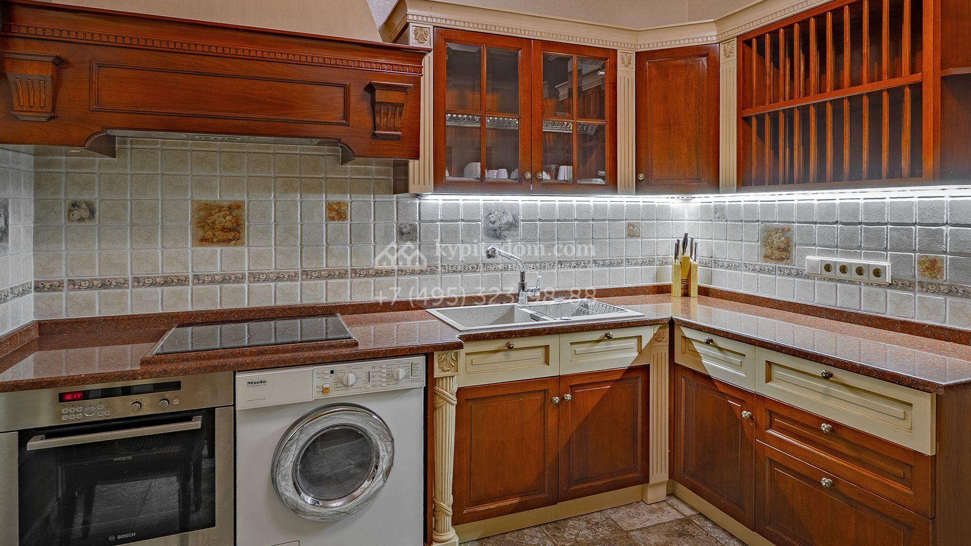 Интерьеры, гармонично сочетающиеся с внешним обликом здания, щедро украшены художественной росписью, лепниной, молдингами, изящными люстрами, антикварными акцентами и предметами ручной работы. Дом укомплектован бархатной мебелью Provasi, роскошным текстилем и бытовой техникой ведущих брендов — Smeg, Miele и Bosch. Система кондиционирования обеспечивает комфортный микроклимат в течение всего года.