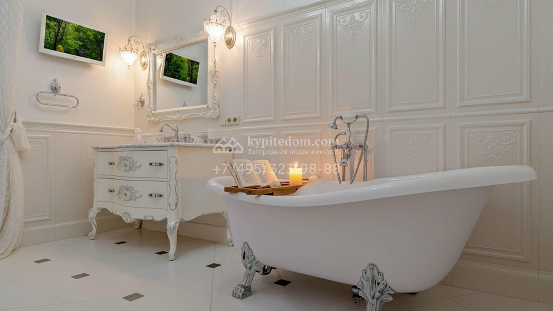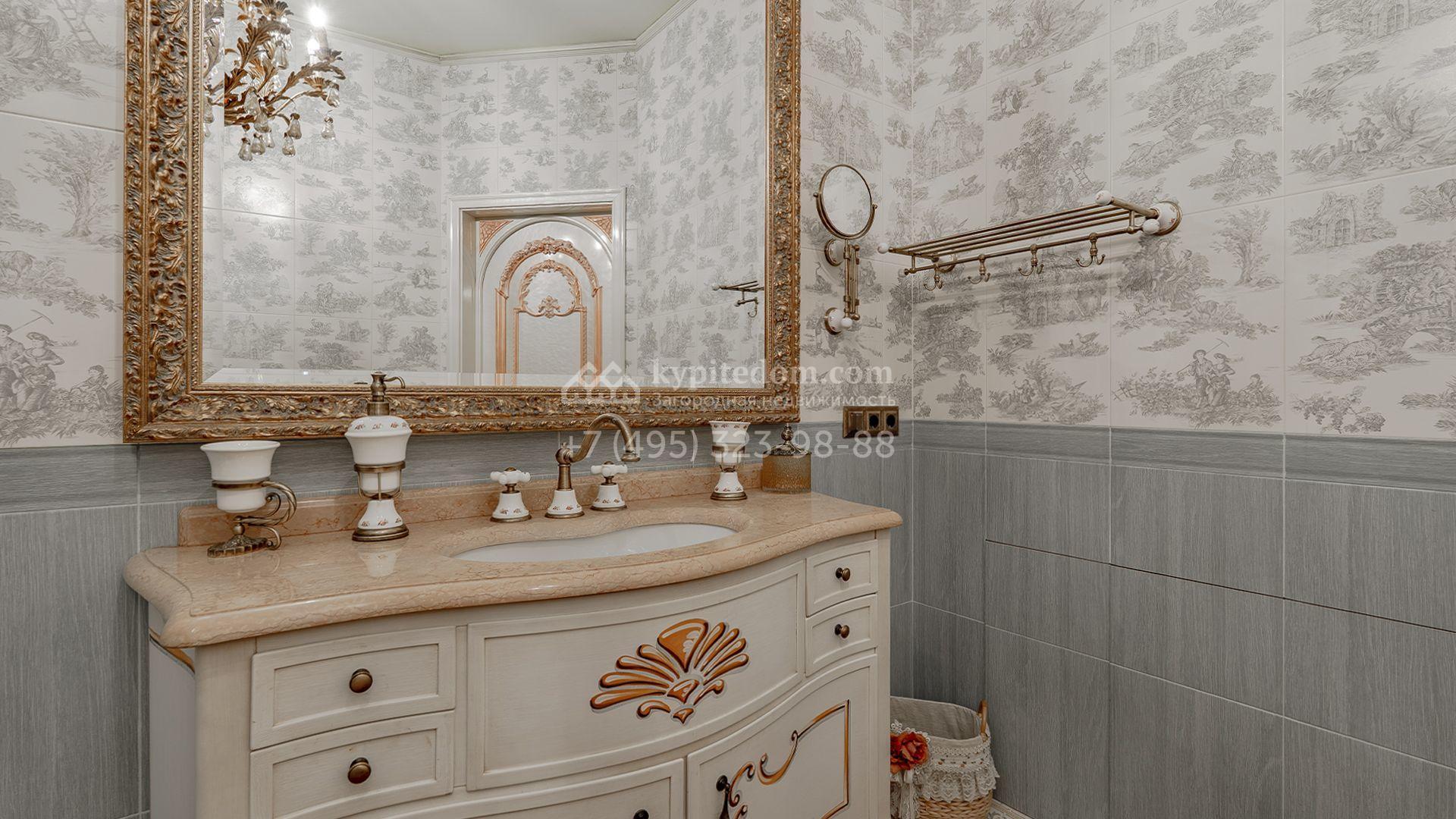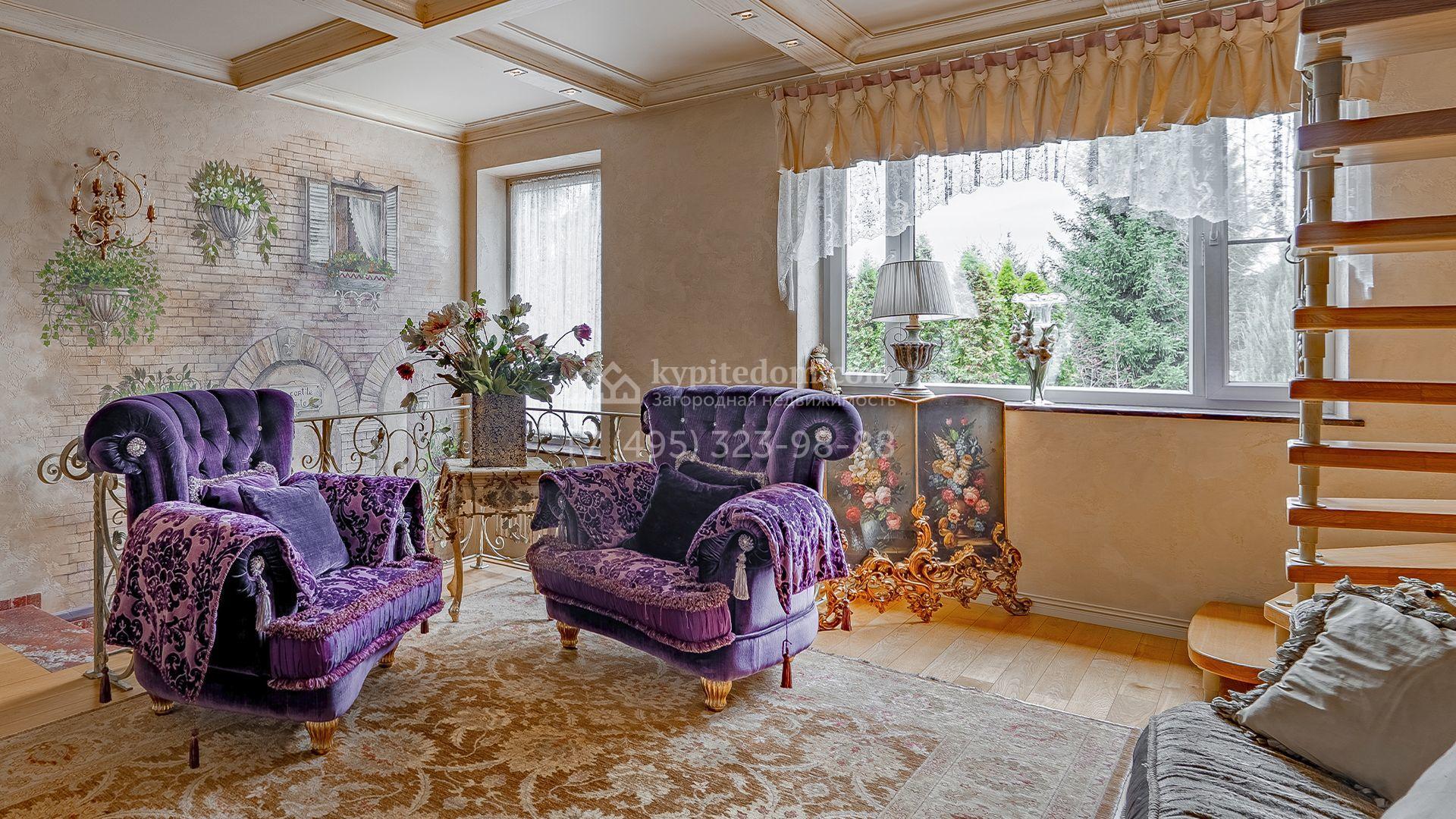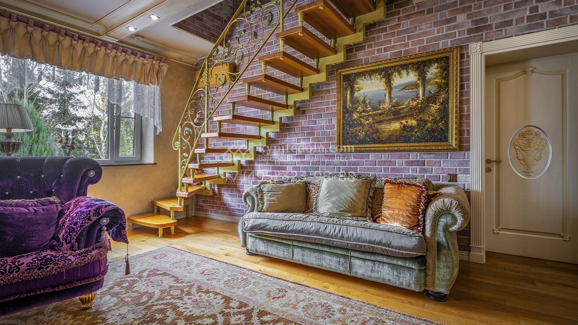 Интерьеры, гармонично сочетающиеся с внешним обликом здания, щедро украшены художественной росписью, лепниной, молдингами, изящными люстрами, антикварными акцентами и предметами ручной работы. Дом укомплектован бархатной мебелью Provasi, роскошным текстилем и бытовой техникой ведущих брендов — Smeg, Miele и Bosch. Система кондиционирования обеспечивает комфортный микроклимат в течение всего года.