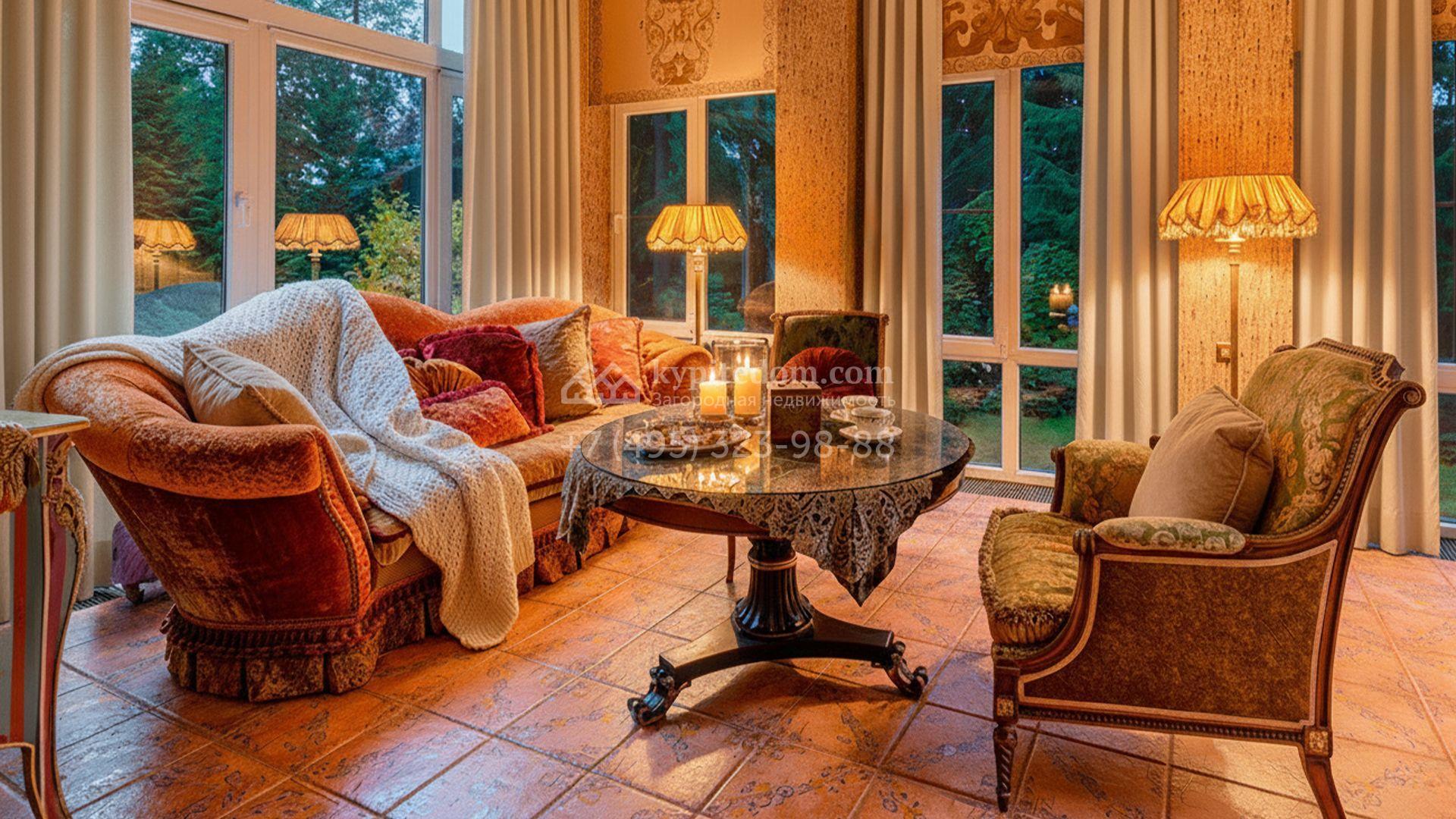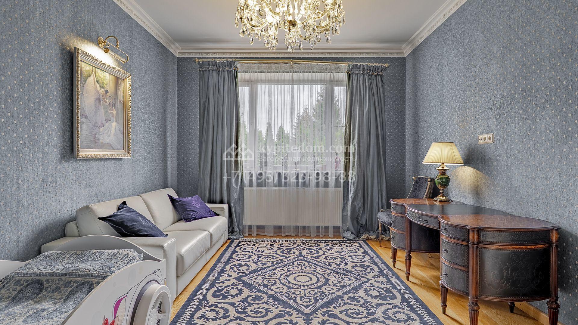 Центром притяжения стала просторная гостиная-столовая с большими окнами, открывающими живописные виды на сад и наполняющими пространства солнечным светом. Кроме того, планировка включает кухню с мраморными столешницами, застеклённую террасу, четыре уютные спальни, библиотеку и вместительные гардеробные. В комнатах свободного назначения на цокольном уровне и на мансарде можно обустроить бильярдную, спортзал, кинотеатр или кабинет для работы. Дополняют инфраструктуру квартира для персонала с отдельным входом, двухместный навес и открытая парковка на две машины.