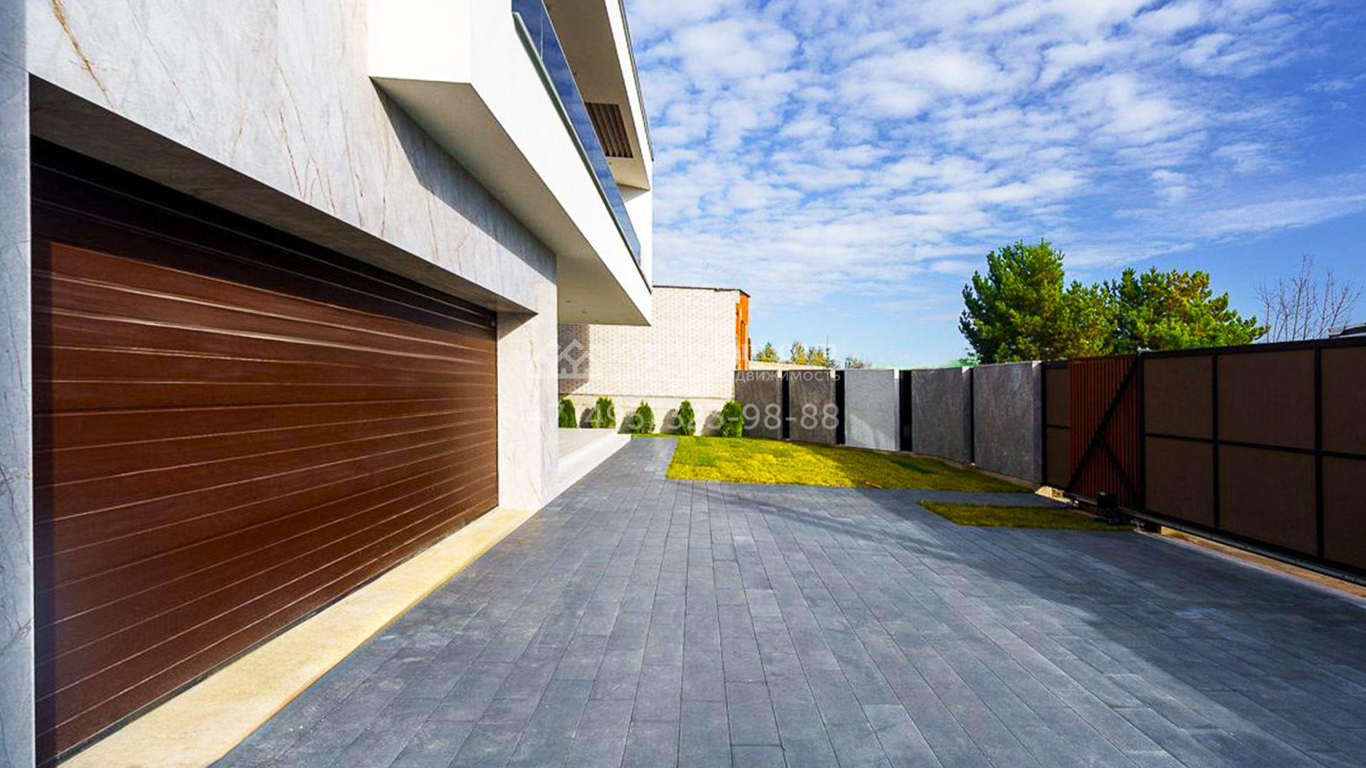 Планировка включает просторную гостиную, кухню-столовую, пять спален, вместительные гардеробные и двухместный гараж. Для отдыха на свежем воздухе идеально подойдут уютные террасы. Участок благоустроен — здесь засеян аккуратный газон, растут многолетние деревья, а продуманное уличное освещение создаёт приятную и умиротворяющую атмосферу в вечерние часы.
