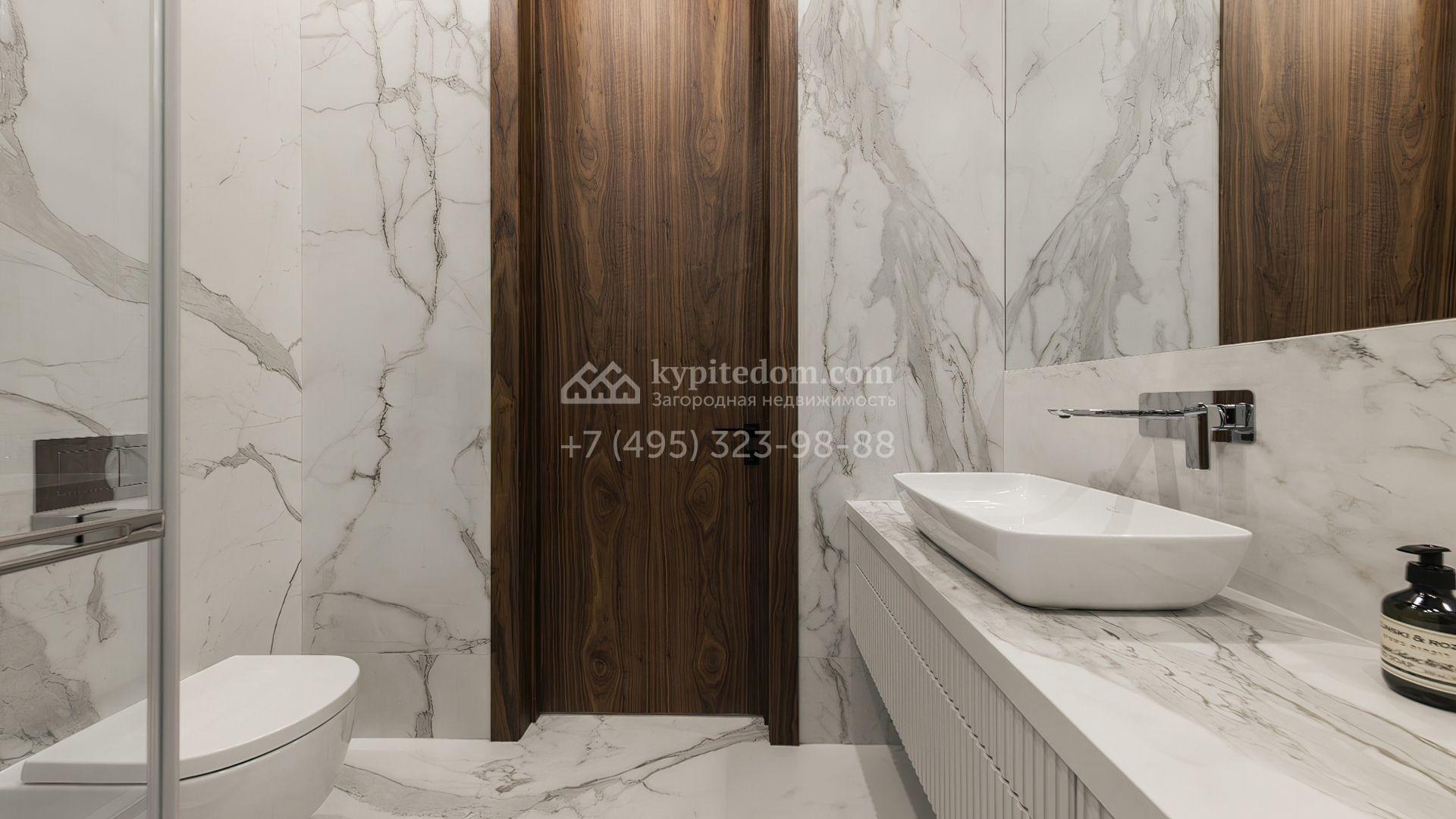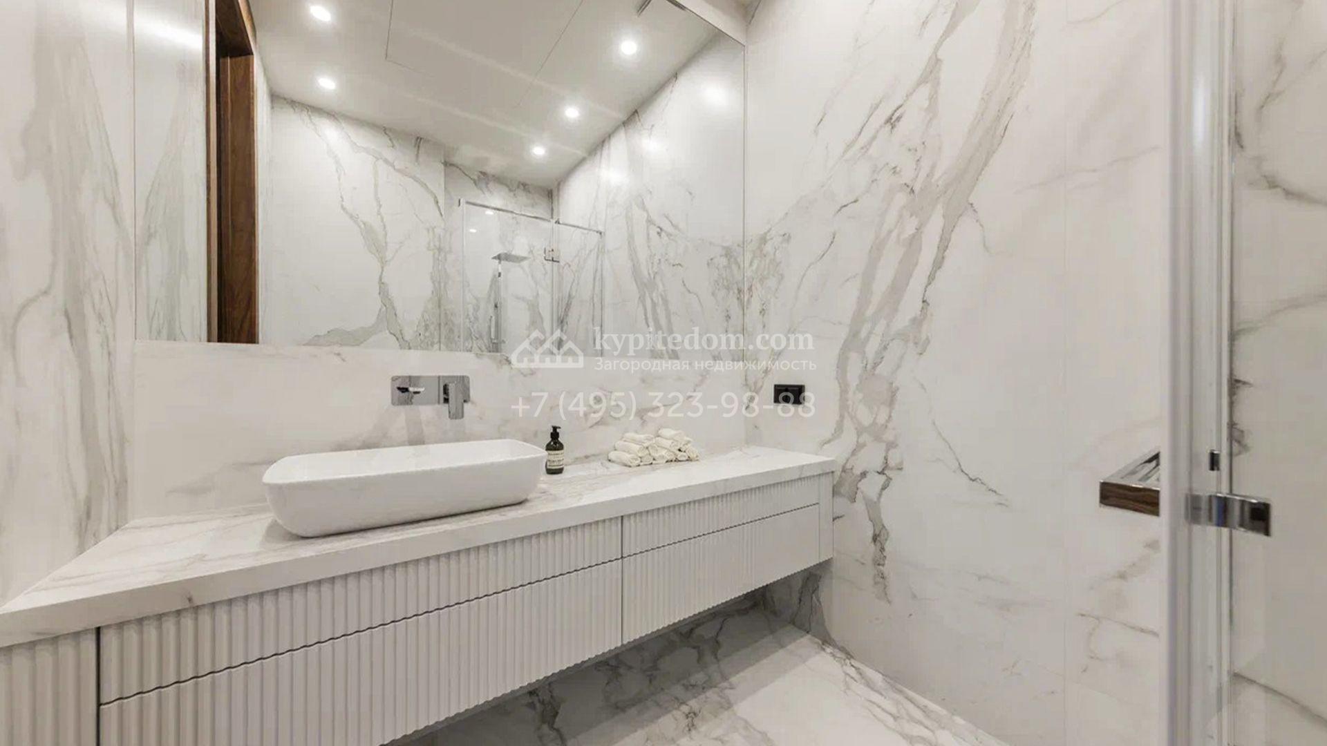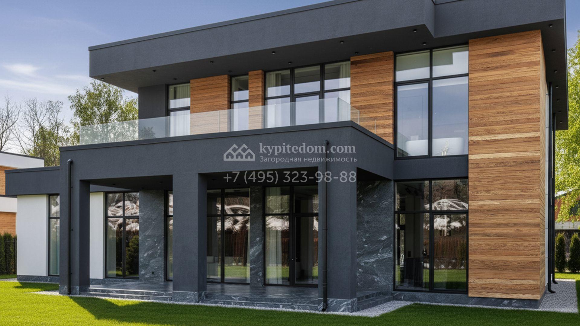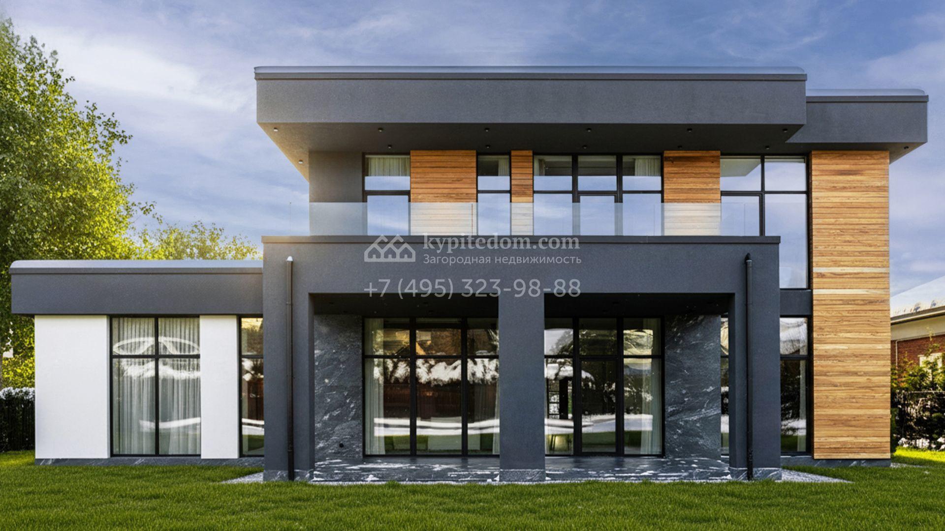 Новый загородный дом площадью 523 м² расположен на участке 11,5 соток. Чёткие прямые линии и минималистичный дизайн фасада формируют выразительный и утончённый облик. В облицовке использованы контрастные материалы в сдержанных белых и тёмно-серых тонах с фактурой камня и дерева. Экстерьер подчеркивается декоративной подсветкой. Коттедж оснащён приточно-вытяжной вентиляцией, кондиционированием, подогревом полов и системой «умный дом».