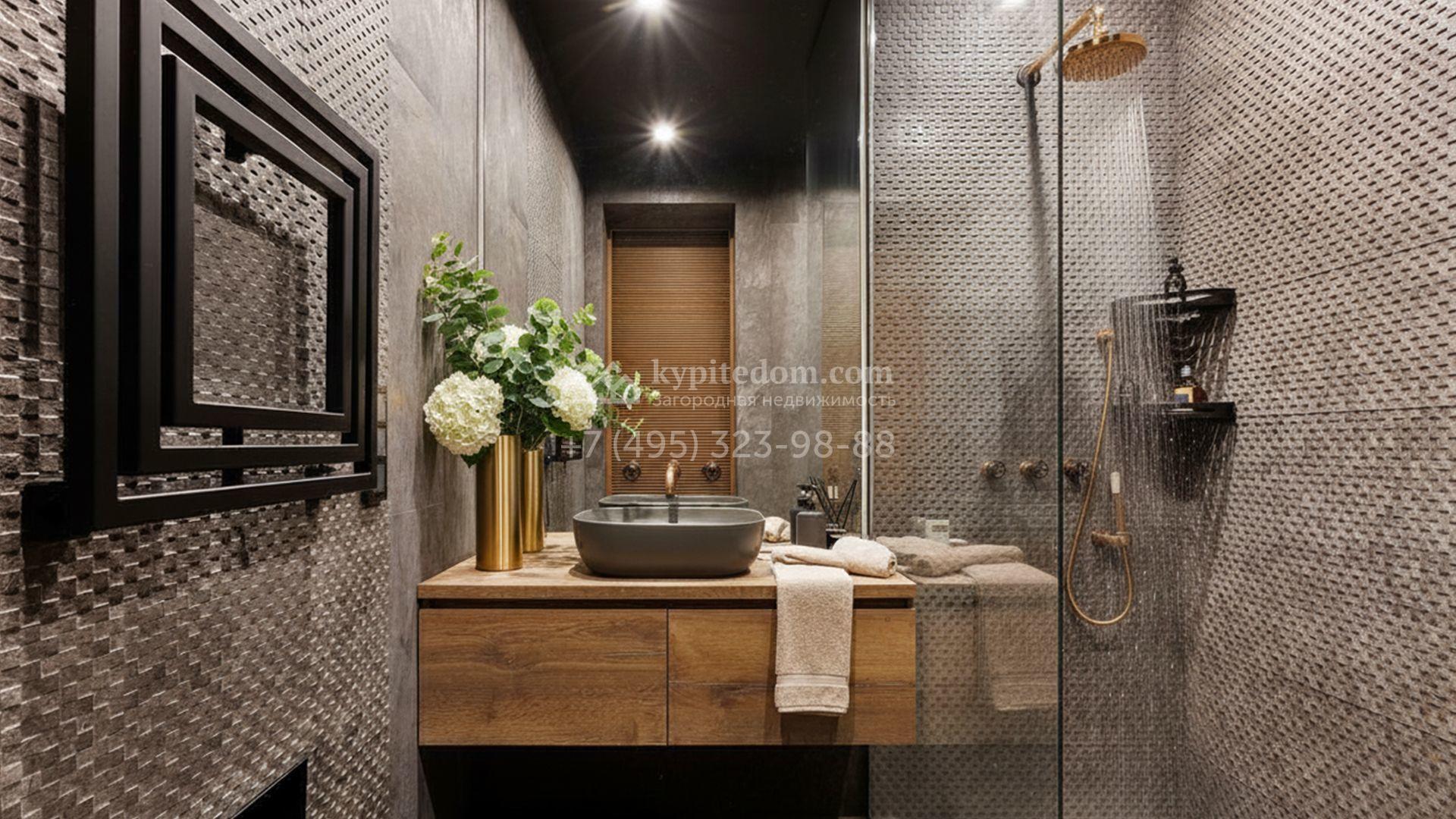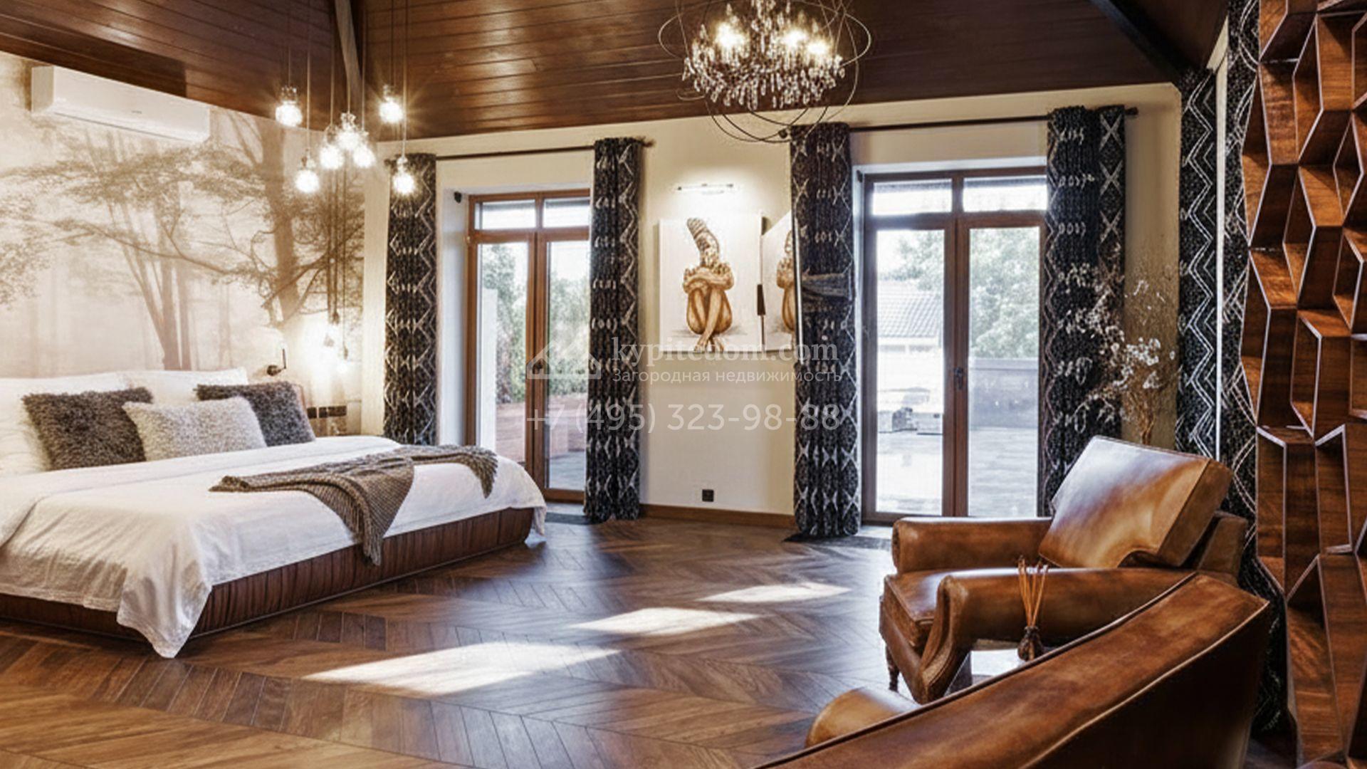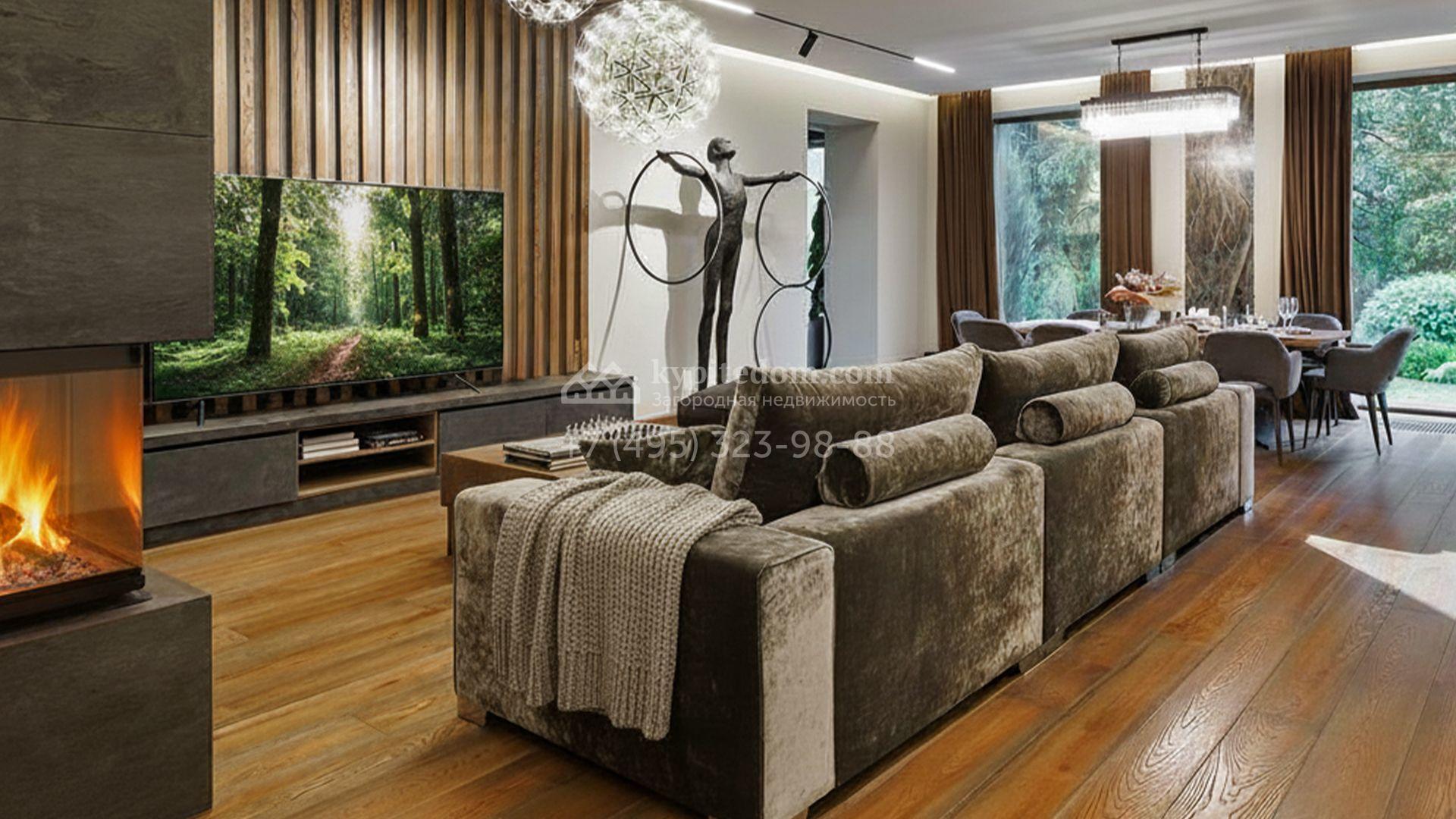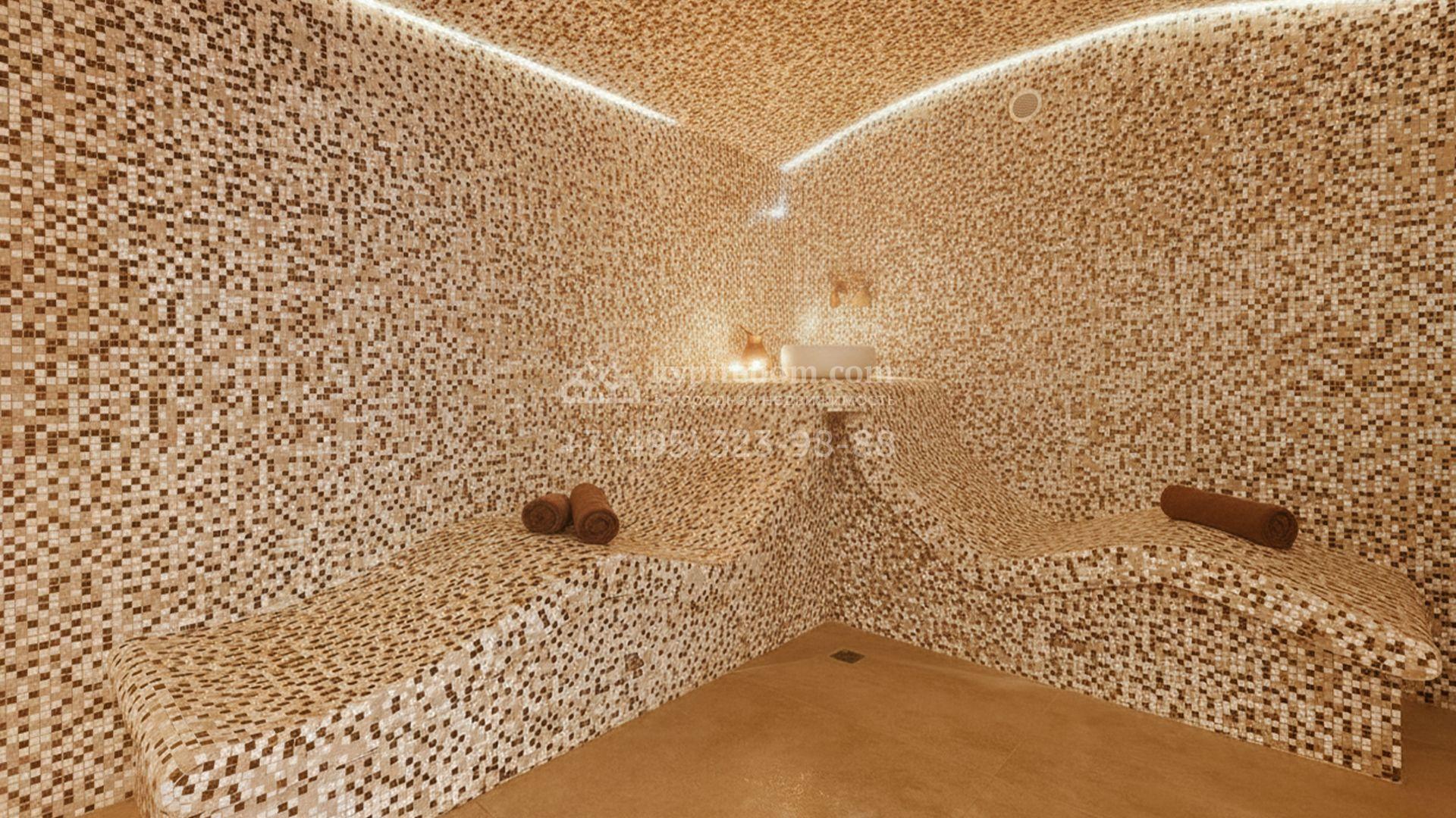 Внутренние пространства выдержаны в спокойной светлой палитре, где гармонично сочетаются фактуры камня и дерева. Дом украшают изящные молдинги, красивые люстры и стильные предметы декора. Комфортная мебель, встроенная бытовая техника Bosch и система кондиционирования формируют идеальную среду для жизни. Планировка включает просторную гостиную с камином, кухню с функциональным островом, пять уютных спален, кинотеатр с баром и спа-зону с бассейном и хаммамом. Дополнительными преимуществами стали встроенный четырёхместный гараж и квартира для персонала.