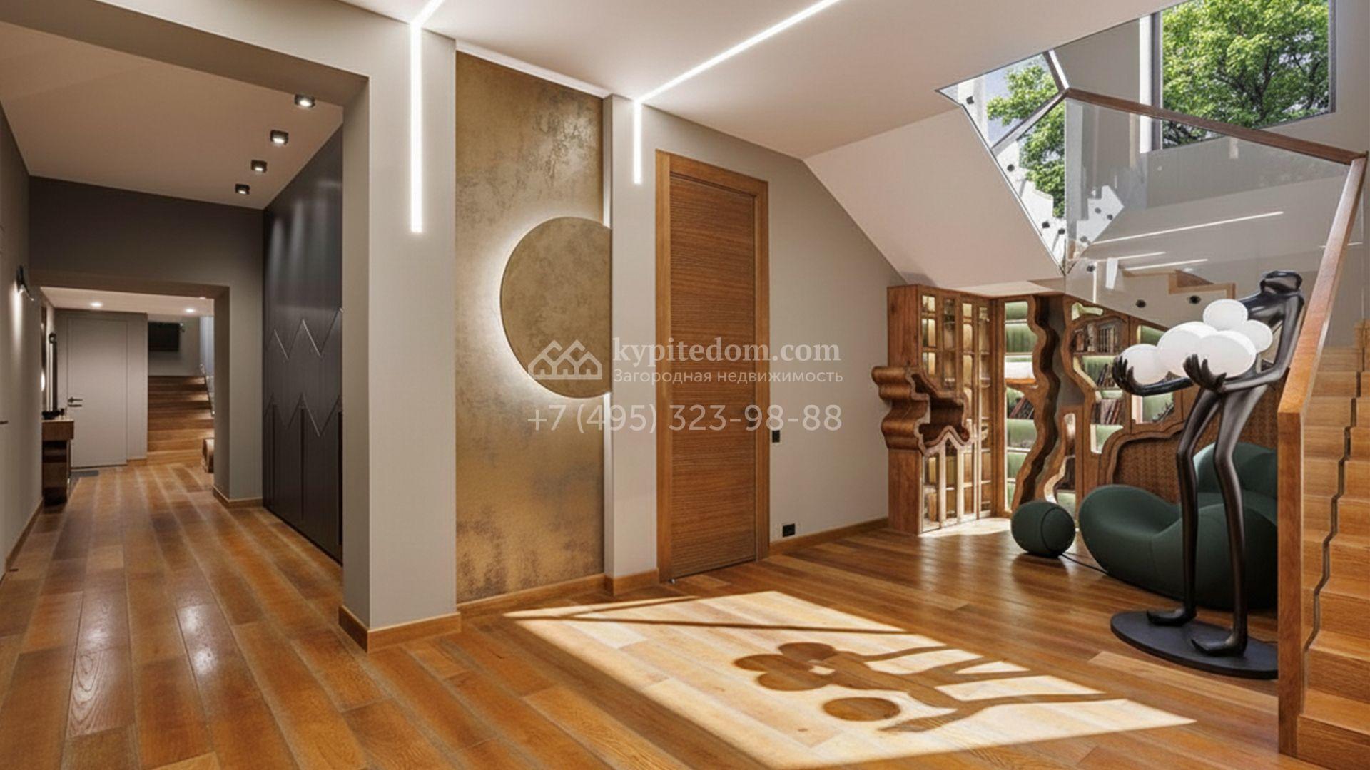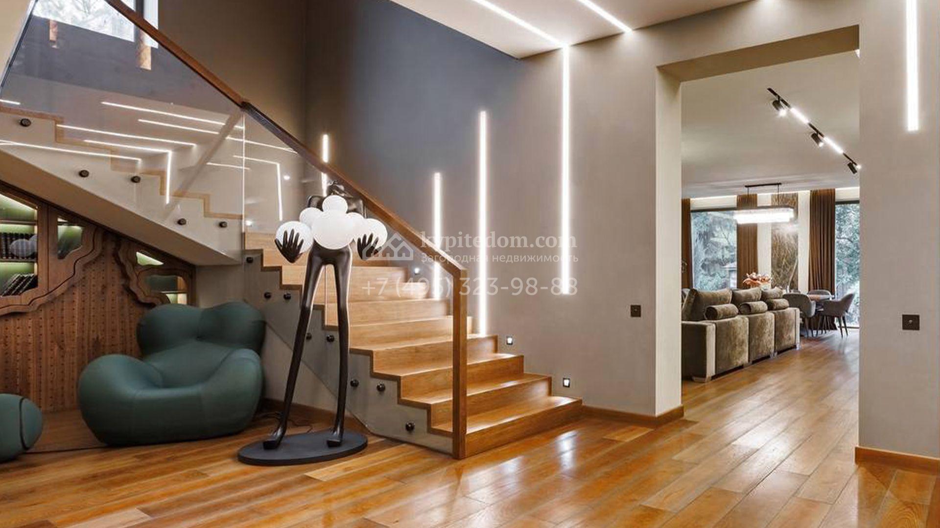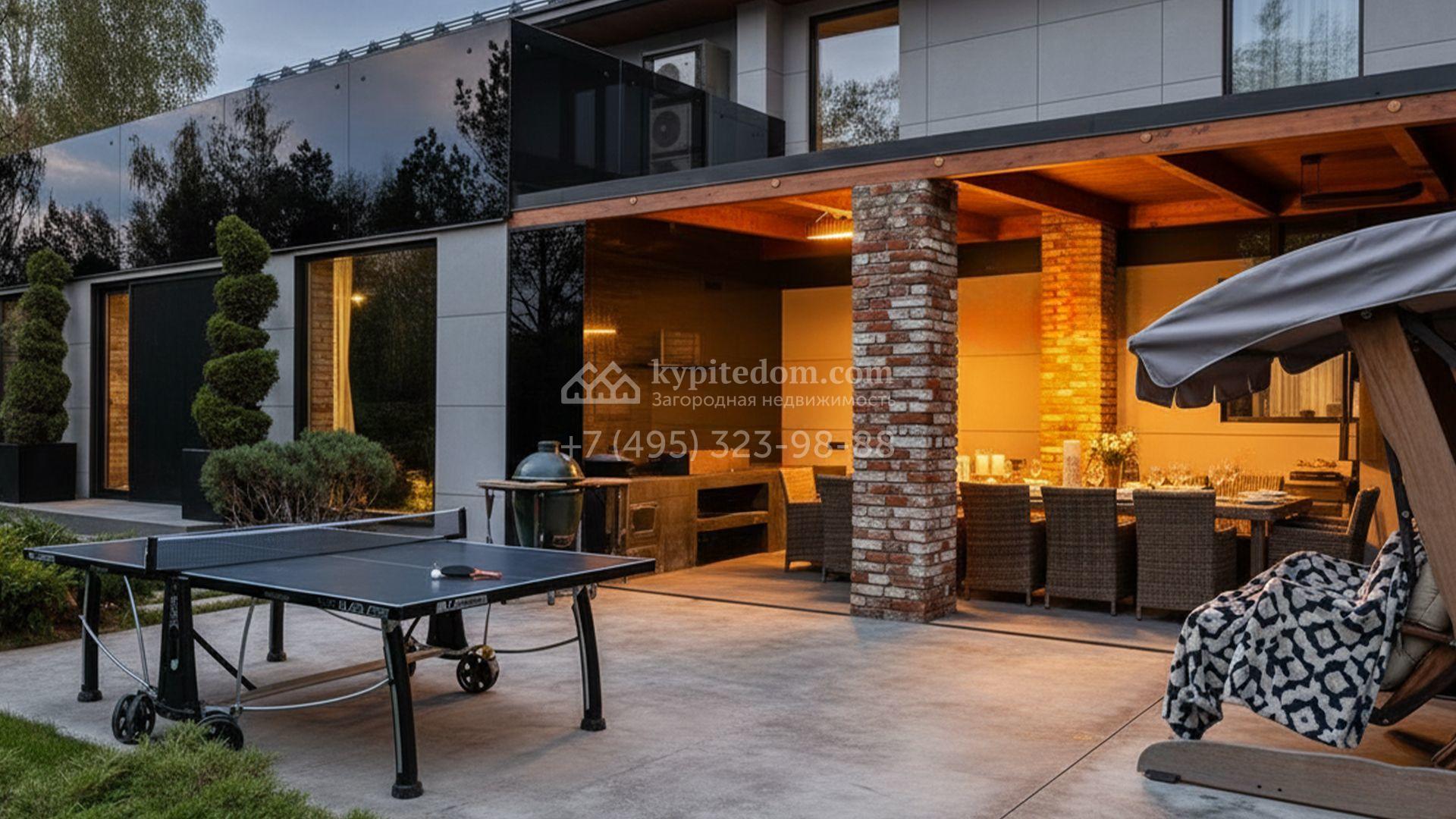 Кроме того, на территории возведён крытый спортзал, который зимой превращается в ледовый каток. На участке вдохните запах свежескошенной травы, прогуливаясь по аккуратным дорожкам в тени высоких елей и фруктовых деревьев, а также любуйтесь декоративными кустарниками и вечнозелёными растениями. Особую атмосферу в вечернее время создаёт индивидуальная подсветка каждого дерева в саду, делая ночные посиделки у зоны барбекю ещё более романтичными.