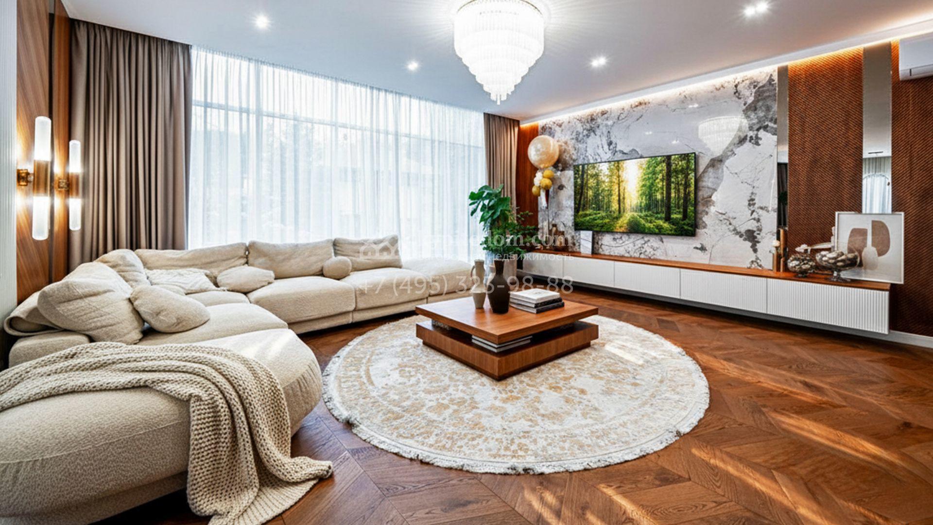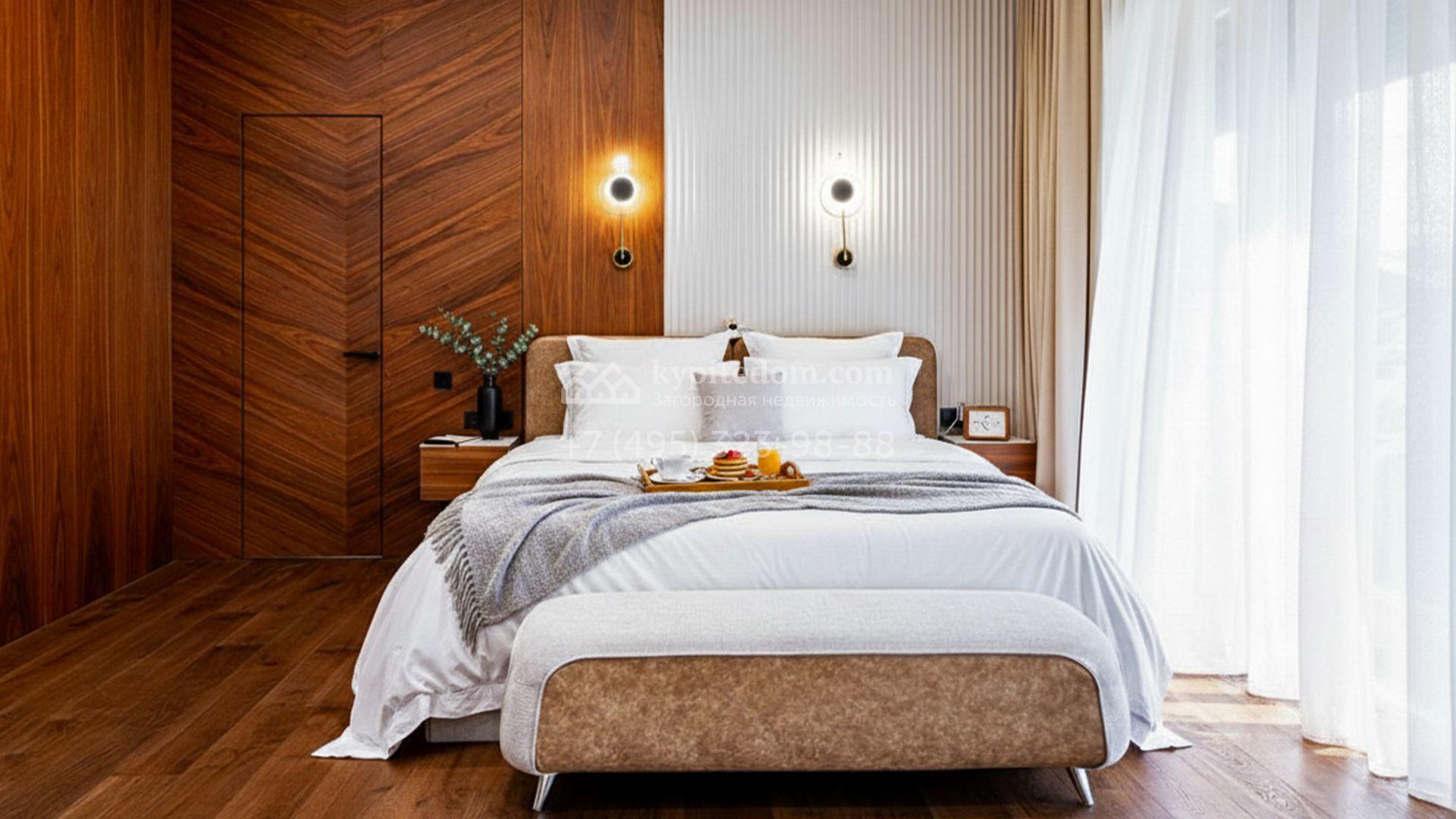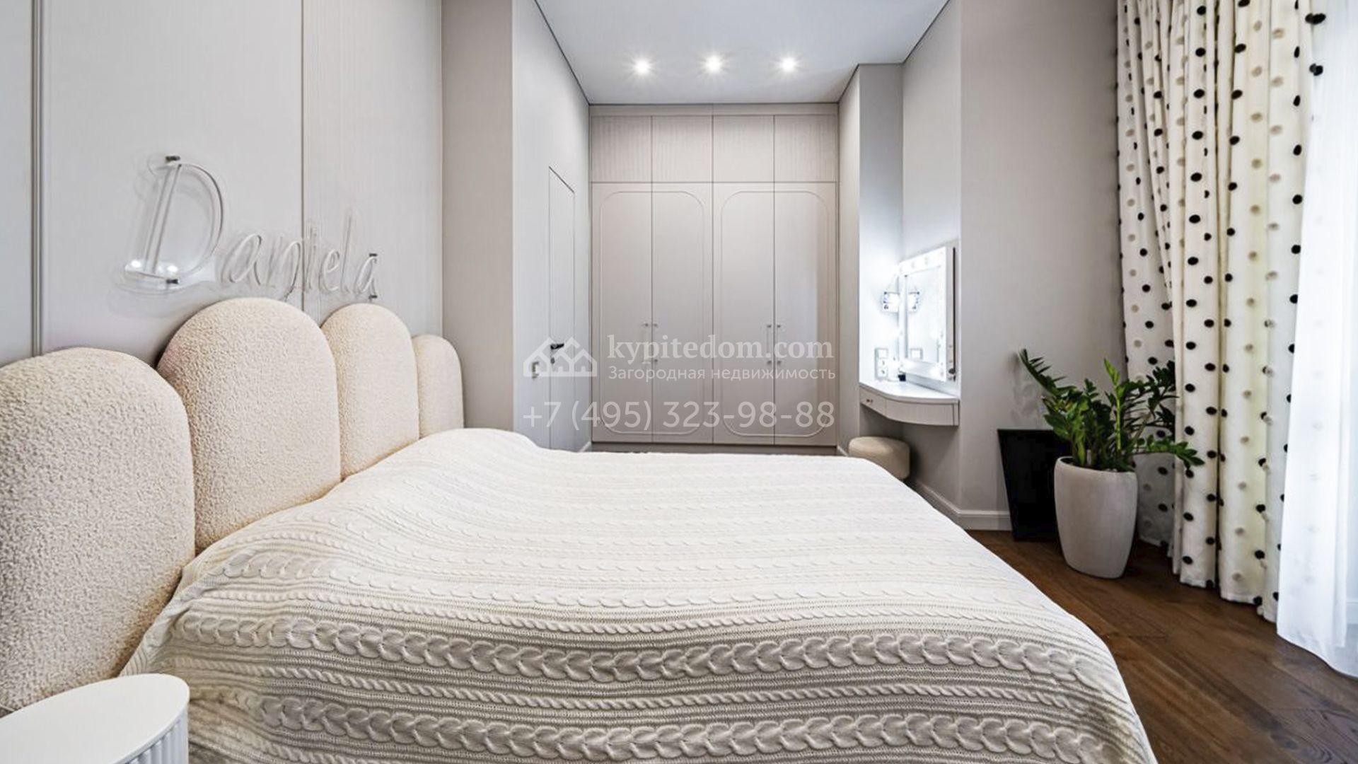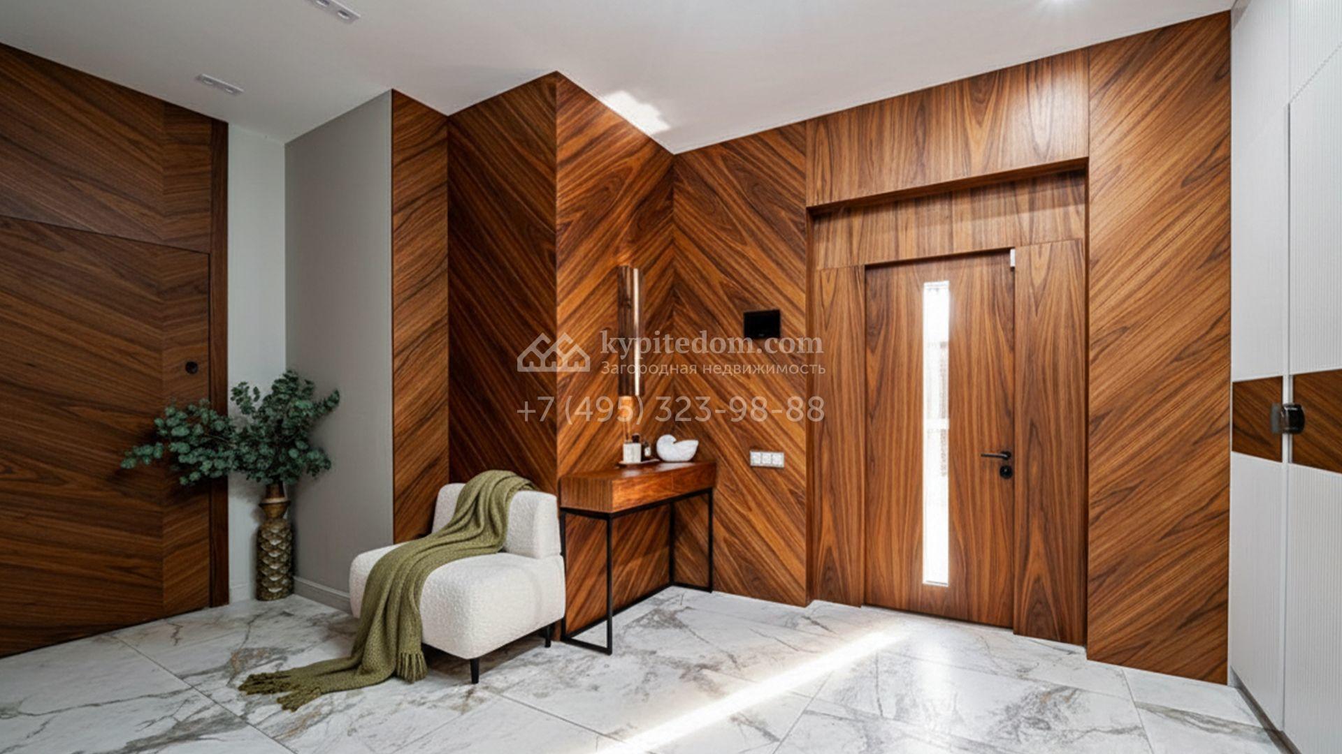 Загородный коттедж площадью 357 м² расположен на полевом участке 10 соток. Современный фасад облицован клинкерным кирпичом и планками с благородной фактурой дерева. Панорамные окна наполняют дом солнцем и визуально расширяют внутренние пространства. Стильные интерьеры выдержаны в светлых тонах, украшены элегатными молдингами, эффектными стеновыми панно и изящными люстрами, а также укомплектованы комфортной мебелью и бытовой техникой. Система кондиционирования круглый год поддерживает идеальный микроклимат.