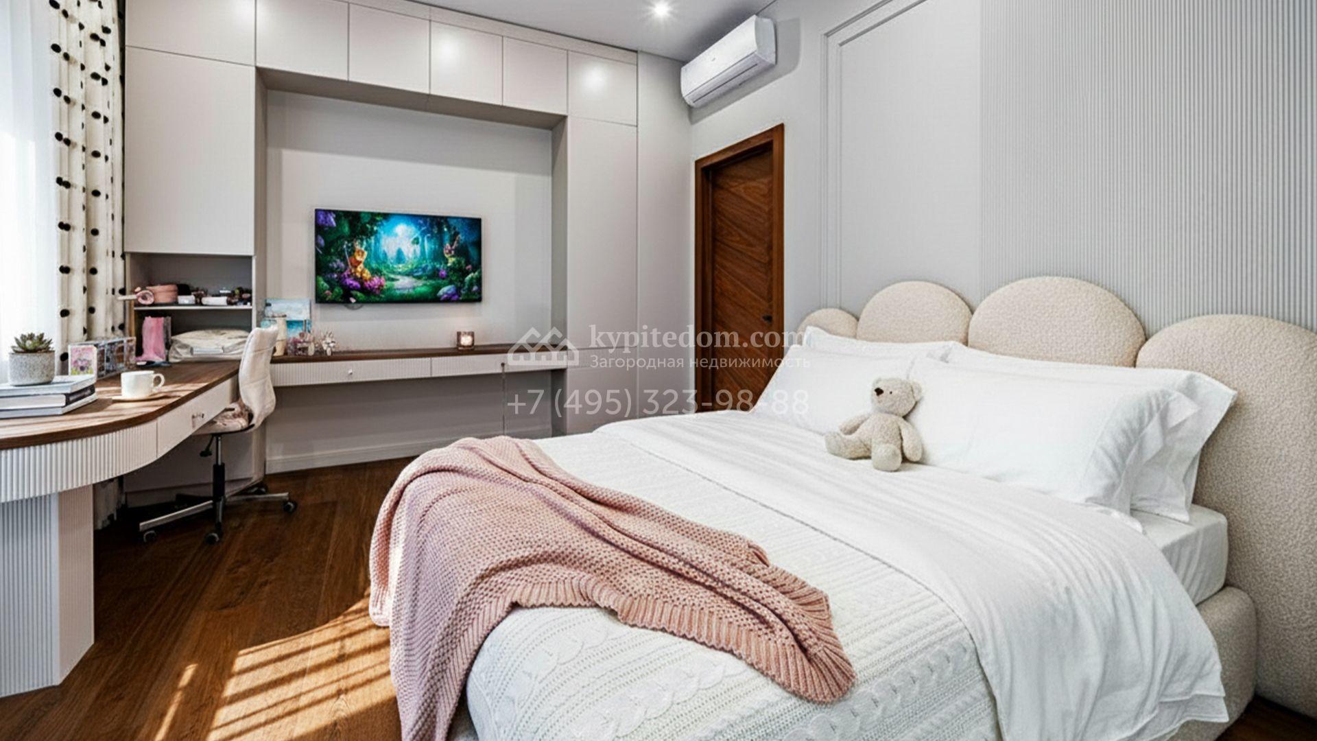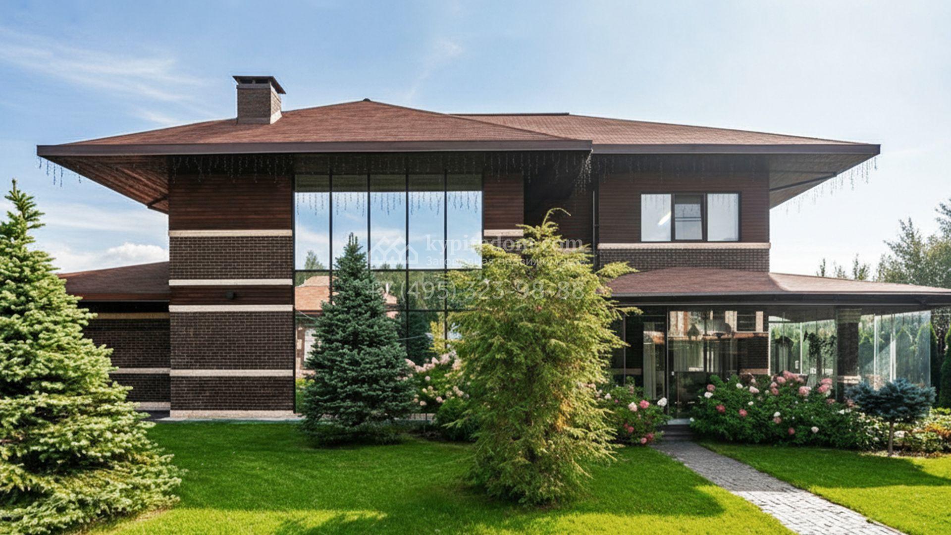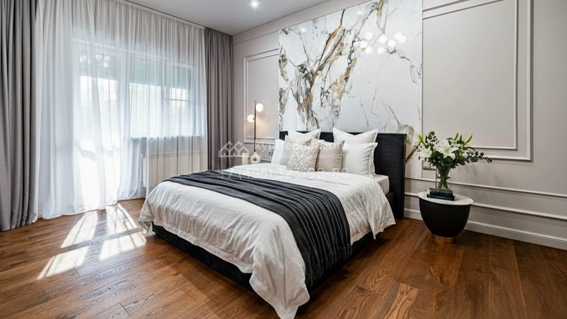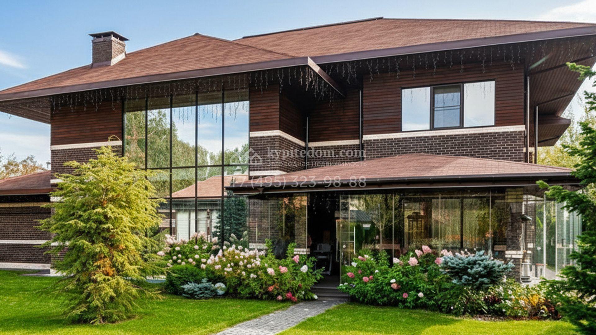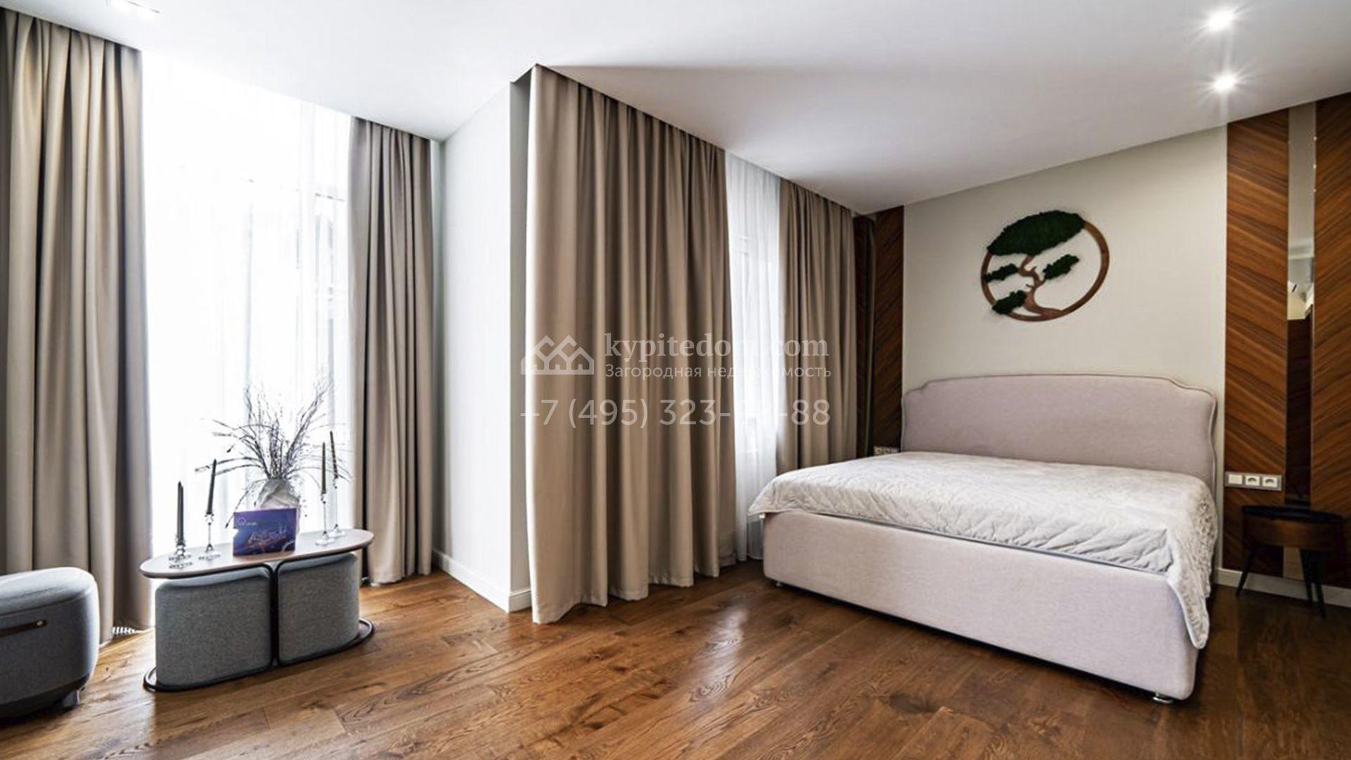 Загородный коттедж площадью 357 м² расположен на полевом участке 10 соток. Современный фасад облицован клинкерным кирпичом и планками с благородной фактурой дерева. Панорамные окна наполняют дом солнцем и визуально расширяют внутренние пространства. Стильные интерьеры выдержаны в светлых тонах, украшены элегатными молдингами, эффектными стеновыми панно и изящными люстрами, а также укомплектованы комфортной мебелью и бытовой техникой. Система кондиционирования круглый год поддерживает идеальный микроклимат.
