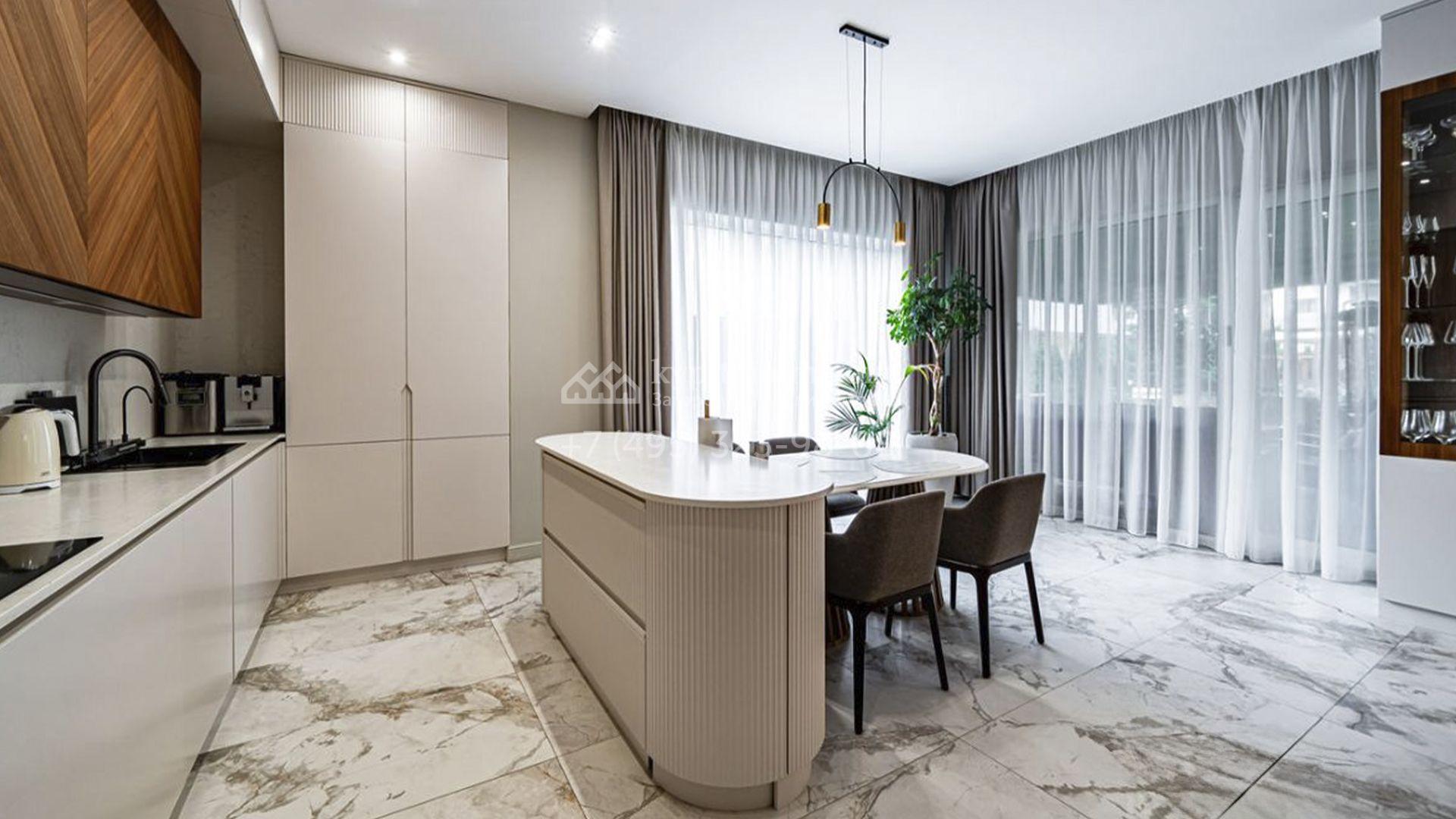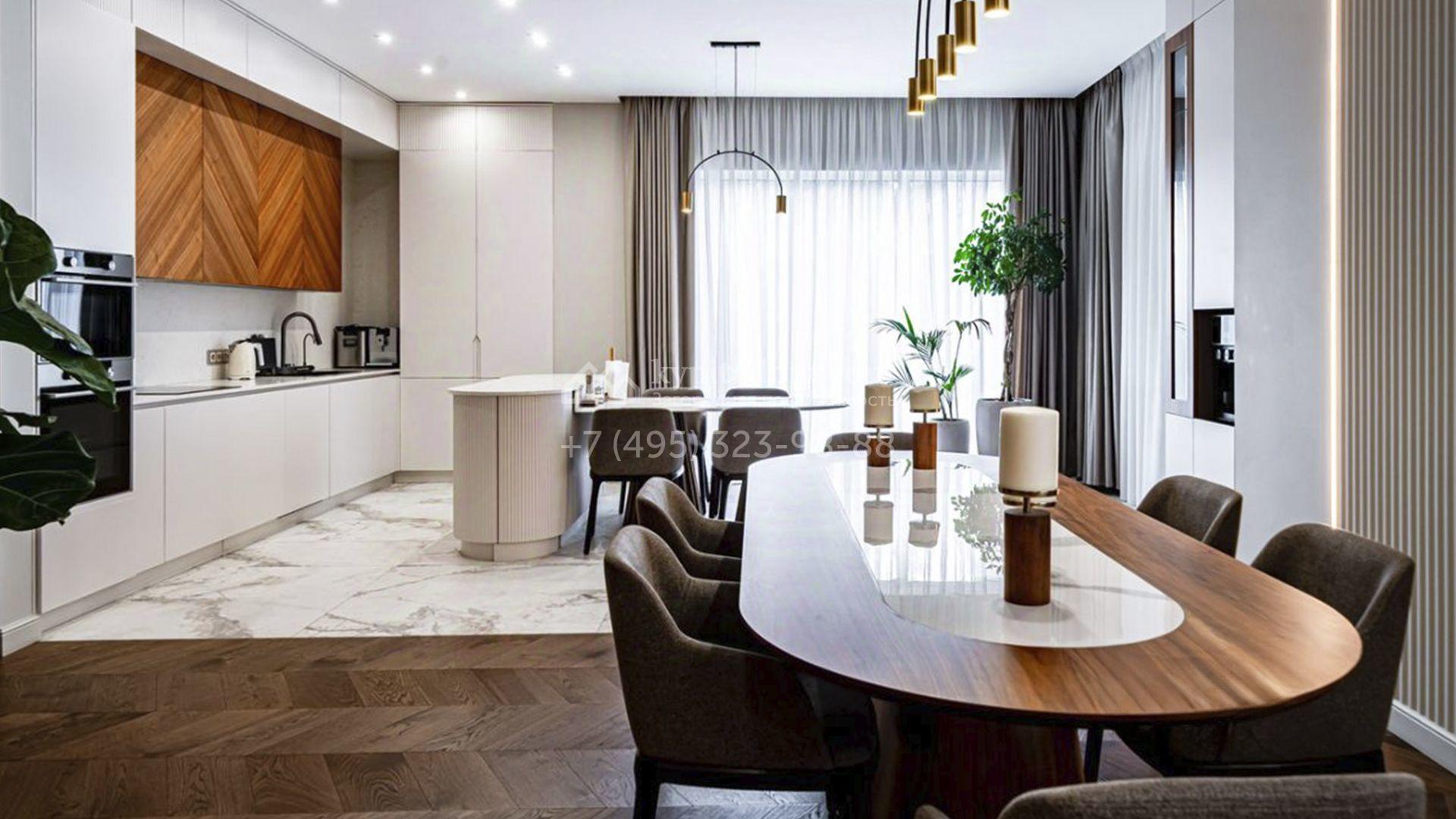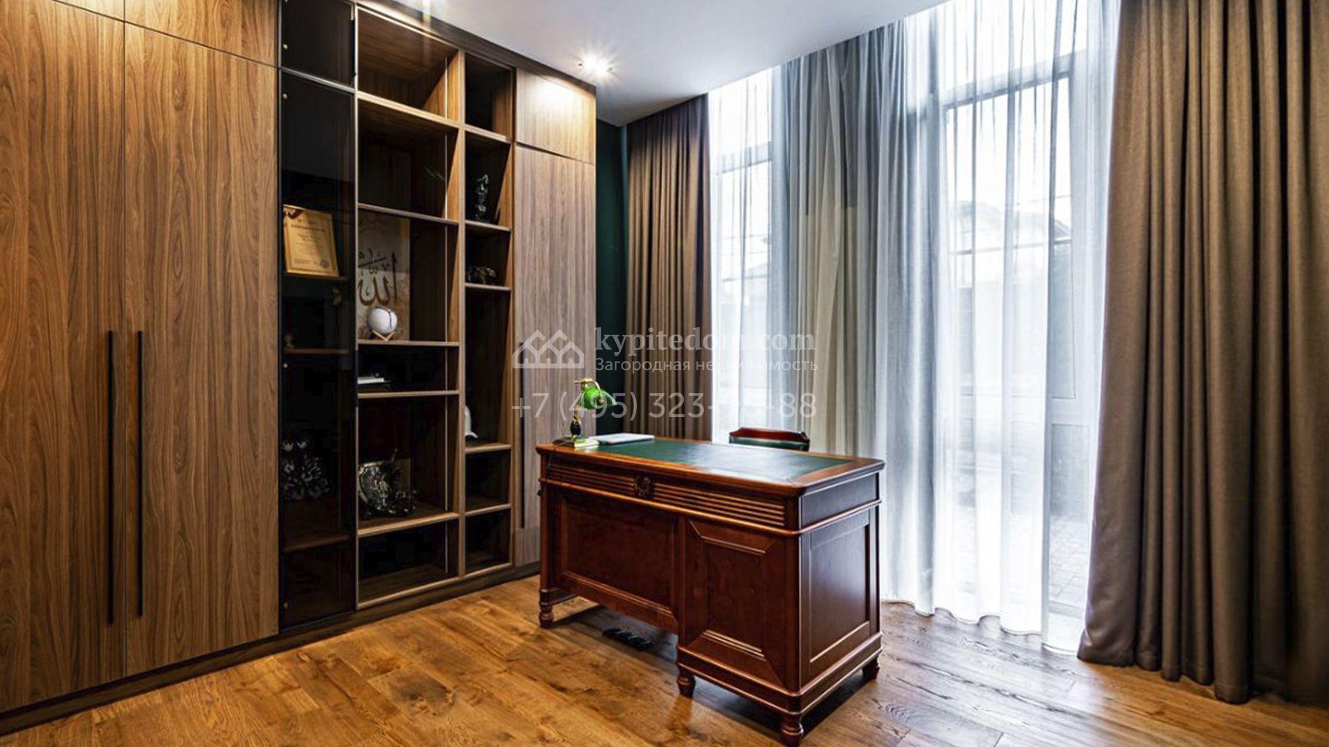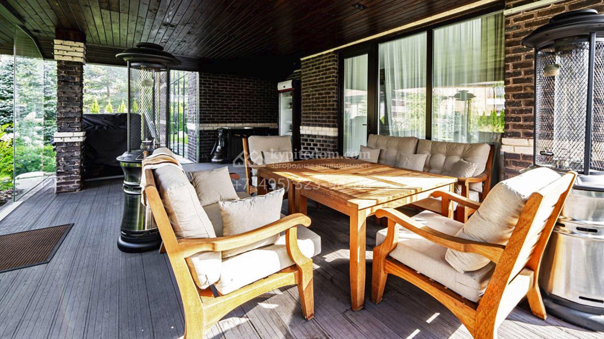 Загородный коттедж площадью 357 м² расположен на полевом участке 10 соток. Современный фасад облицован клинкерным кирпичом и планками с благородной фактурой дерева. Панорамные окна наполняют дом солнцем и визуально расширяют внутренние пространства. Стильные интерьеры выдержаны в светлых тонах, украшены элегатными молдингами, эффектными стеновыми панно и изящными люстрами, а также укомплектованы комфортной мебелью и бытовой техникой. Система кондиционирования круглый год поддерживает идеальный микроклимат.