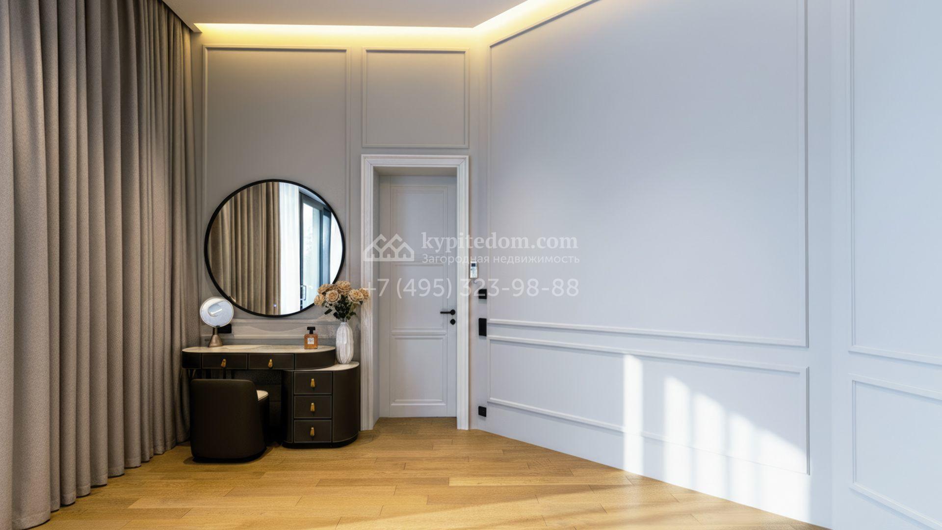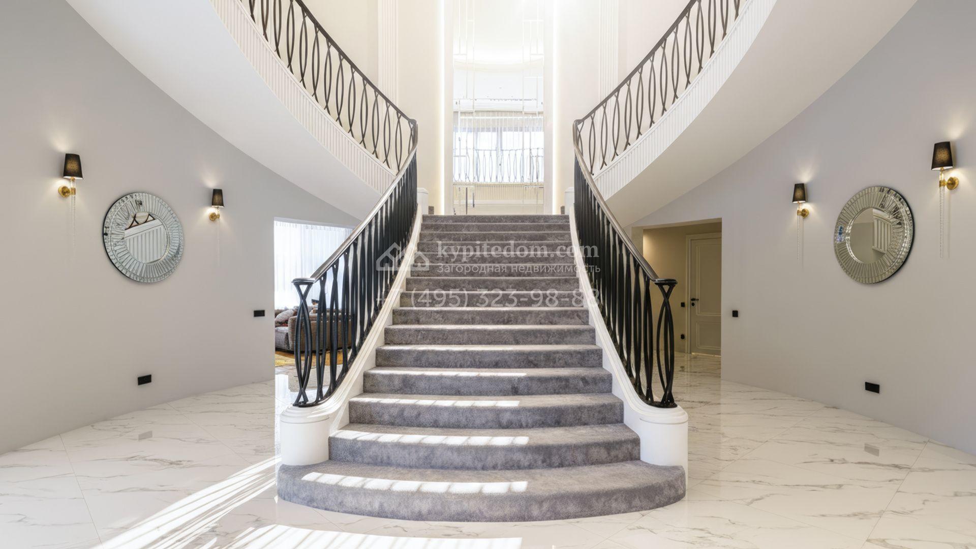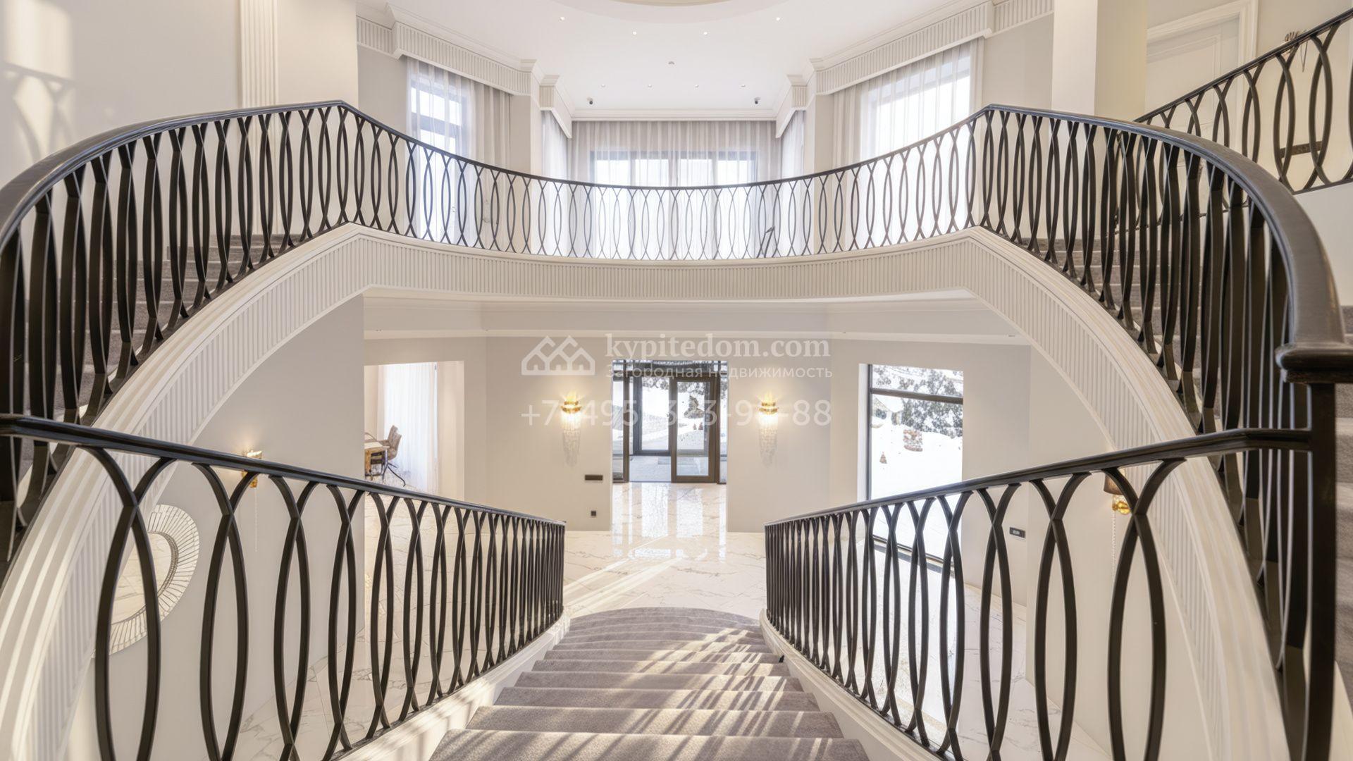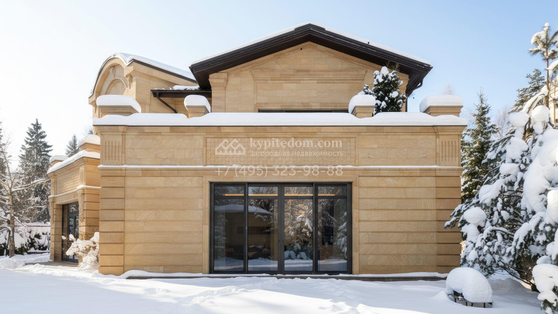 Загородный коттедж площадью 600 м² расположен на участке 26 соток рядом с живописным лесом. Его архитектура выполнена в благородном неоклассическом стиле: фасад, облицованный натуральным камнем, украшен изящной рустовкой, пилястрами и эркерами. Современным акцентом стало тройное панорамное остекление Schuco, наполняющее внутренние пространства солнечными лучами и ощущением простора. Элегантные интерьеры выдержаны в светлых тонах, декорированы молдингами, а также укомплектованы стильной мебелью, встроенной бытовой техникой и современной сантехникой.
