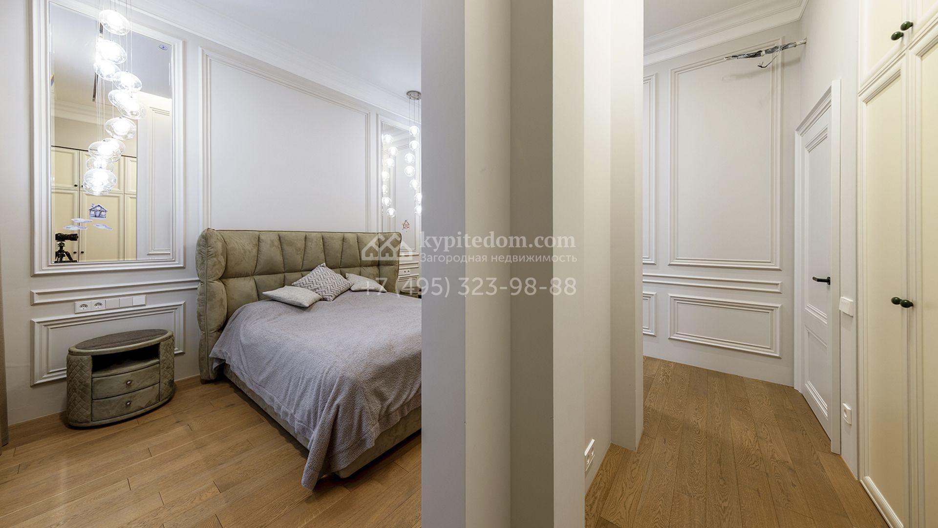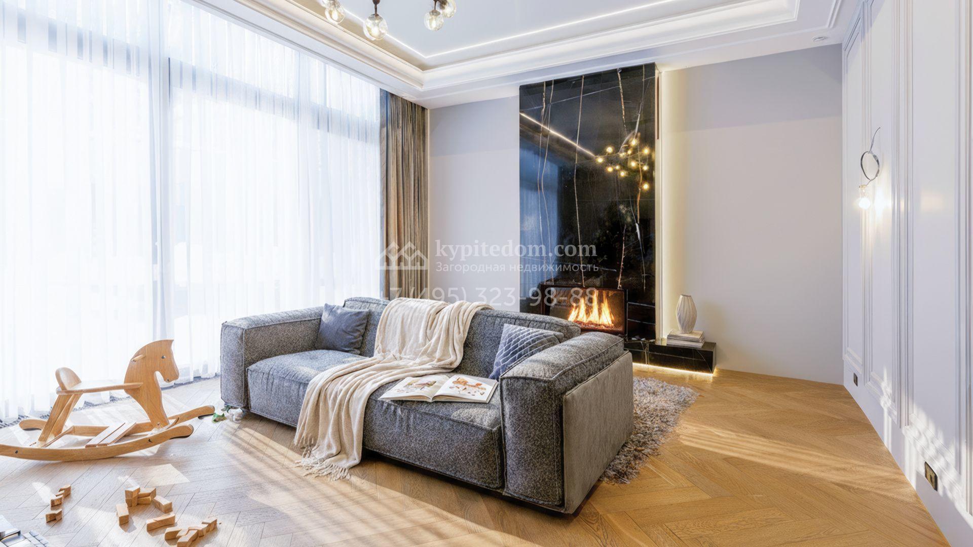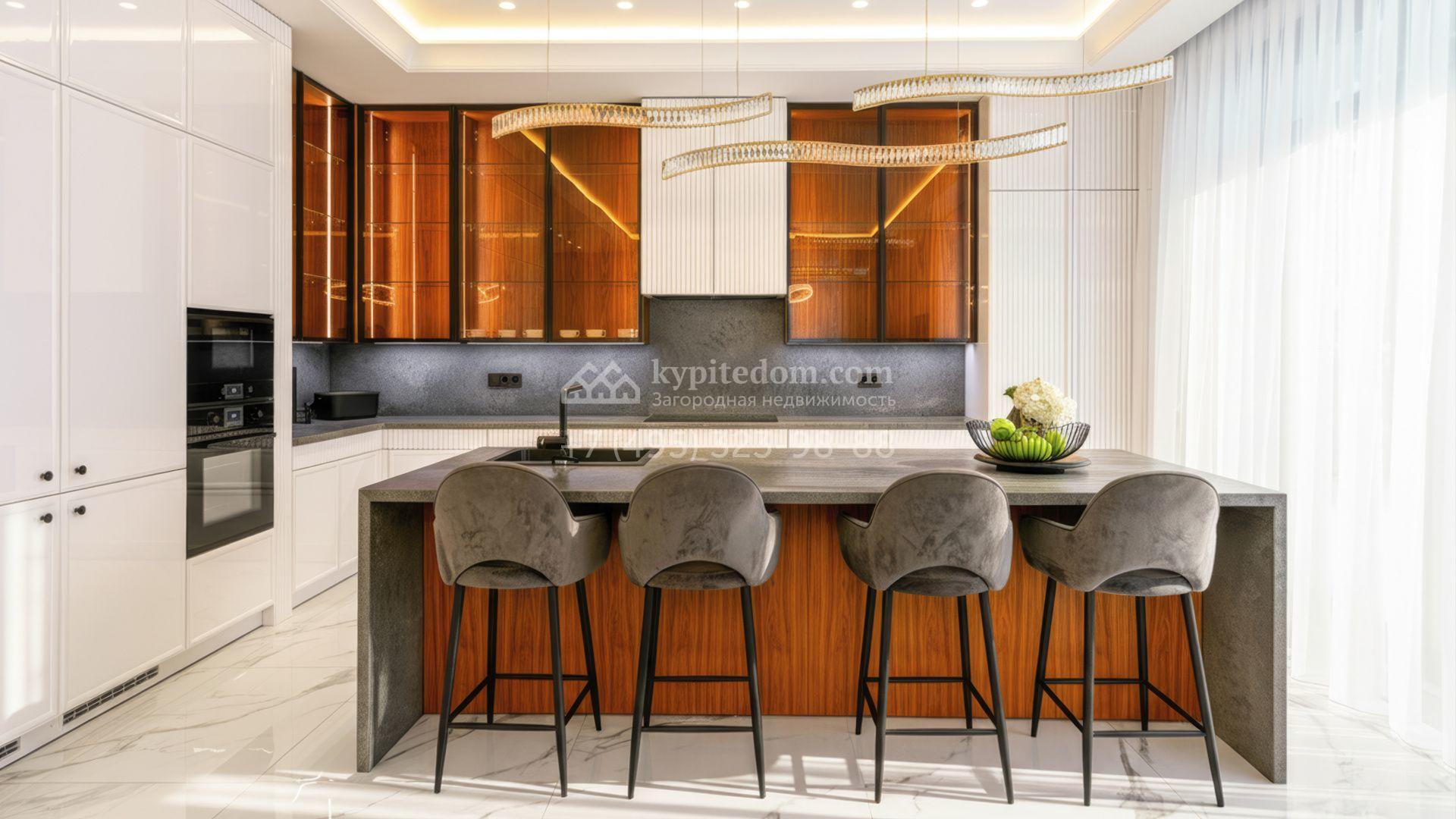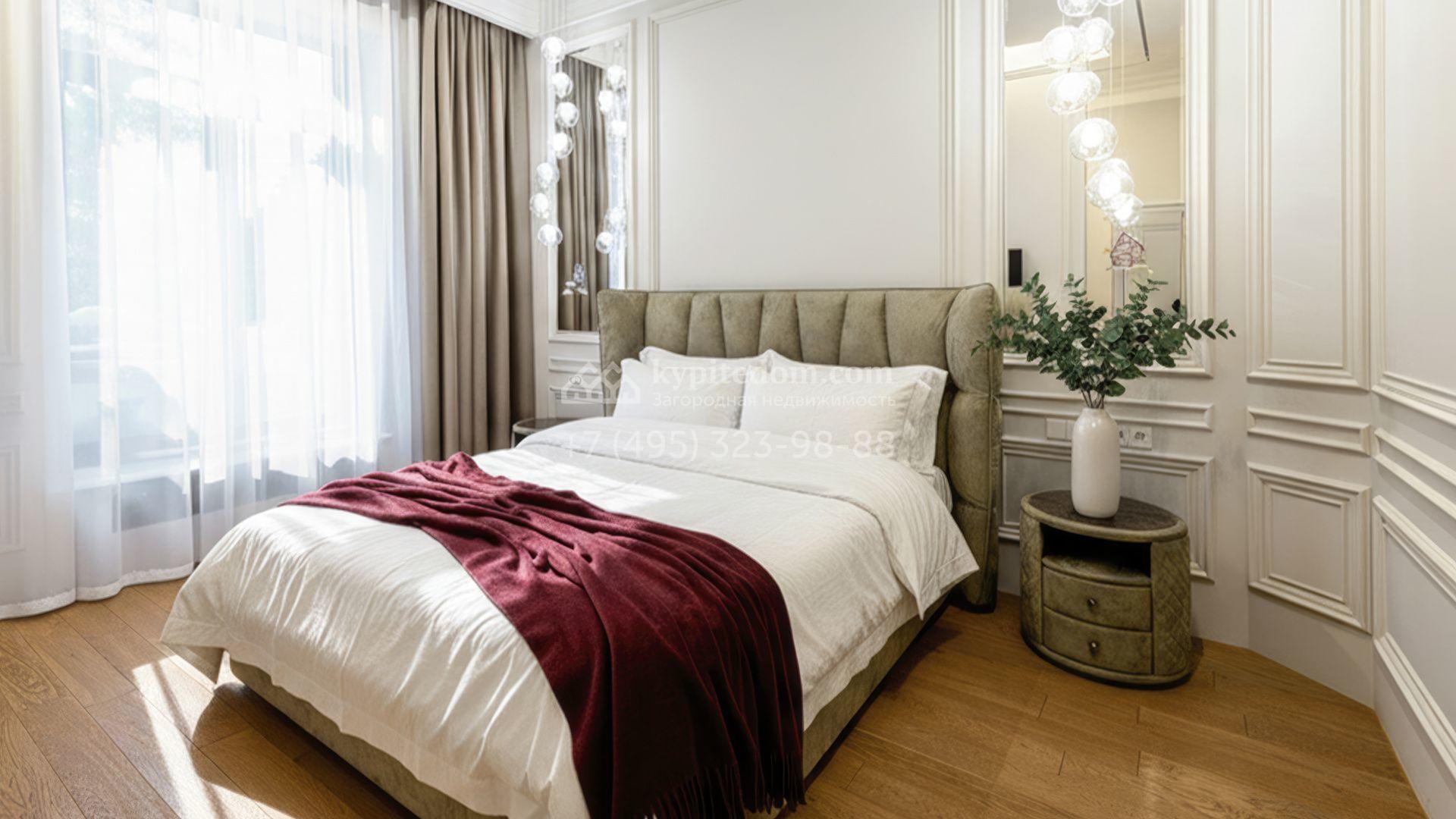 Загородный коттедж площадью 600 м² расположен на участке 26 соток рядом с живописным лесом. Его архитектура выполнена в благородном неоклассическом стиле: фасад, облицованный натуральным камнем, украшен изящной рустовкой, пилястрами и эркерами. Современным акцентом стало тройное панорамное остекление Schuco, наполняющее внутренние пространства солнечными лучами и ощущением простора. Элегантные интерьеры выдержаны в светлых тонах, декорированы молдингами, а также укомплектованы стильной мебелью, встроенной бытовой техникой и современной сантехникой.