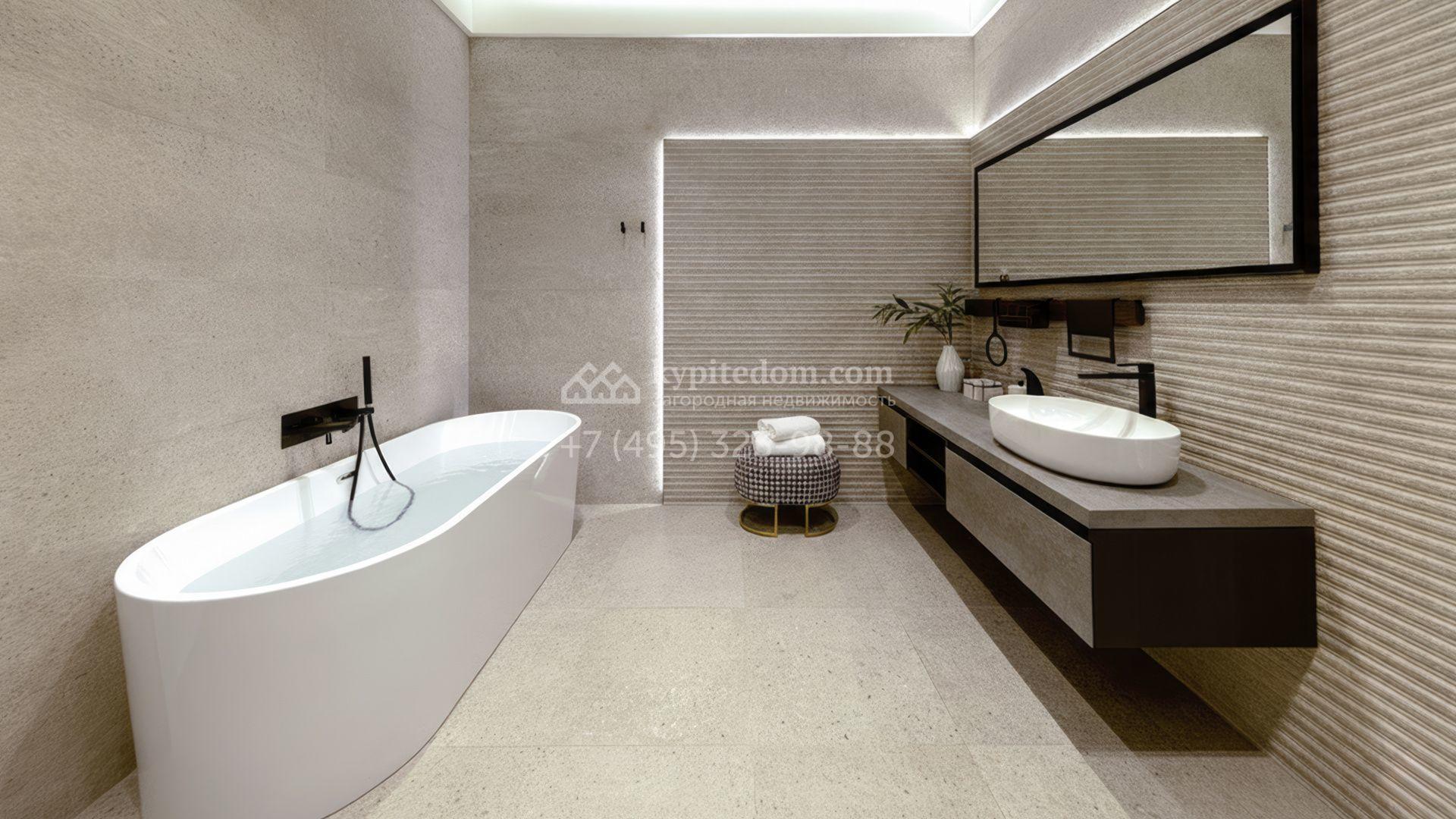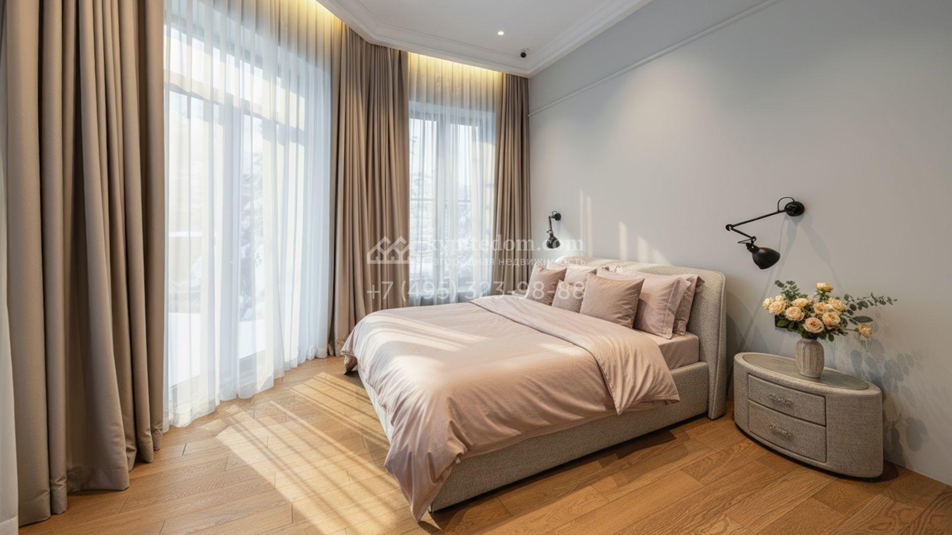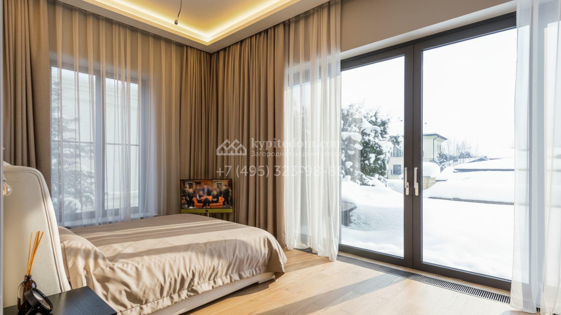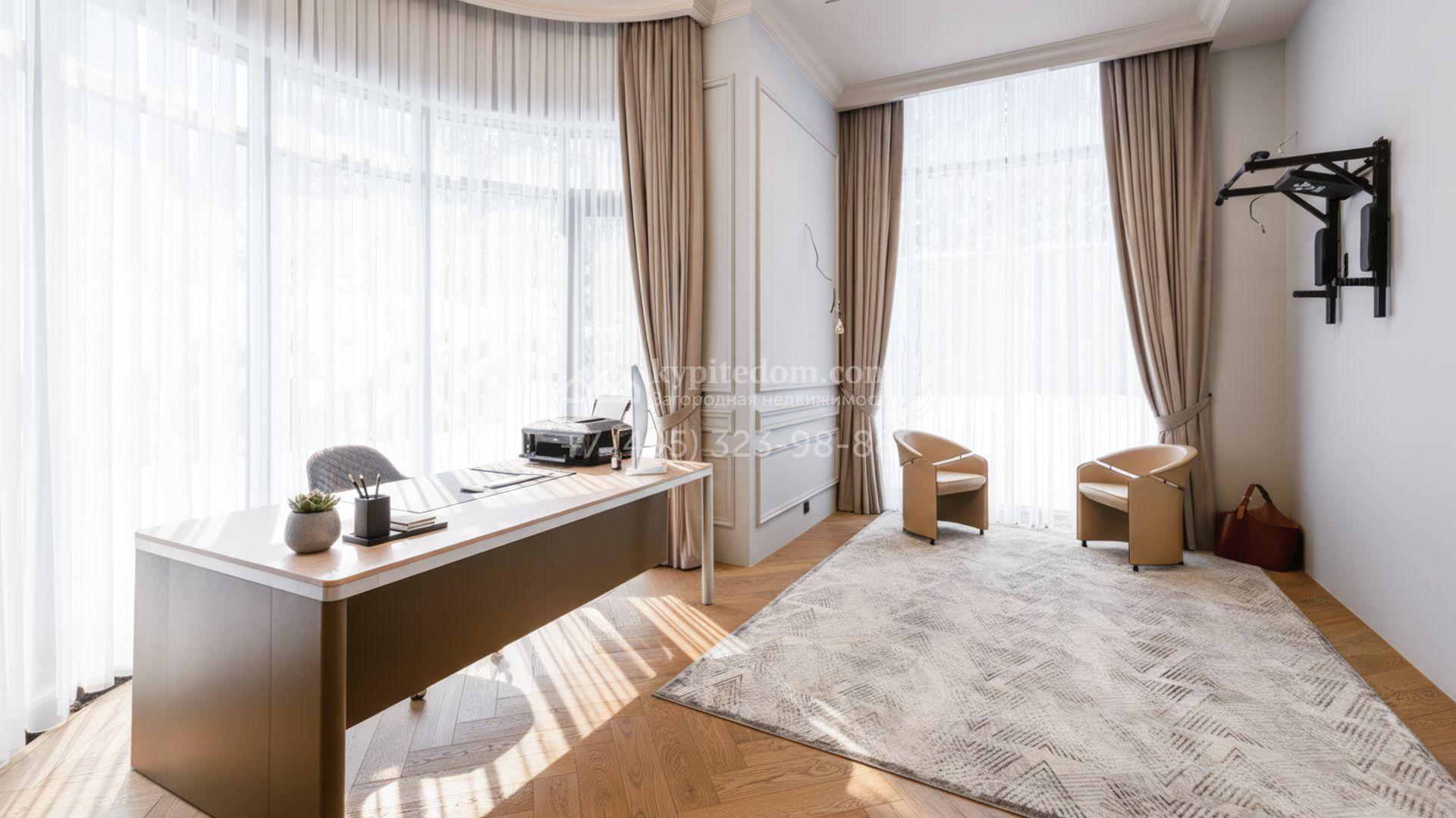 Загородный коттедж площадью 600 м² расположен на участке 26 соток рядом с живописным лесом. Его архитектура выполнена в благородном неоклассическом стиле: фасад, облицованный натуральным камнем, украшен изящной рустовкой, пилястрами и эркерами. Современным акцентом стало тройное панорамное остекление Schuco, наполняющее внутренние пространства солнечными лучами и ощущением простора. Элегантные интерьеры выдержаны в светлых тонах, декорированы молдингами, а также укомплектованы стильной мебелью, встроенной бытовой техникой и современной сантехникой.
