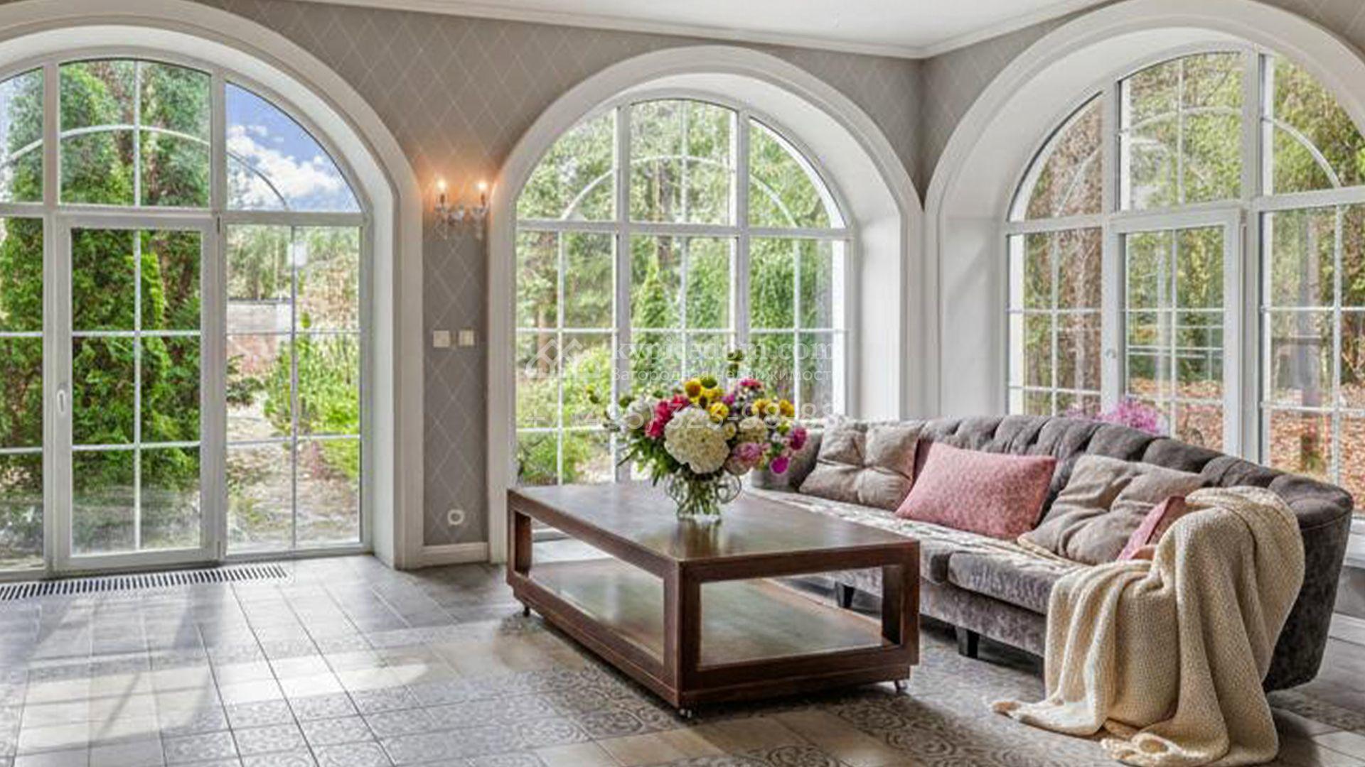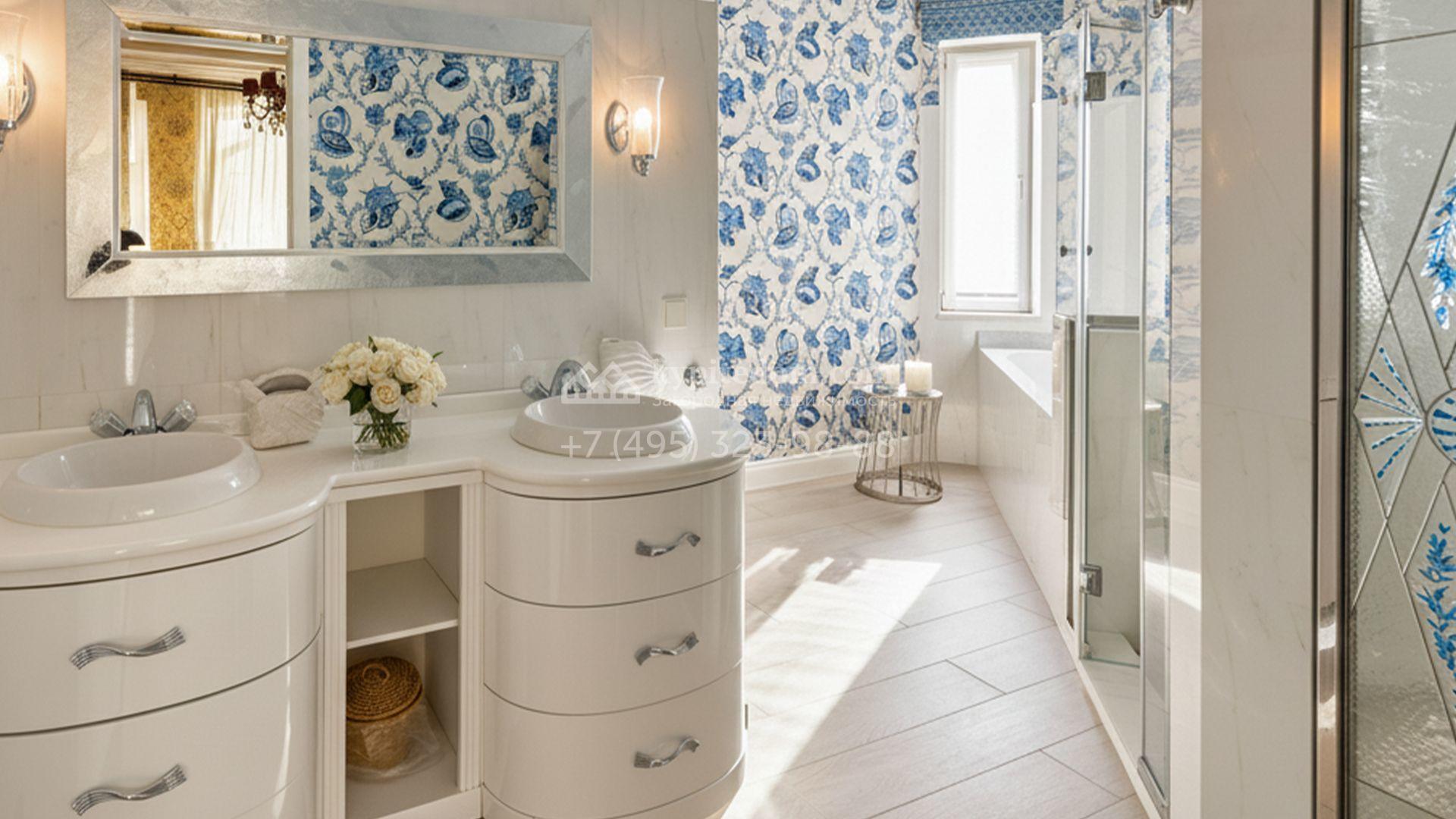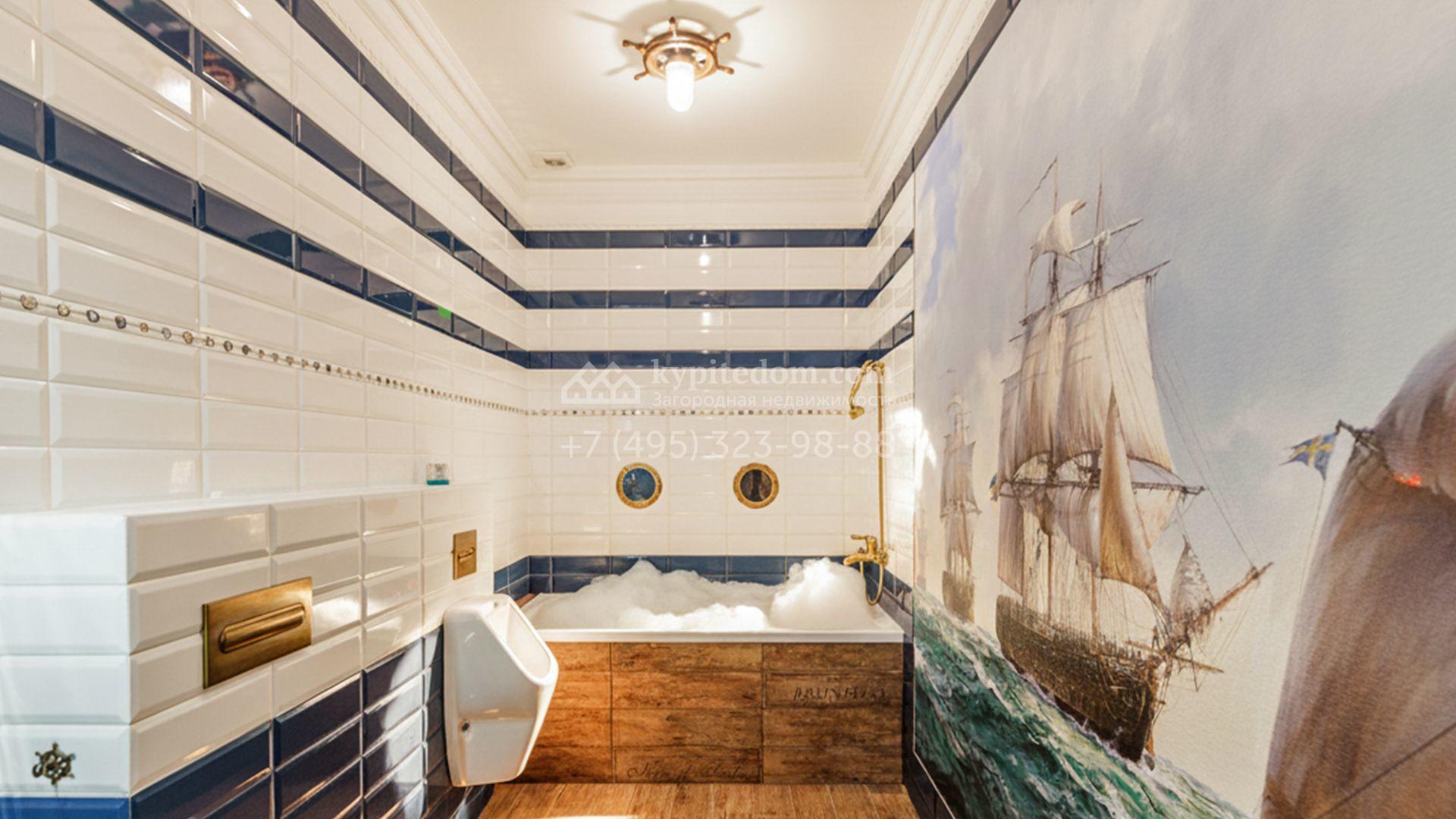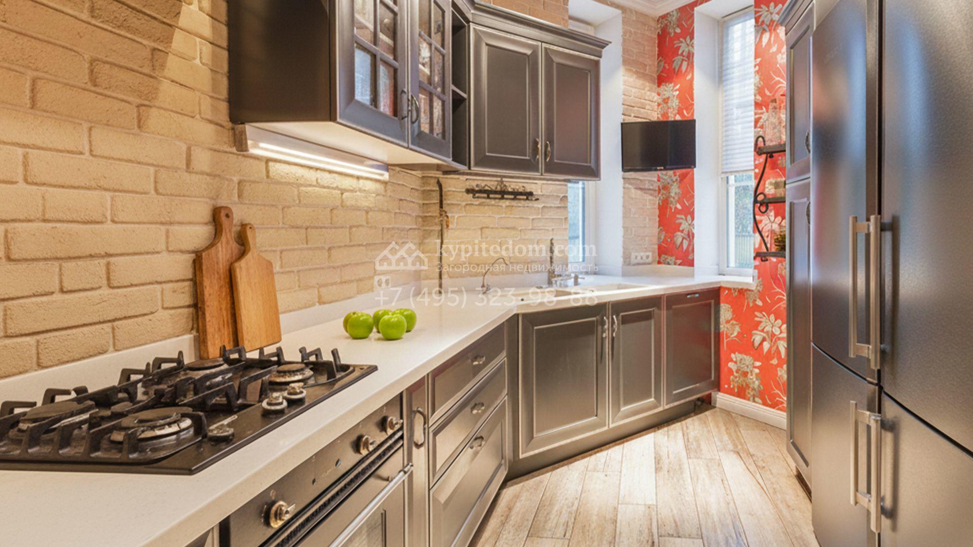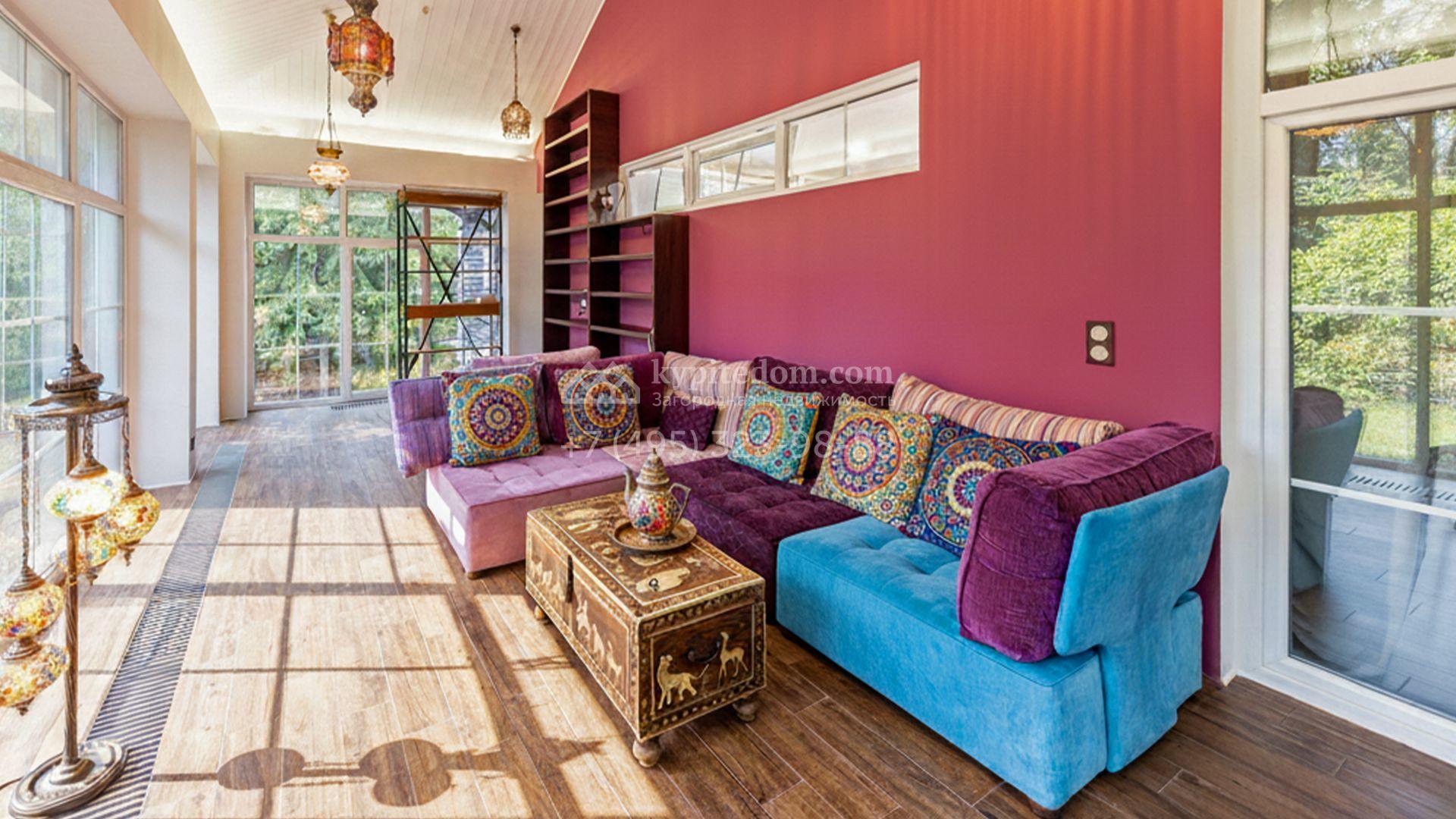 Загородный коттедж площадью 690 м² расположен на живописном лесном участке 25 соток. Фасад, выполненный в английском стиле, облицован благородным клинкерным кирпичом и украшен контрастными белыми колоннами, рустовкой, наличниками и замковым камнем. Большие панорамные окна и высокие потолки создают ощущение простора и свободы. Интерьеры, сочетающие яркие и спокойные тона, отделаны с использованием натуральных материалов и обоев с элегантными принтами. Дом полностью укомплектован комфортной мебелью, изящными предметами декора и встроенной бытовой техникой.