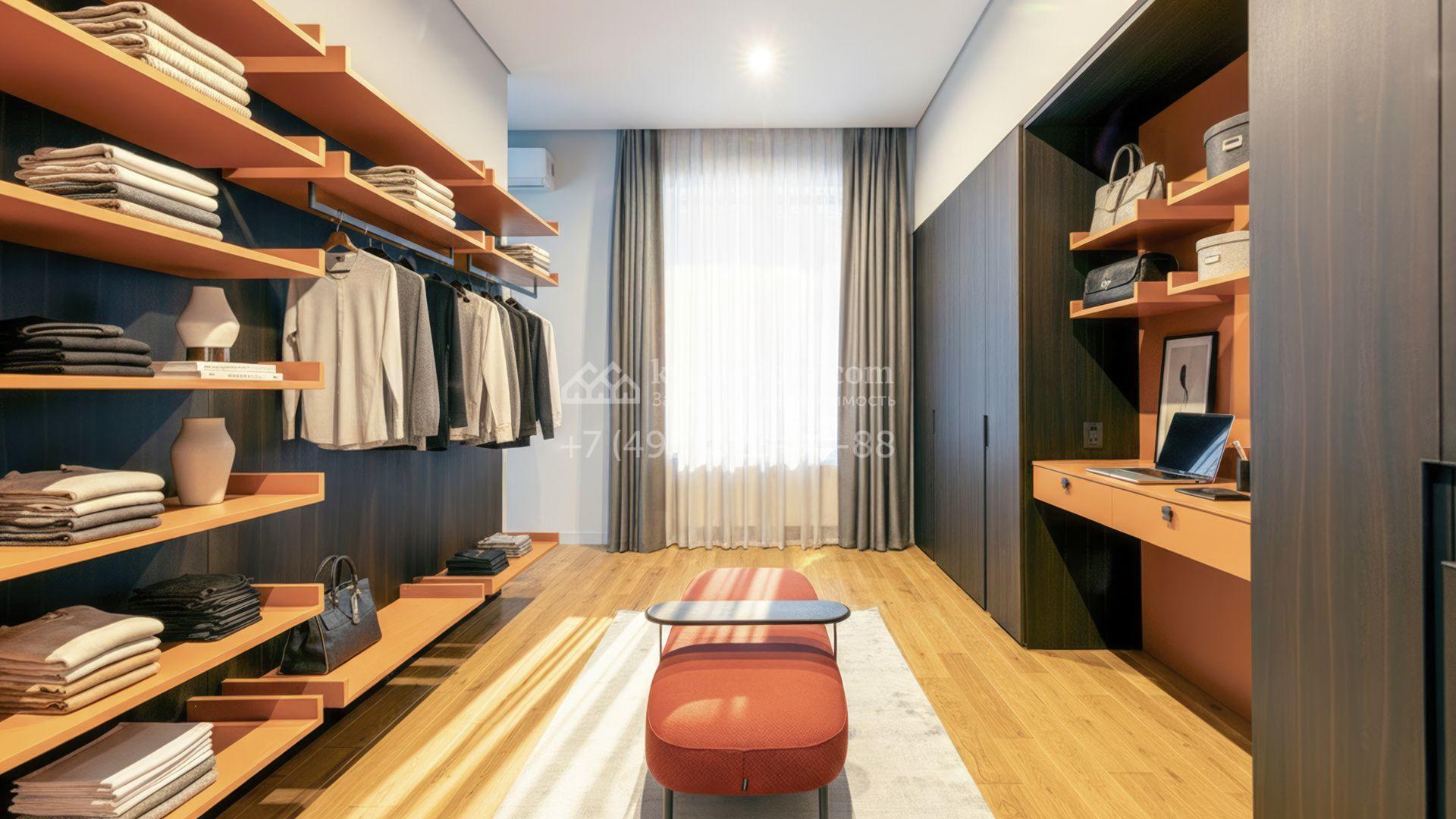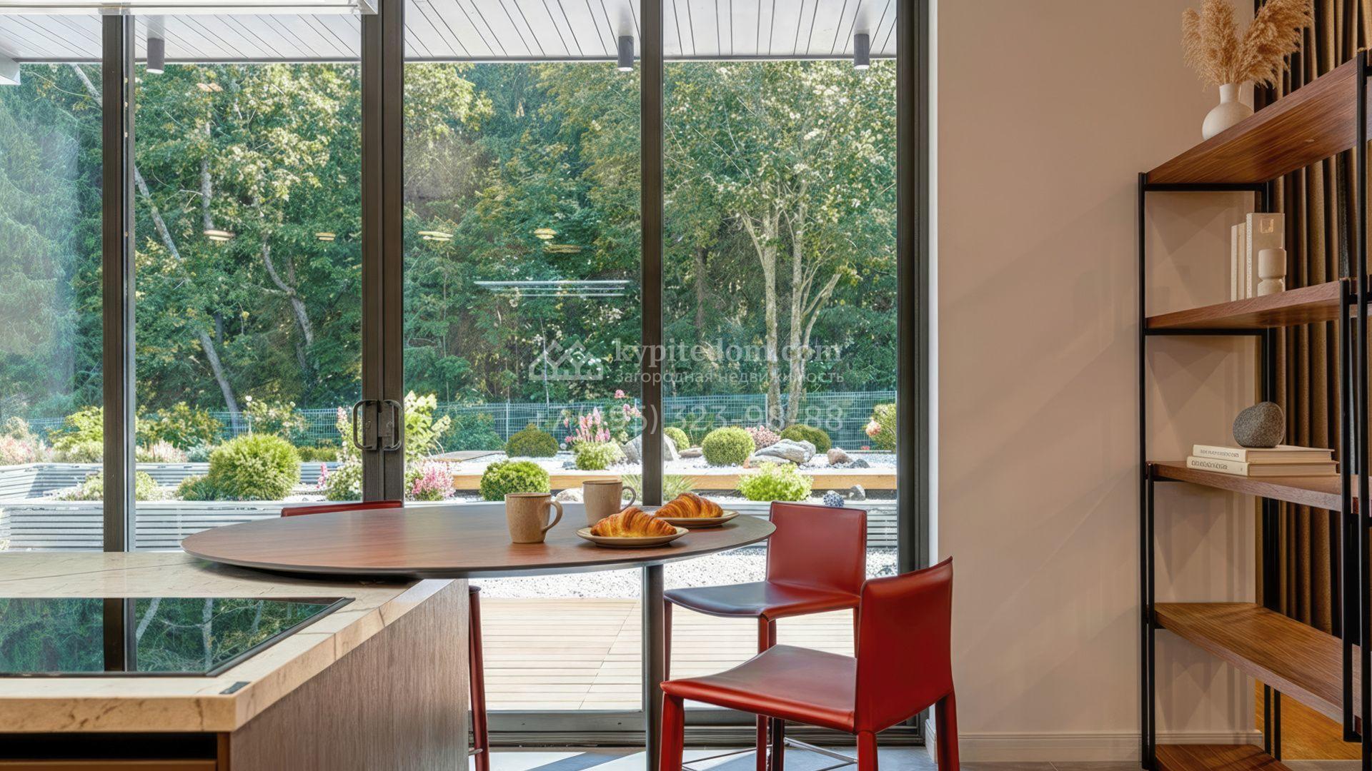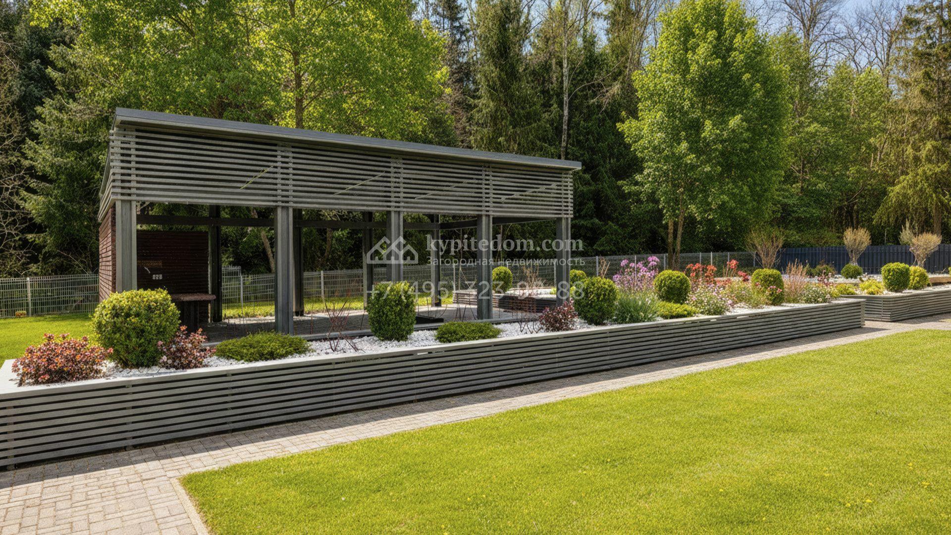 Планировка включает просторную гостиную, объединённую с кухней и столовой, четыре спальни, кабинет, хаммам и террасу с выходом в сад. На участке с ландшафтным дизайном высажены редкие деревья и кустарники, организована система автополива. Для встреч в кругу семьи и друзей предусмотрена зона барбекю площадью 45 м². Также на территории расположен гараж на 70 м², рассчитанный на две машины.